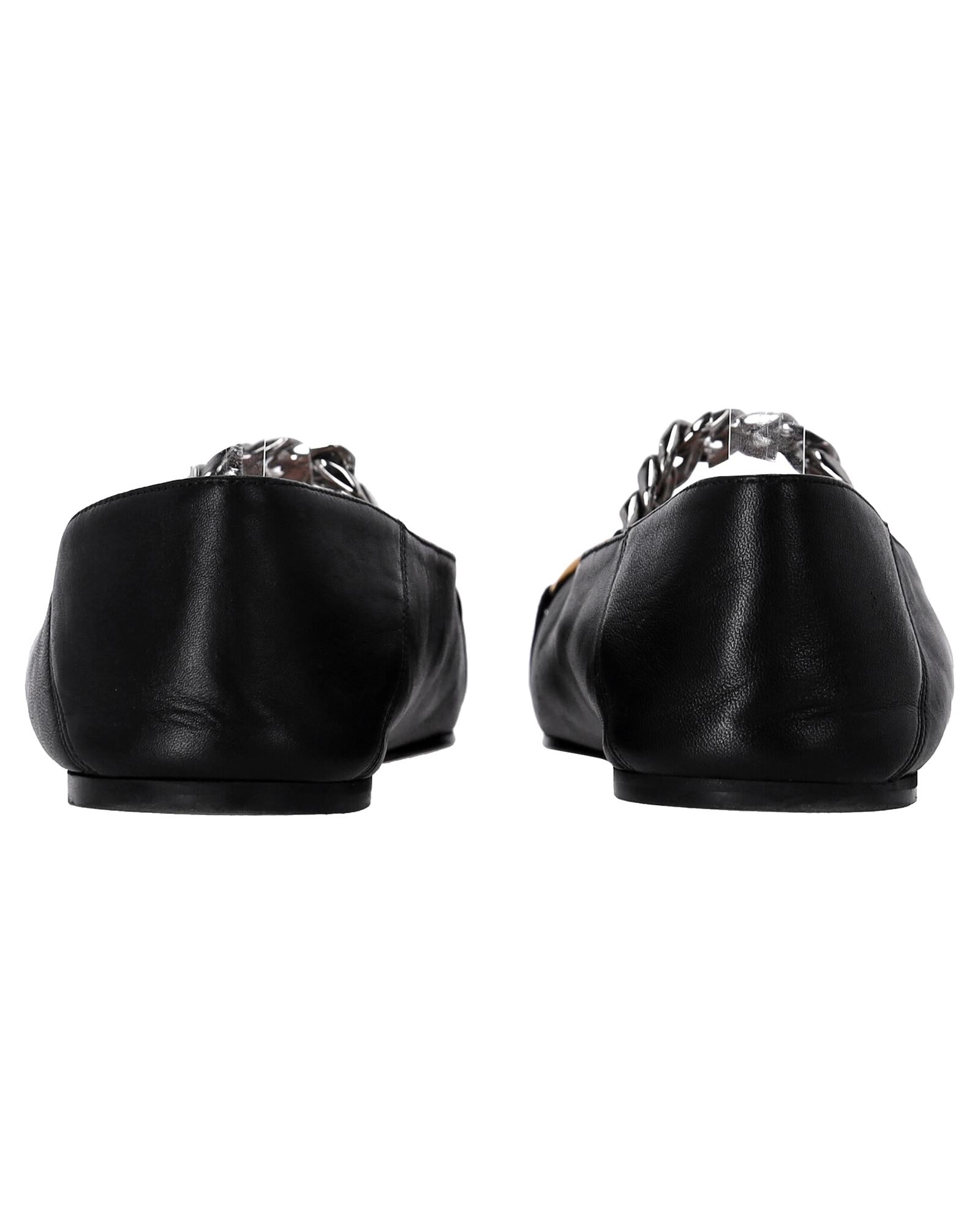 ChainDetailed Ballerinas Leather Loafers