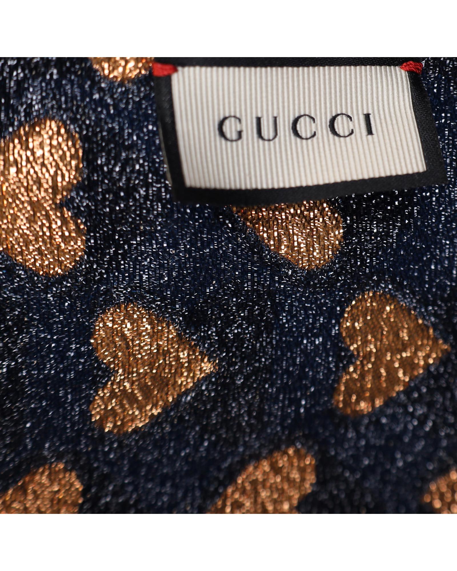 • Gucci Printed Knit Lame Jacquard Scarf in Navy Blue Acetate