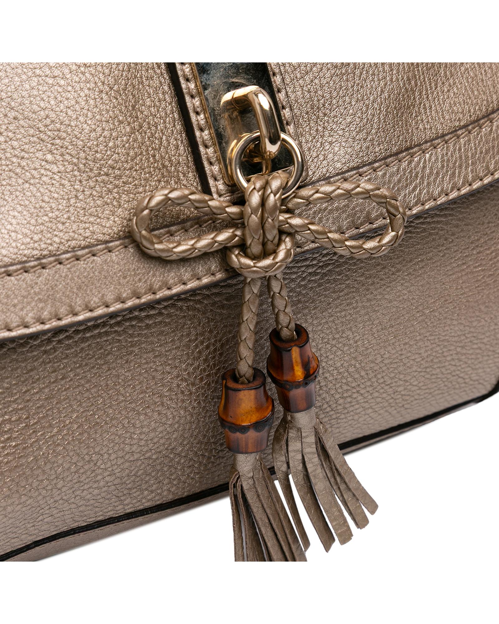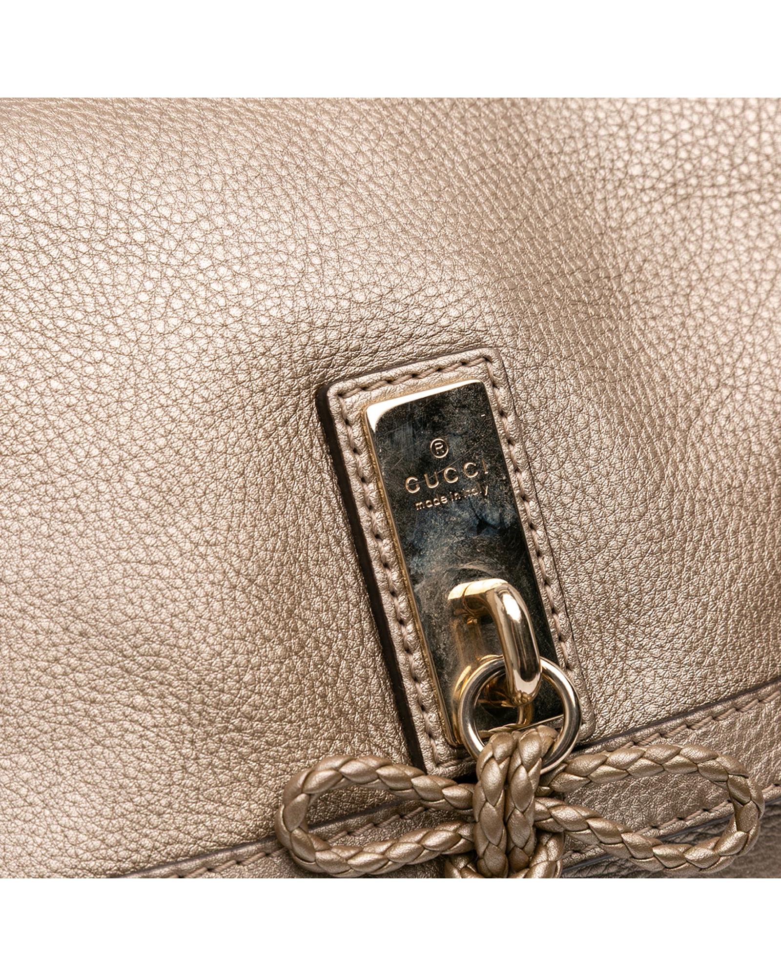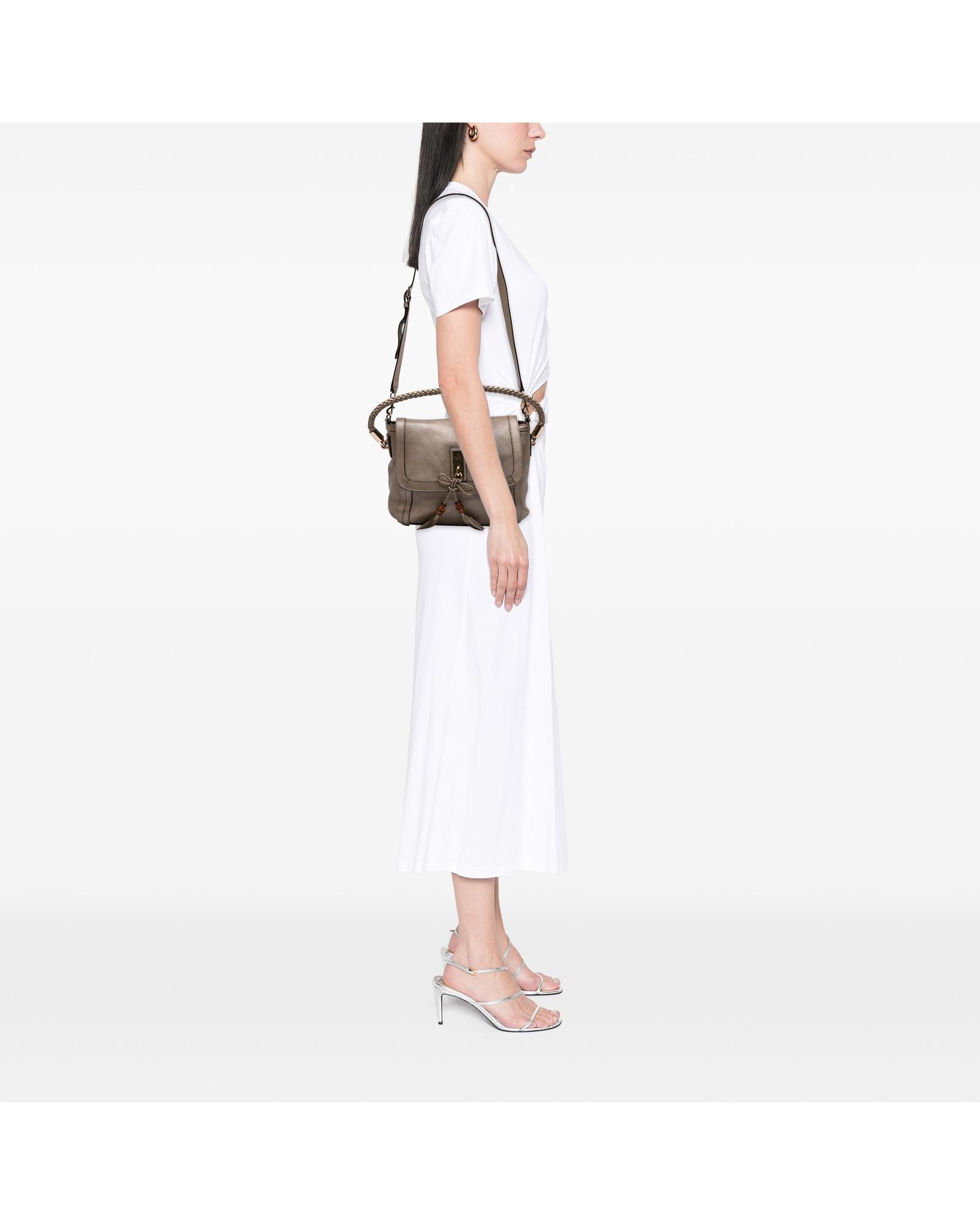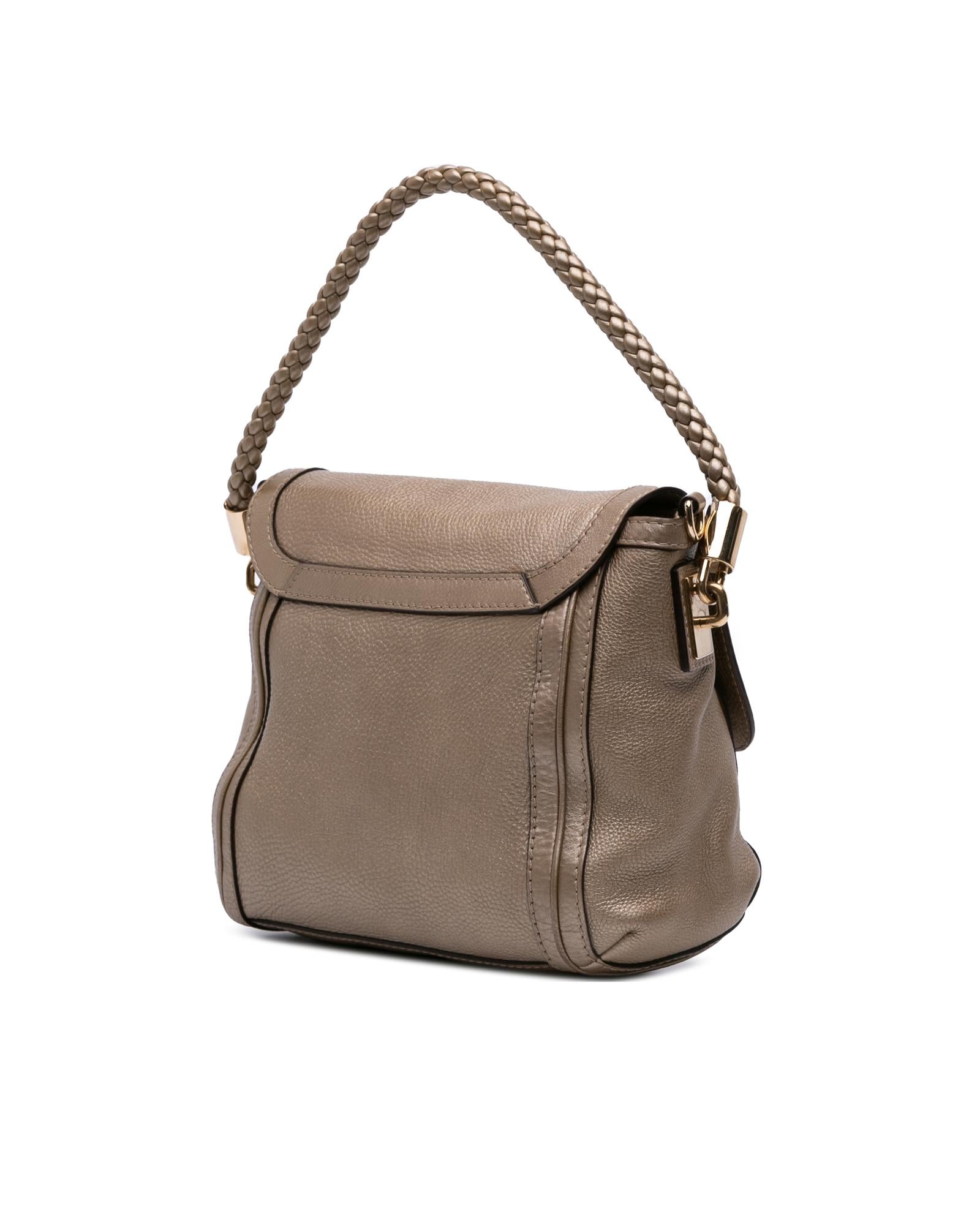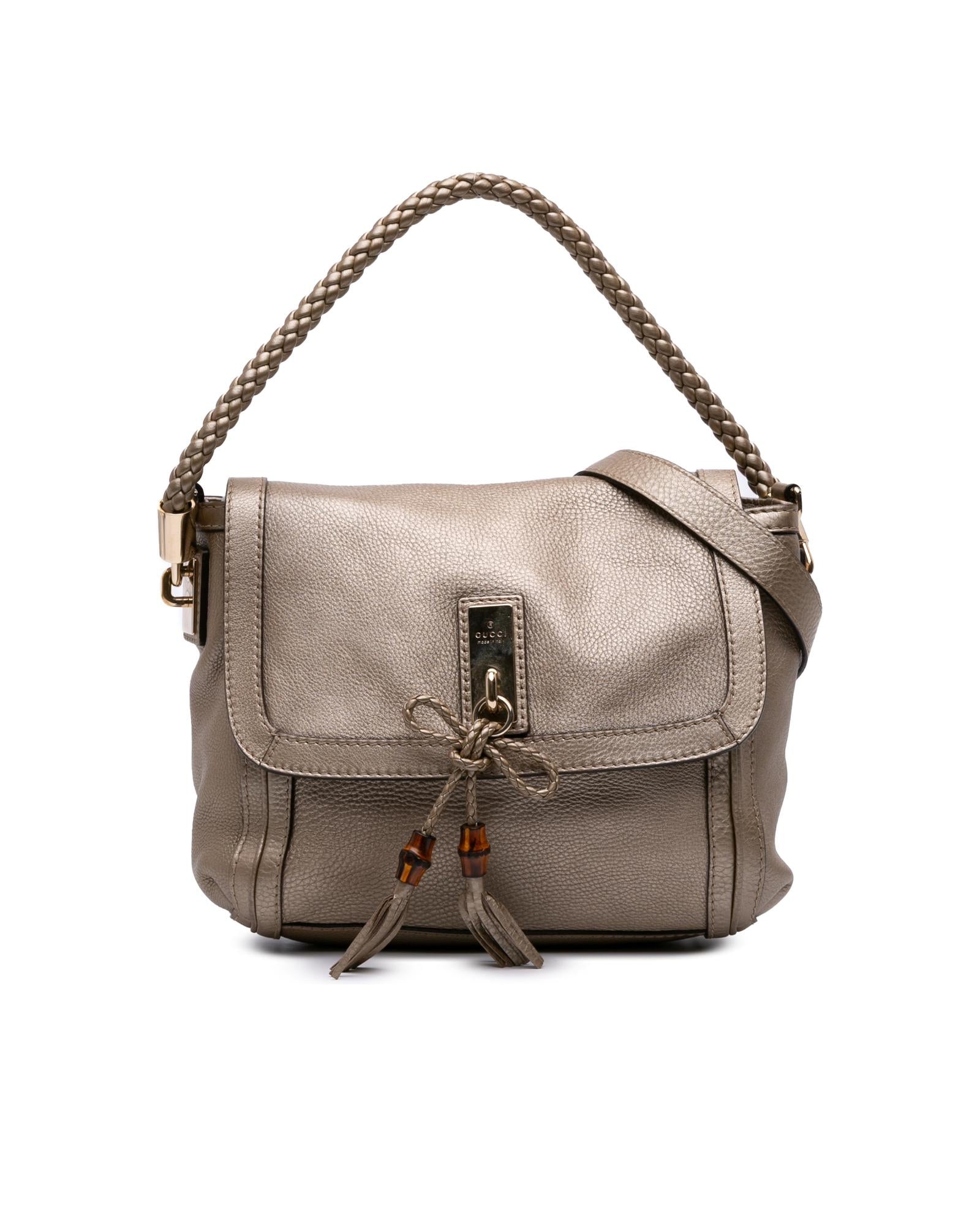 The Bella satchel features a leather body a rolled braided leather handle a detachable leather strap a front flap with magnetic snap closure and interior zip and slip pockets.Brand: Gucci Vintage