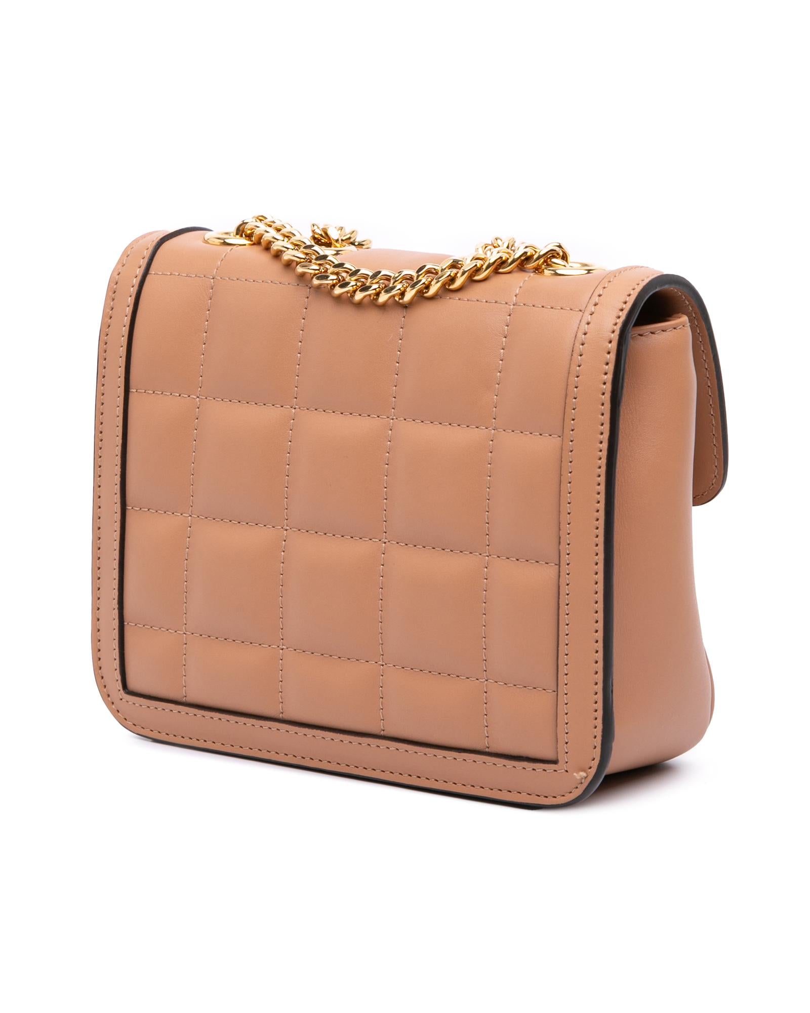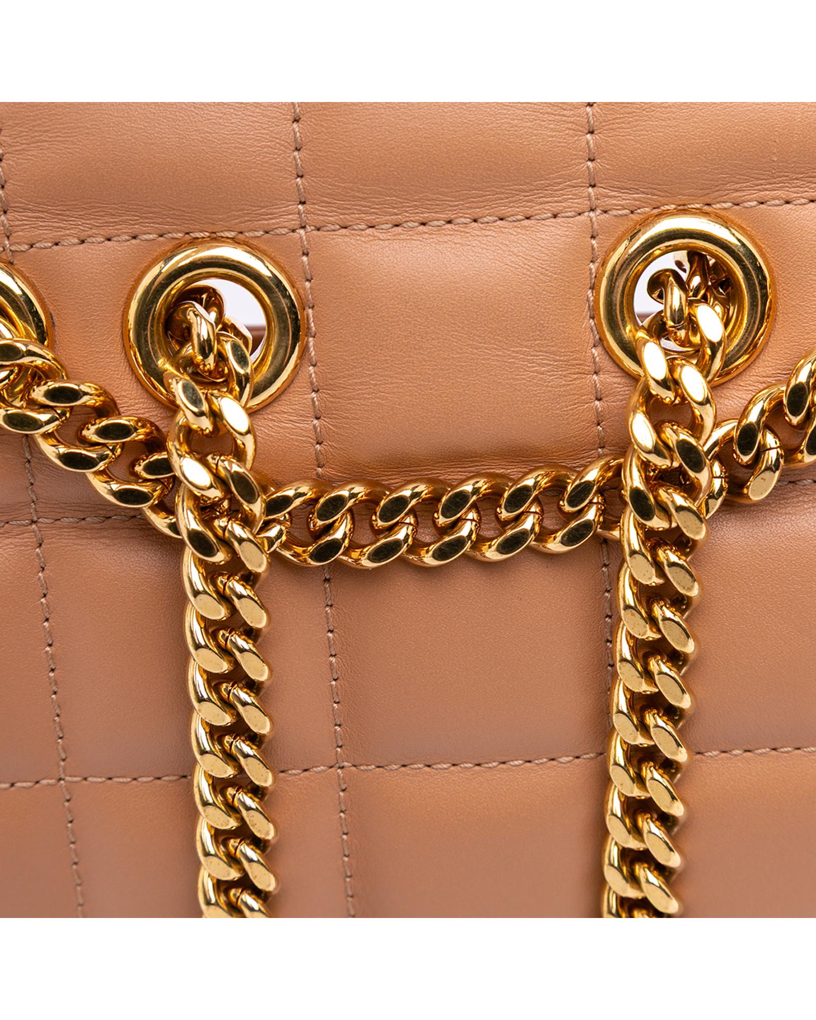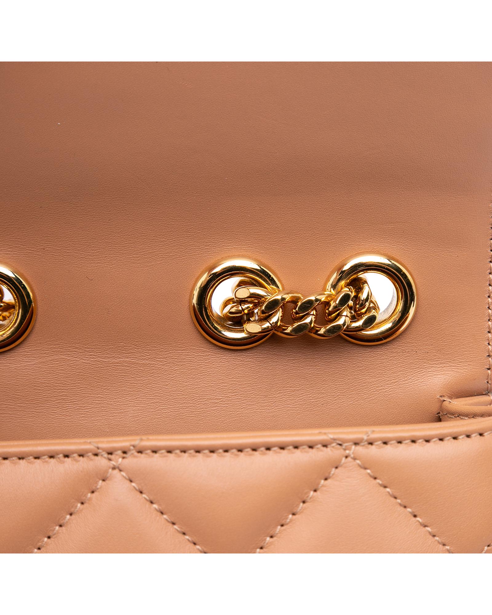 The Mini Deco shoulder bag features a quilted leather body a chain-link strap and a front flap with push lock closure.