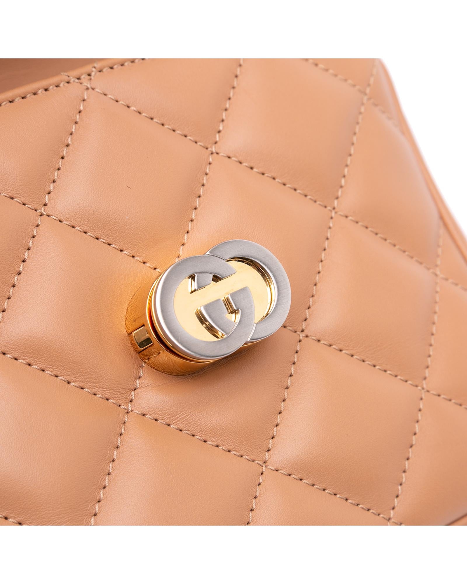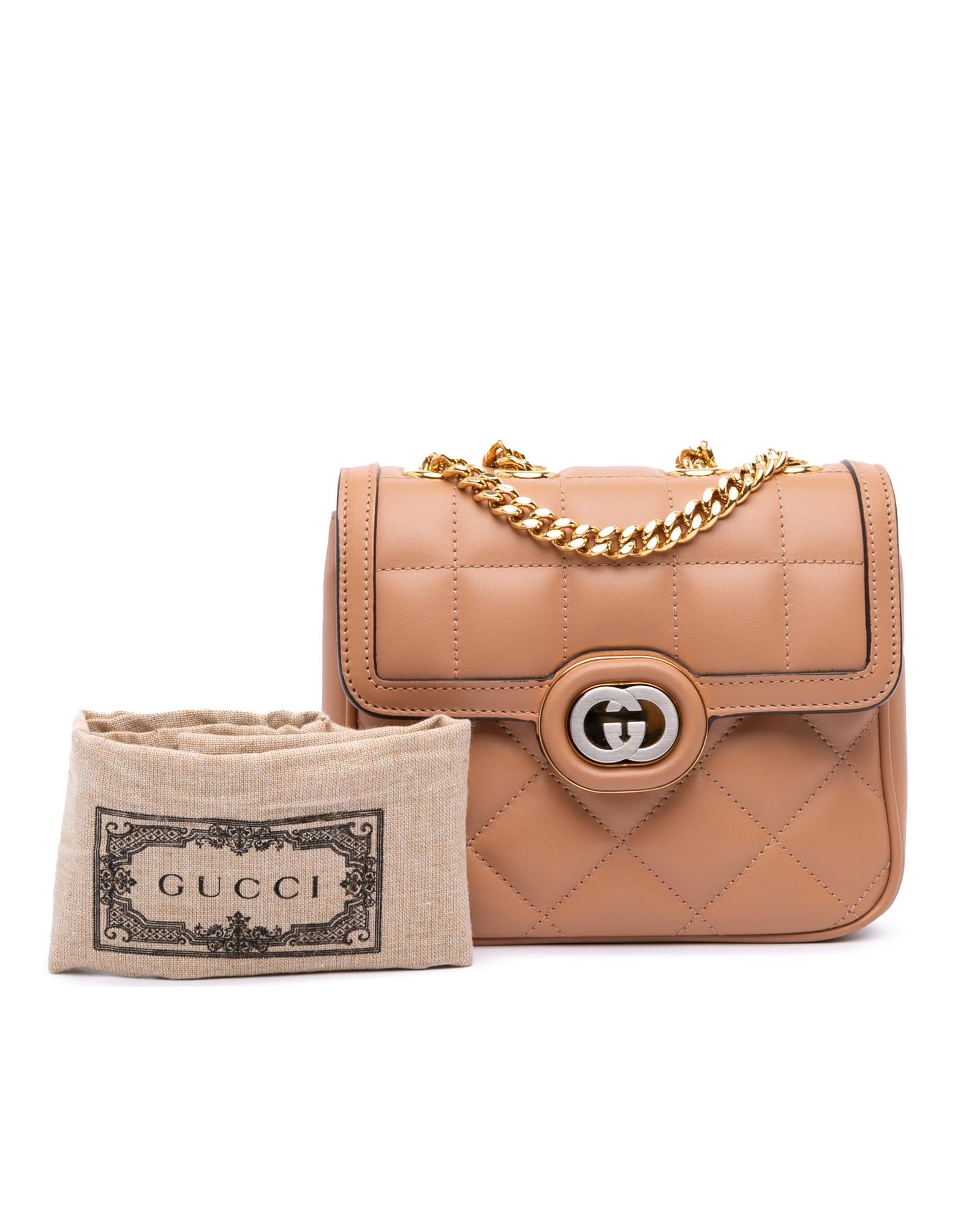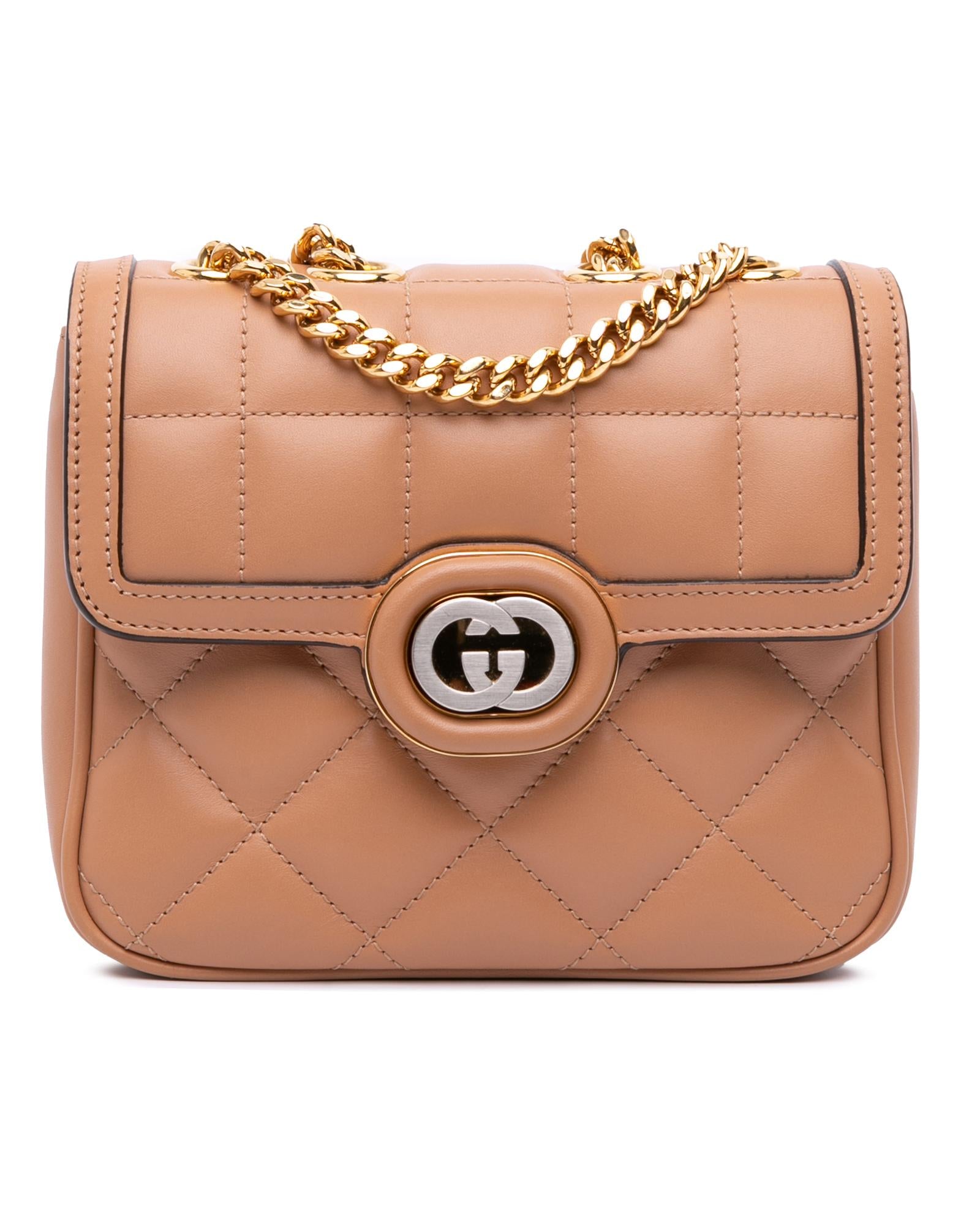 The Mini Deco shoulder bag features a quilted leather body a chain-link strap and a front flap with push lock closure.