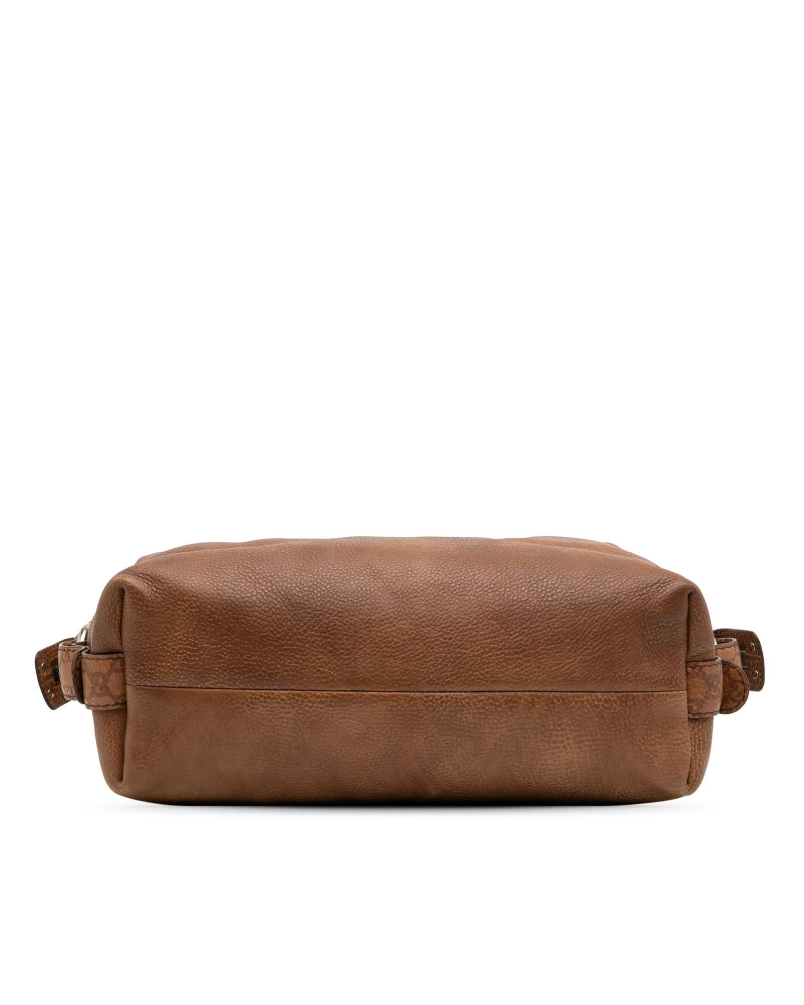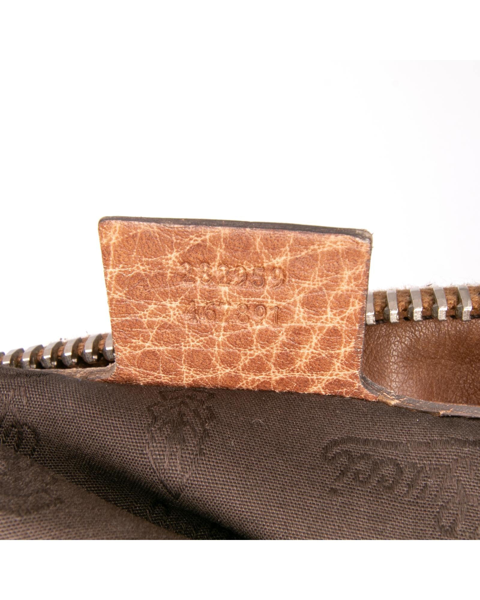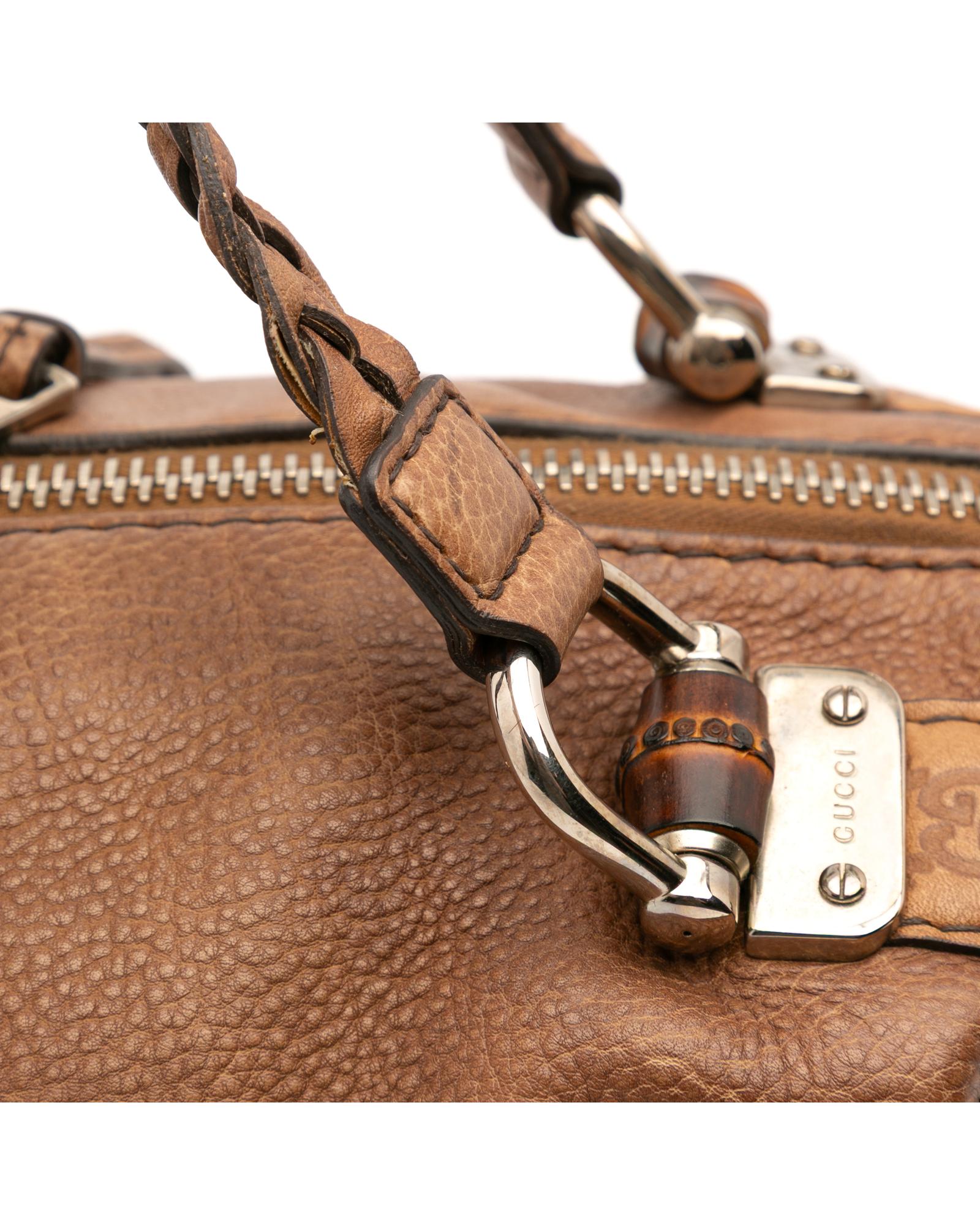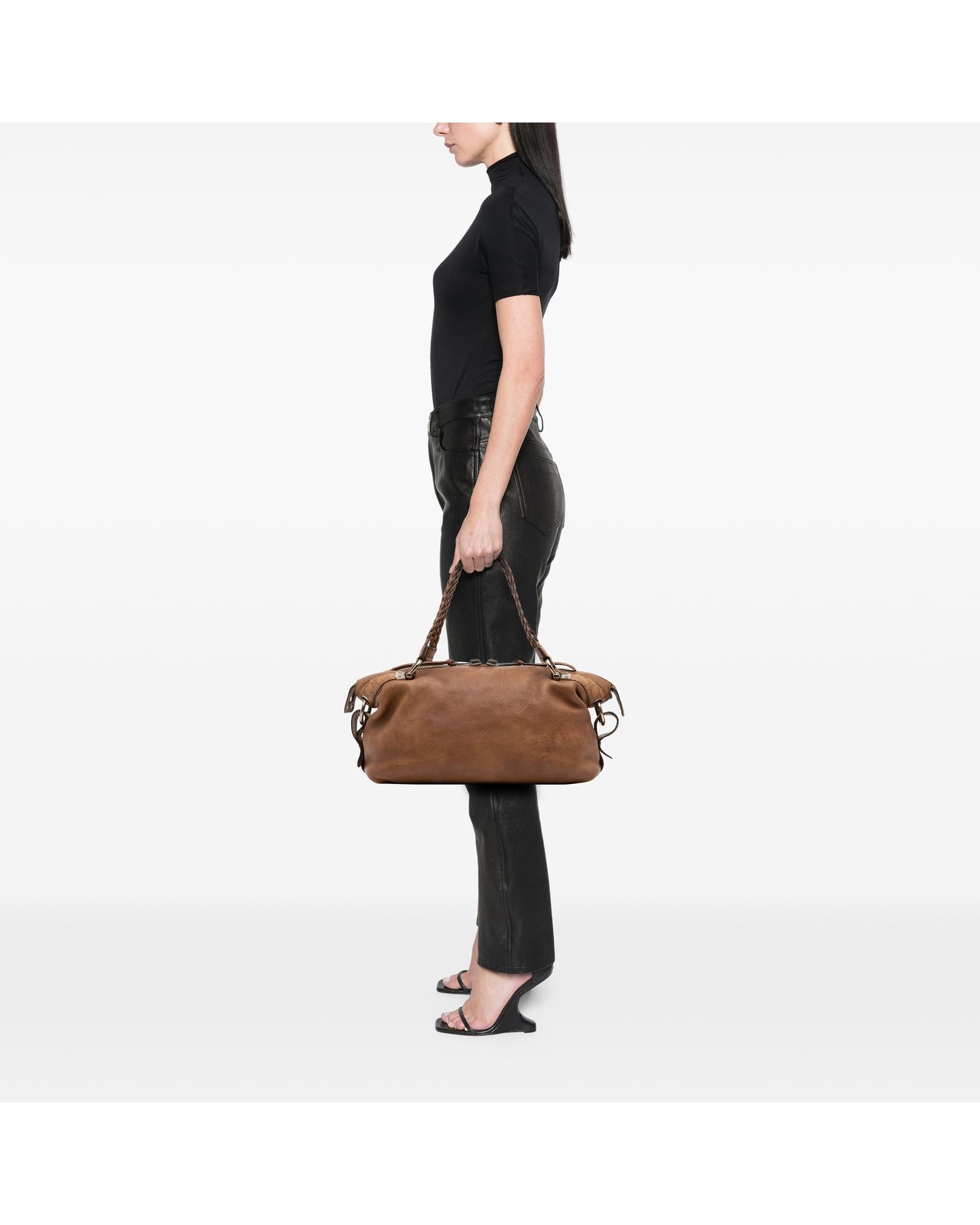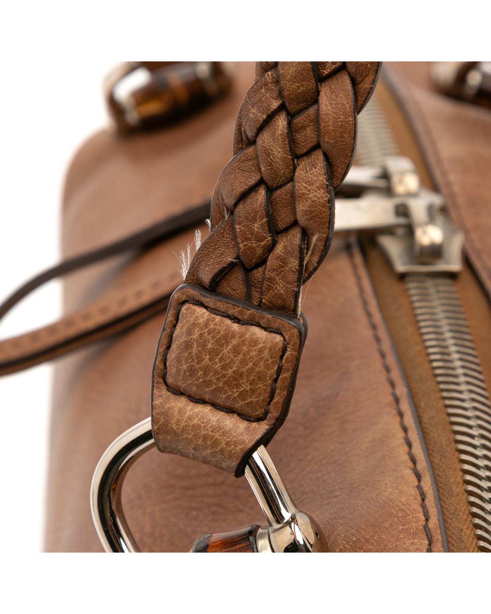 This tote features a leather body braided leather straps a top zip closure and interior zip and slip pockets.Brand: Gucci Vintage