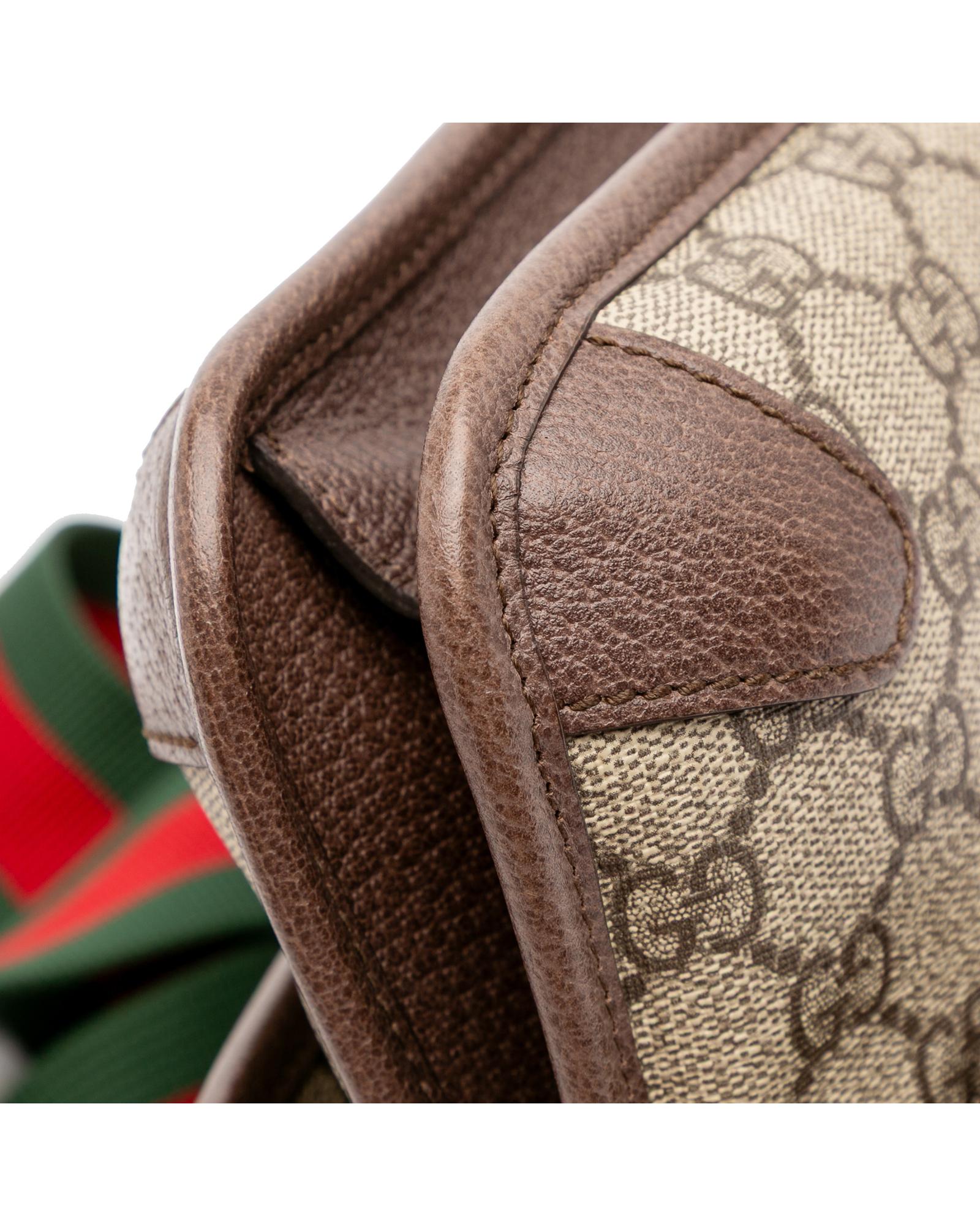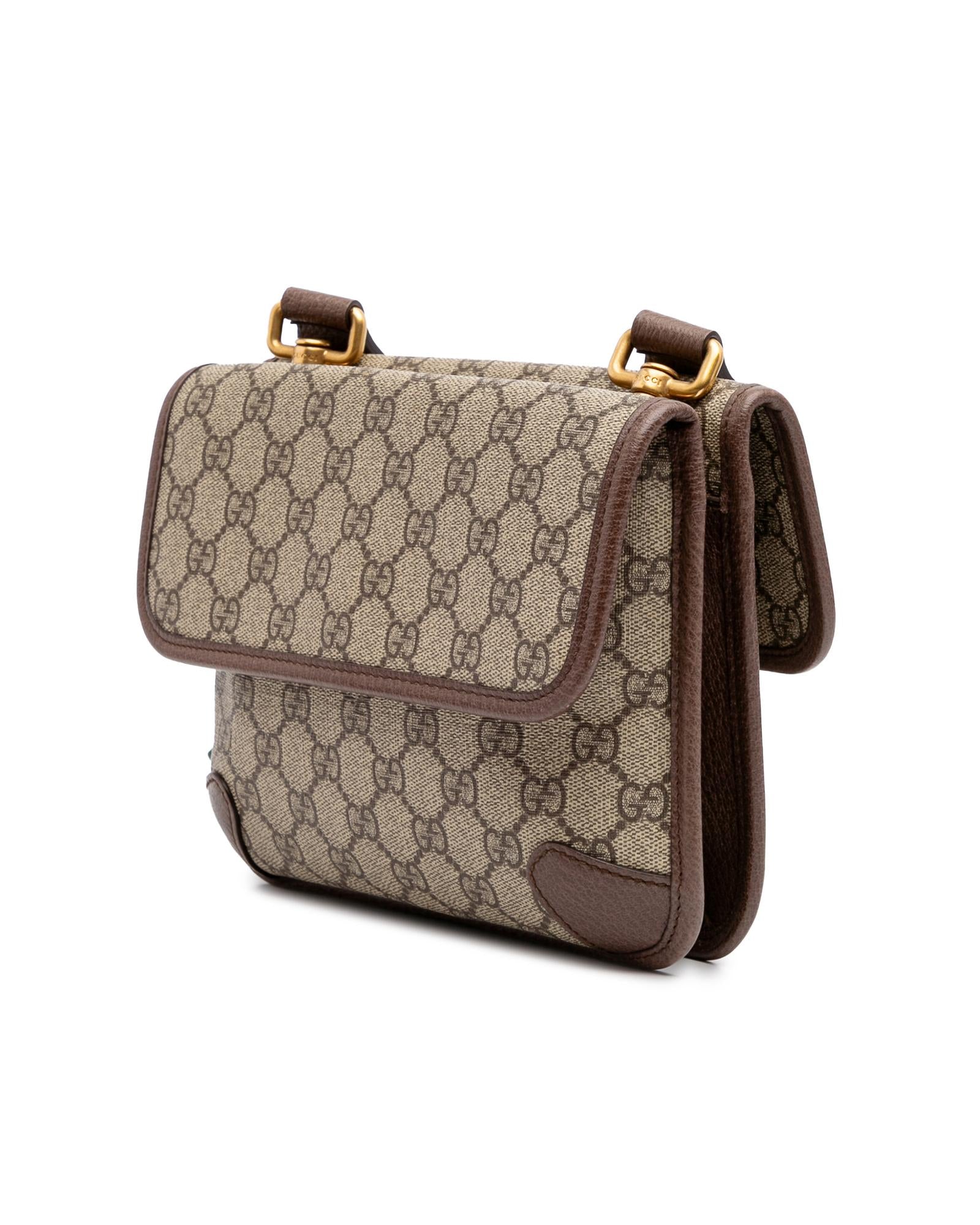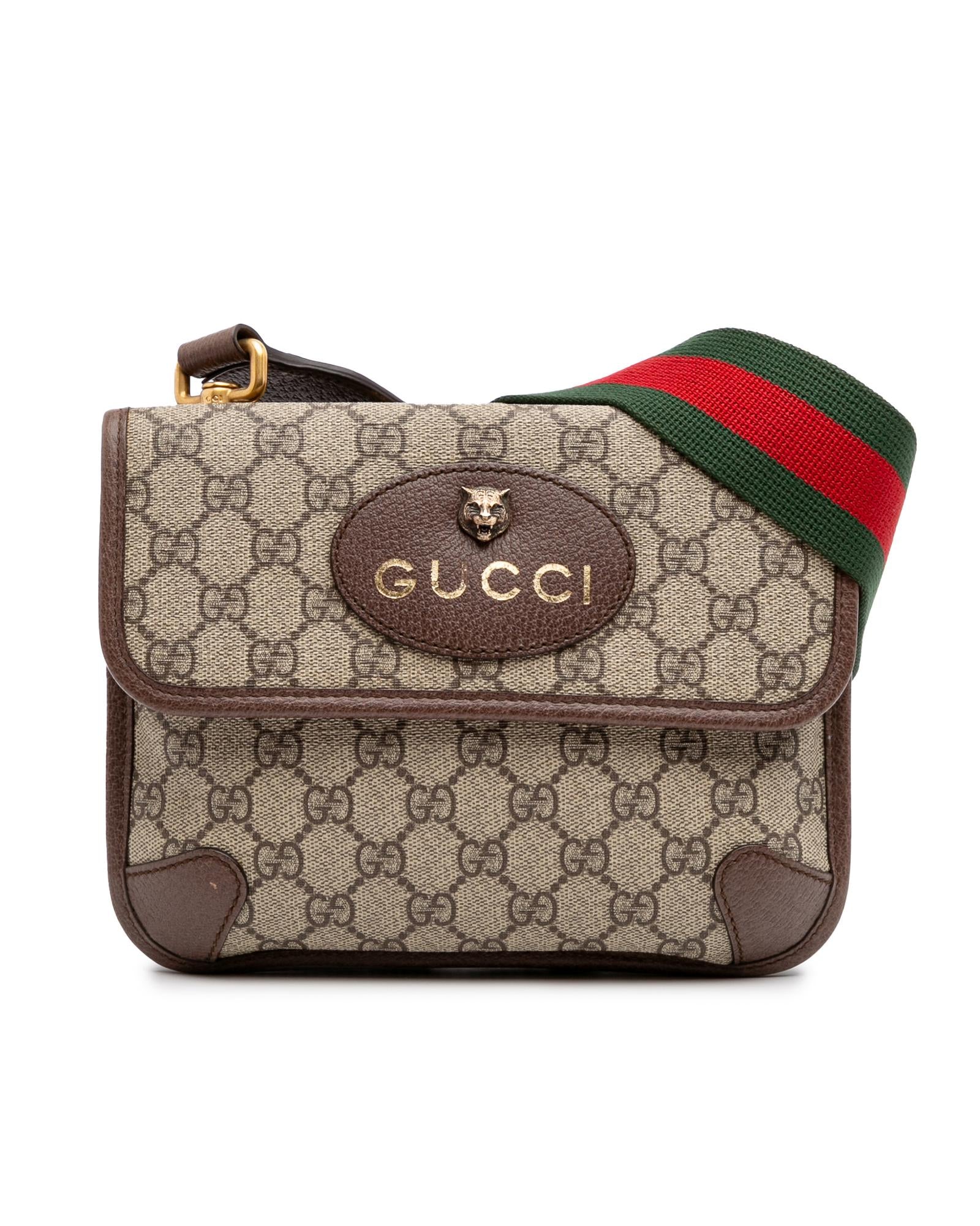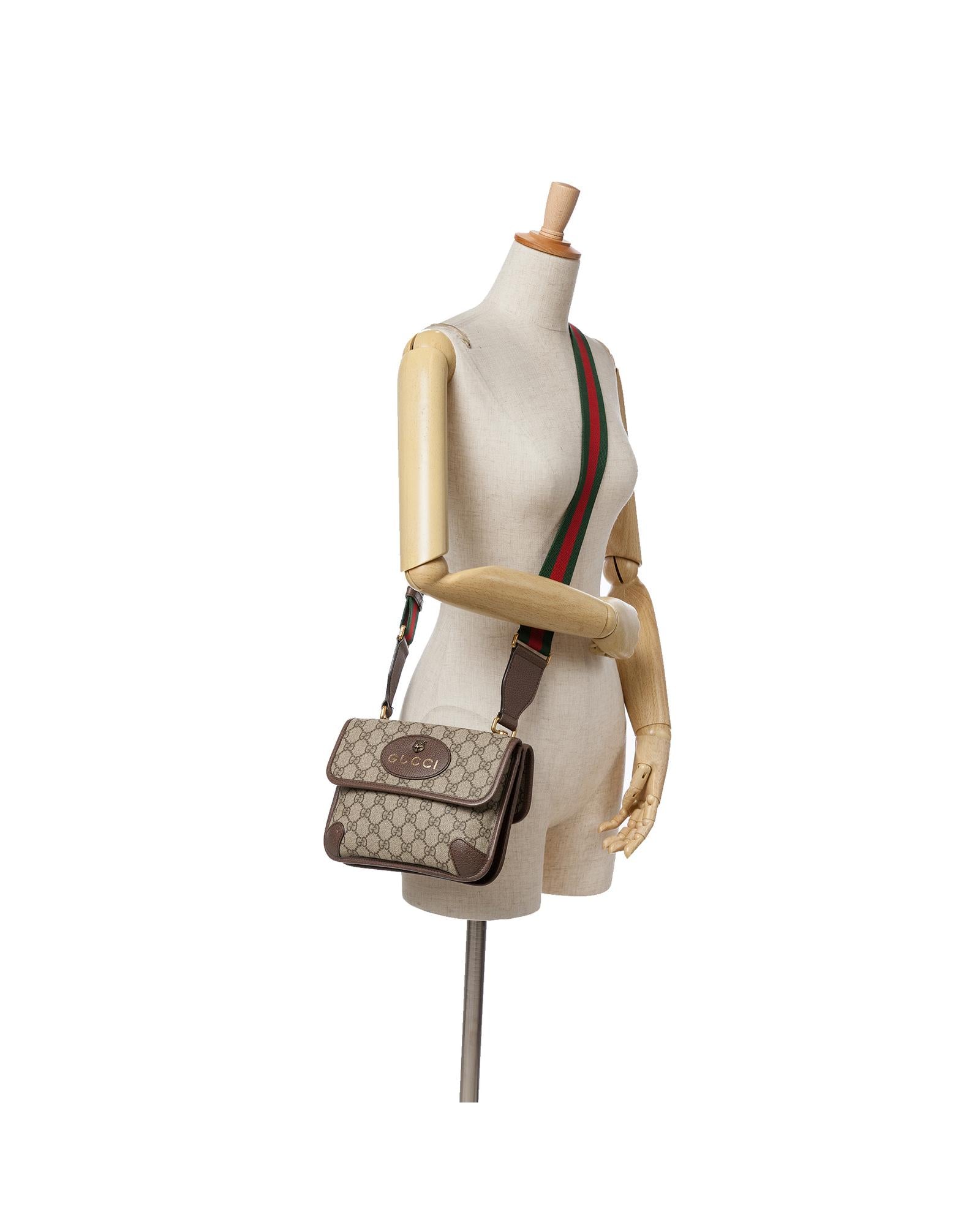 The Neo Vintage features a coated canvas body with leather trim an adjustable flat canvas strap front and back flap with magnetic snap closures.Brand: Gucci Vintage