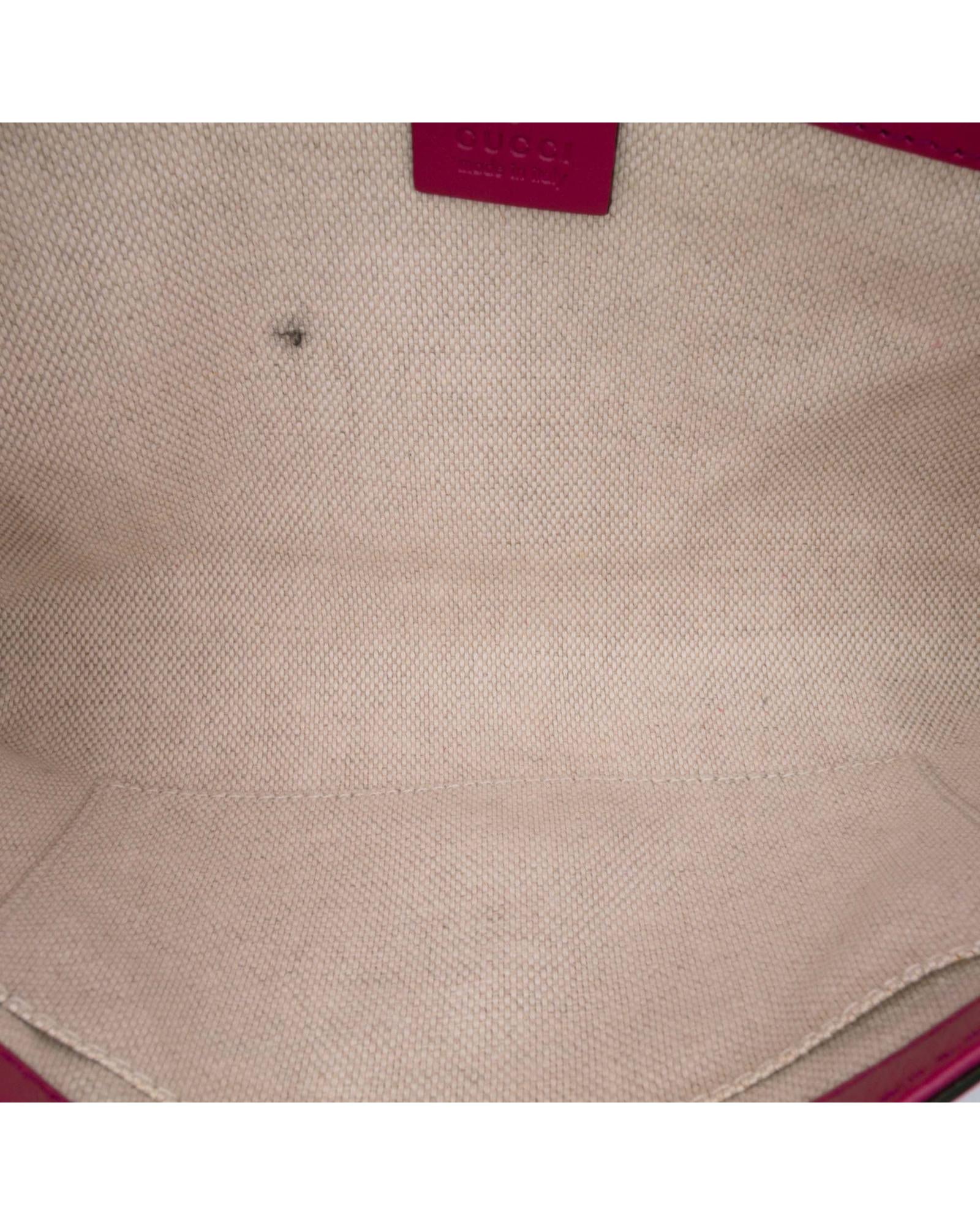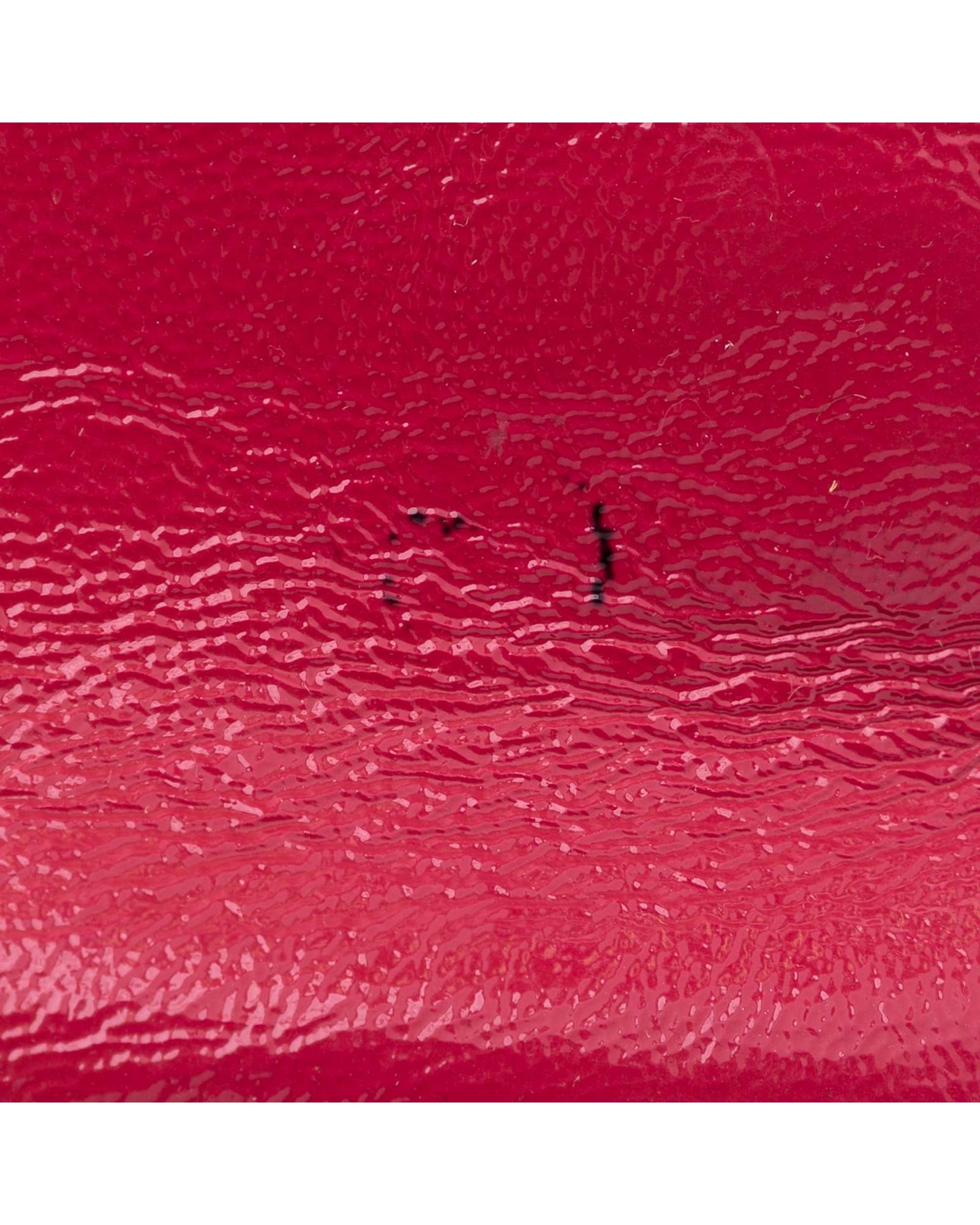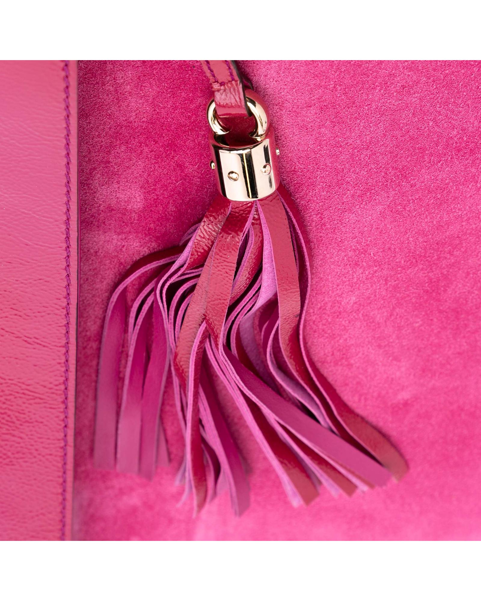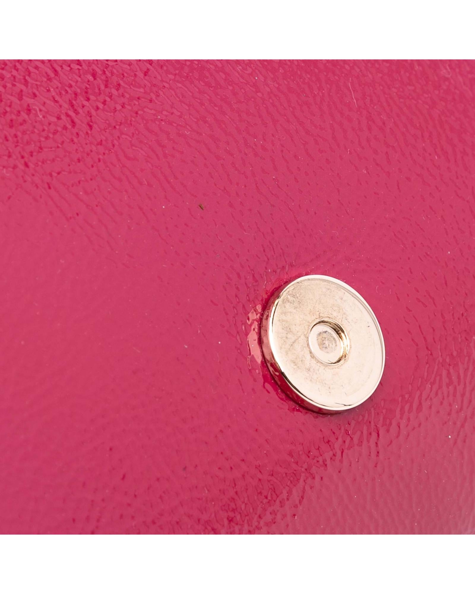 This clutch bag features a soft patent leather body a tassel detail a front flap with magnetic snap closure and interior zip and slip pockets.Brand: Gucci Vintage