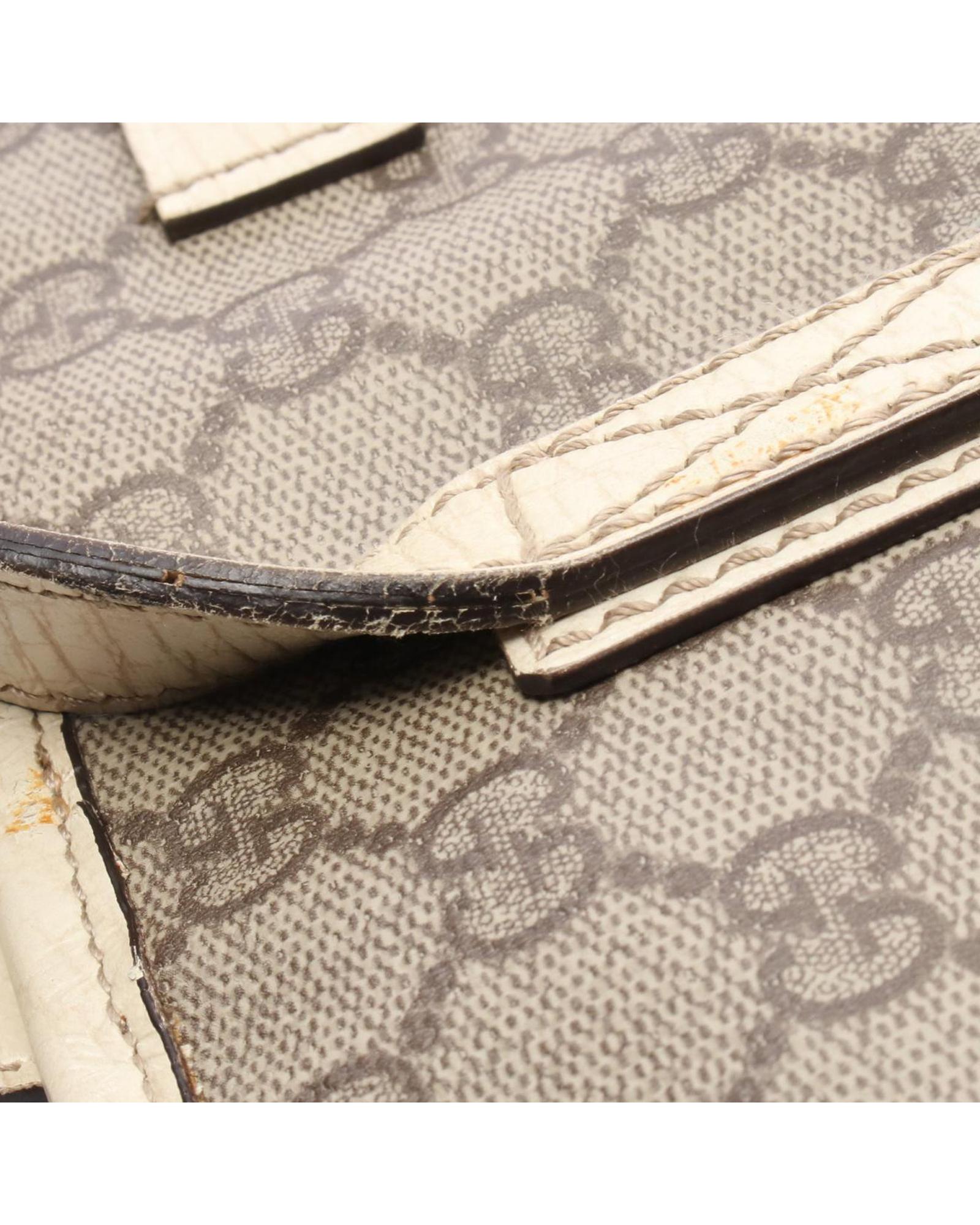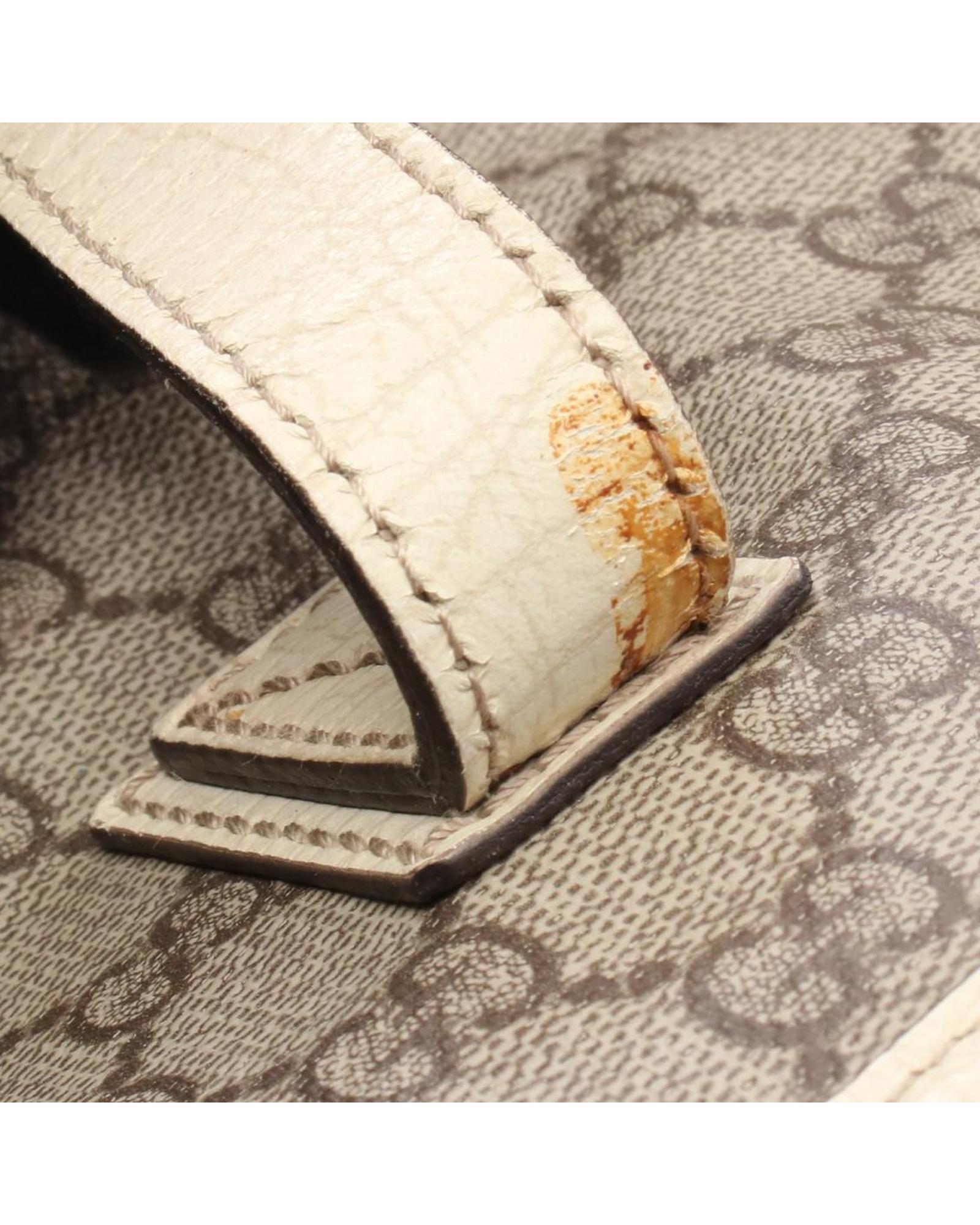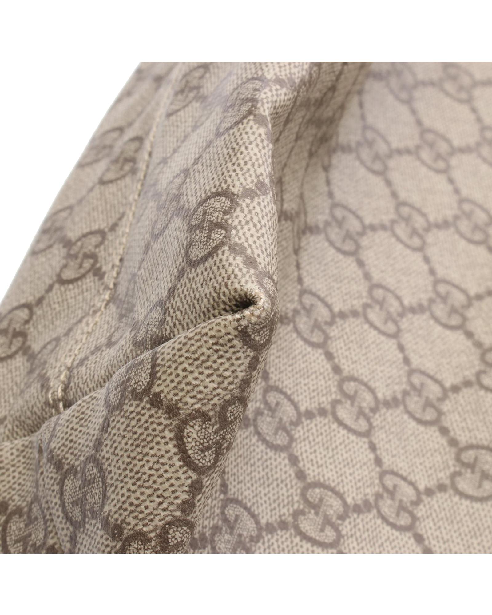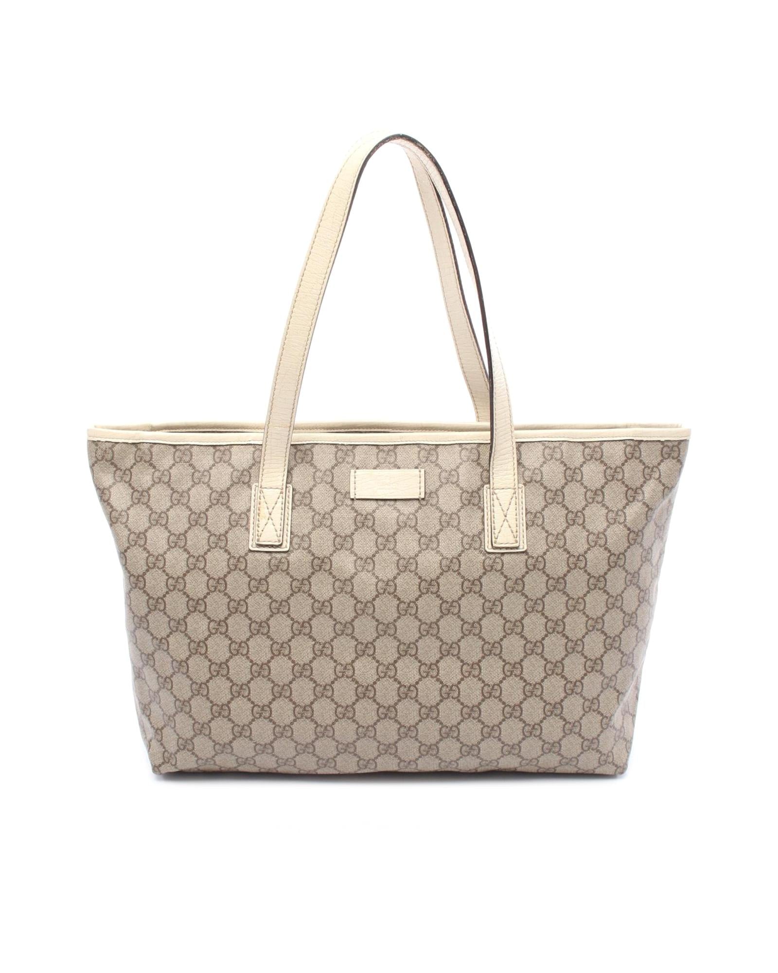 This tote bag features a coated canvas body with leather trim flat leather straps a top zip closure and interior zip and slip pockets.Brand: Gucci Vintage