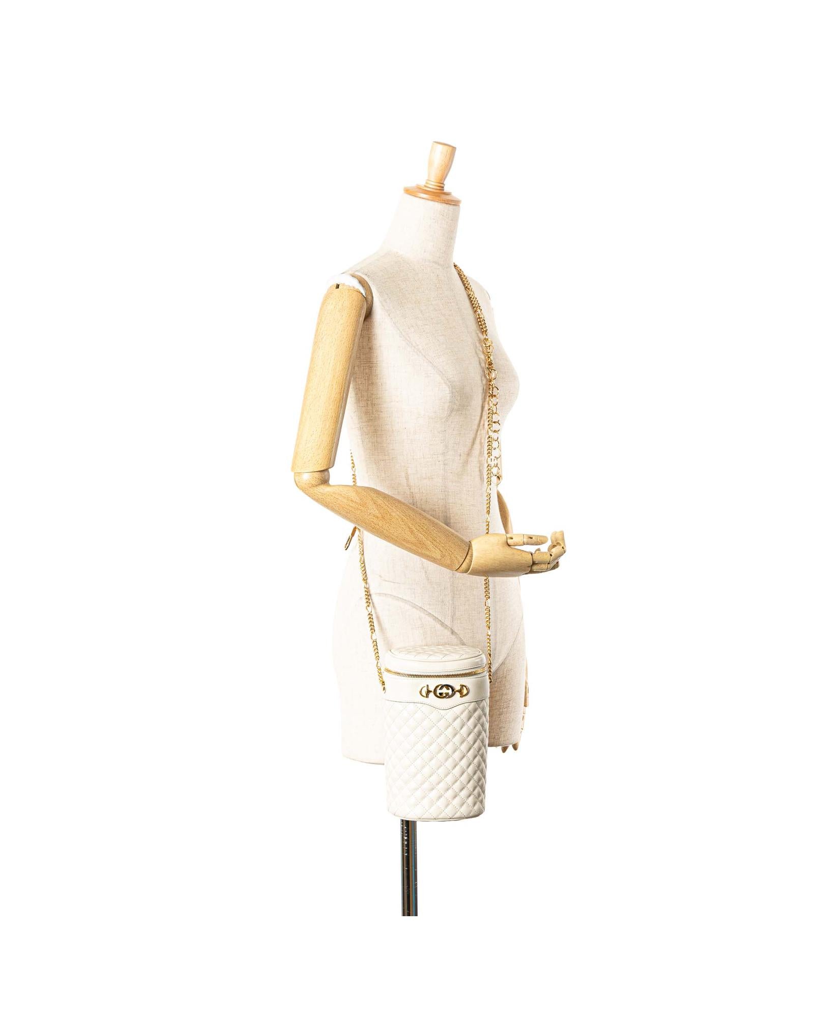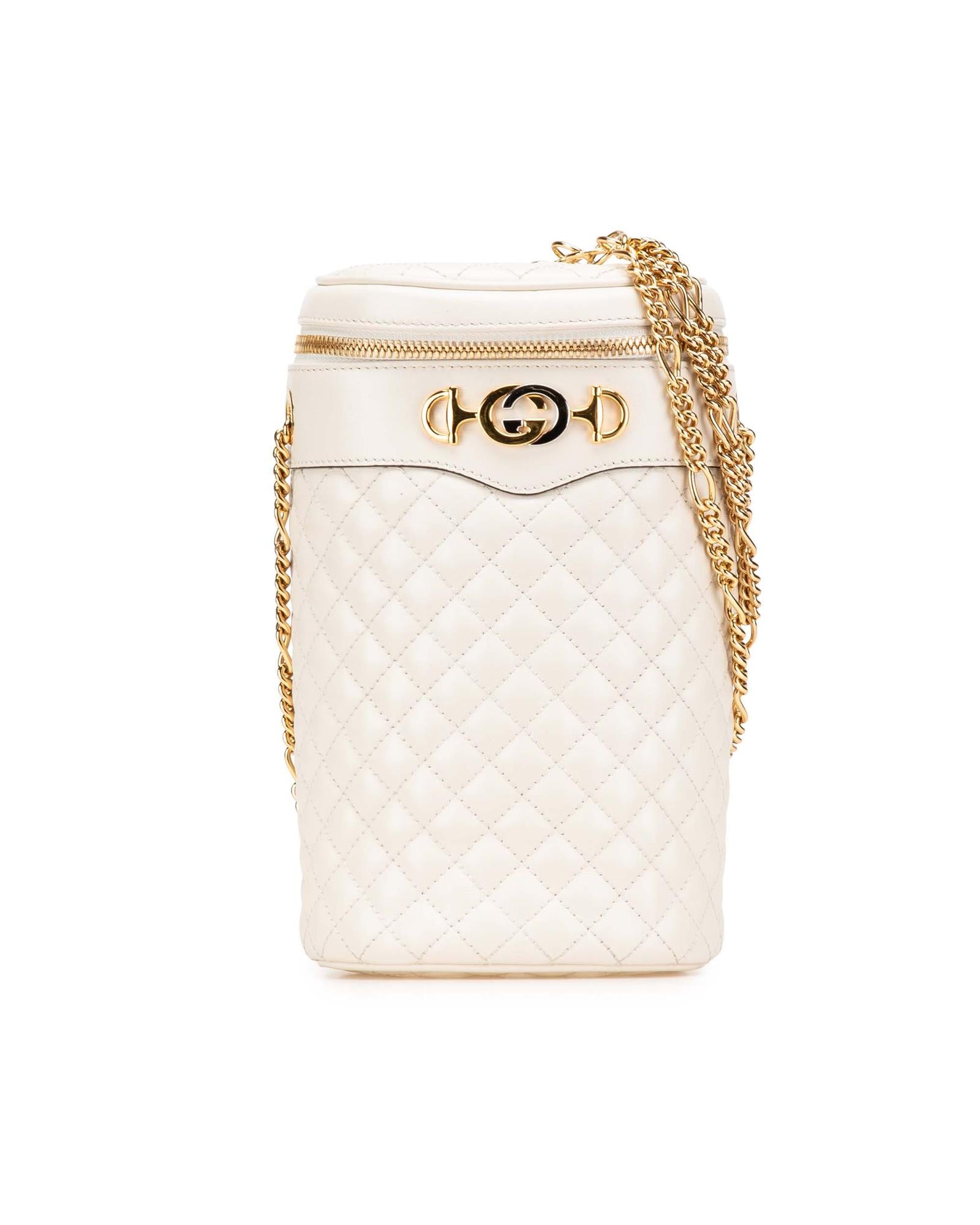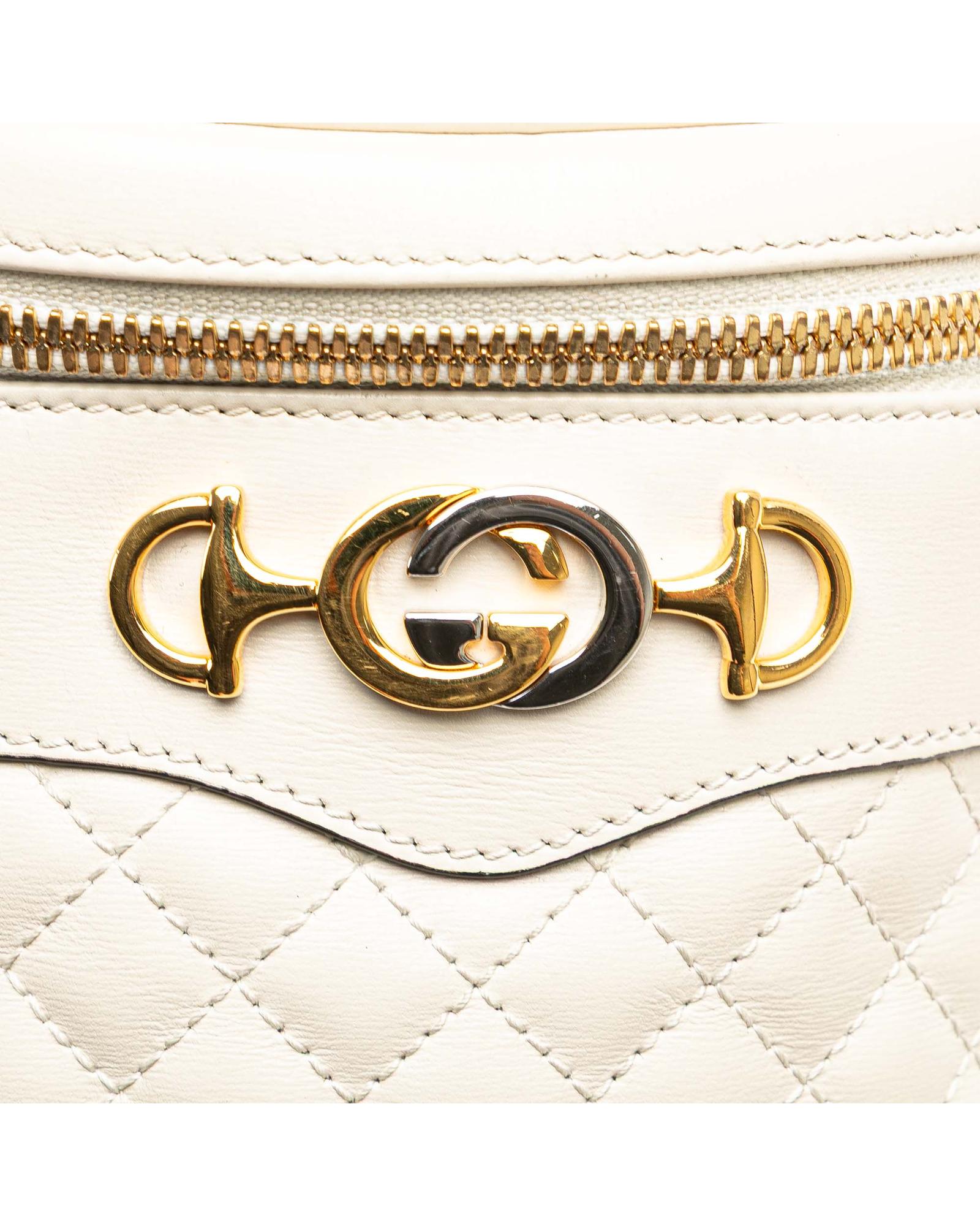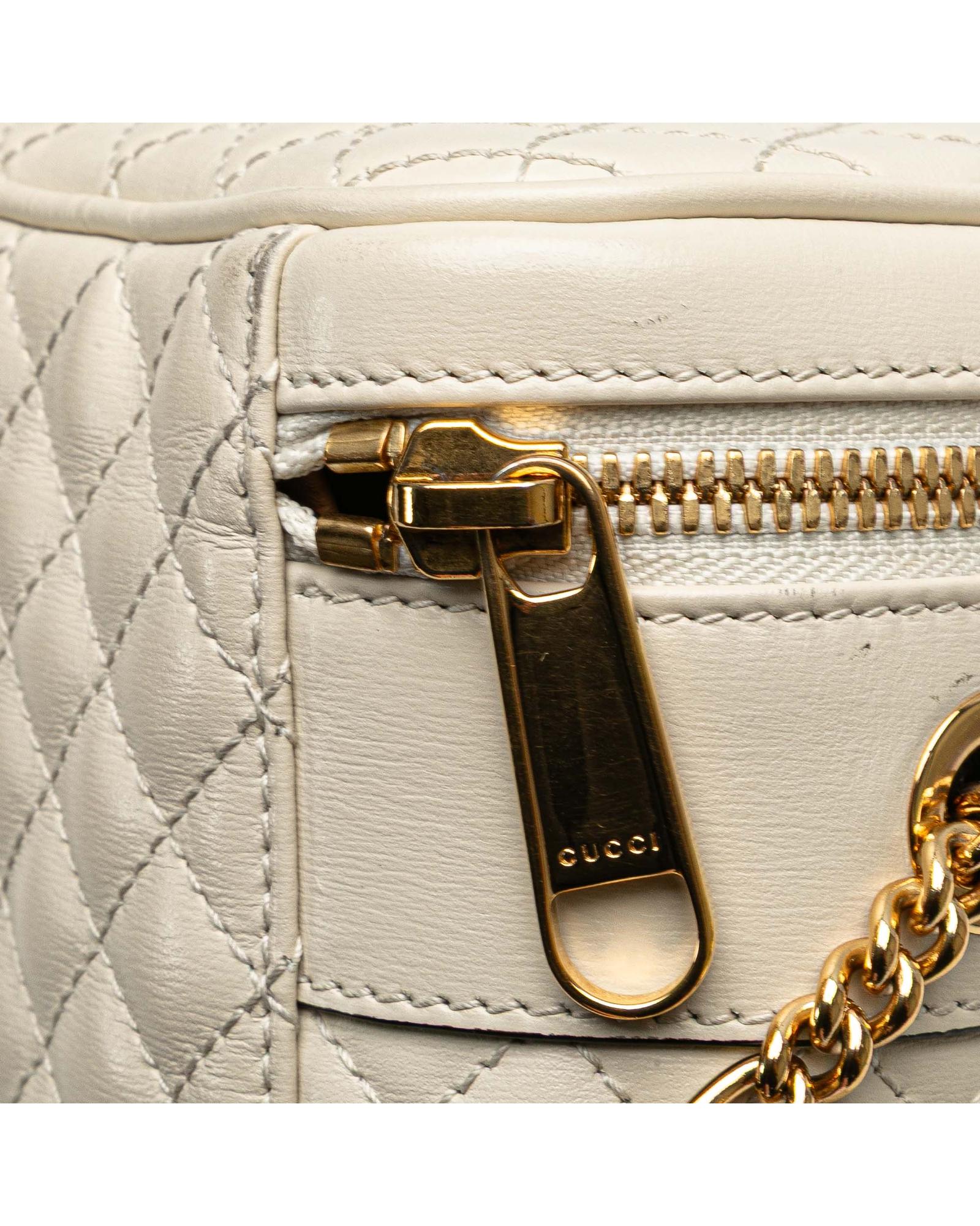 The Zumi features a quilted leather body a detachable chain link strap and top zip-around closure.Brand: Gucci Vintage