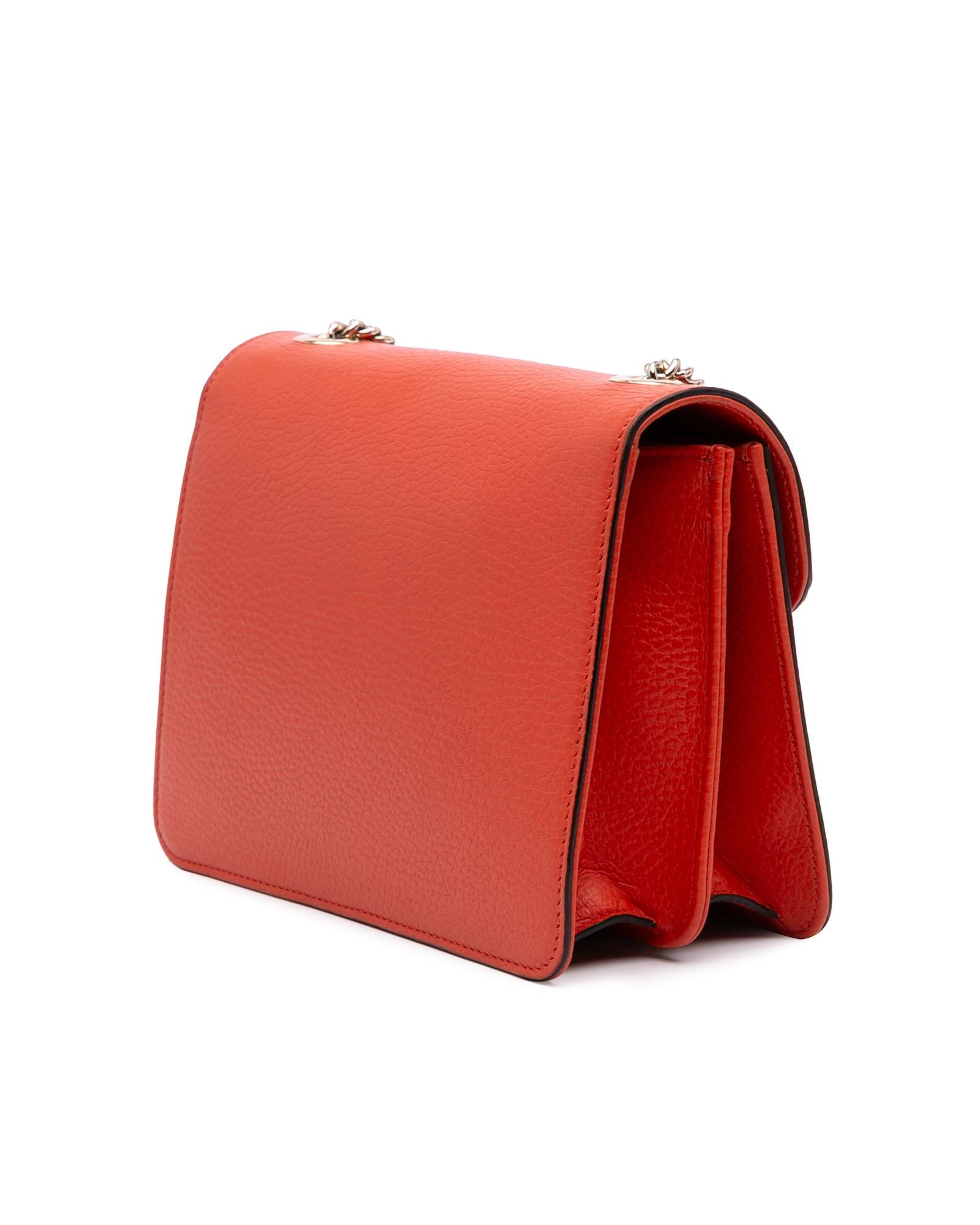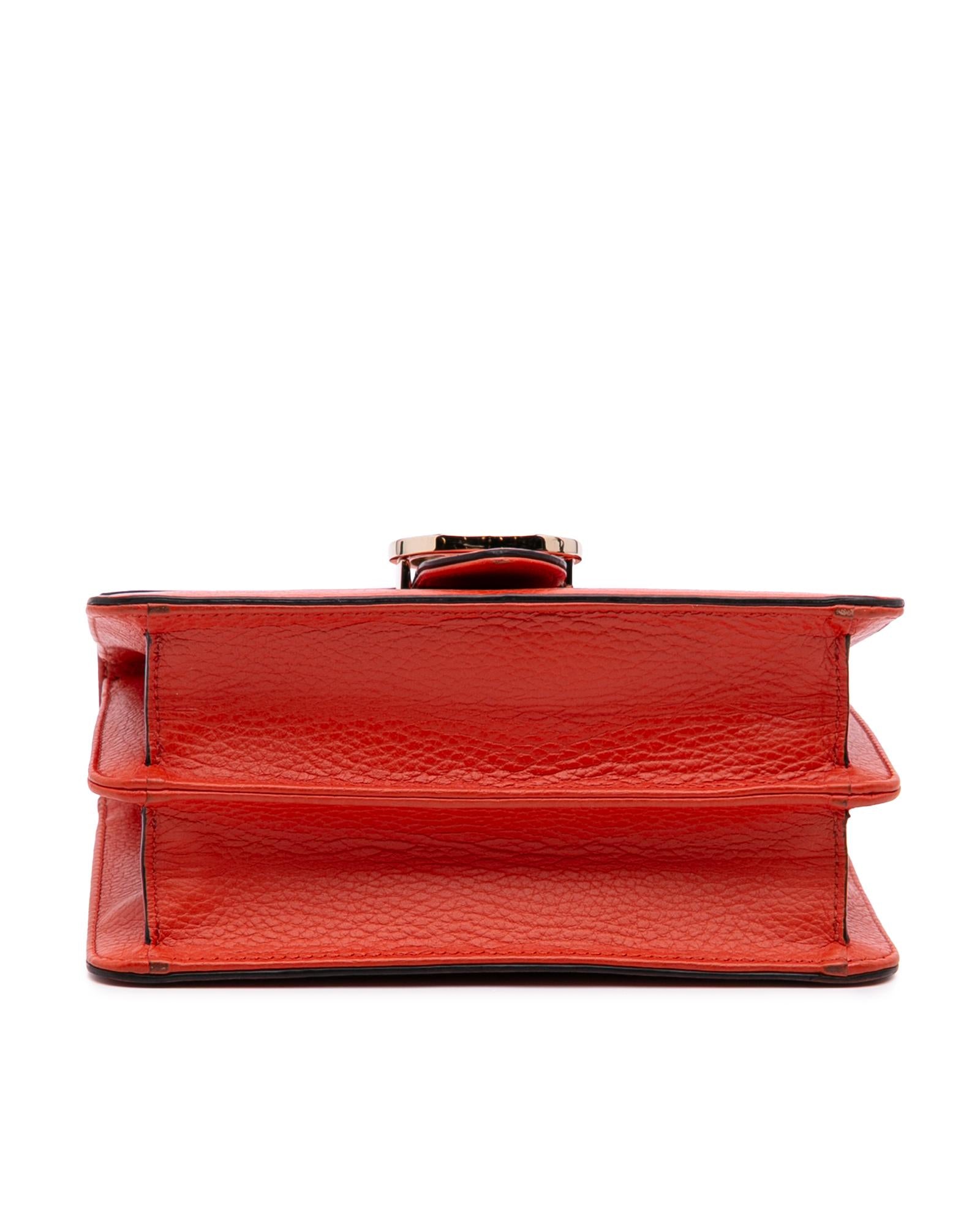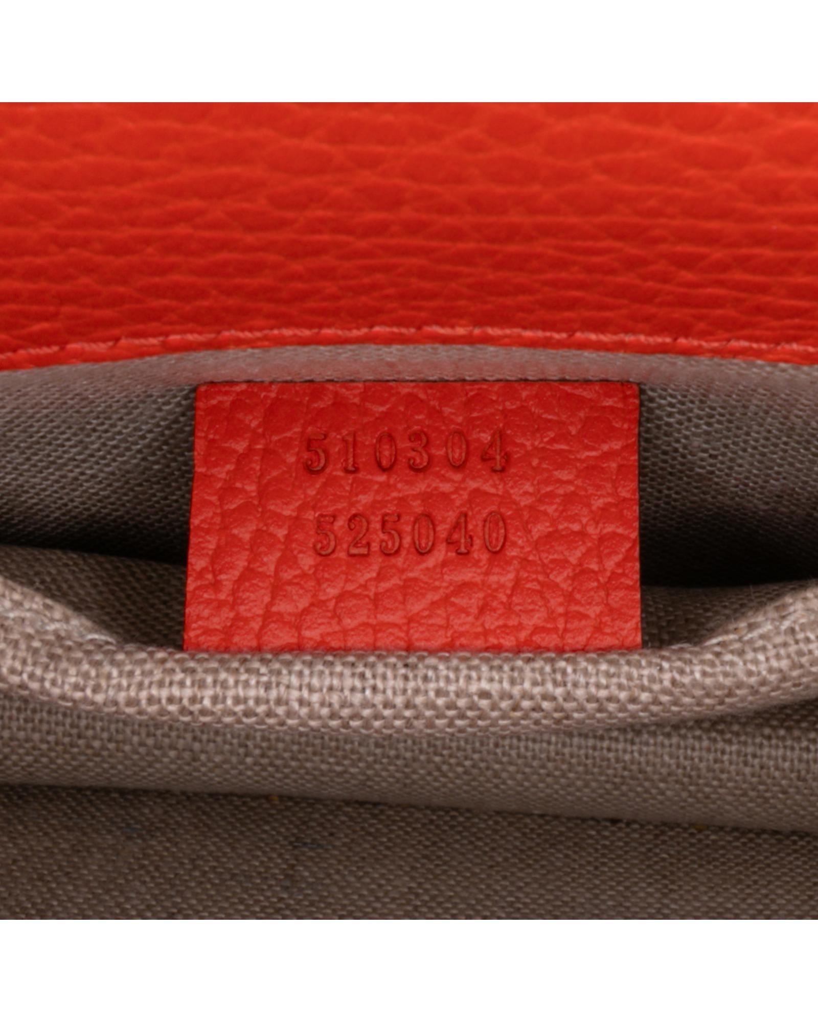 This crossbody bag features a leather body a chain-link shoulder strap with leather shoulder guard a front flap with silver-tone interlocking GG flip-lock closure interior compartments and an interior slip pocket.