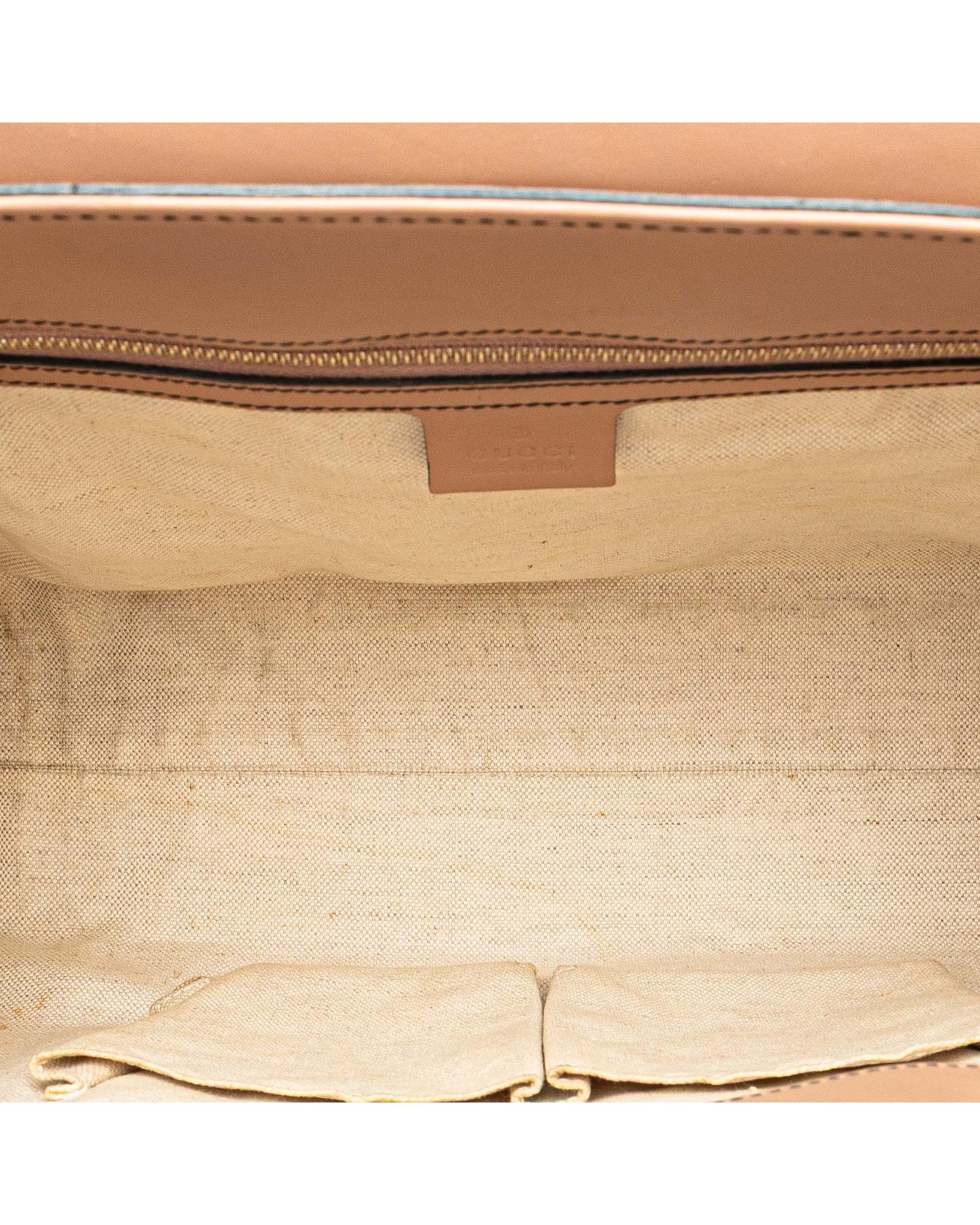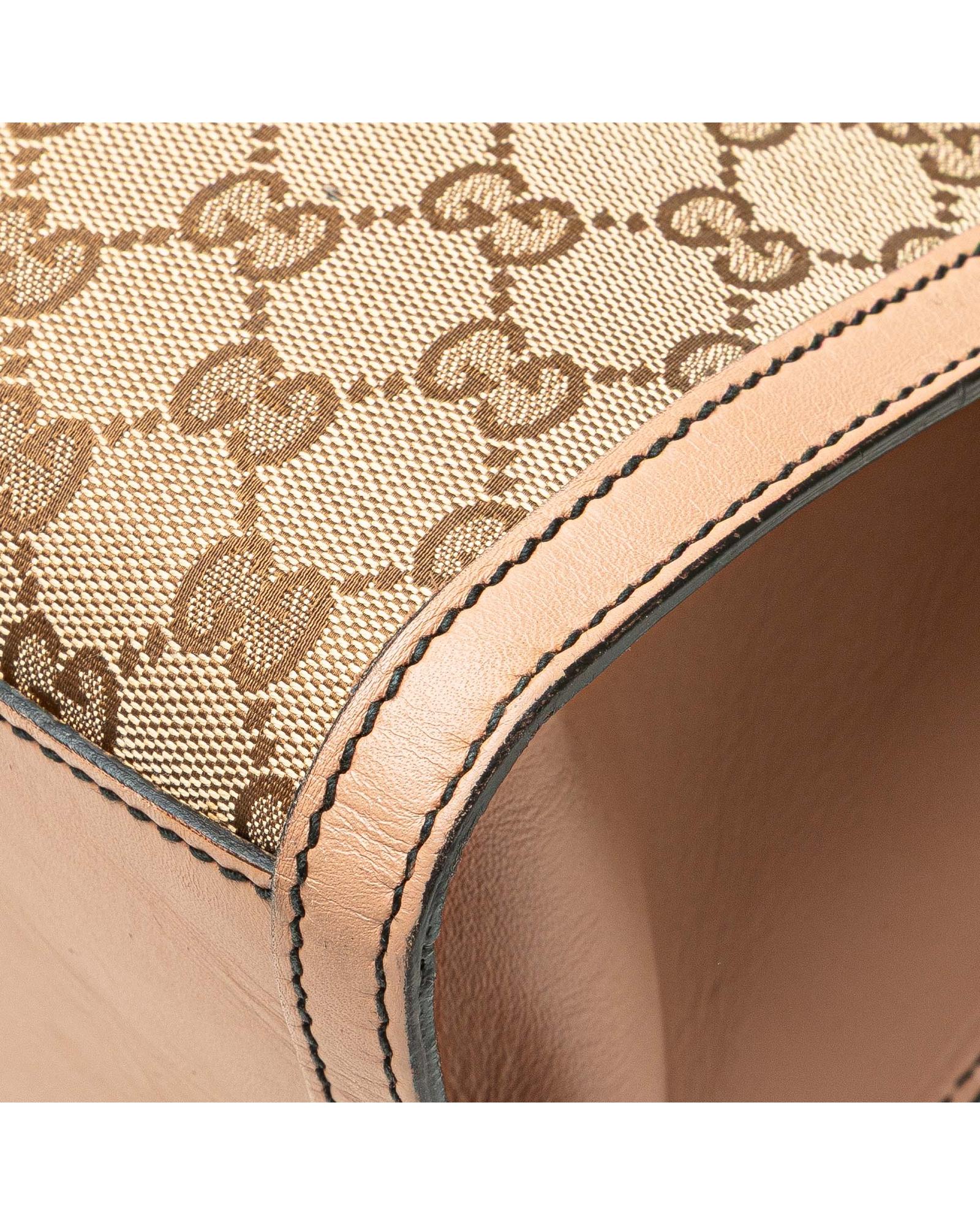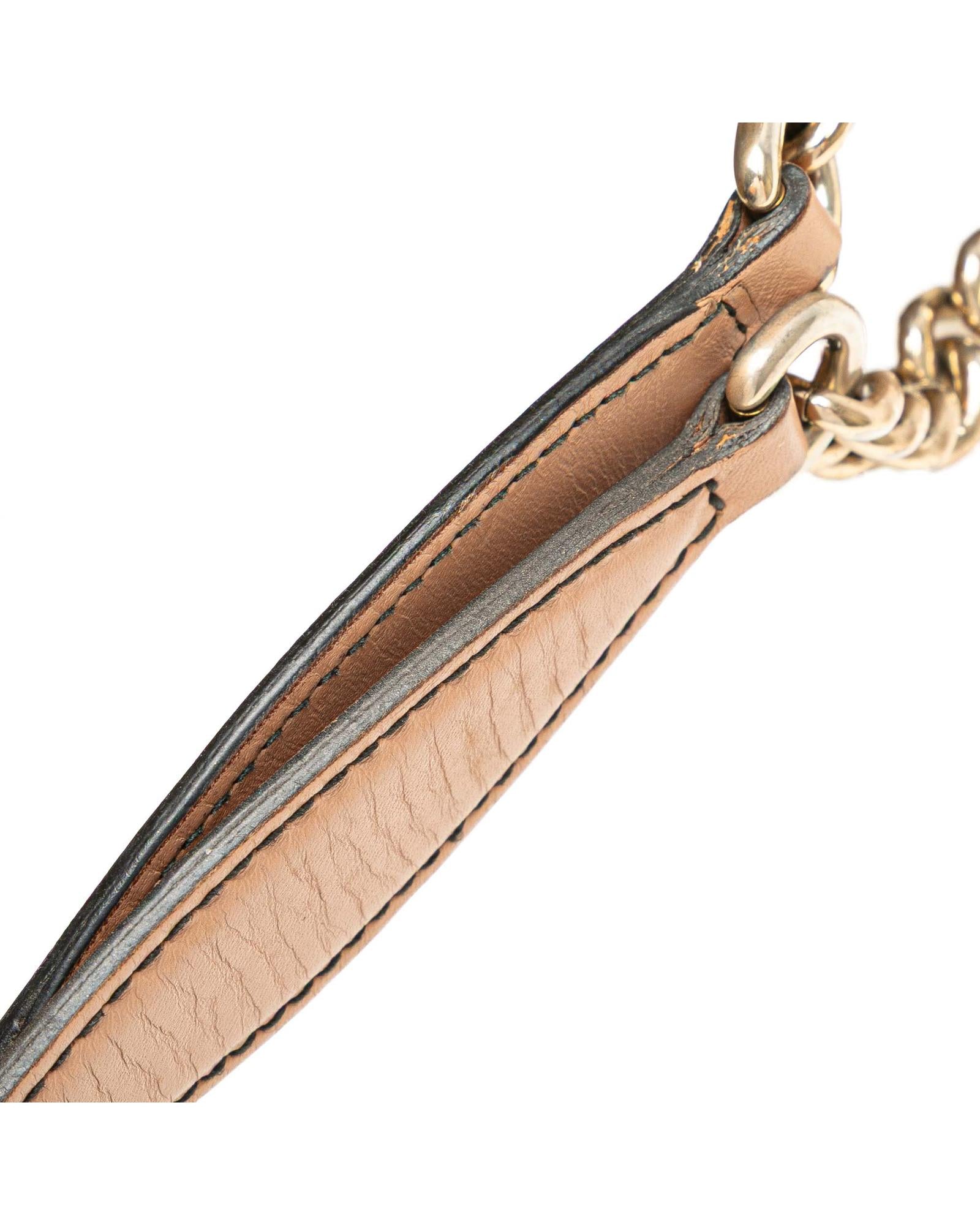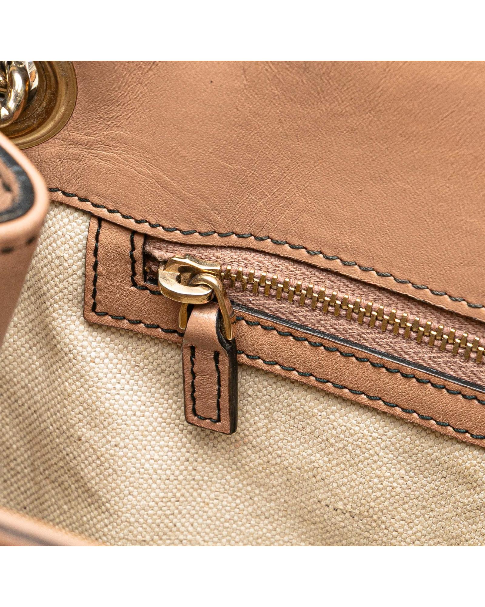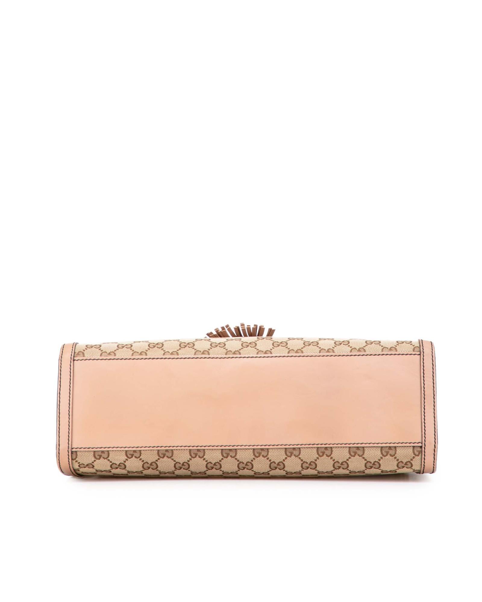 The Emily shoulder bag features a canvas body with leather trim chain straps with flat leather shoulder guards a front flap with slip through closure and interior zip and open pockets.Brand: Gucci Vintage