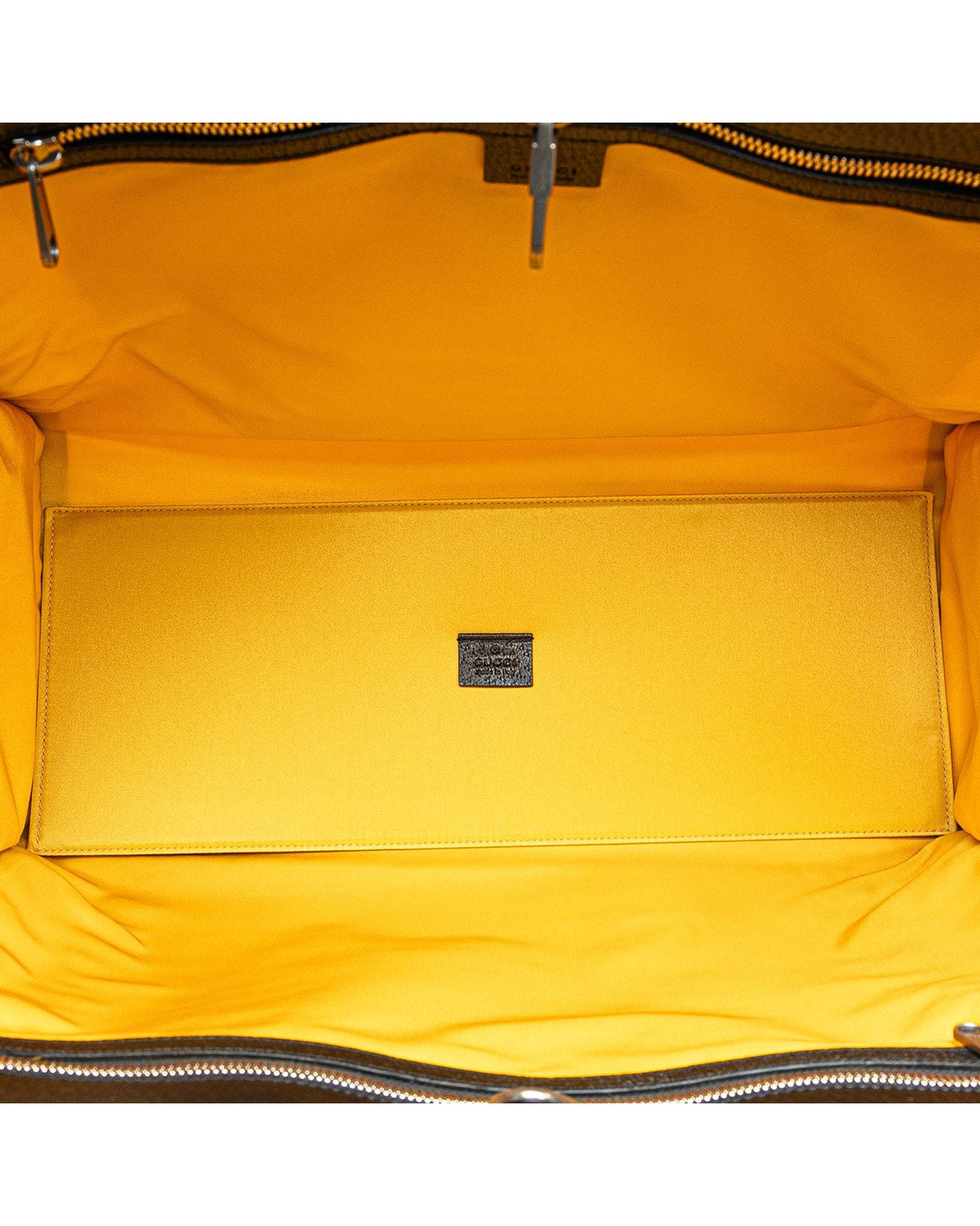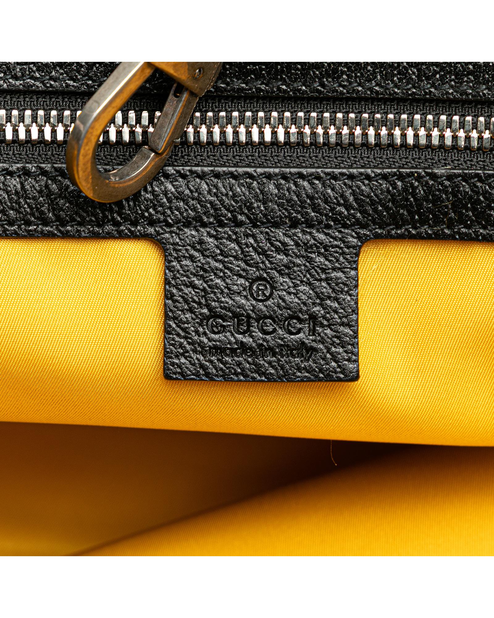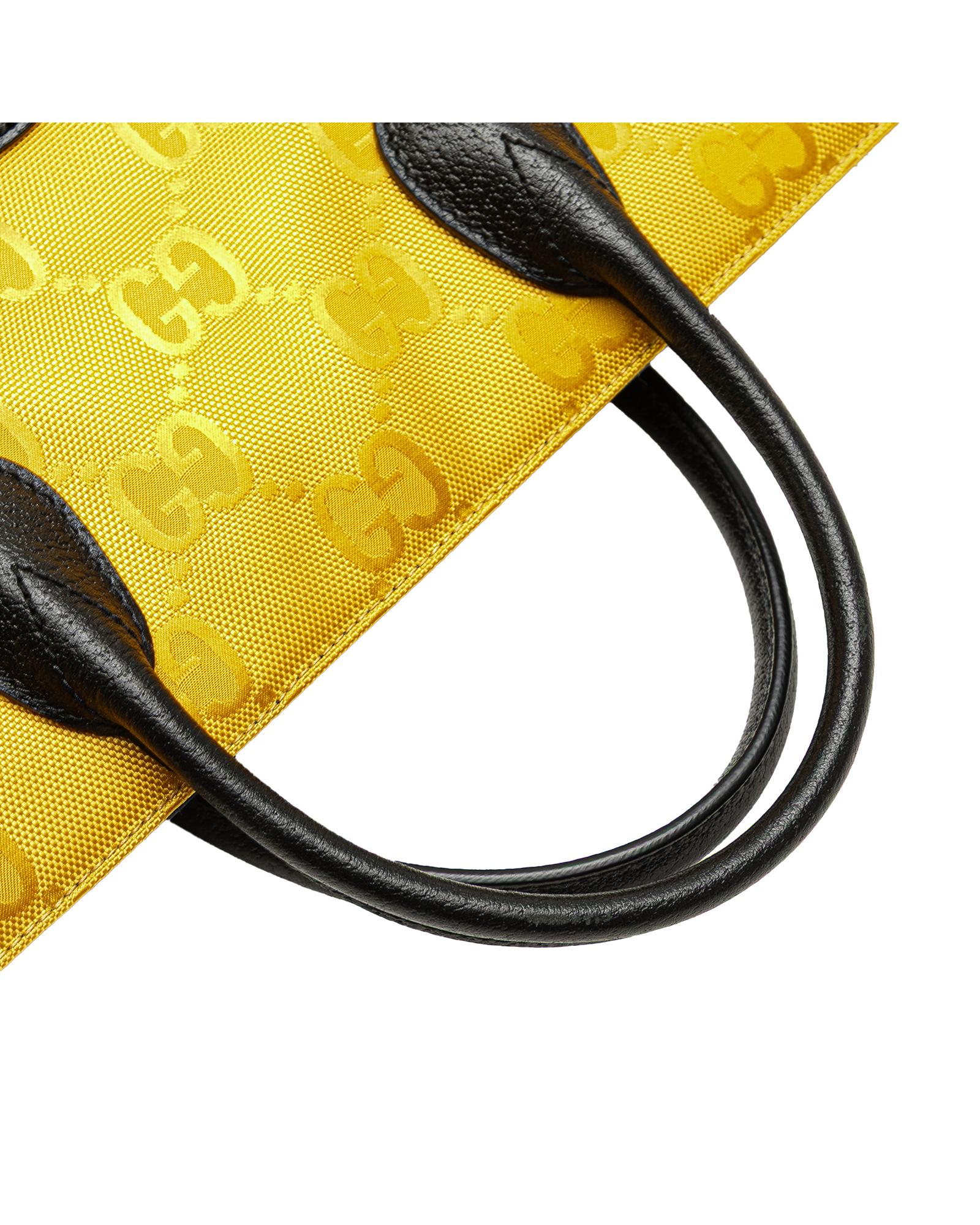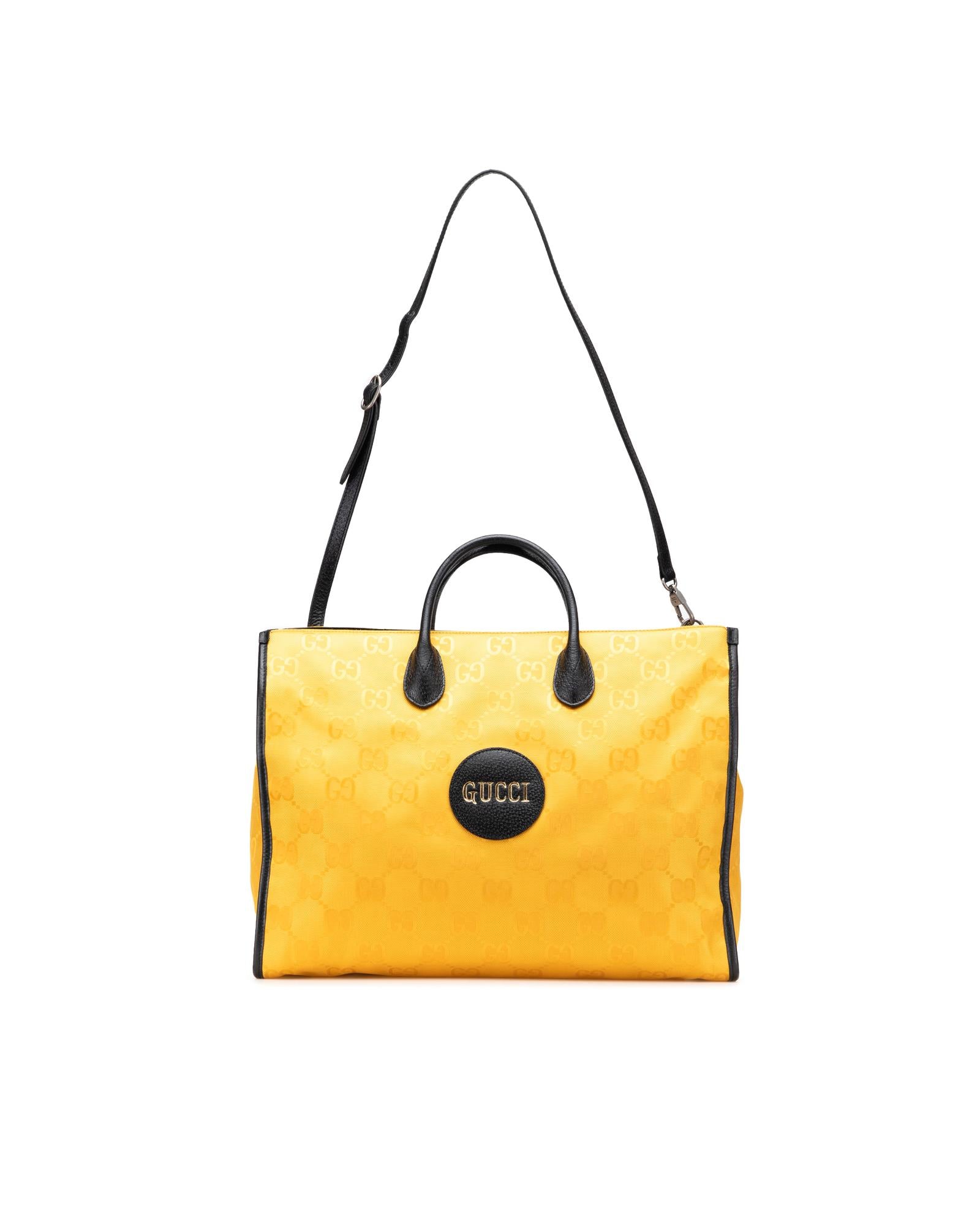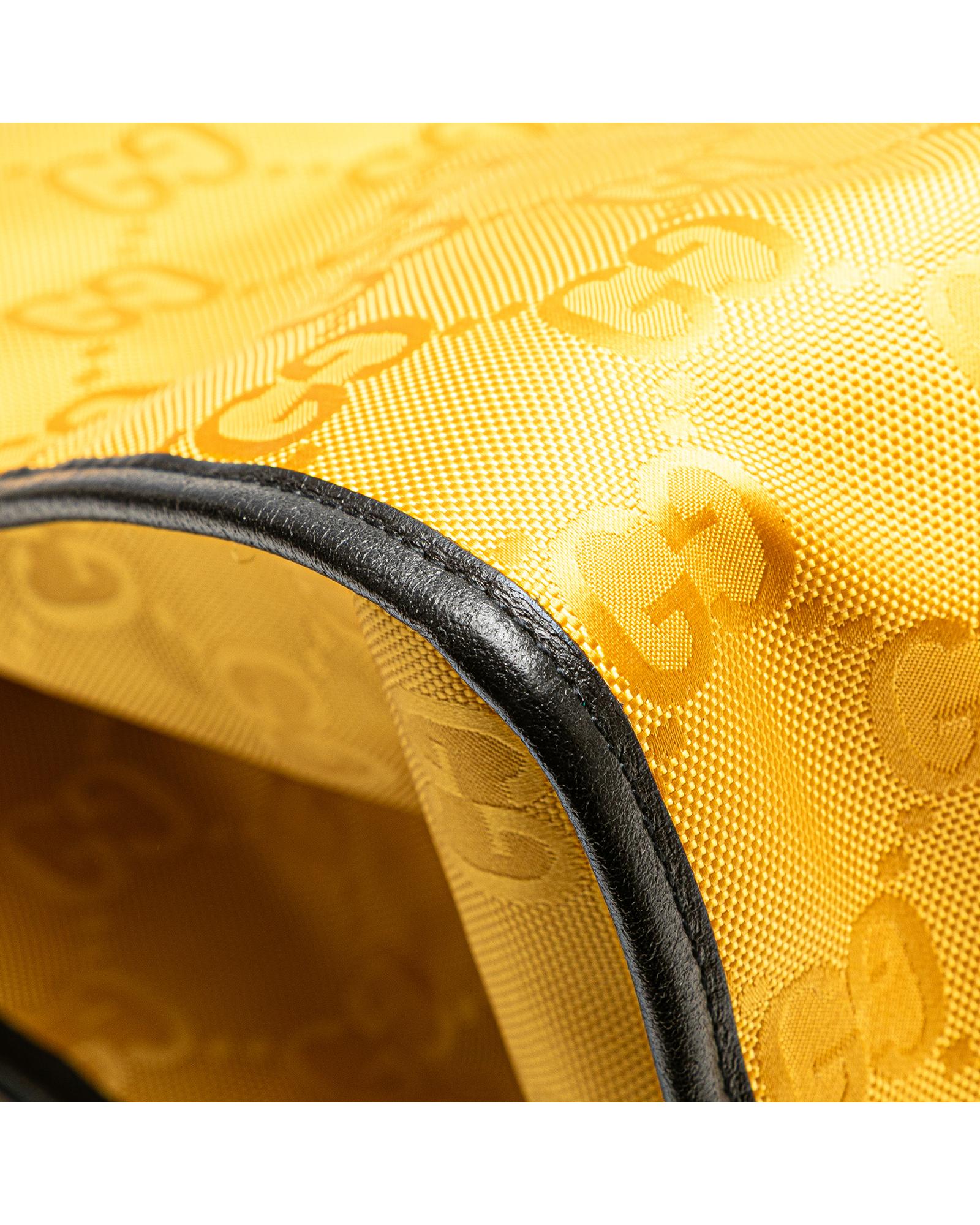 The Off the Grid features a nylon body with leather trim rolled leather handles a detachable flat leather strap an open top with hook closure and interior zip pockets.Brand: Gucci Vintage