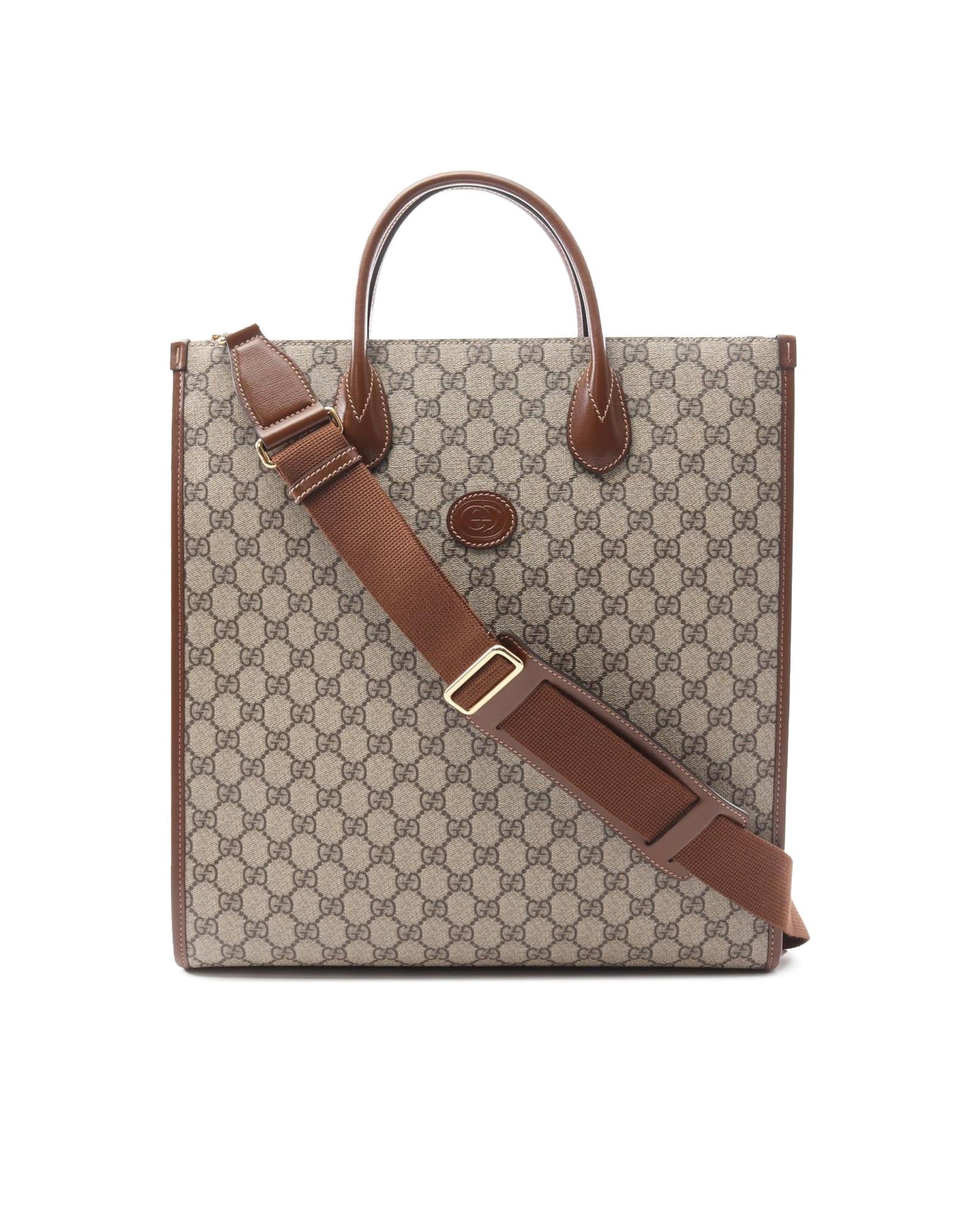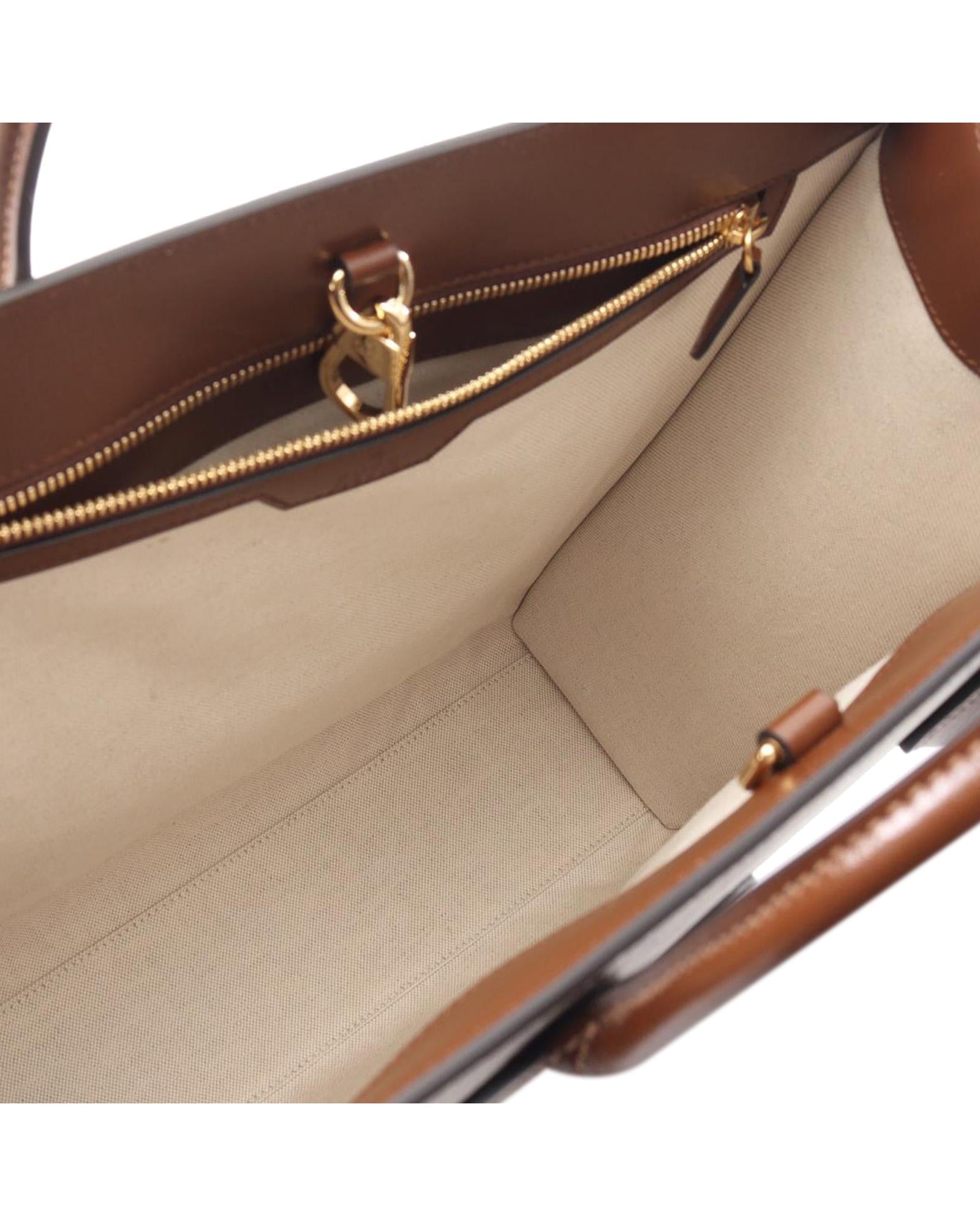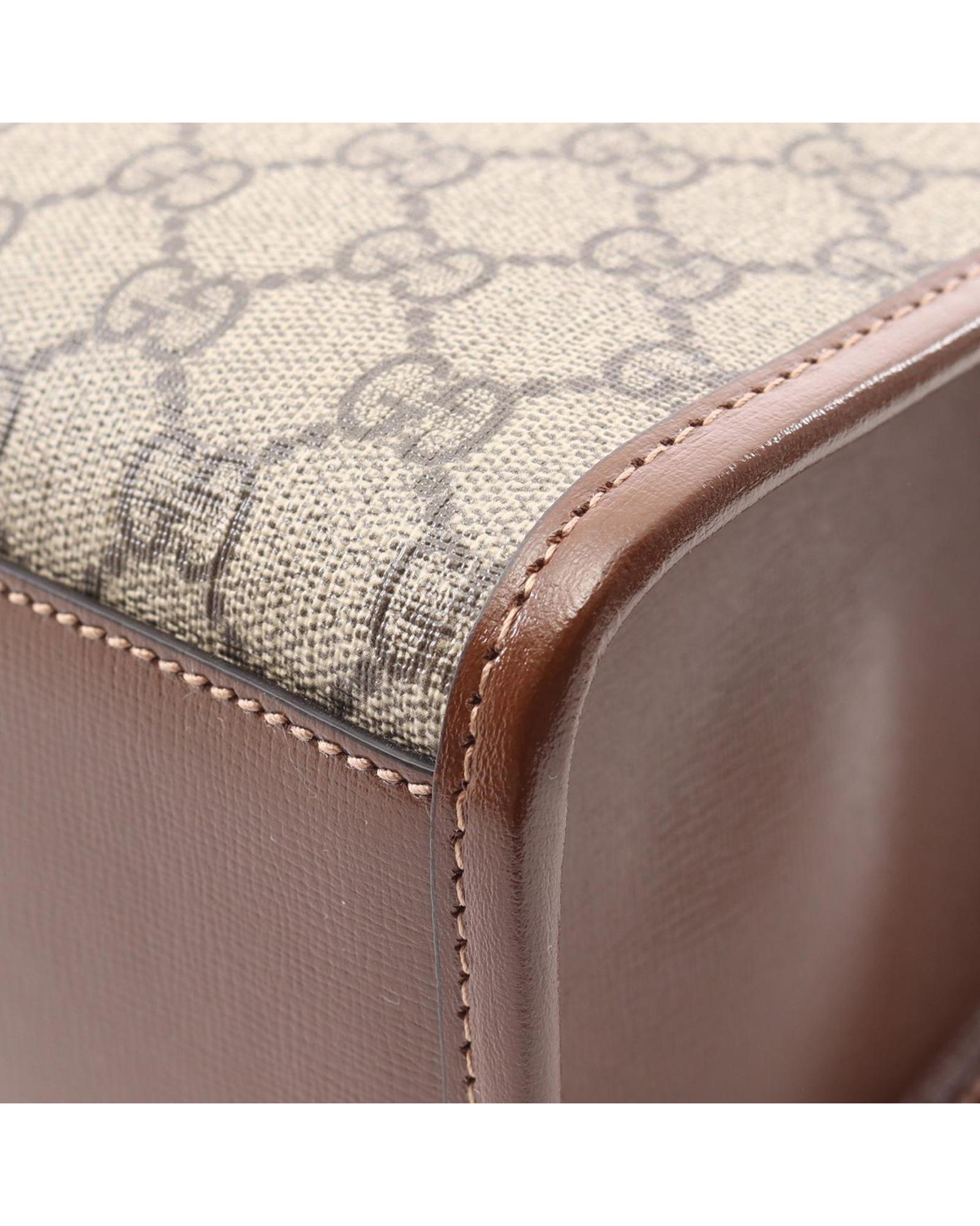 This satchel features a coated canvas body with leather trim rolled leather handles an open top with lobster claw clasp closure and an interior zip pocket.Brand: Gucci Vintage