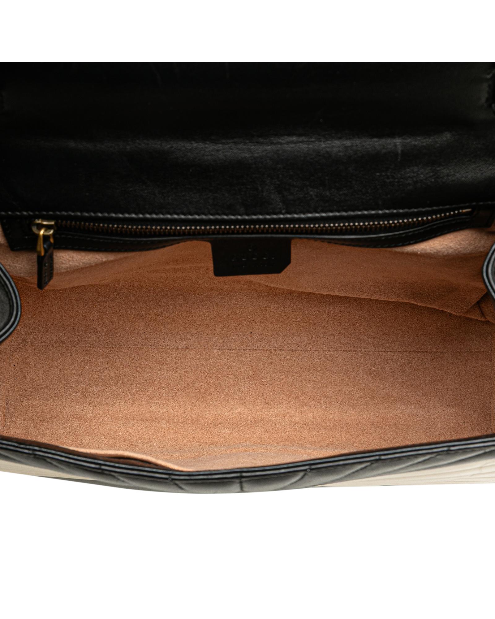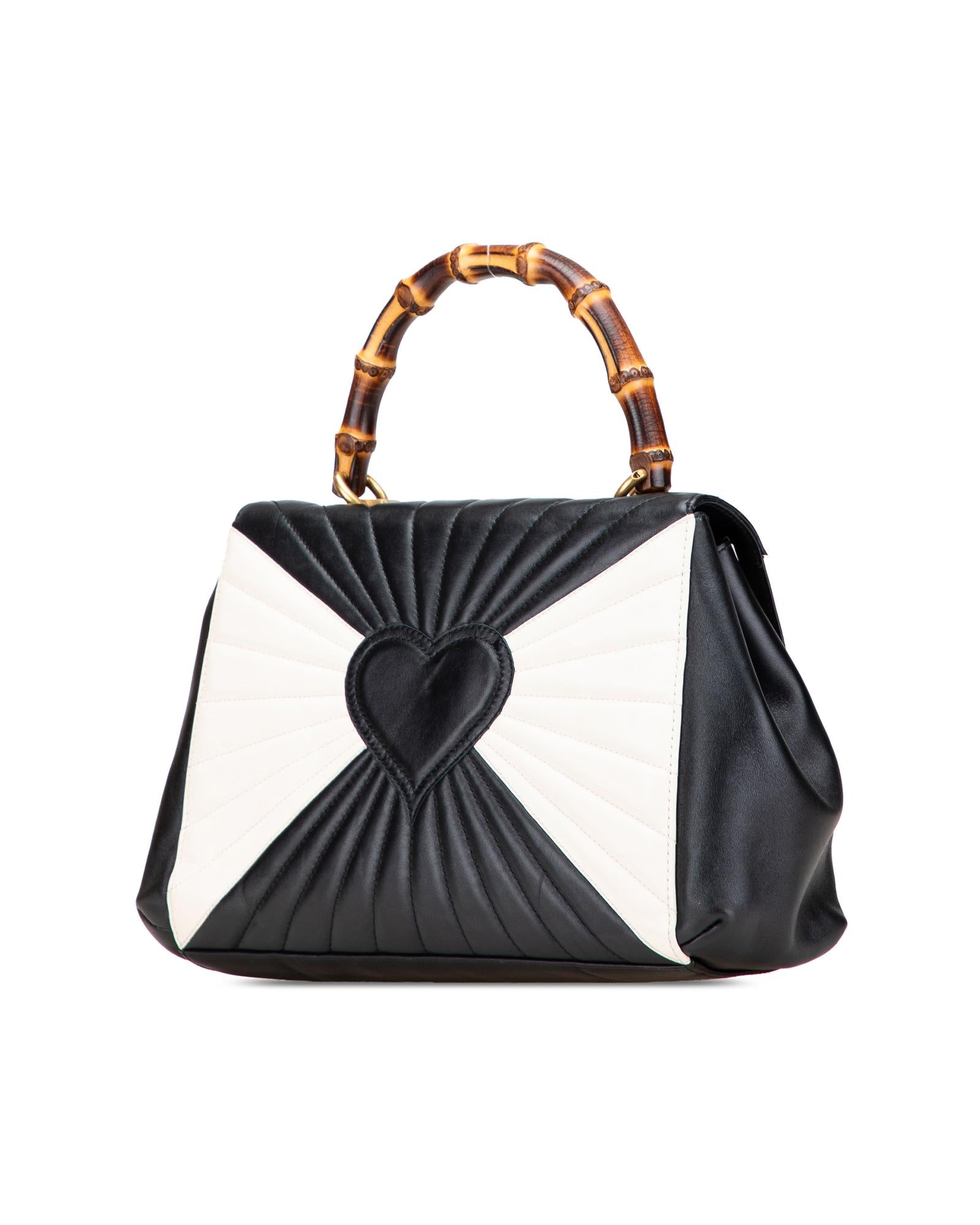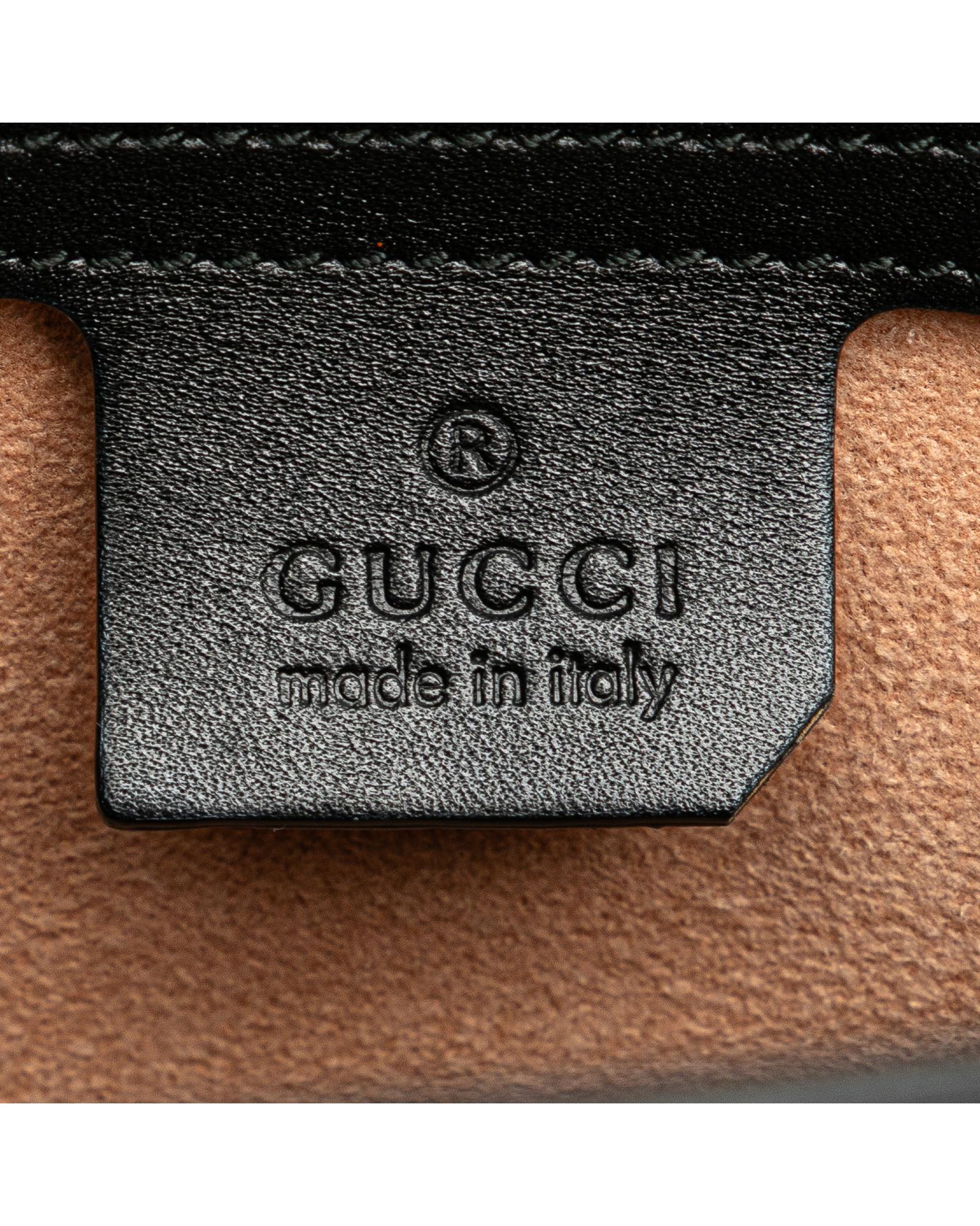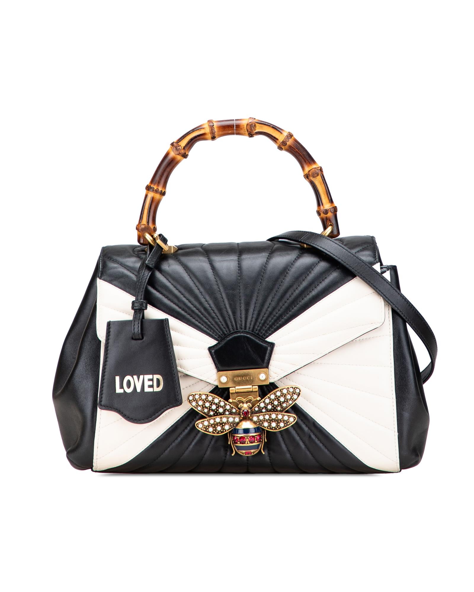 The Queen Margaret satchel features a leather body a bamboo top handle a detachable flat strap a front flap with a magnetic snap button closure and interior zip and slip pockets.Brand: Gucci Vintage