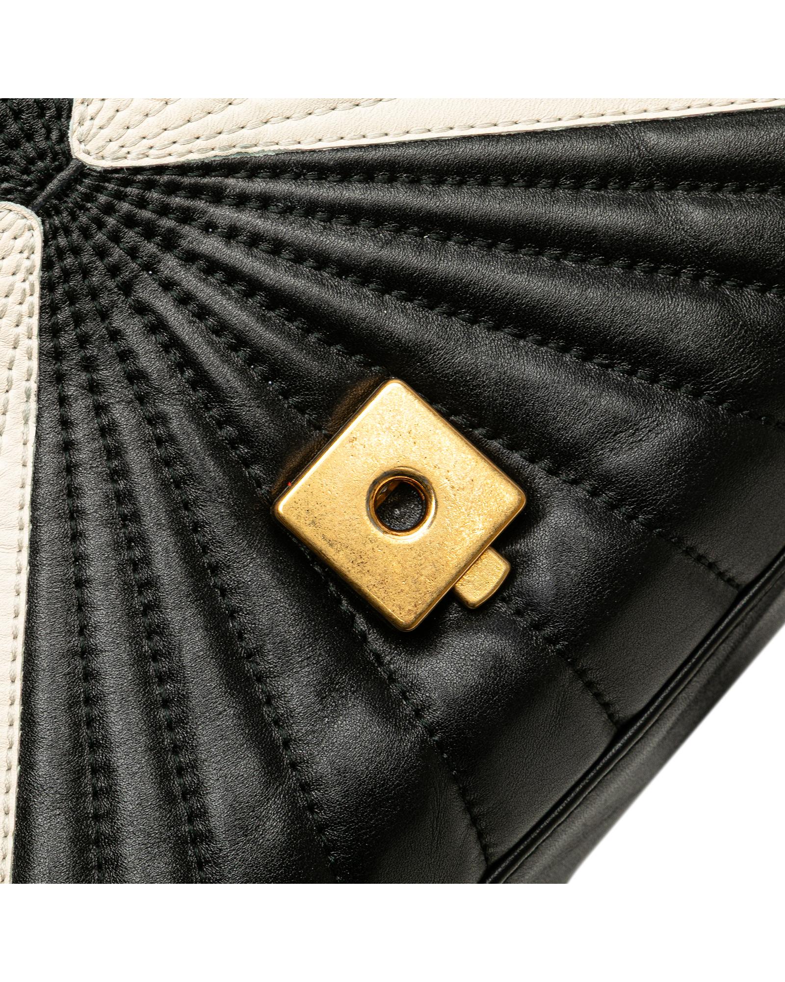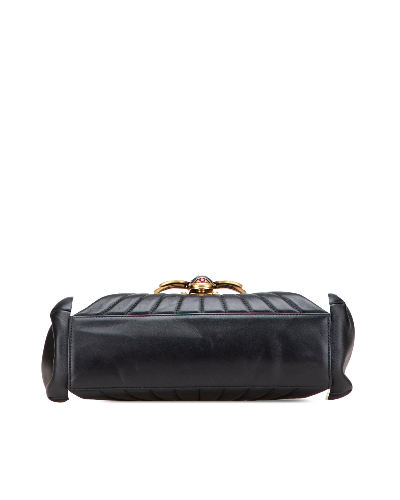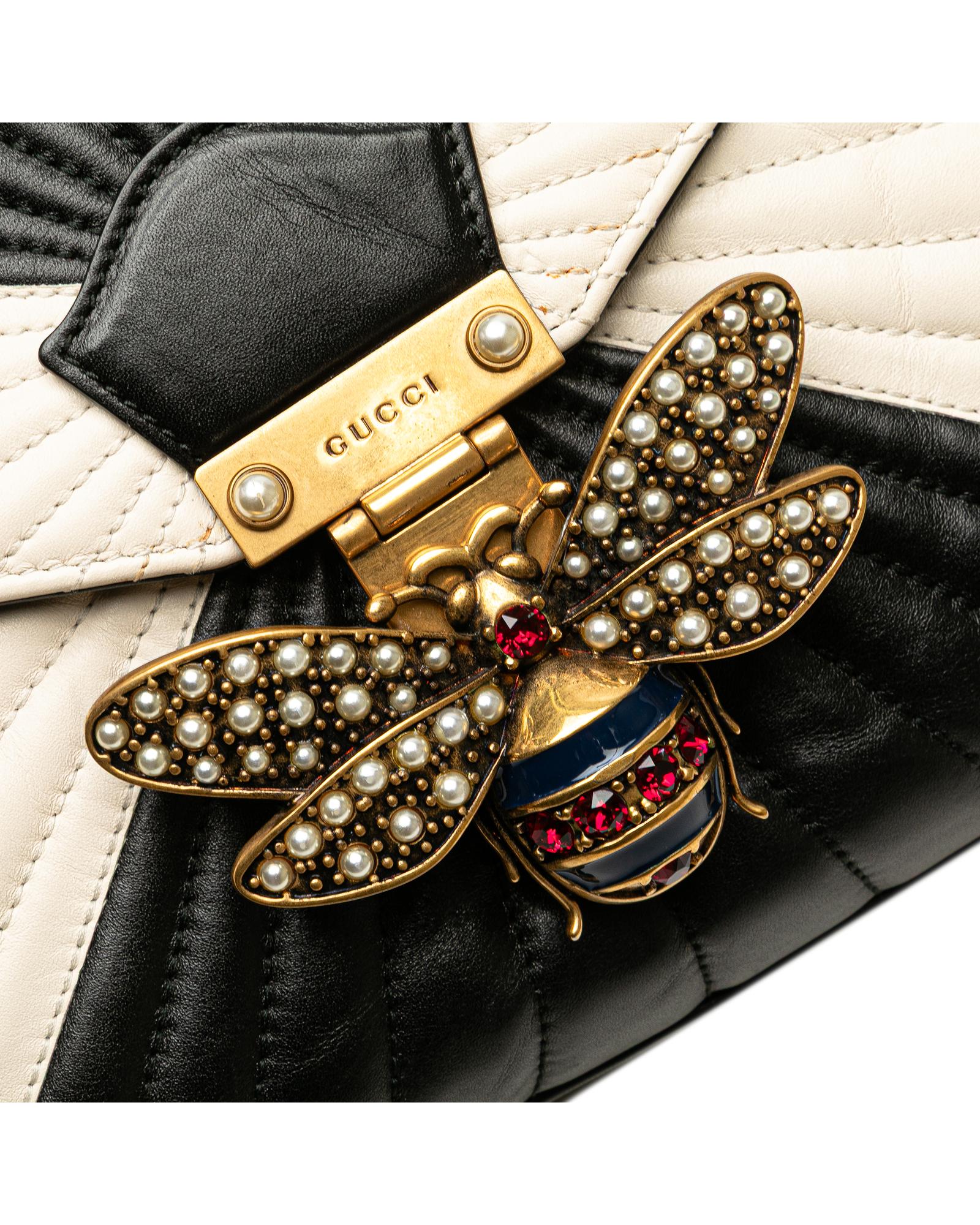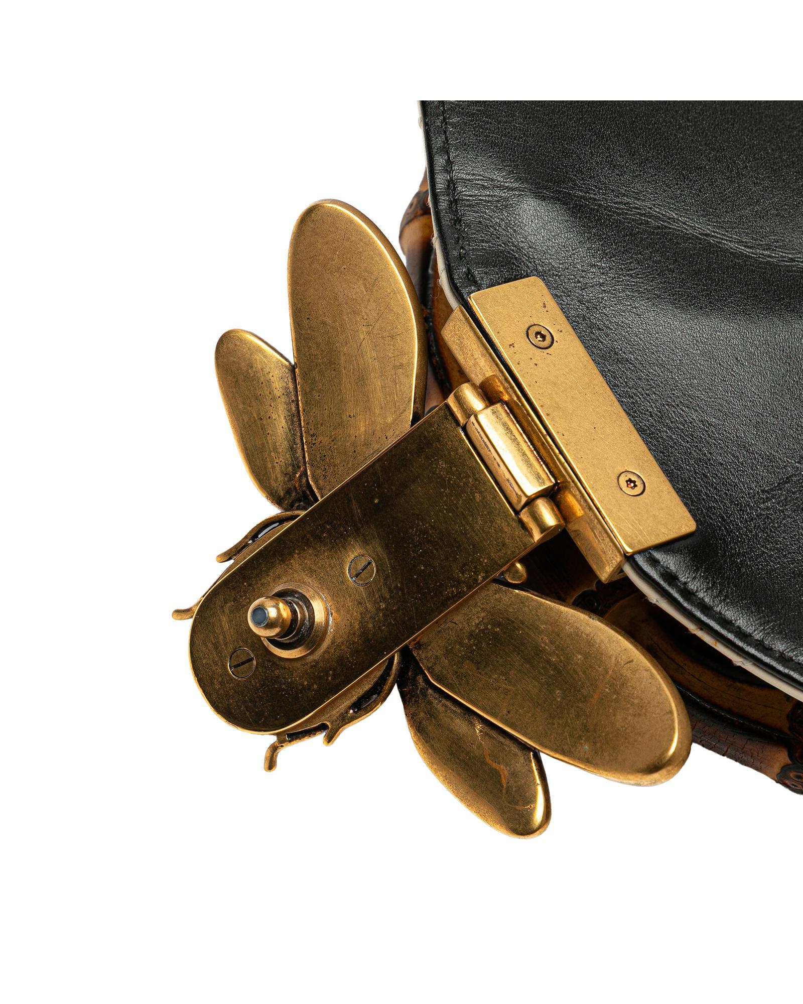 Pre-owned Elegant Quilted Leather Top Handle Bag with Bee Detail and Bamboo Handle