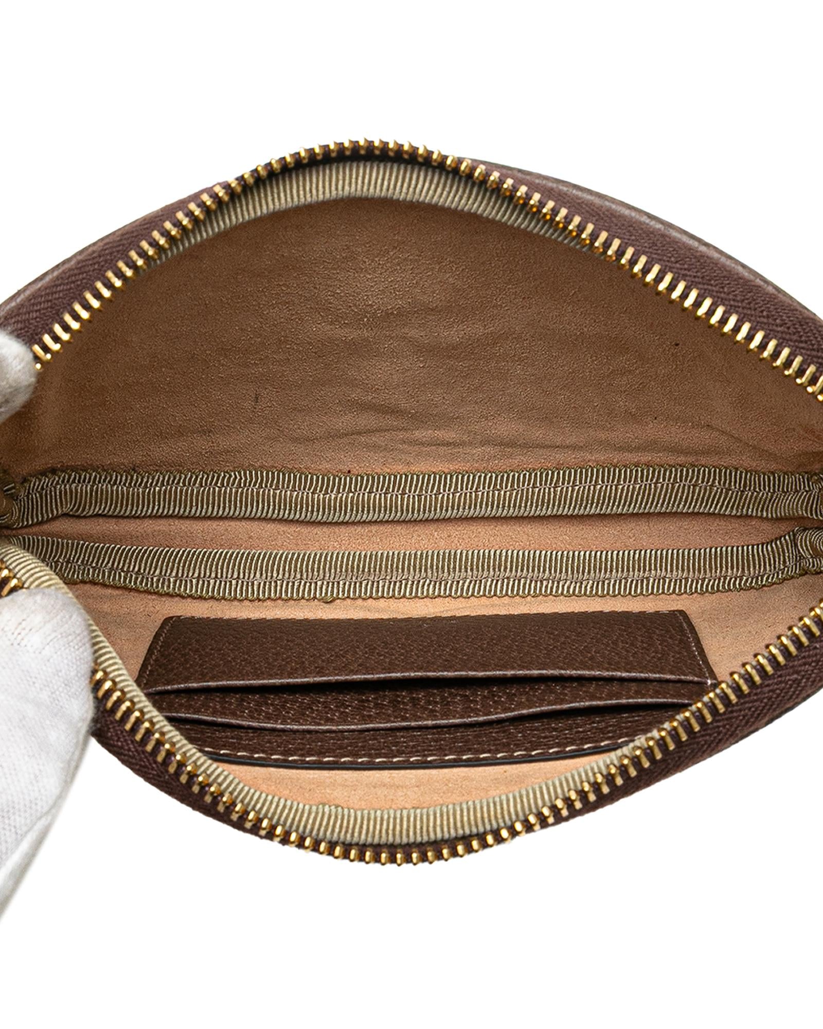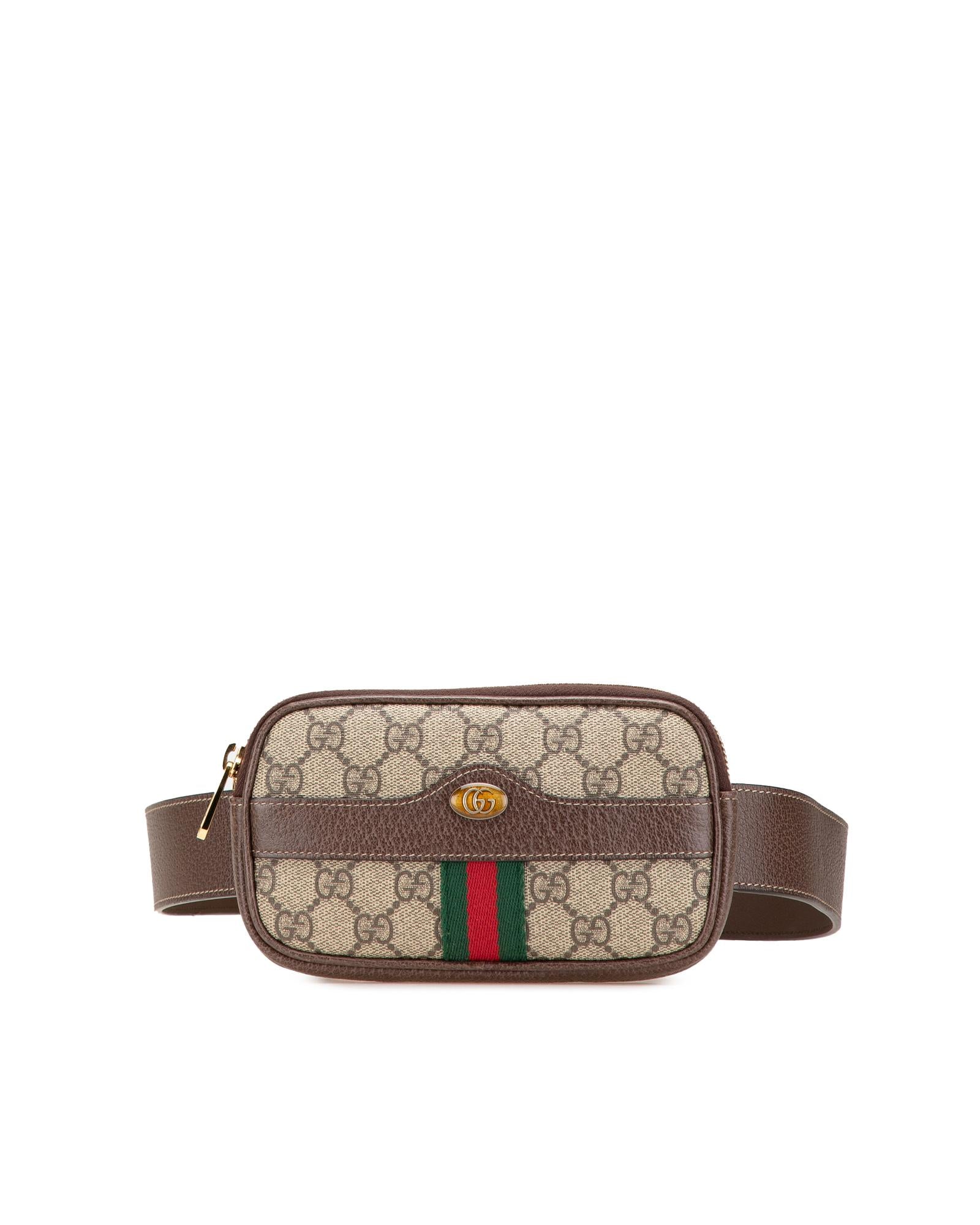 The Ophidia belt bag features a coated canvas body with leather trim an adjustable flat leather waist strap a top zip closure and interior slip pockets.Brand: Gucci Vintage
