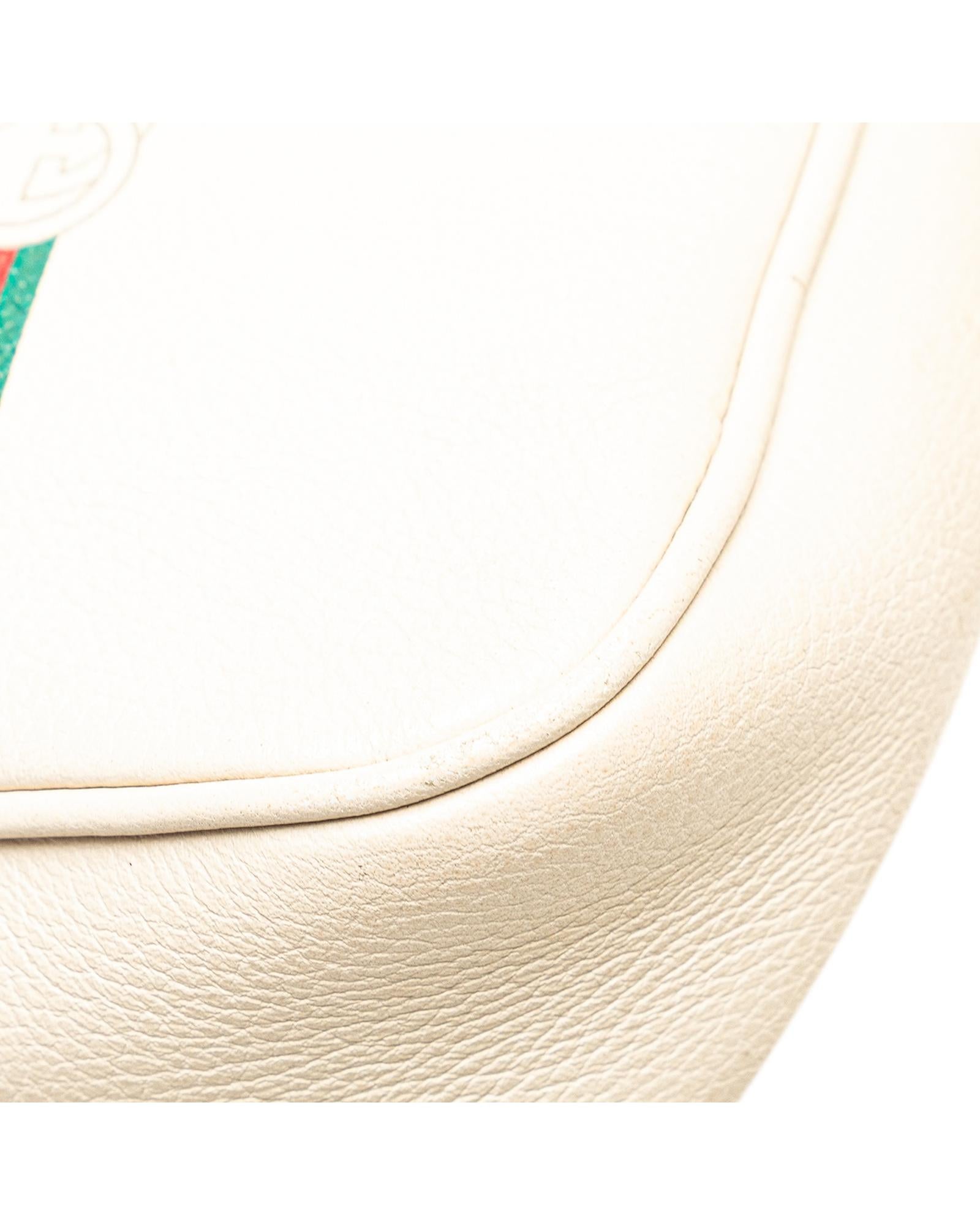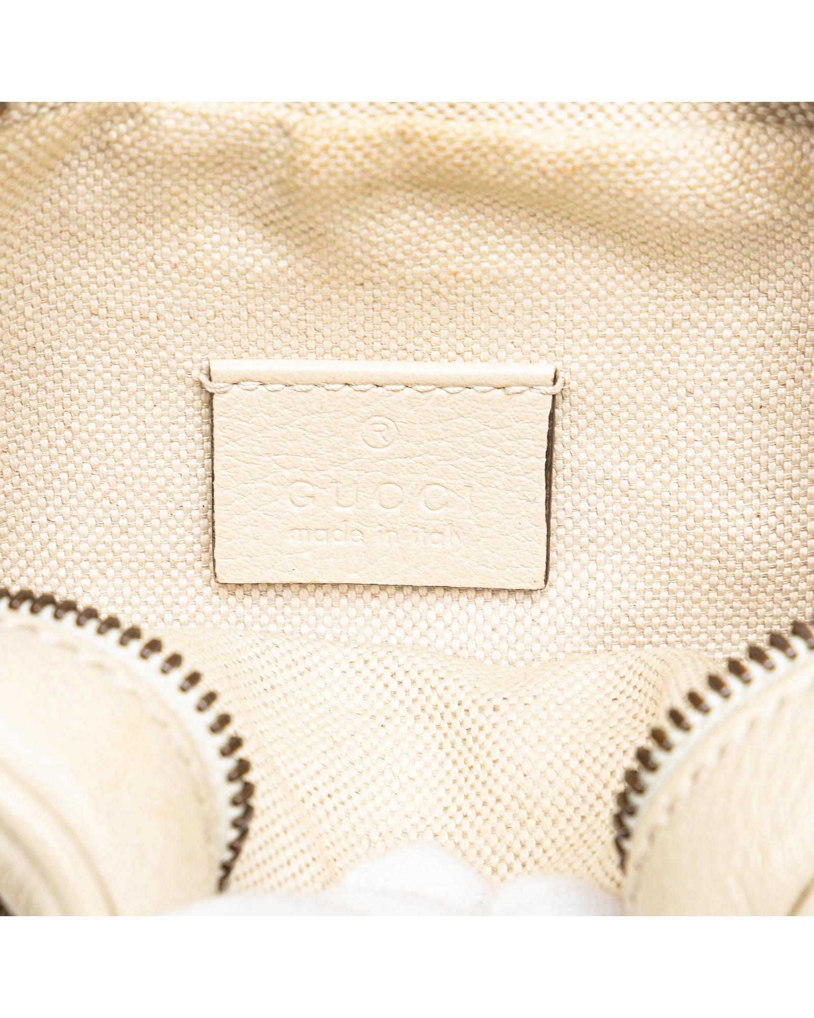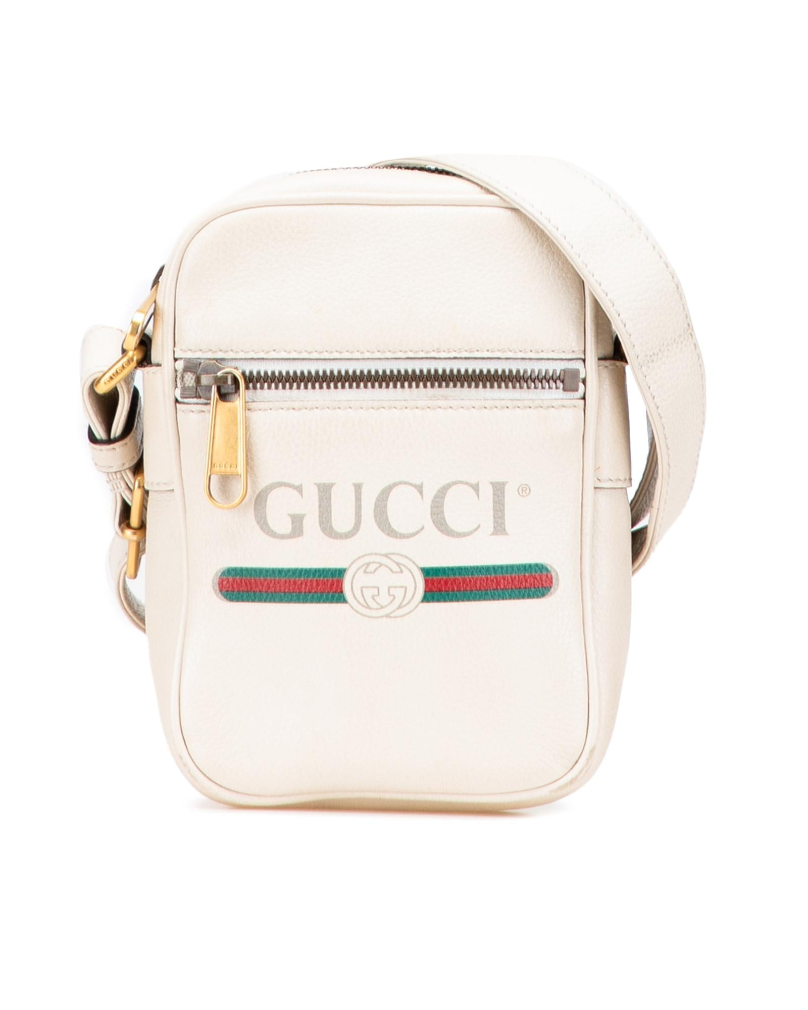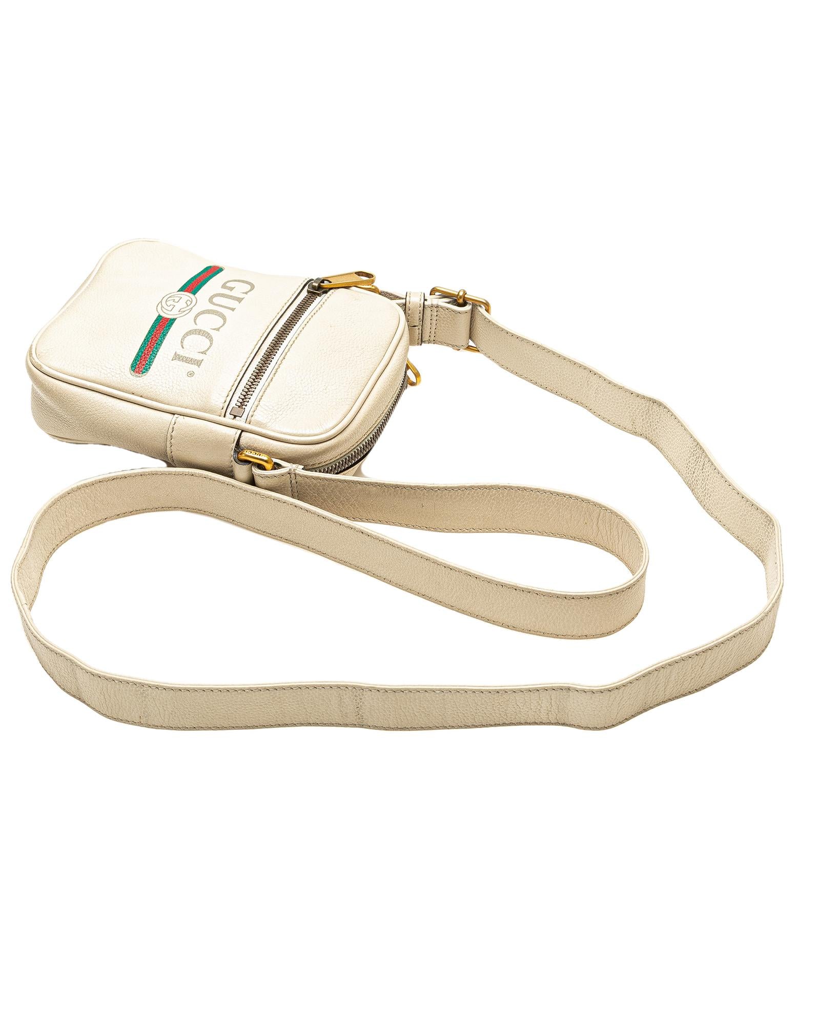 This crossbody bag features a leather body a flat leather strap an exterior front zip pocket and a top zip closure.Brand: Gucci Vintage