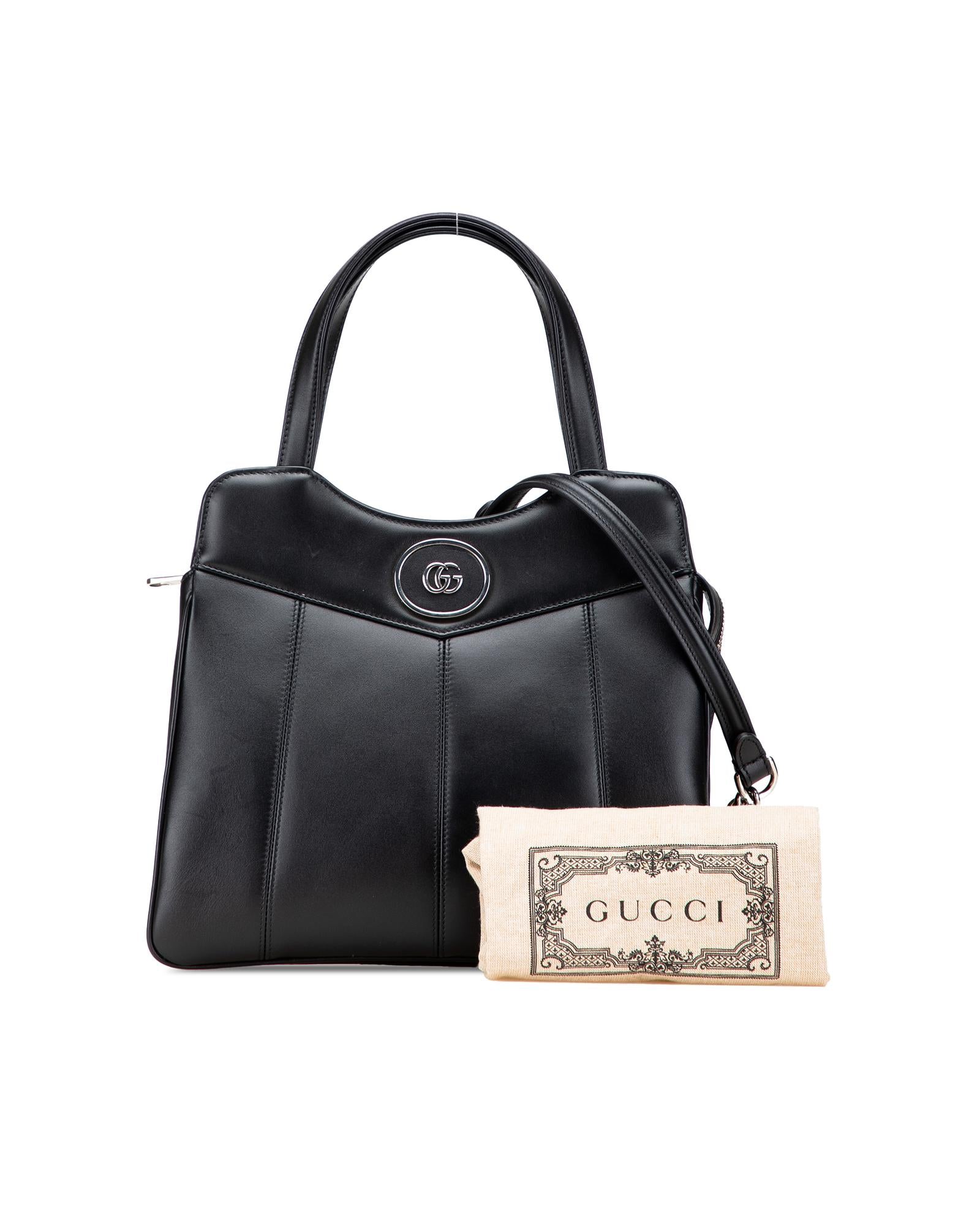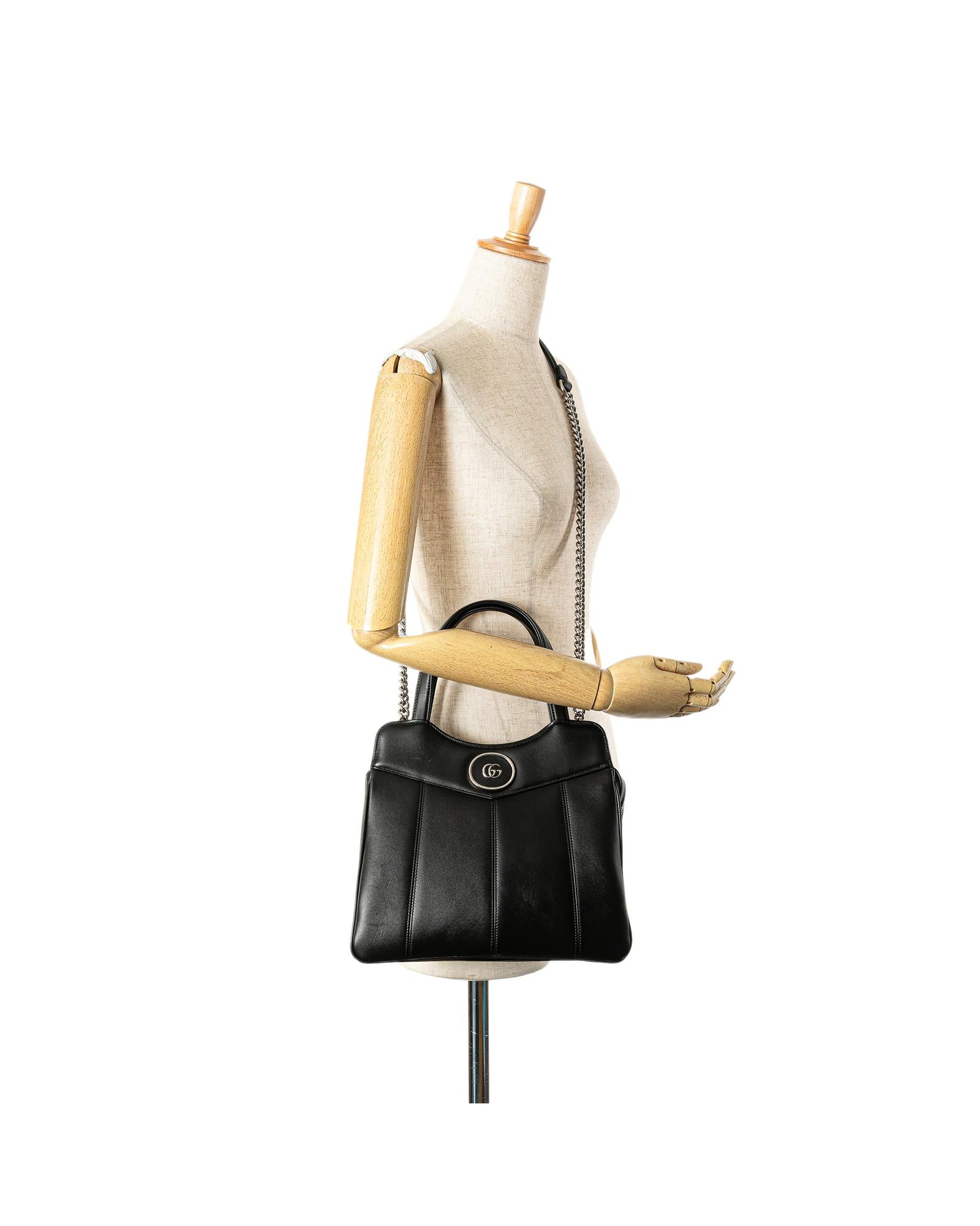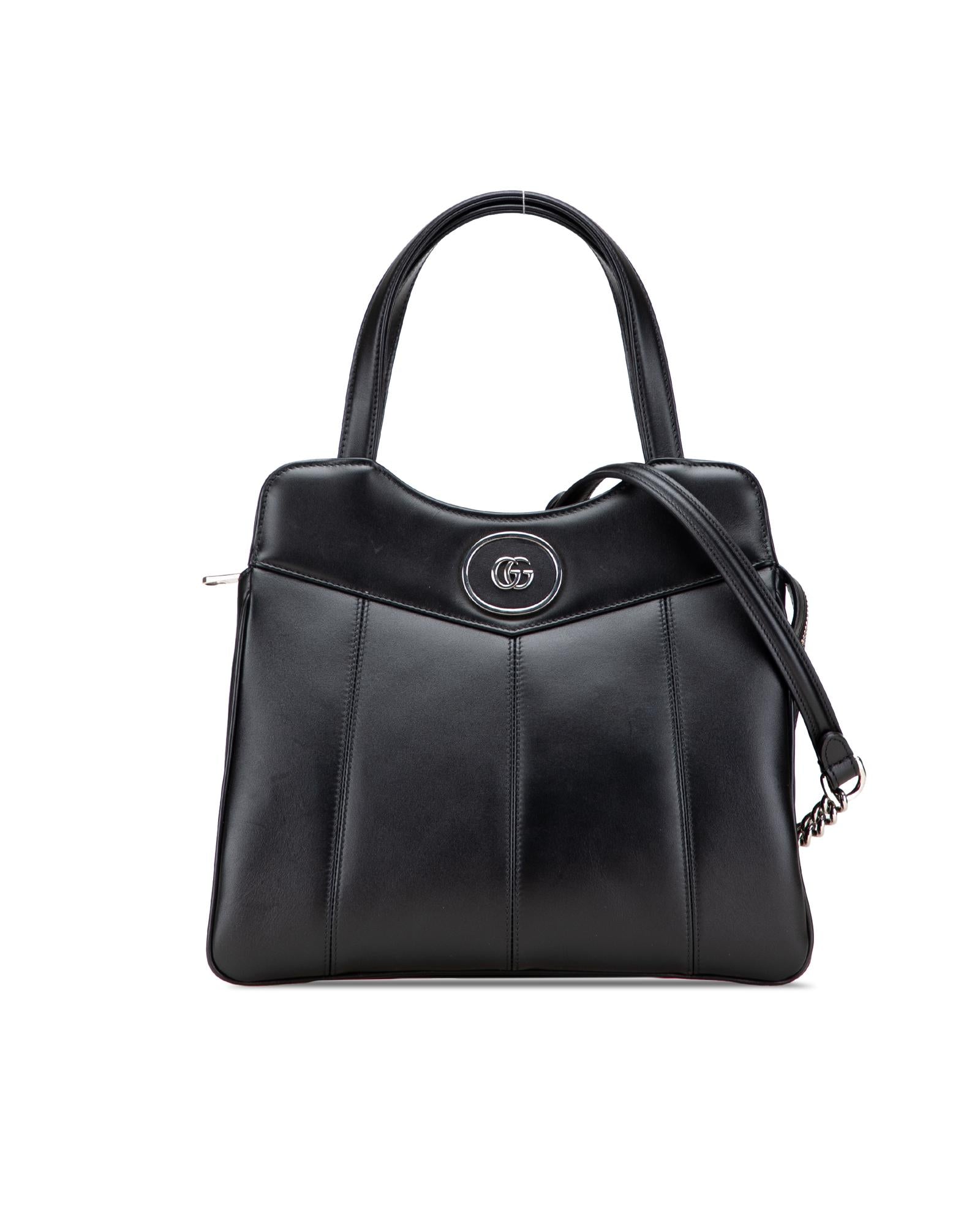 The Petite GG tote features a leather body flat leather handles a detachable chain strap with leather guard a top zip closure and an interior zip pocket.Brand: Gucci Vintage