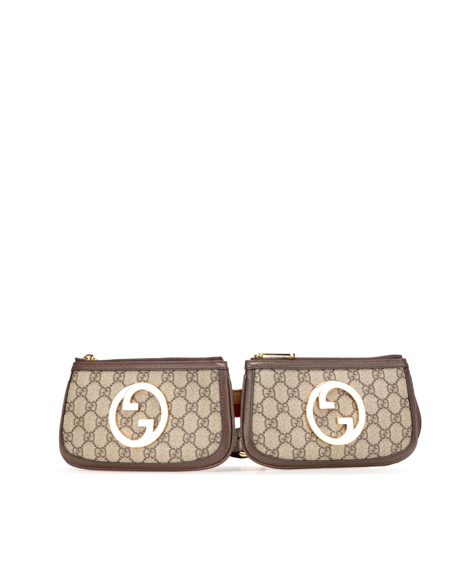 The Blondie belt bag features a coated canvas body with leather trim an adjustable flat waist strap two zip large pouches with interior card slots and a flap pouch with snap closure.Brand: Gucci