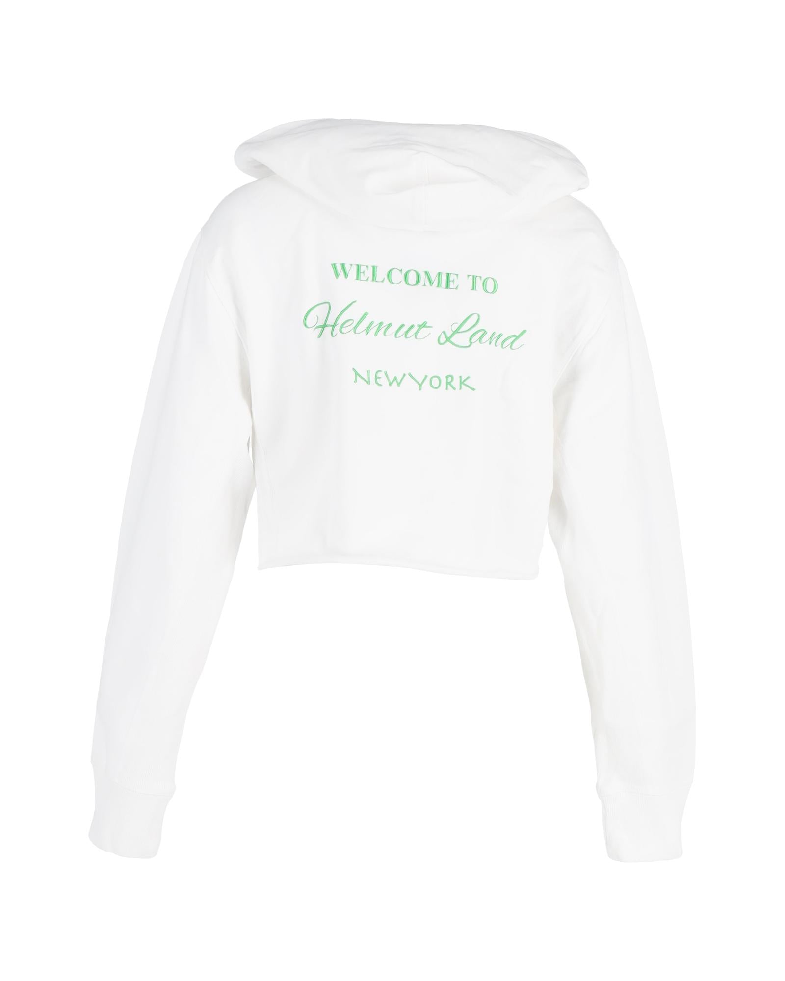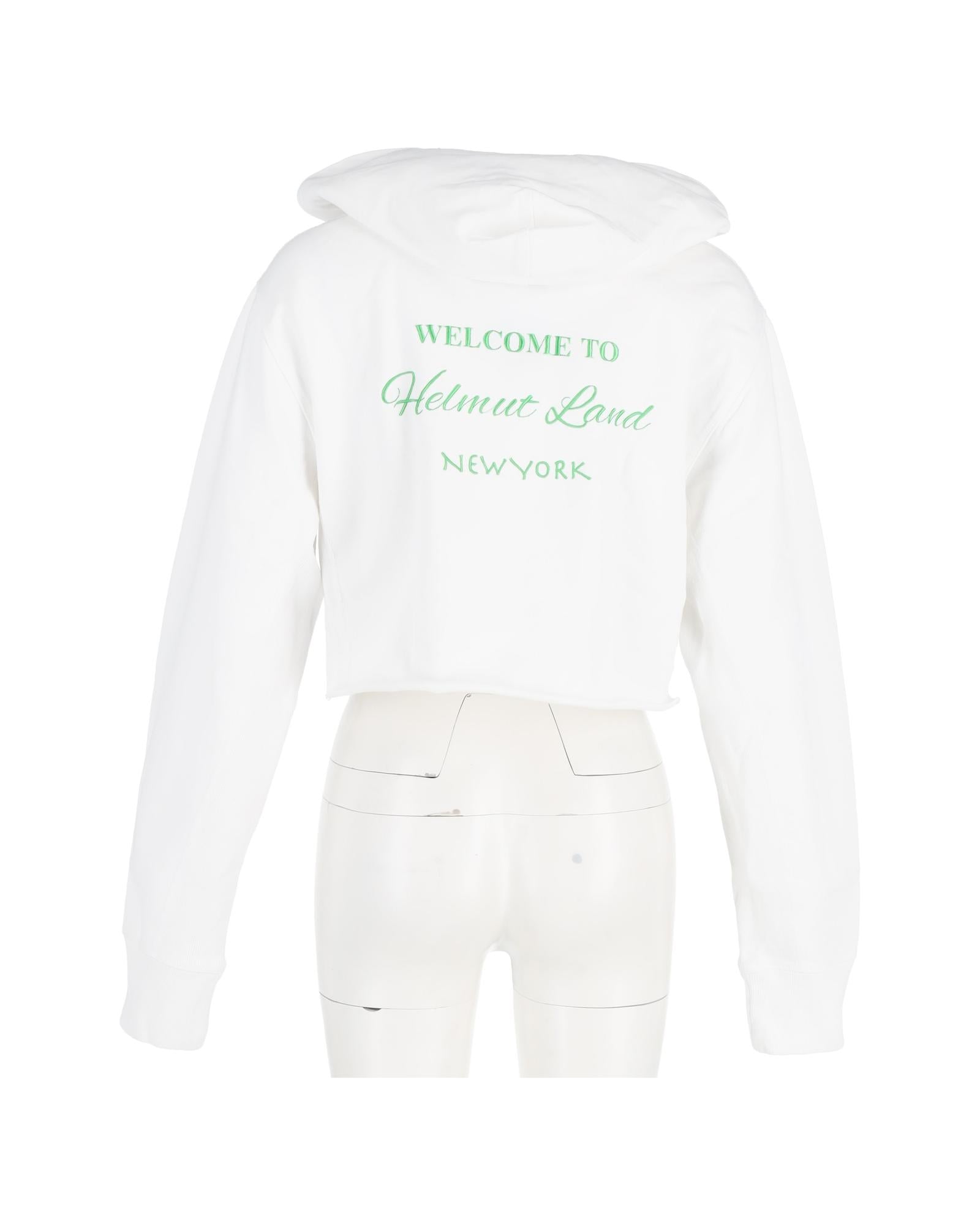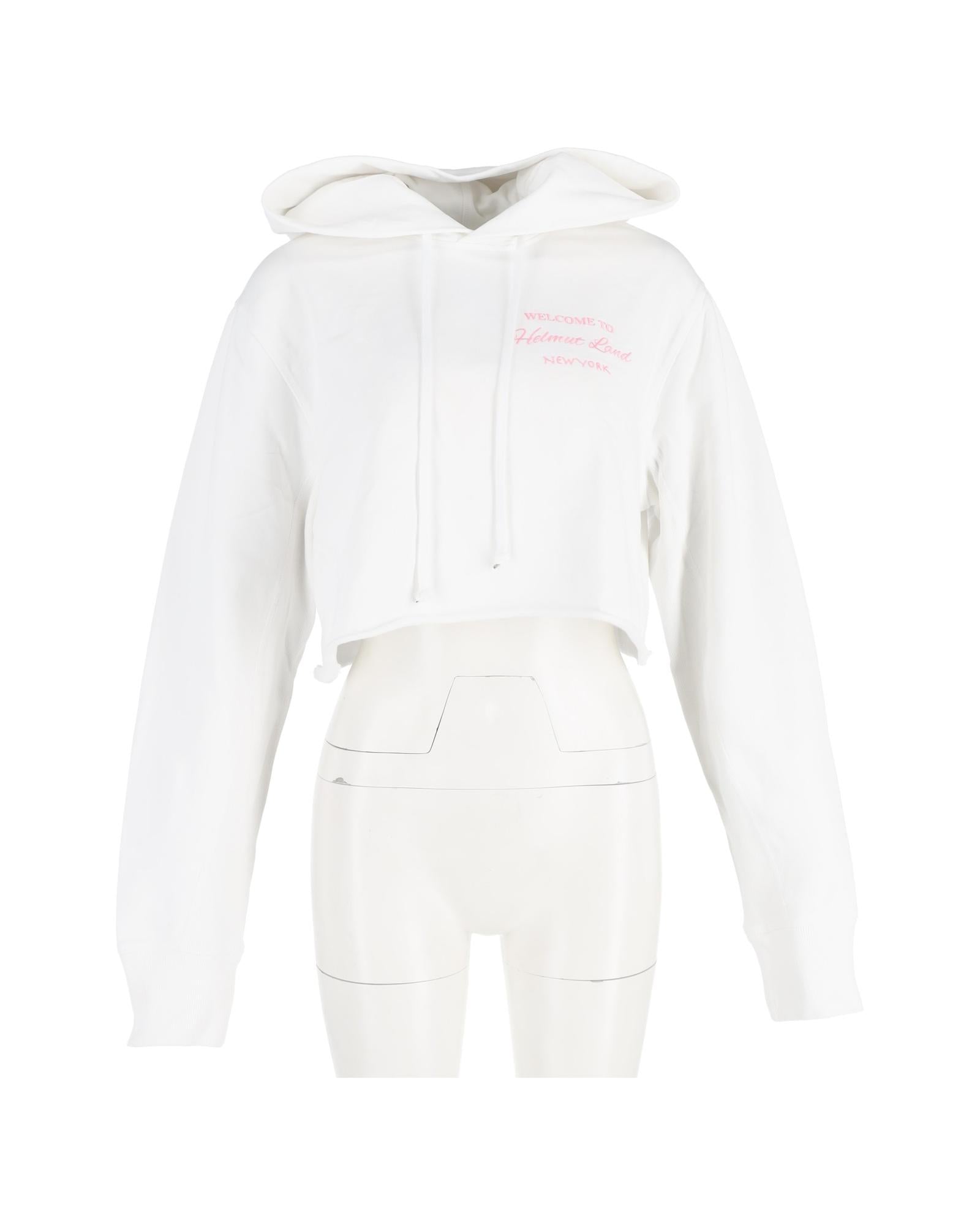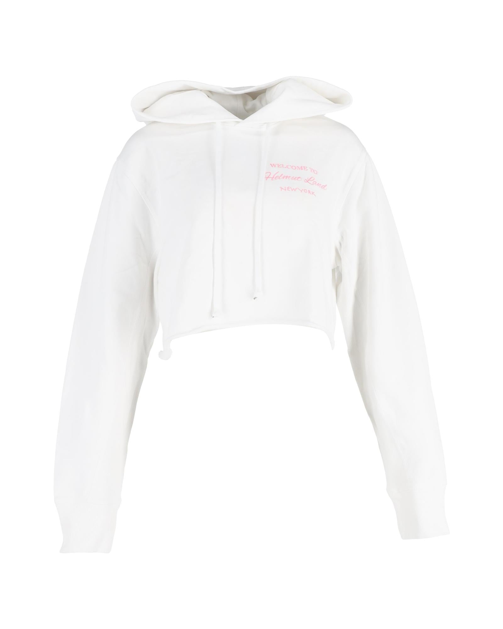 - Helmut Lang Cropped Slogan Embroidered Hoodie
