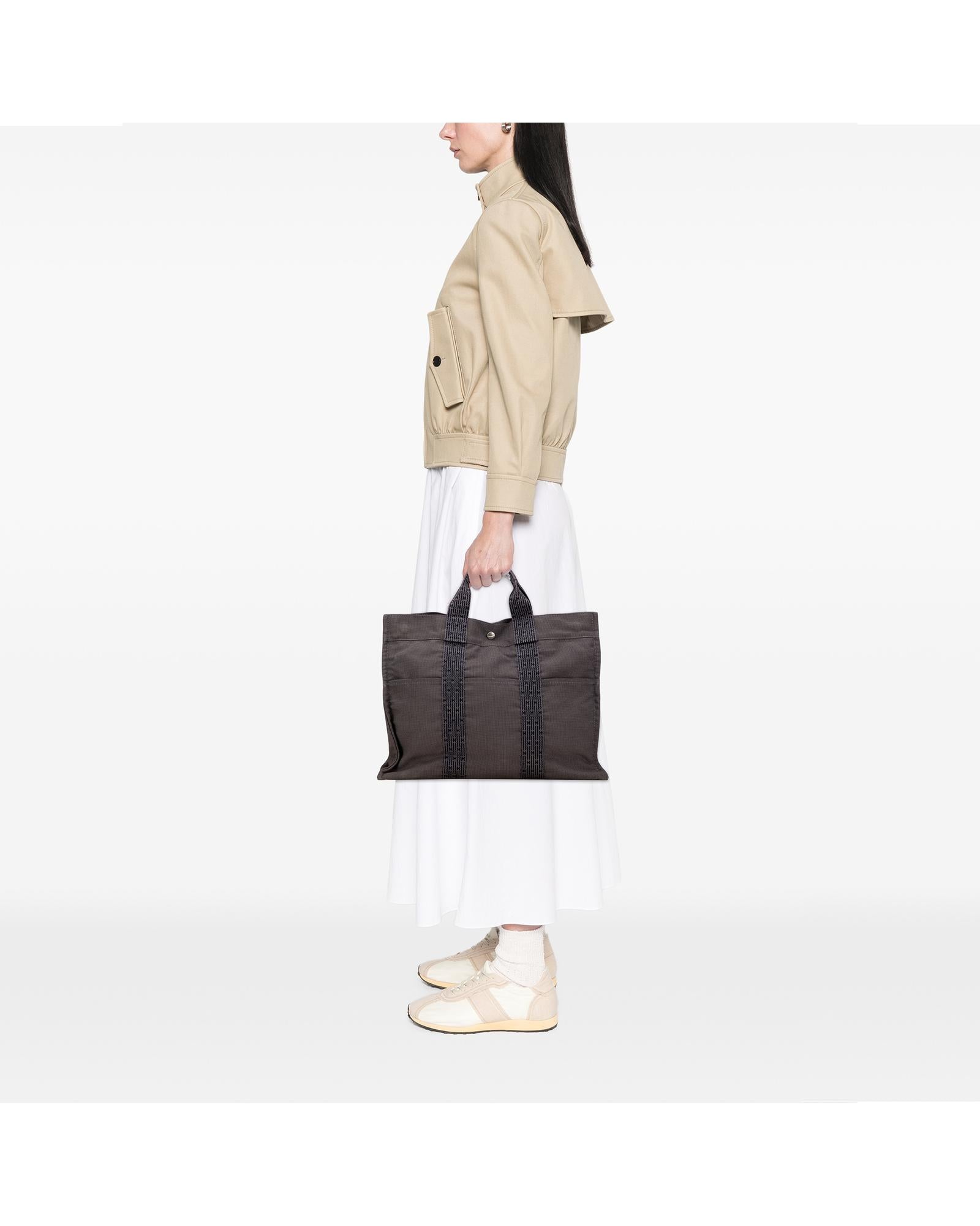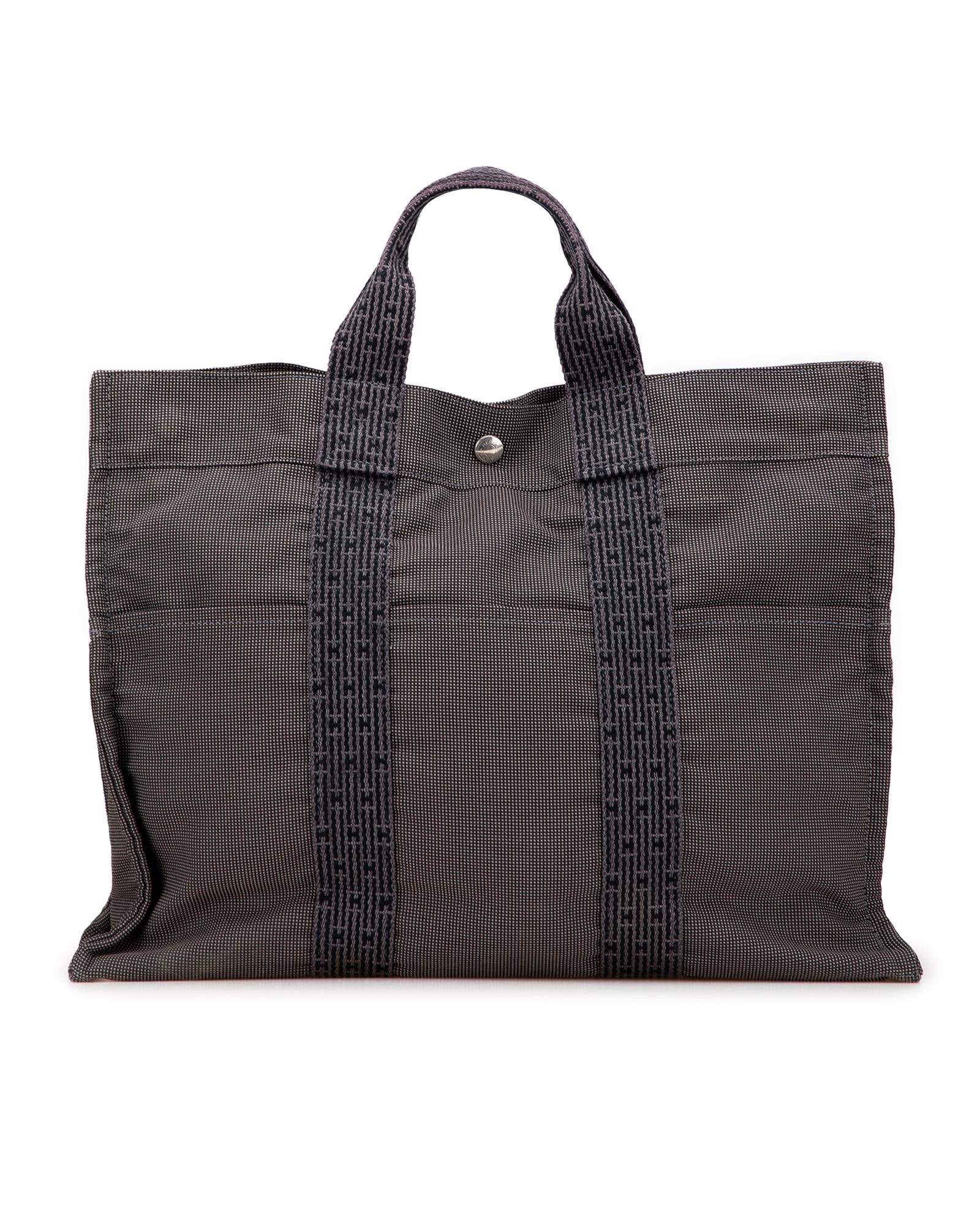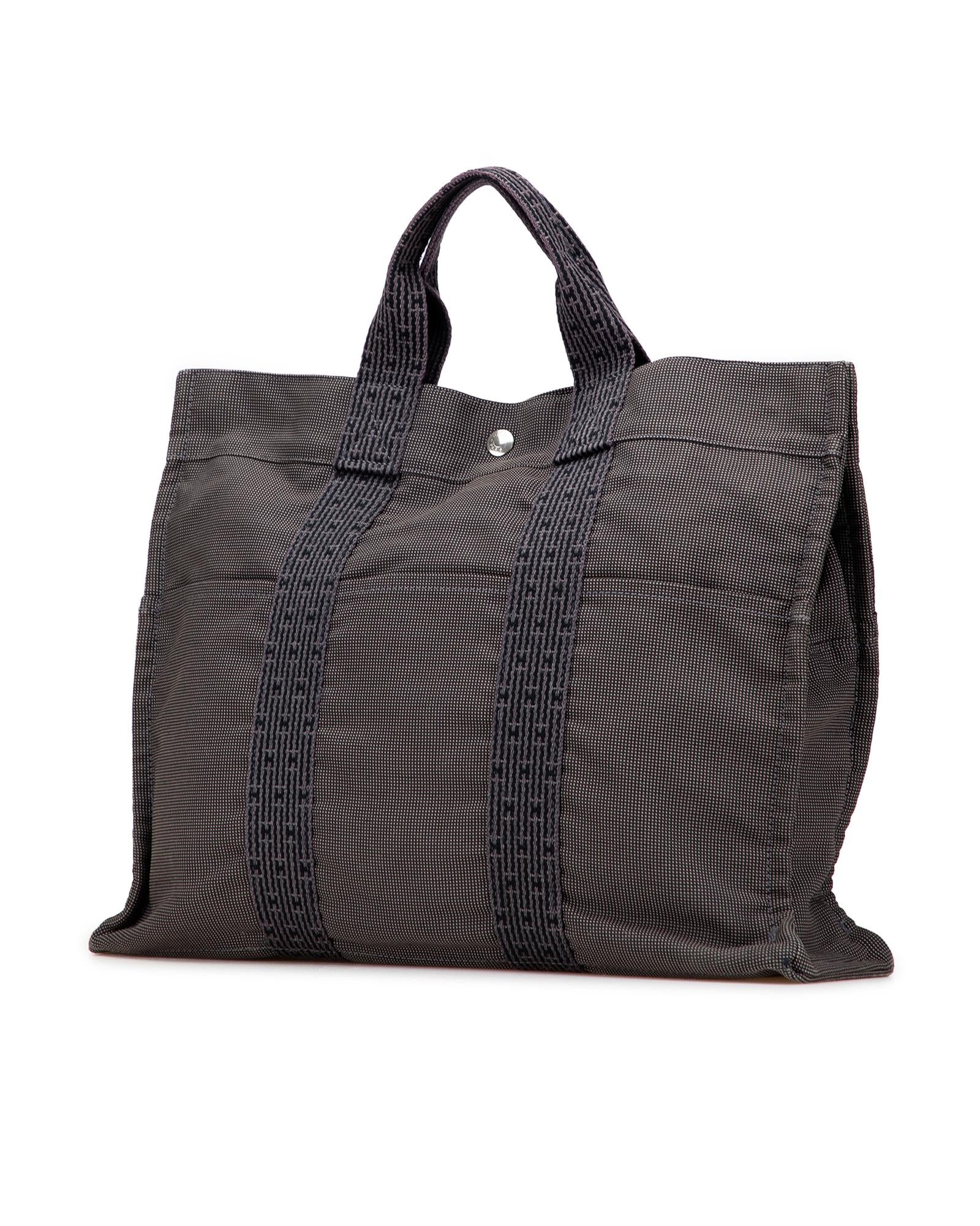 The Herline MM tote features a canvas body exterior front and back slip pockets flat handles a top zip closure and an interior slip pocket.