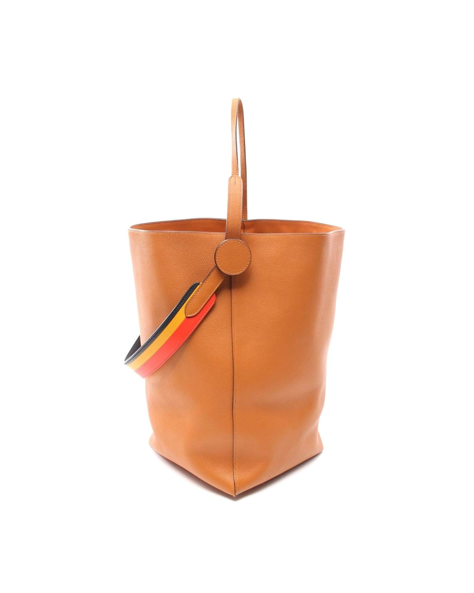 Pre-owned Versatile Leather Bucket Bag with Adjustable Straps and Handle