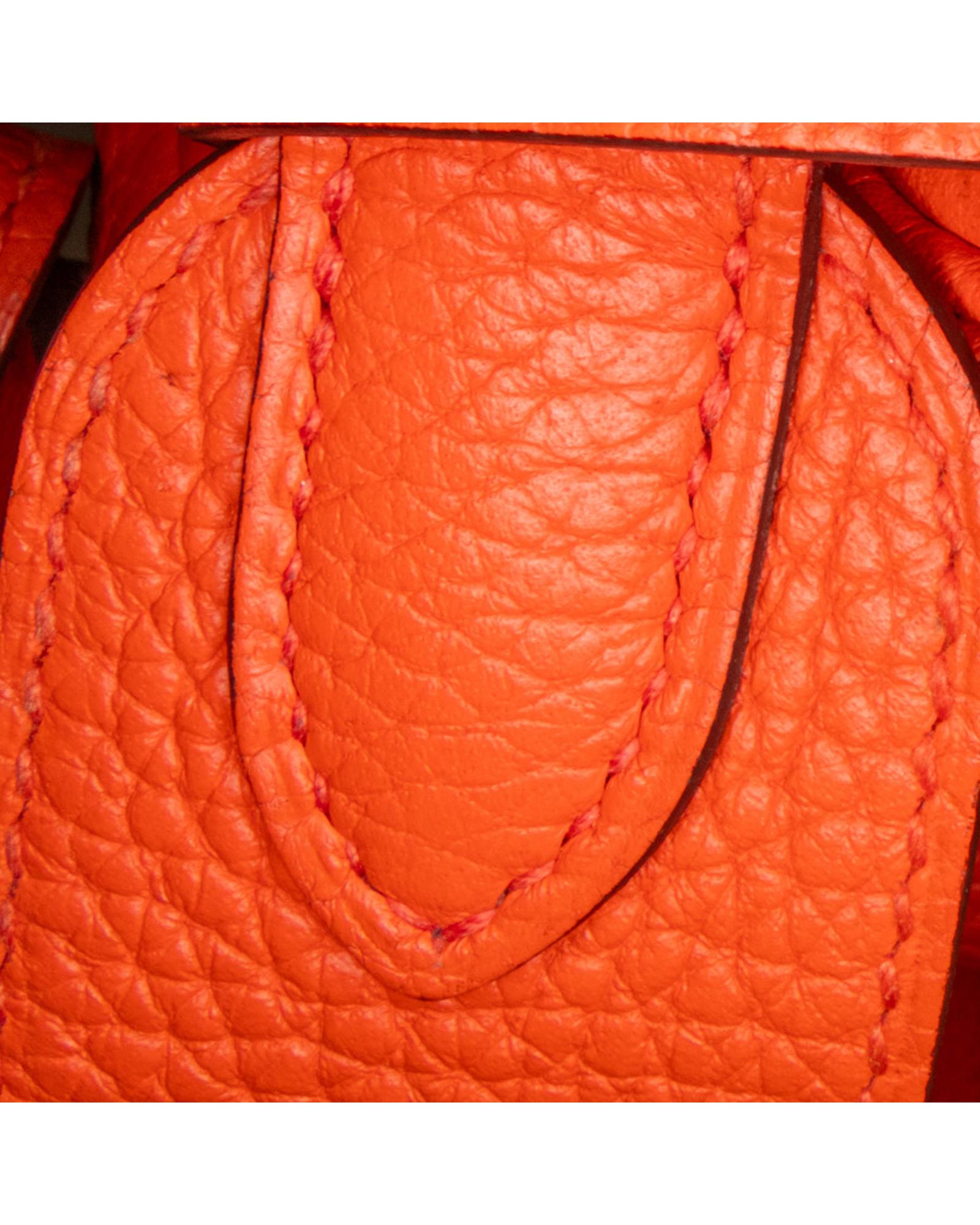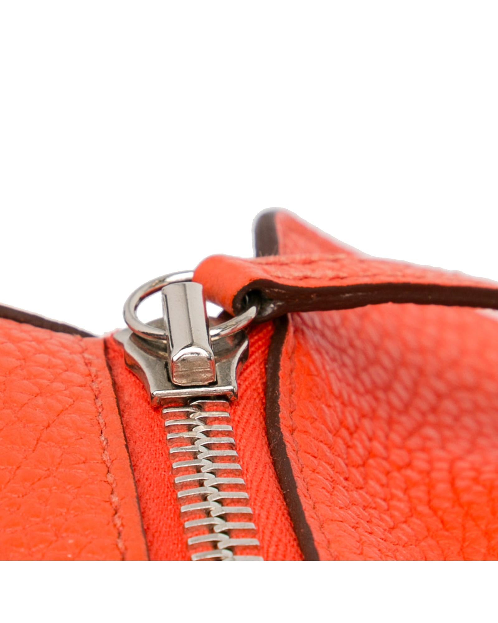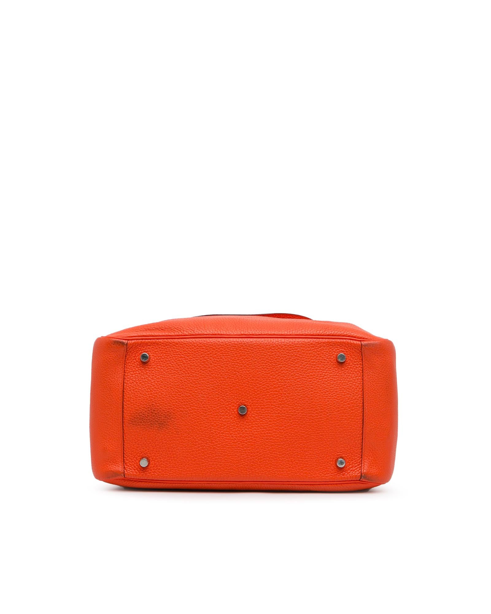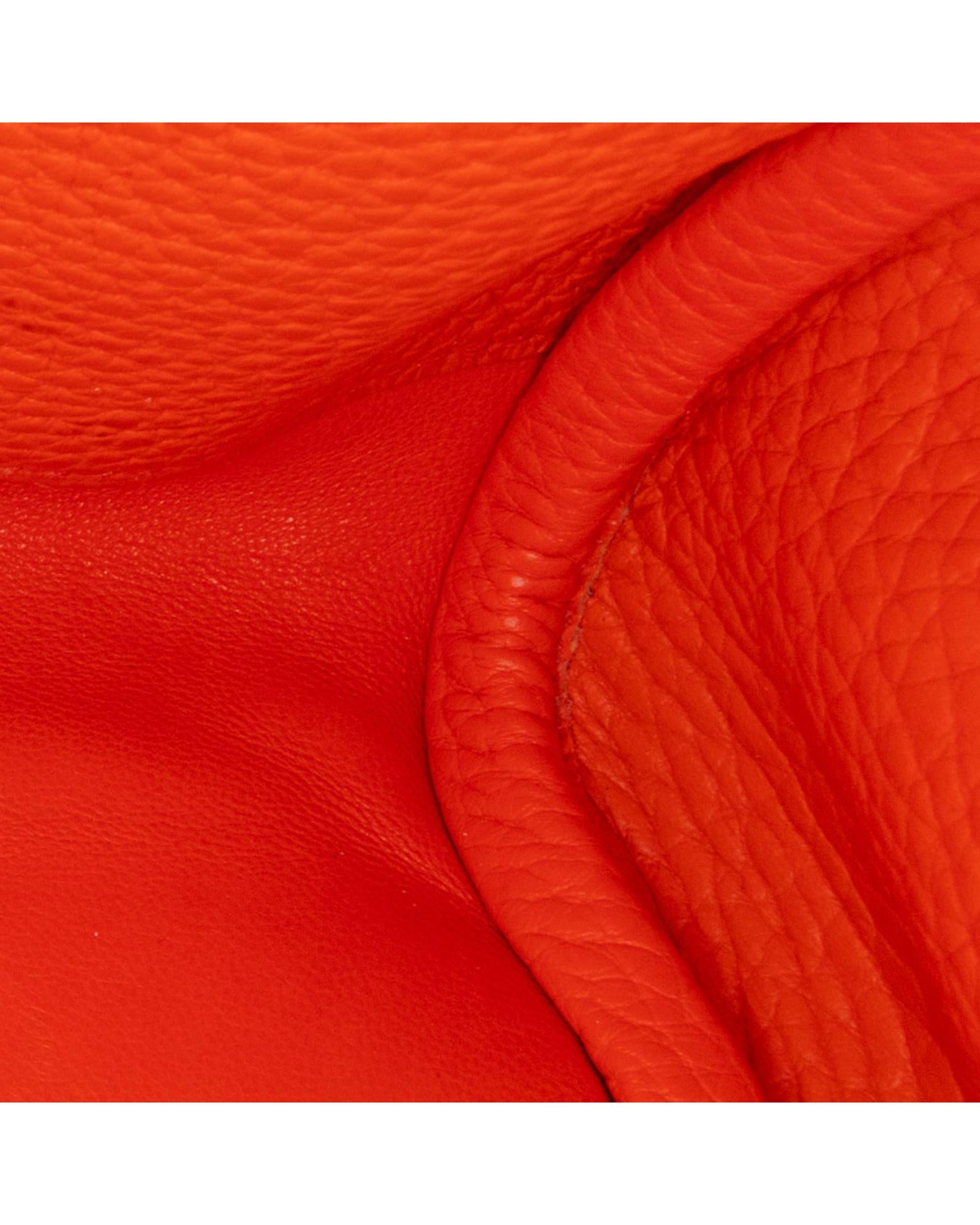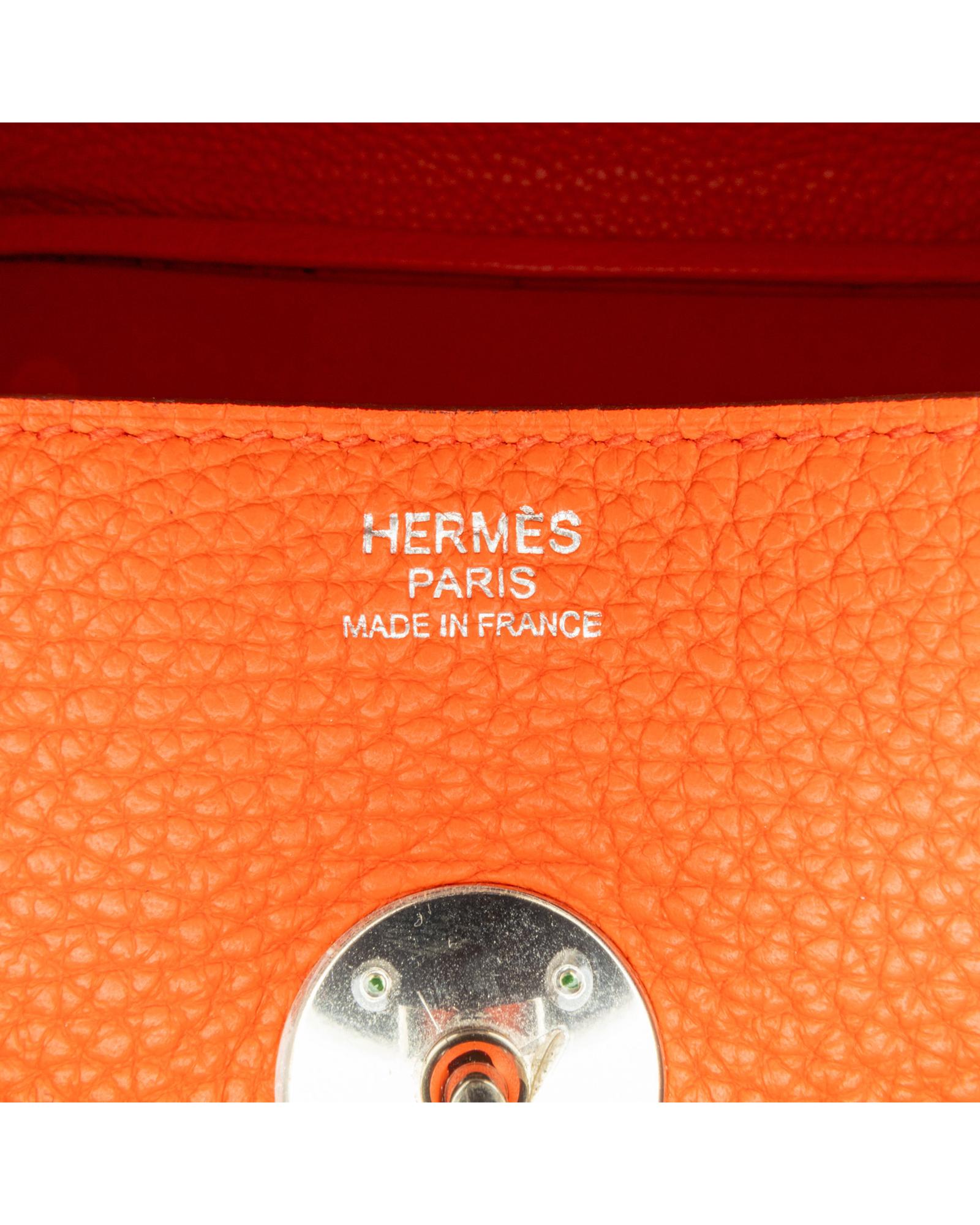 The Lindy features a Clemence leather body in Capucine color rolled leather handles a flat leather strap and double top zip closures with a top flap and metal turnlock closure.Brand: Hermes Vintage
