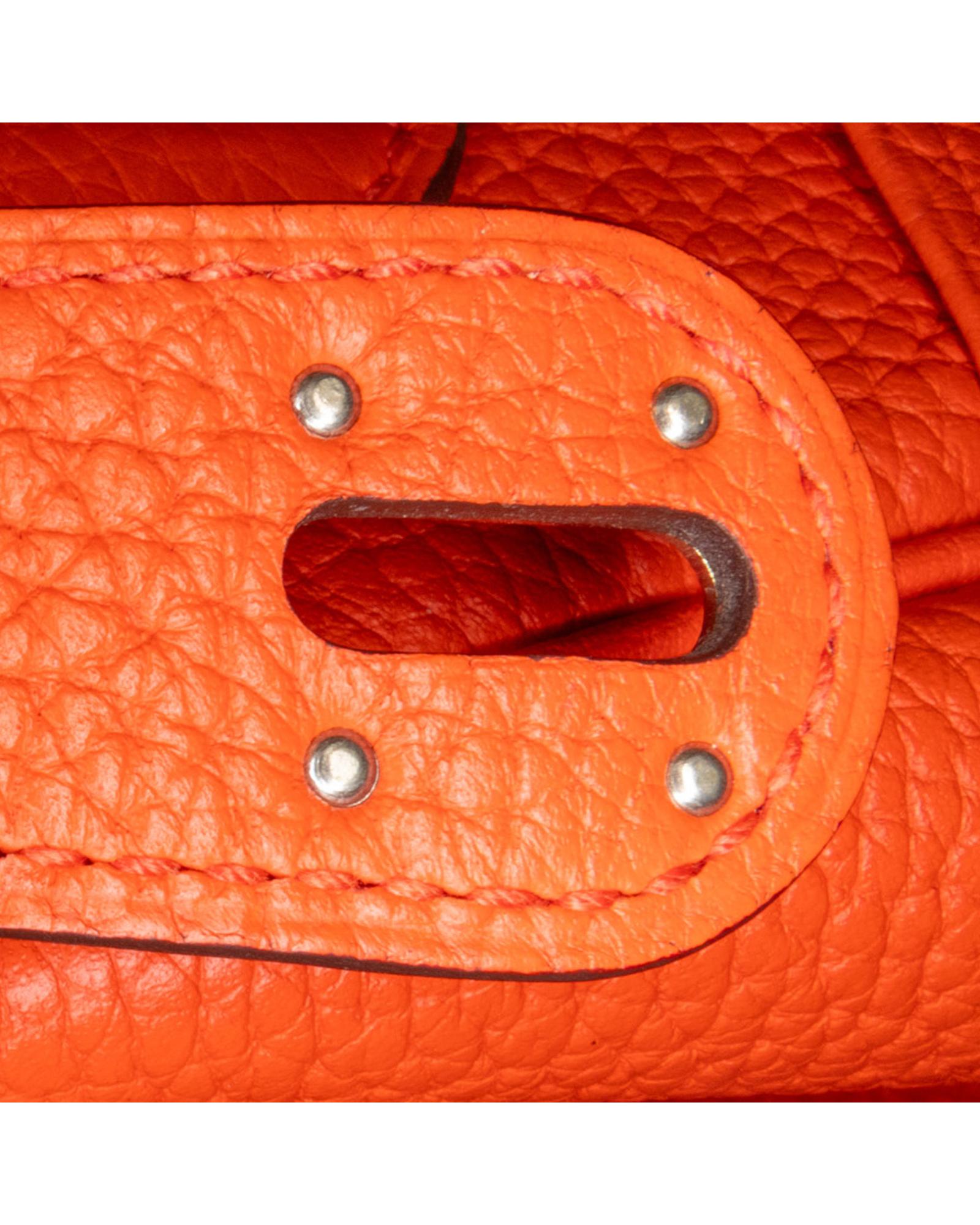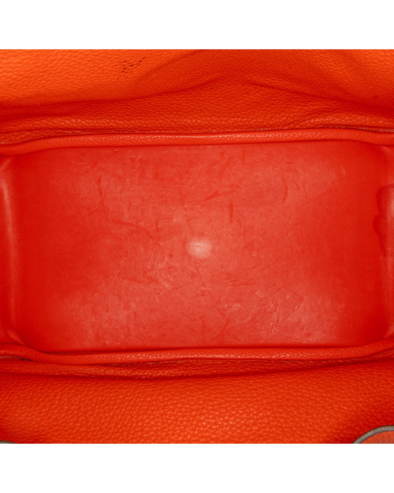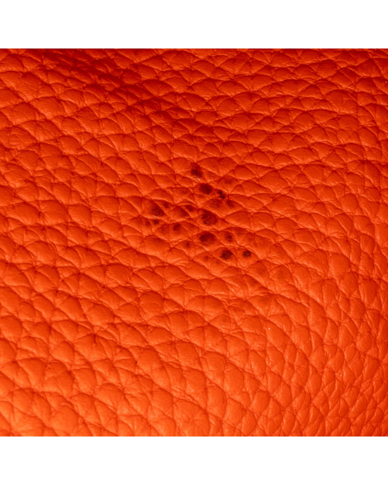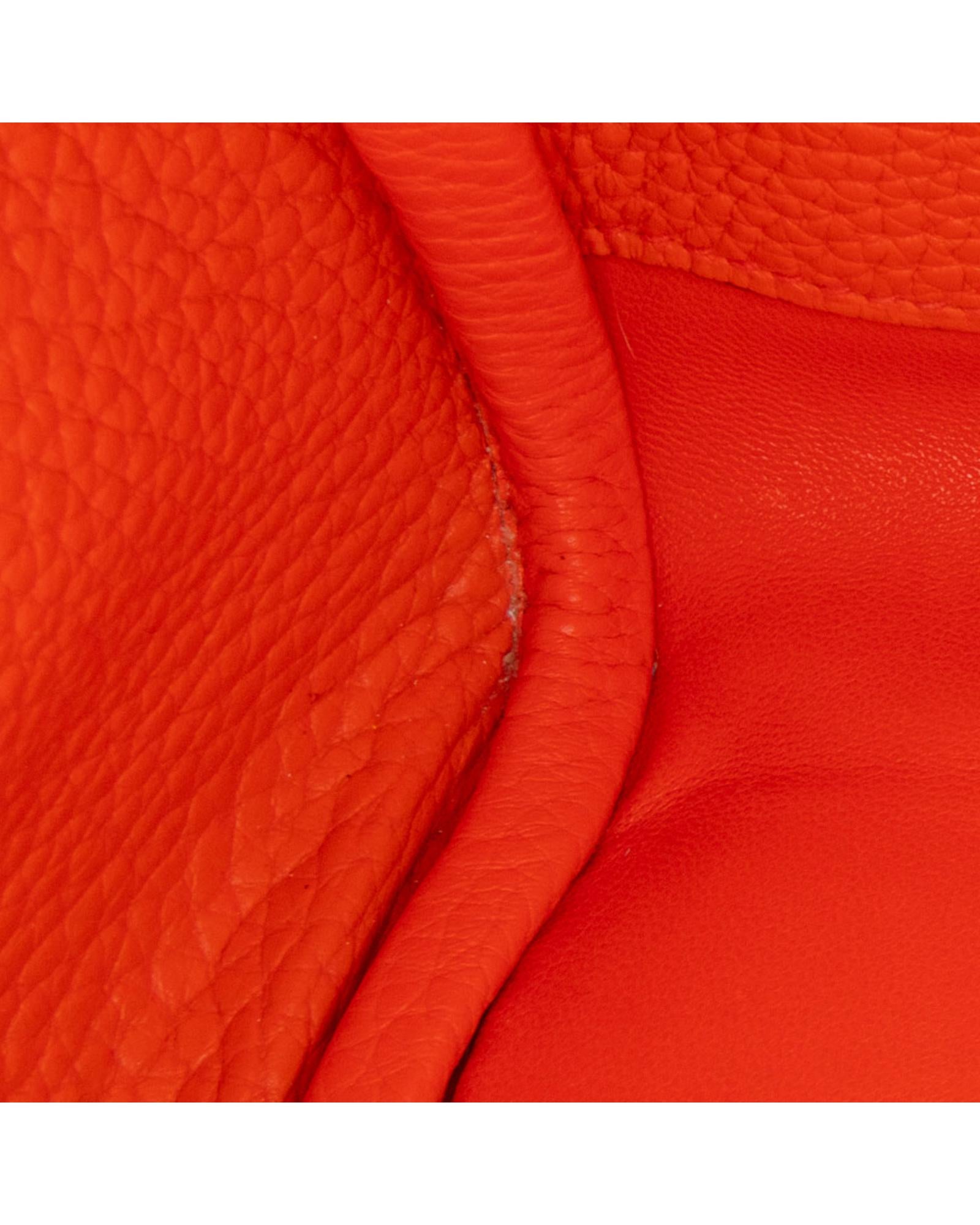 The Lindy features a Clemence leather body in Capucine color rolled leather handles a flat leather strap and double top zip closures with a top flap and metal turnlock closure.Brand: Hermes Vintage