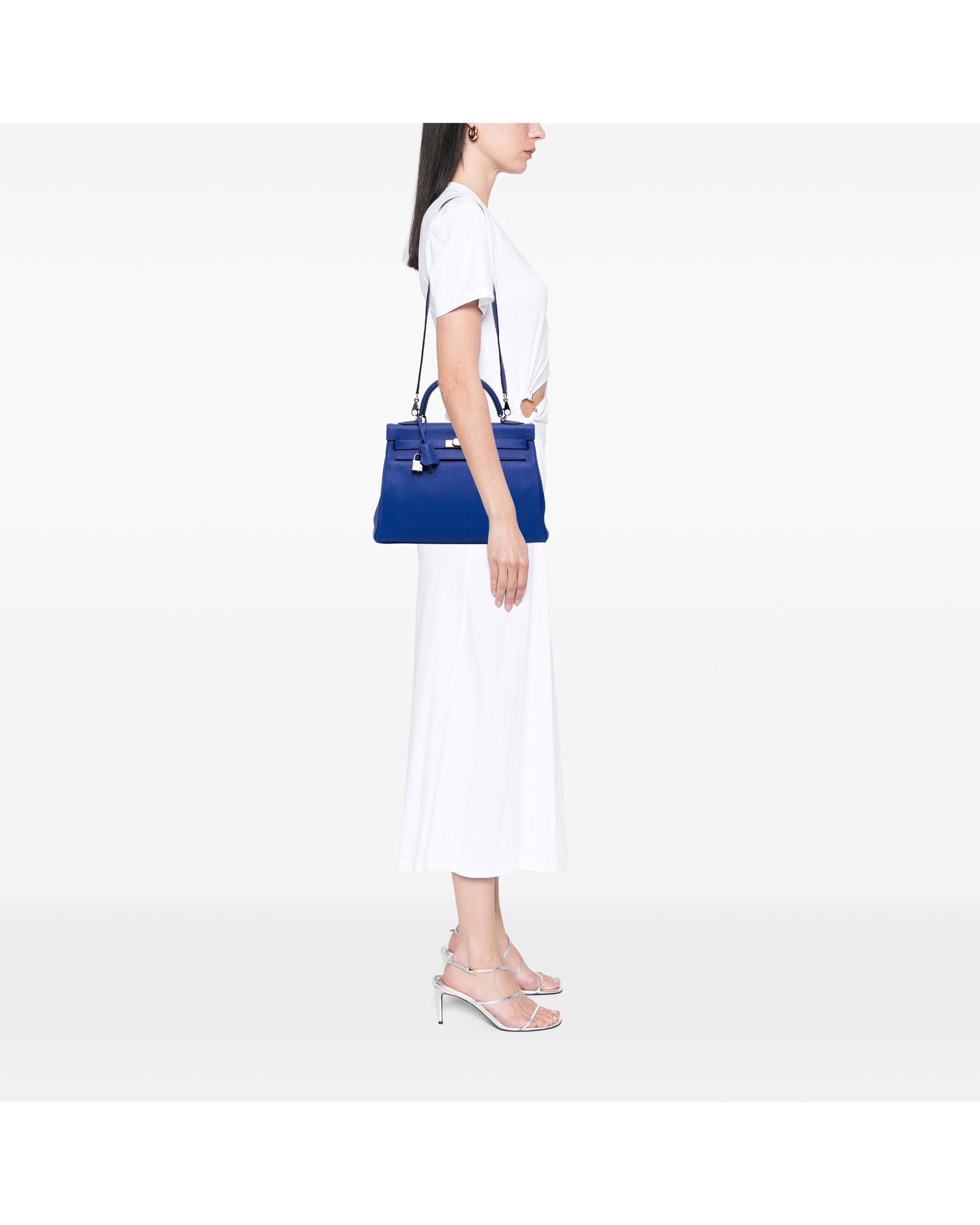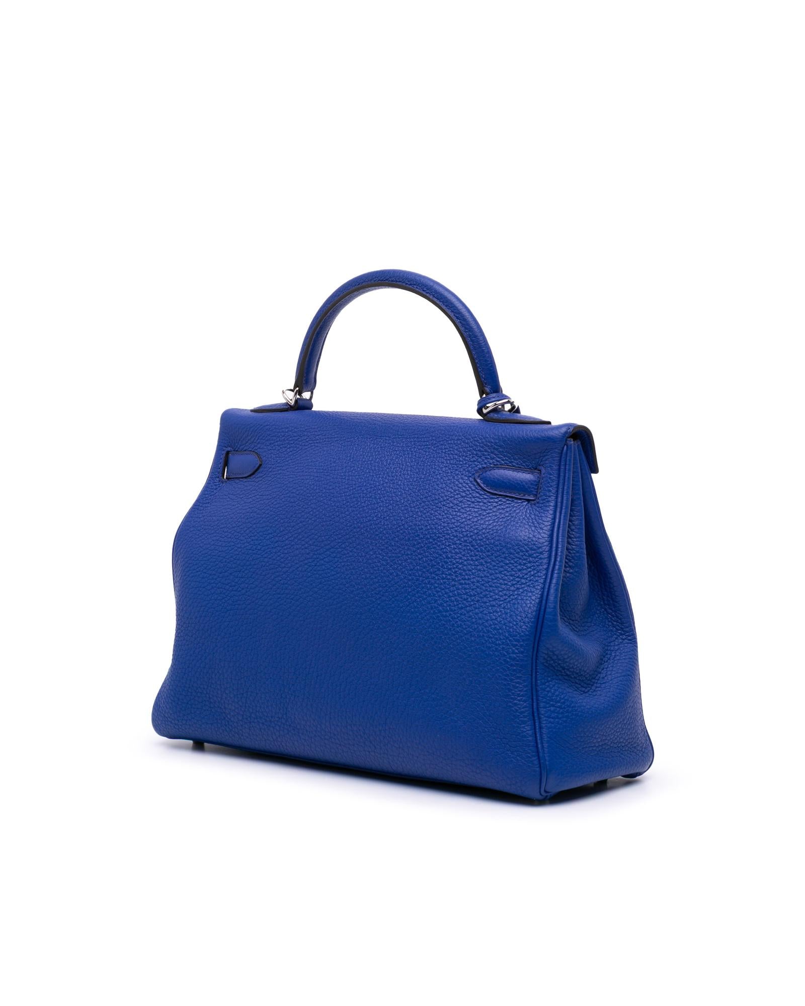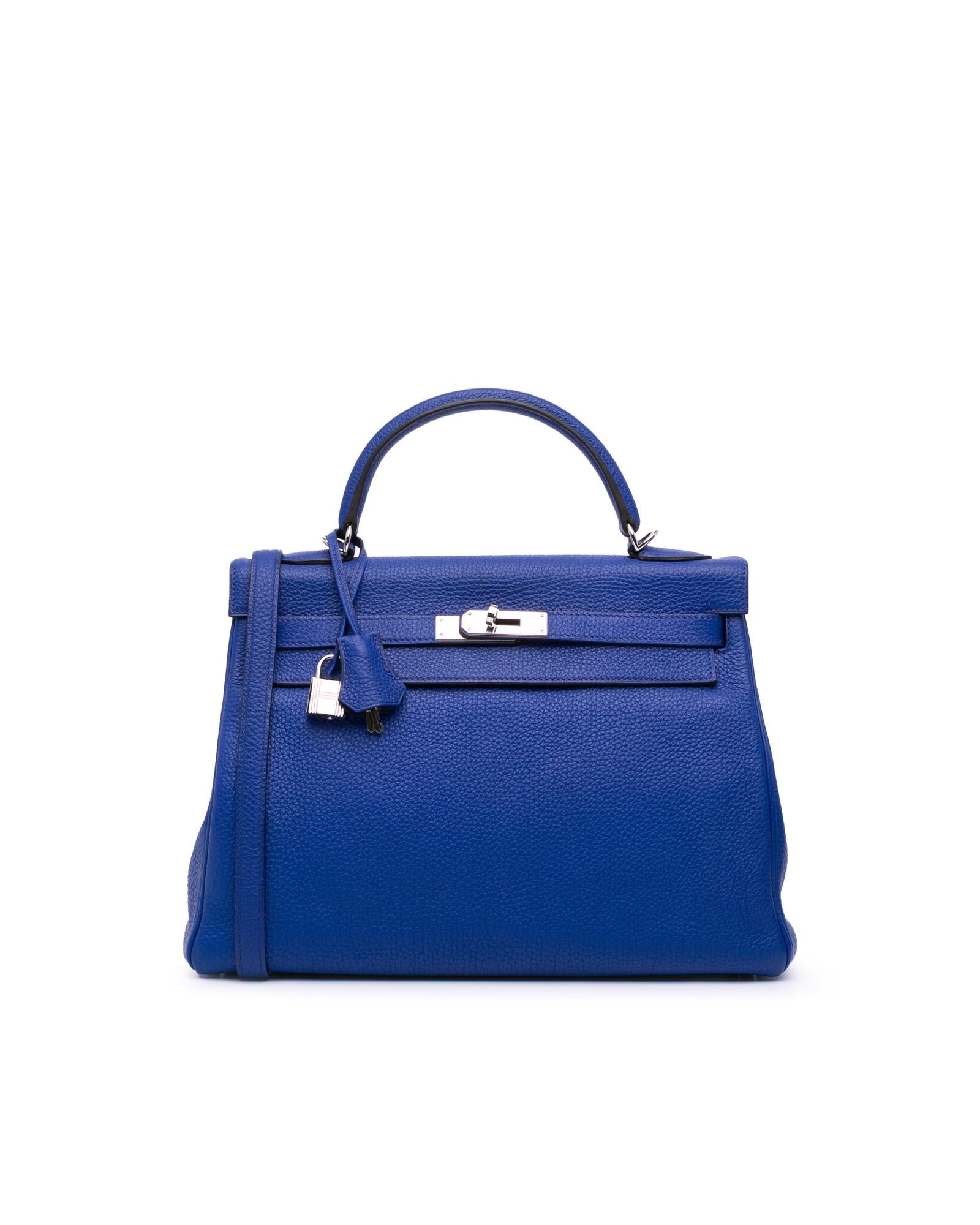 The Kelly 32 features a leather body a flat top handle a detachable strap a top flap with twist lock closure silver-tone hardware leather lining and interior zip and slip pockets.
