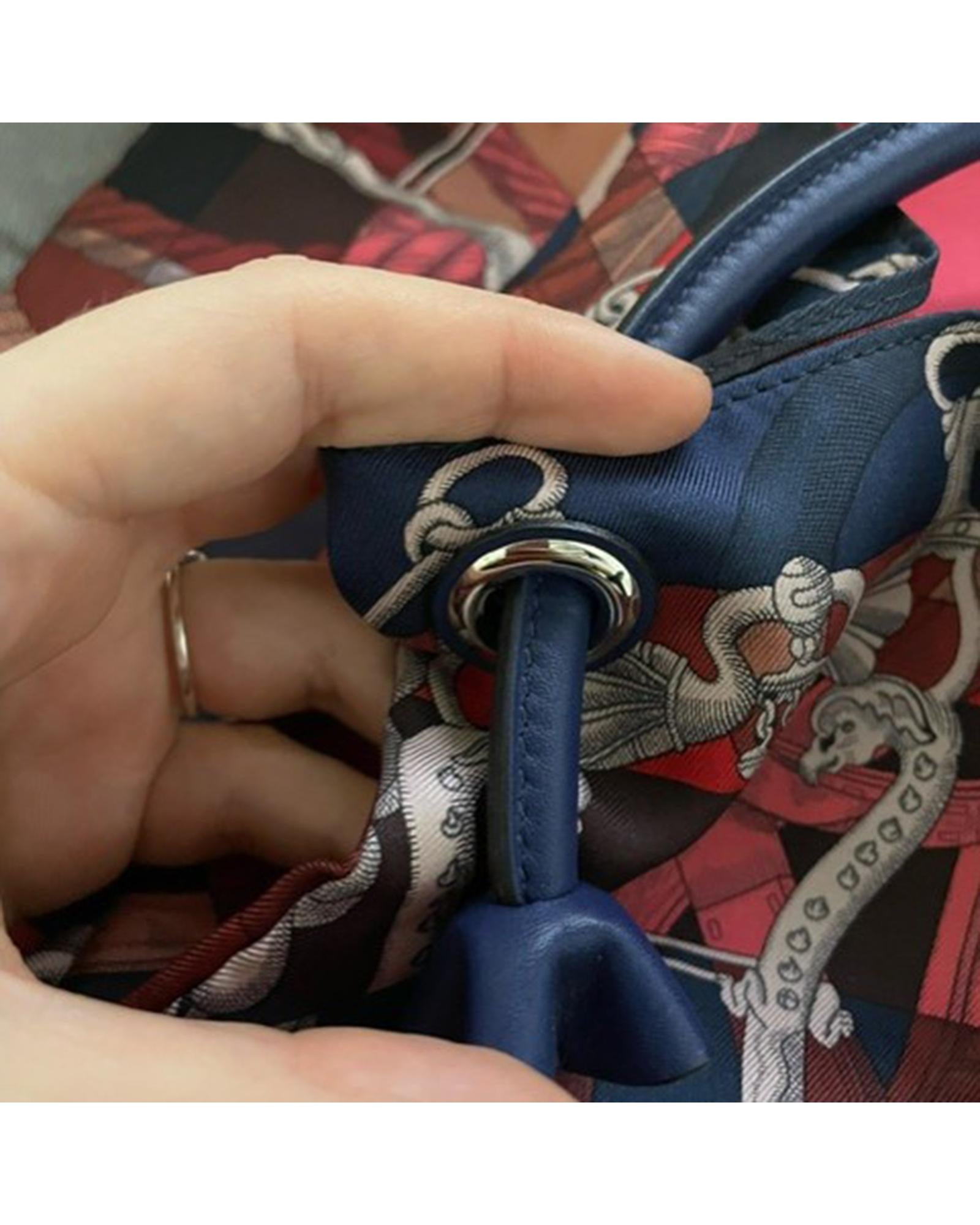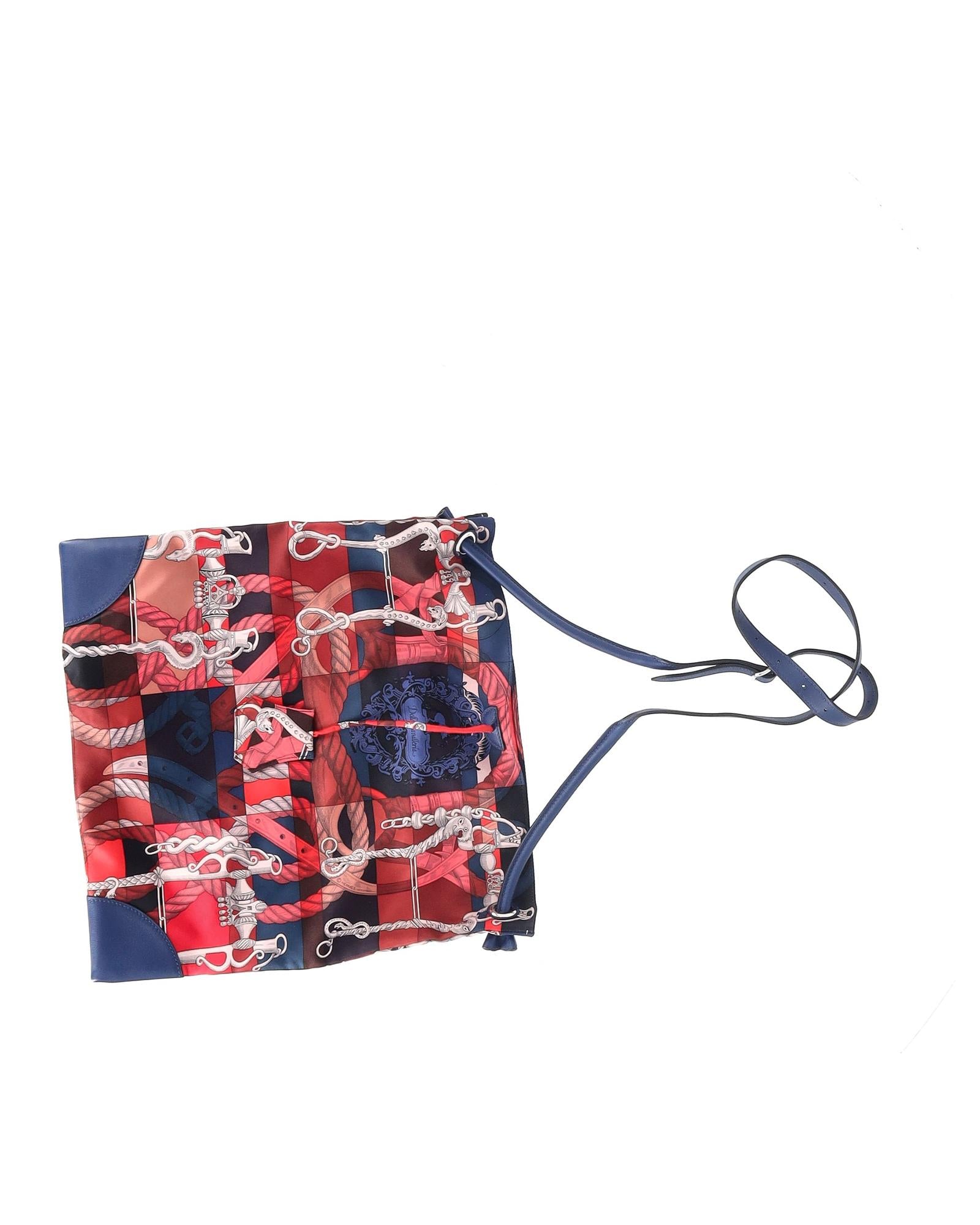 • Hermes Printed Silk City Bag in Multicolor Silk and Leather