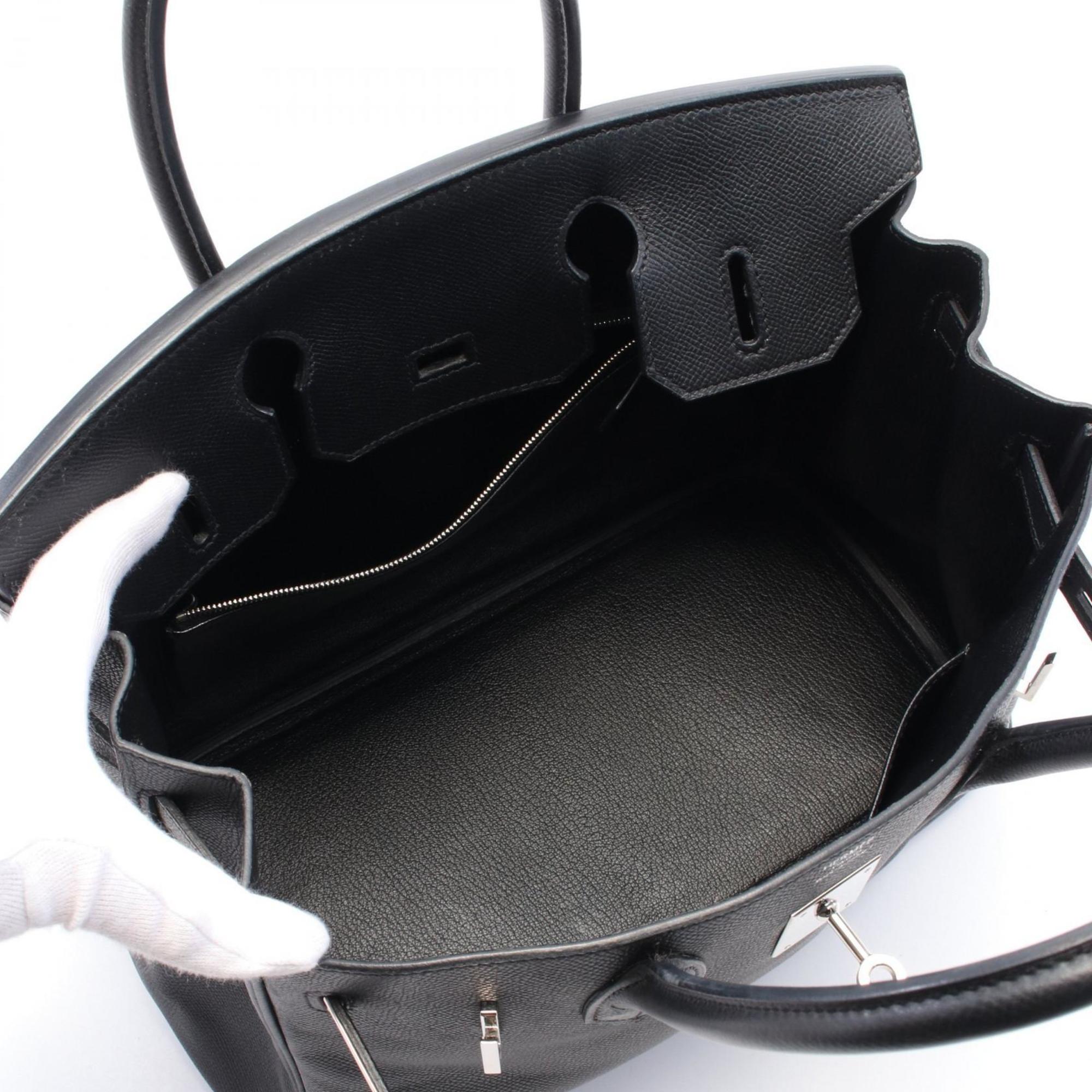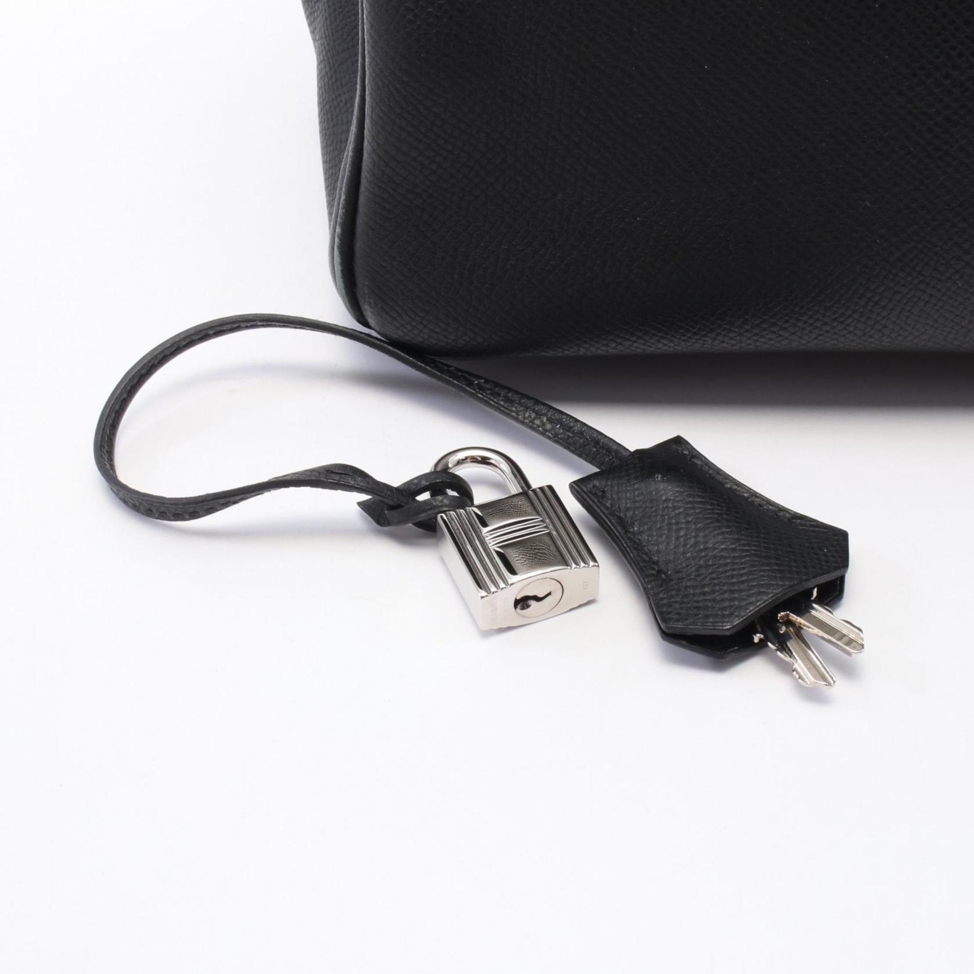 Brand: Hermes Model: Birkin 30 Color: Black Material: Leather Inclusions: Clochette Key Padlock Rain cover Dimensions: 24cm x 30cm x 15cm / 9.44'' x 11.81'' x 5.9'' Serial number: Square M Country of origin: France Condition: B - good condition. Outside condition : Slightly scratched stained and loss of shape Inside condition : Slightly stained Handle condition : Slightly scratched Corner condition : Rubbed Metal fittings condition : Slightly scratched