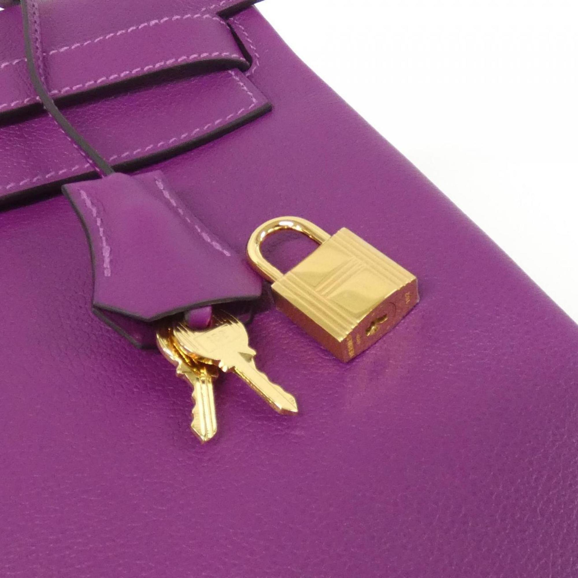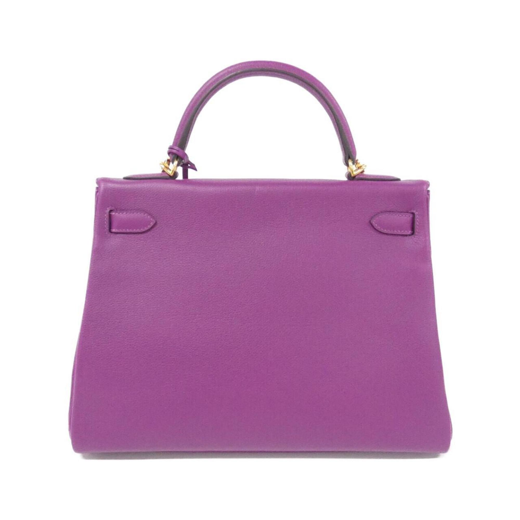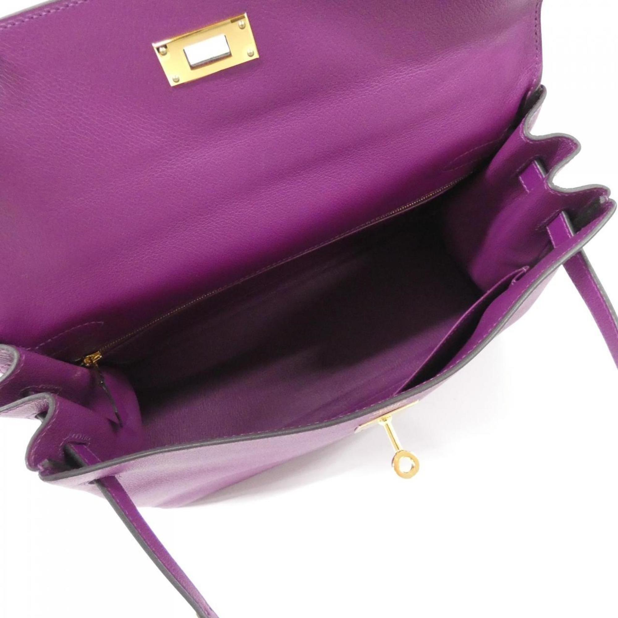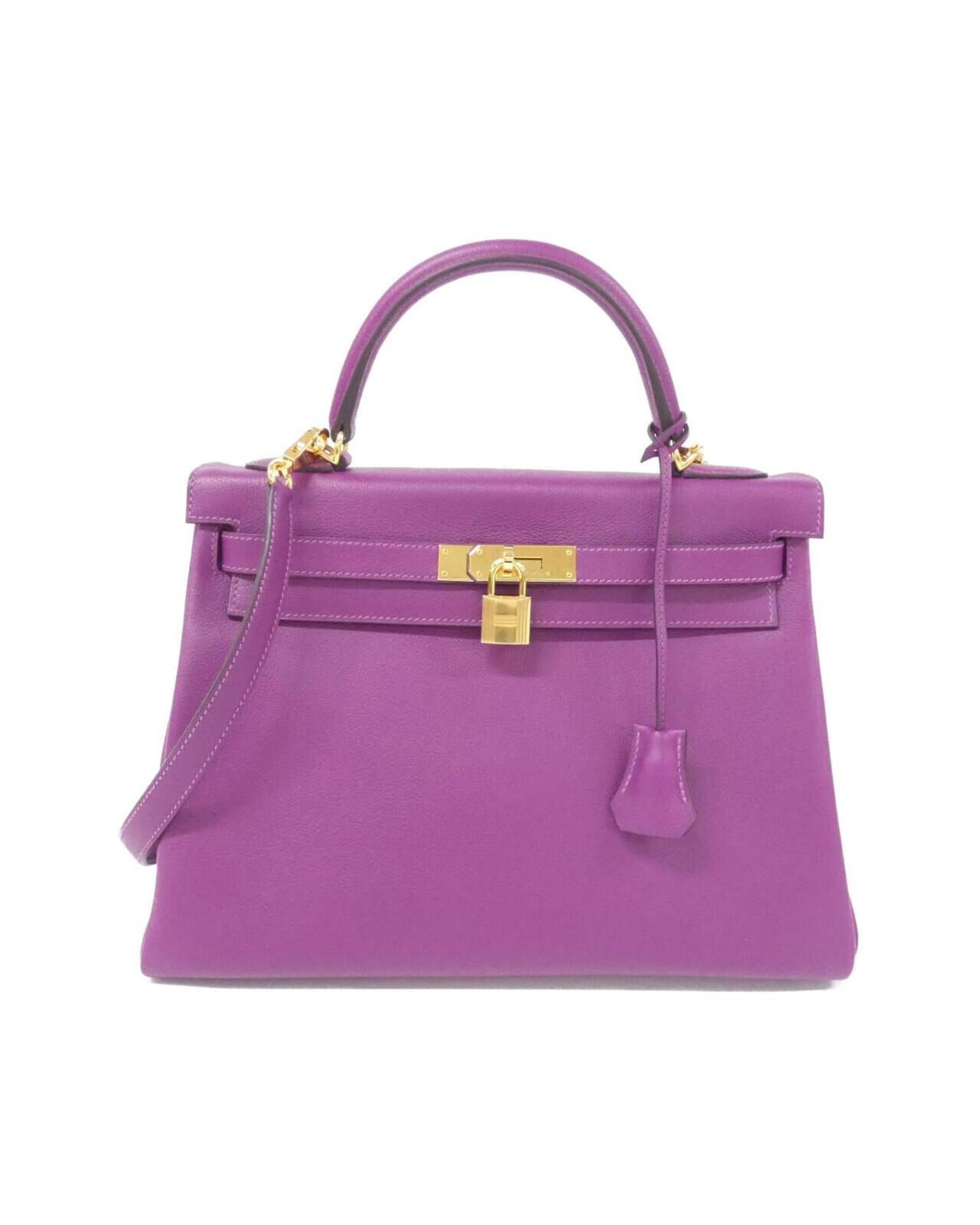 Brand: Hermes Model: Kelly 32 Color: Purple Material: Leather Inclusions: Clochette Dust bag Key Padlock Shoulder strap Dimensions: 23cm x 32cm x 11cm / 9.05'' x 12.59'' x 4.33'' Serial number: None Country of origin: France Condition: AB - good condition. Outside condition : Slightly scratched slightly stained Inside condition : Slightly scratched Handle condition : Slightly rubbed Corner condition : Slightly rubbed Metal fittings condition : Slightly scratched