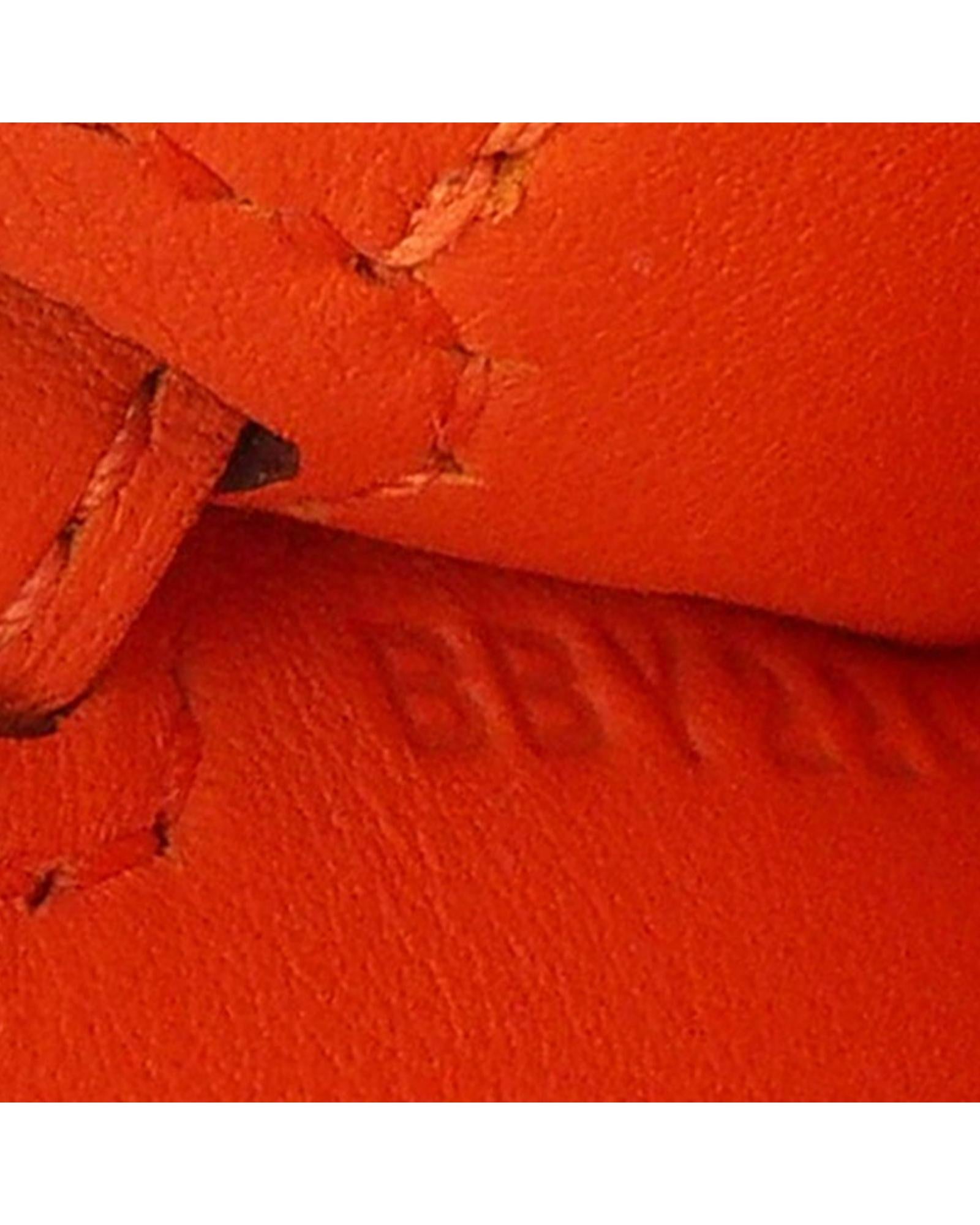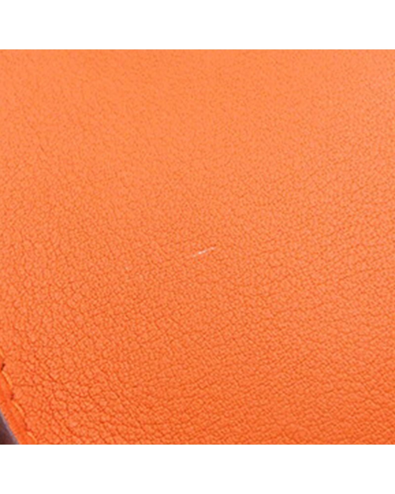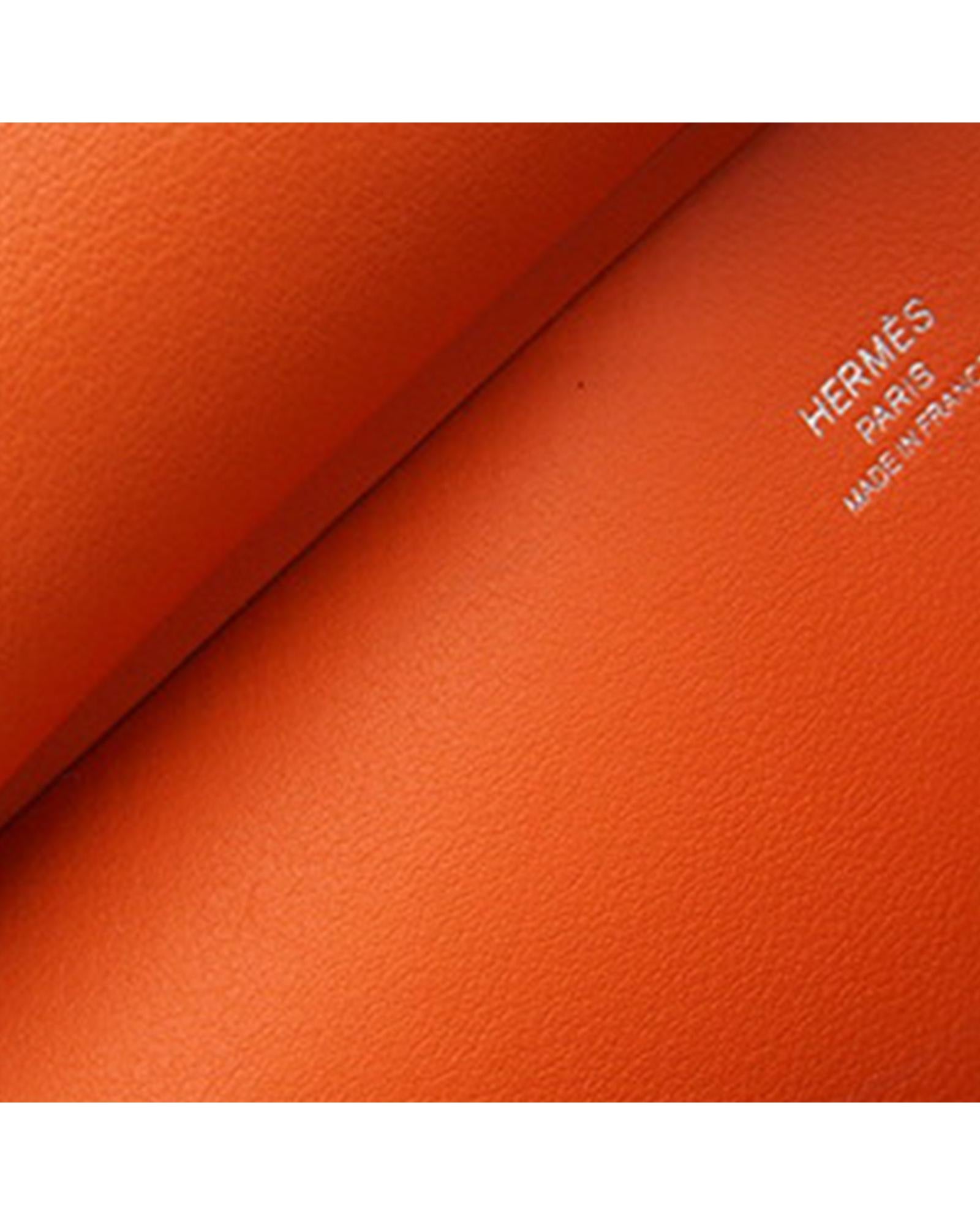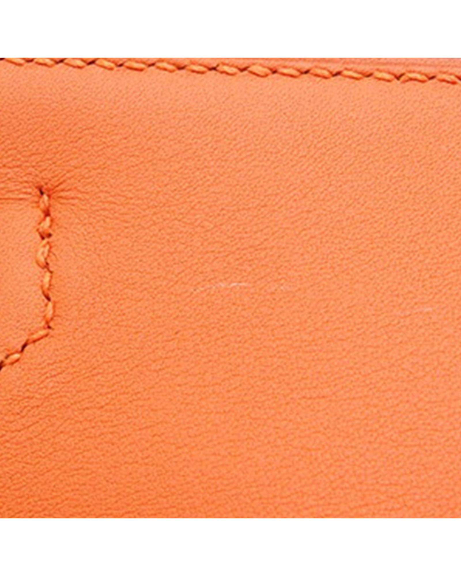 The Mini Jypsiere features a Swift leather body in Orange color a detachable flat leather strap a front flap with belt and twist lock closure and interior zip and slip pockets.Brand: Hermes Vintage