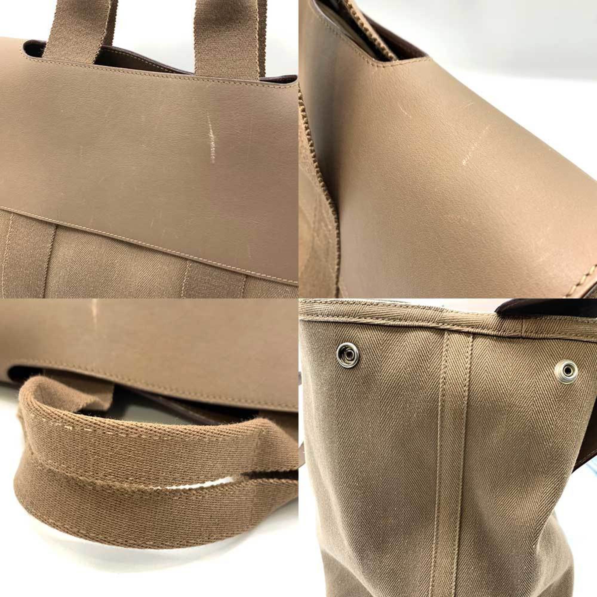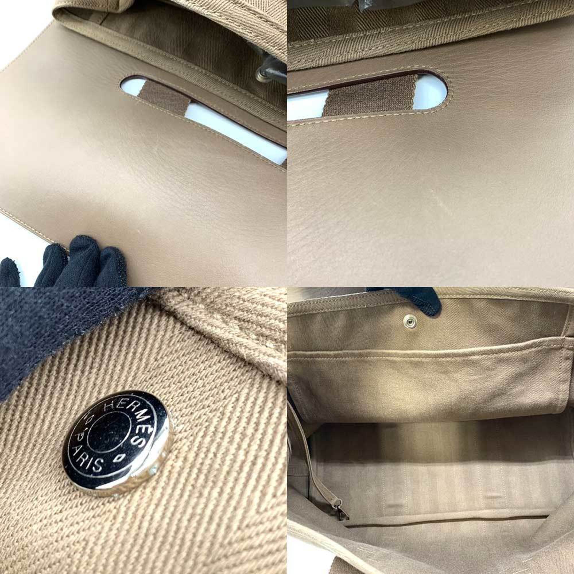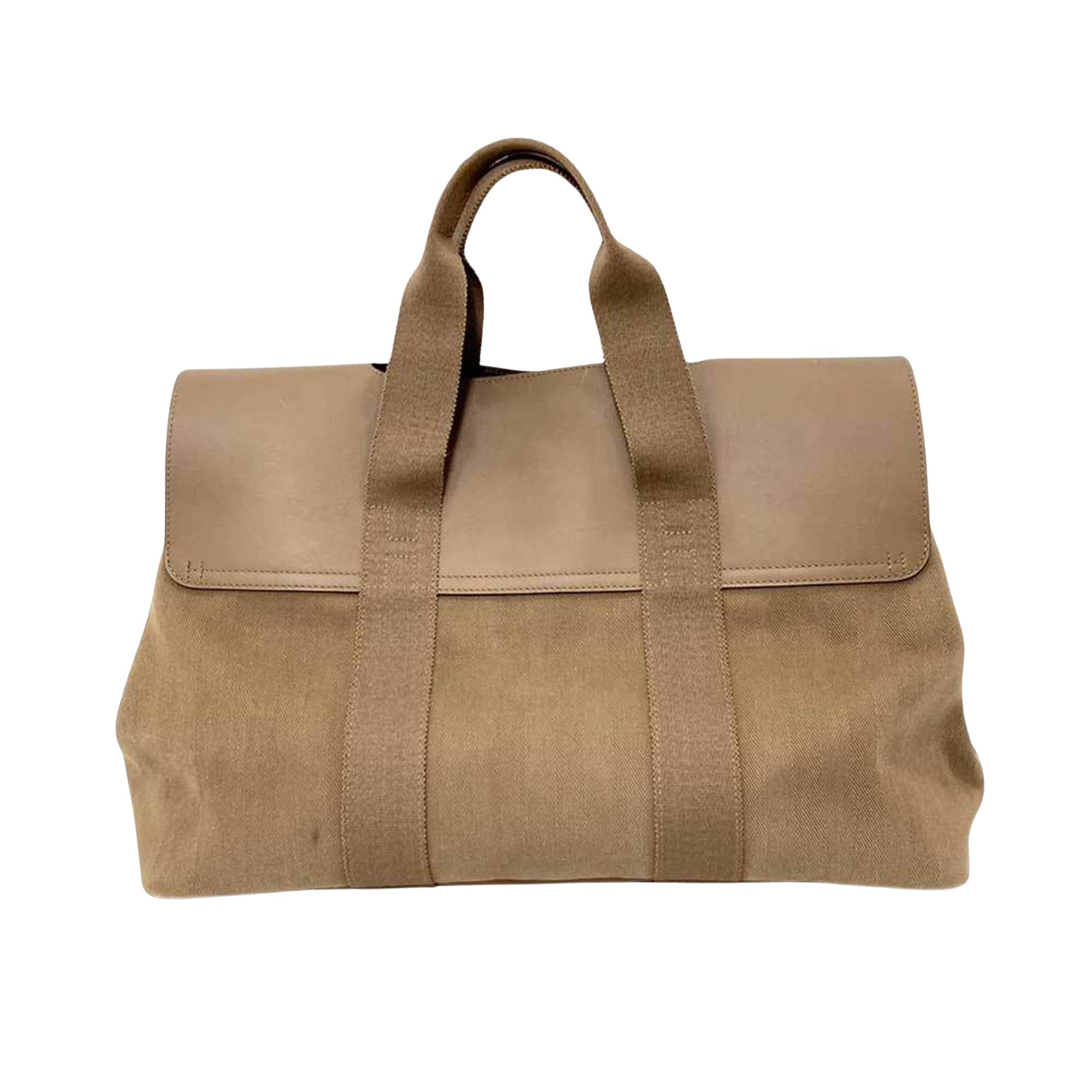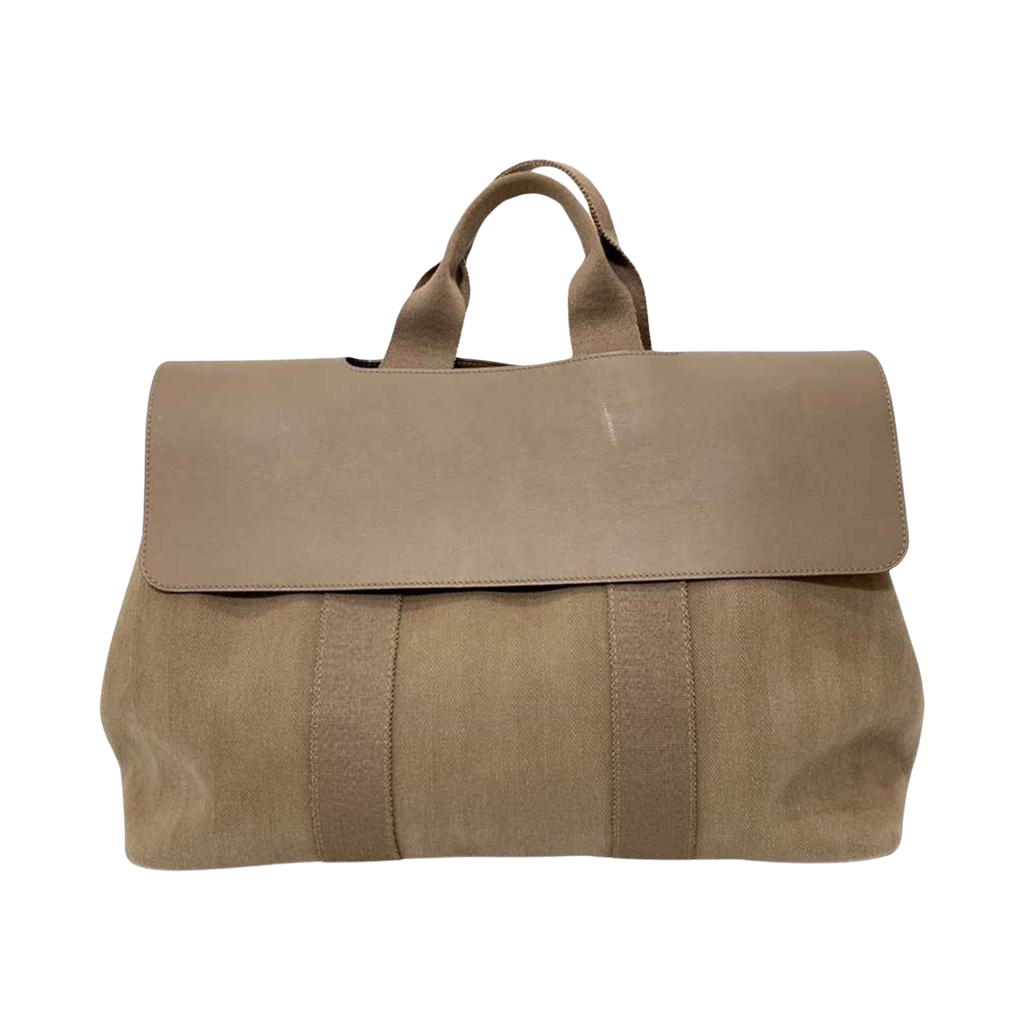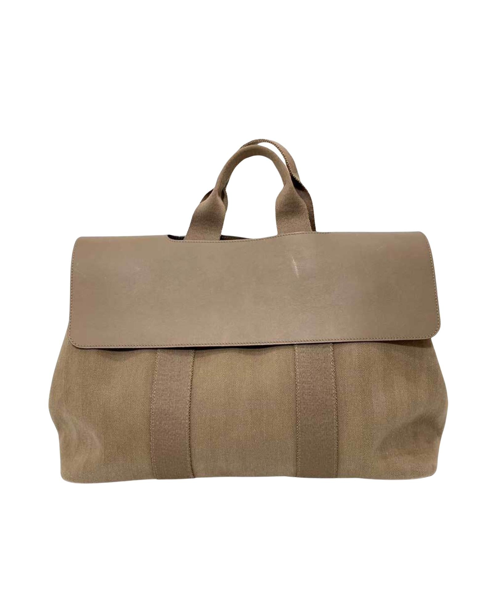 Brand: Hermes Model: Valparaiso Color: Beige Material: Canvas Inclusions: Dust bag Pouch Dimensions: 27.5cm x 40cm x 18cm Serial number: None Country of origin: France Condition: AB - good condition. The Hermes Valparaiso handbag is a sophisticated accessory tailored for women featuring a chic beige and grayish color palette with silver hardware. Crafted from toile chevron leather its design encompasses a flap closure and embodies luxury.  While exhibiting signs of use including scratches on the body and corners as well as some stains the bag maintains its overall good condition albeit with minor misshapenness peelings and lint balls on the exterior and wear on the interior. We recommend that you look at all the pictures before making your purchase to ensure that you are satisfied with the condition of the bag.