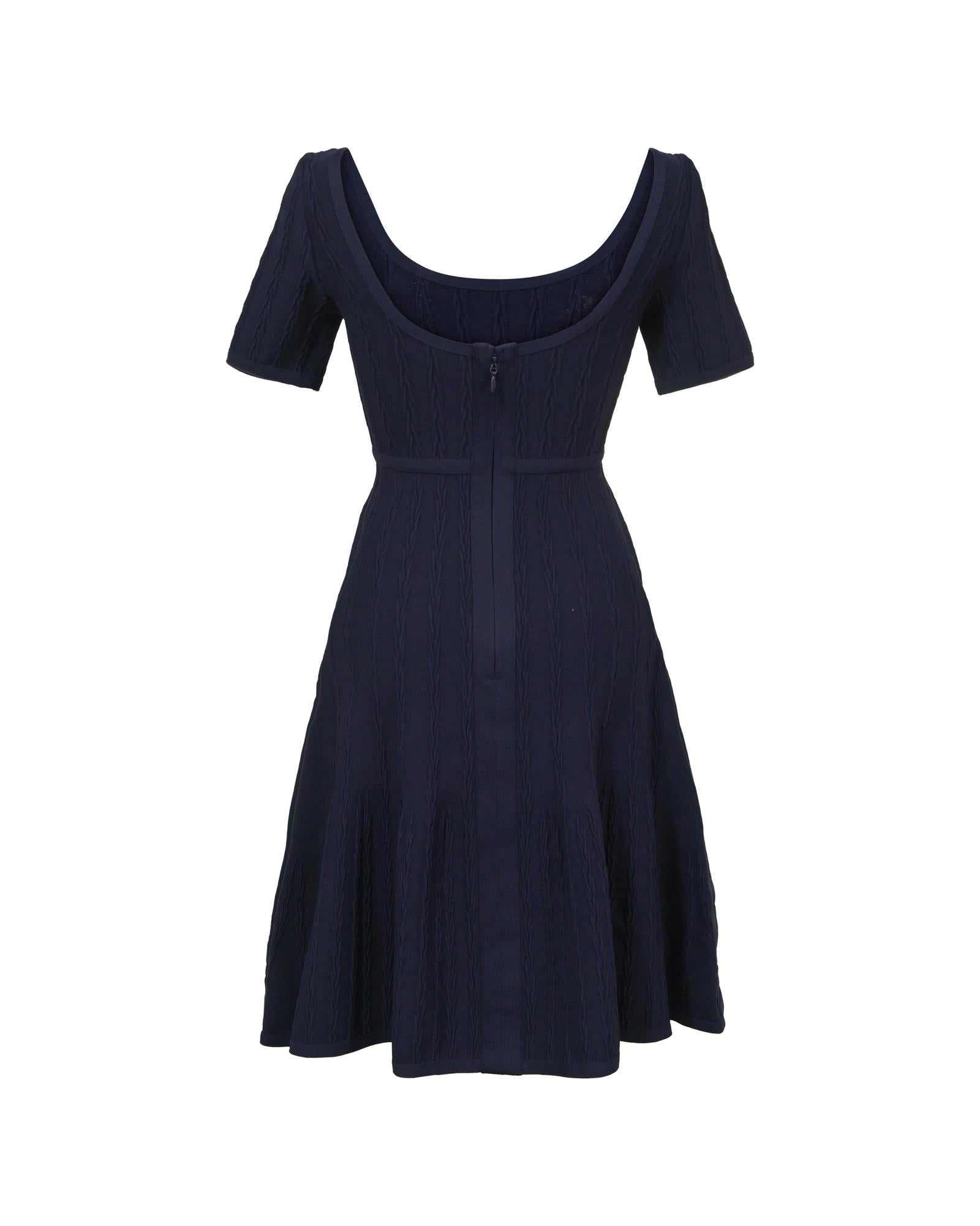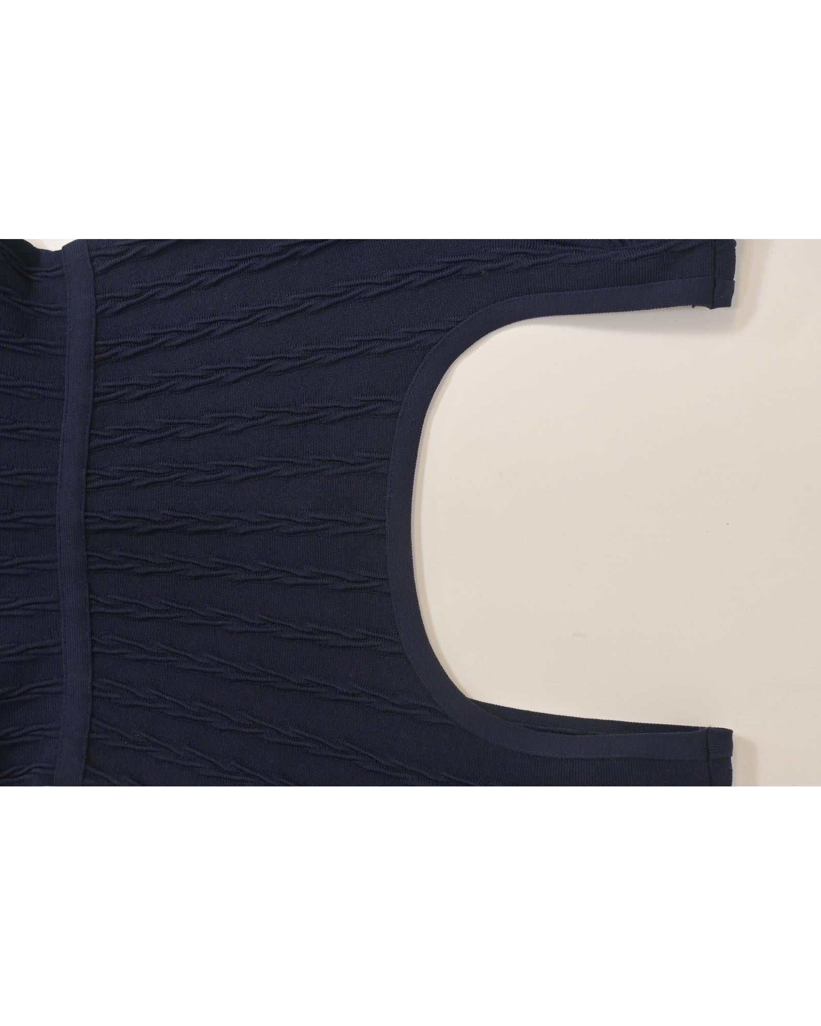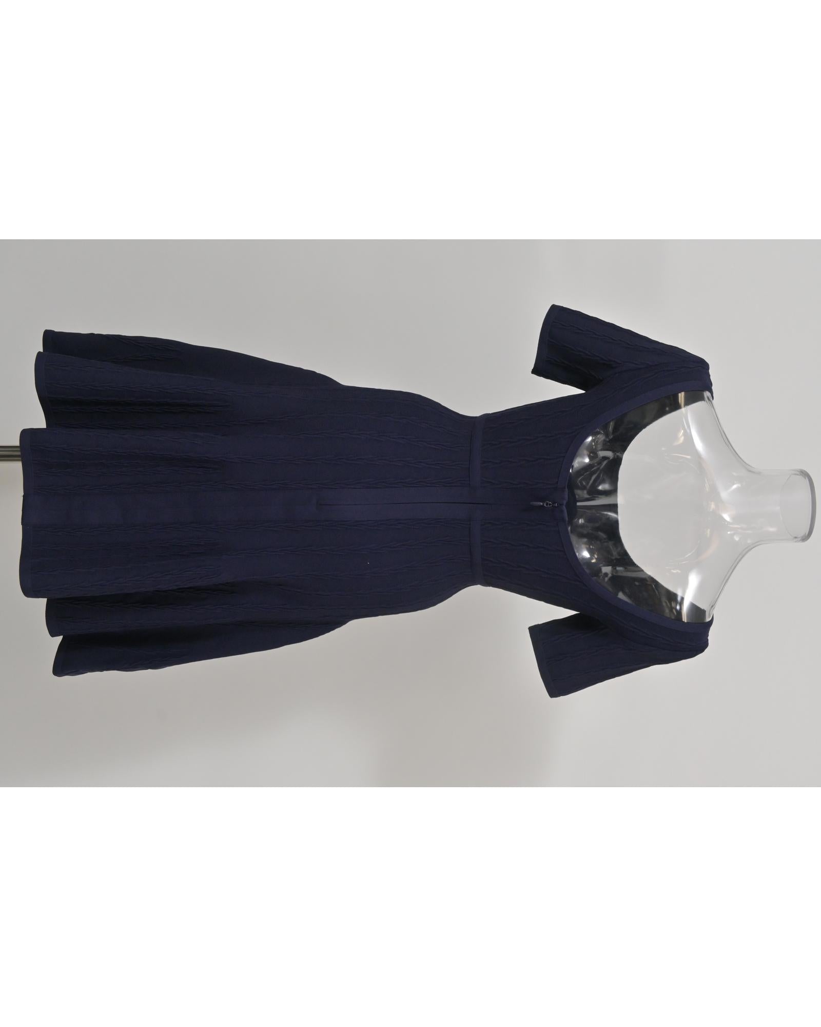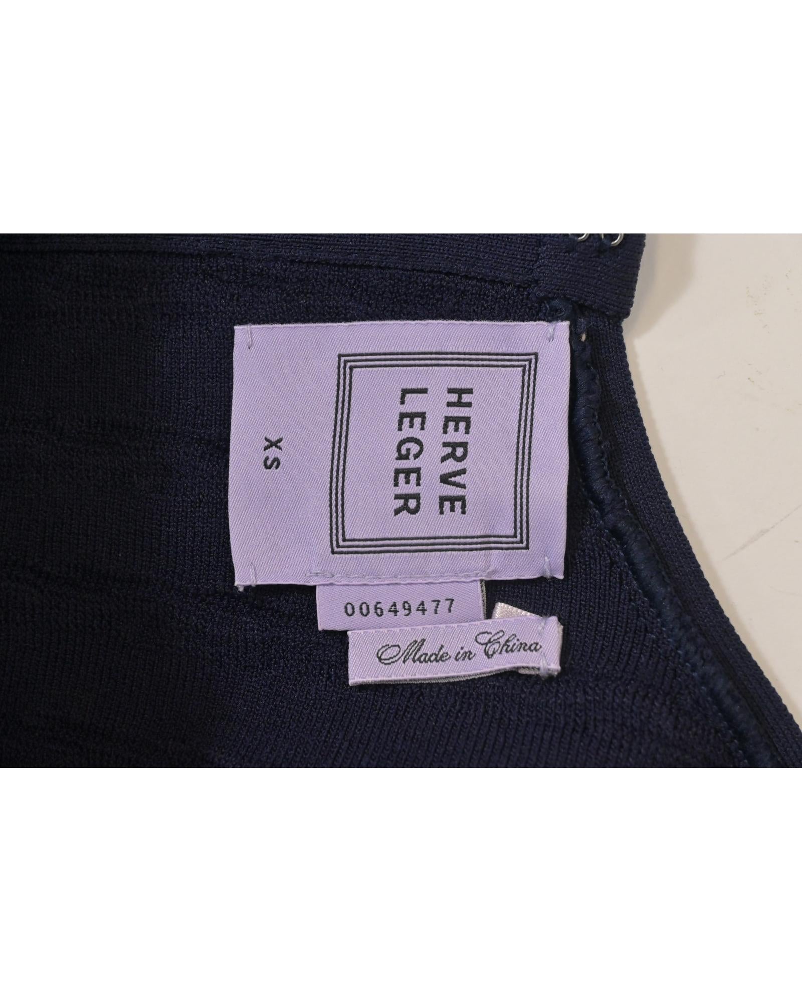 - Herve Leger Scooped Neck Dress in Navy Wool