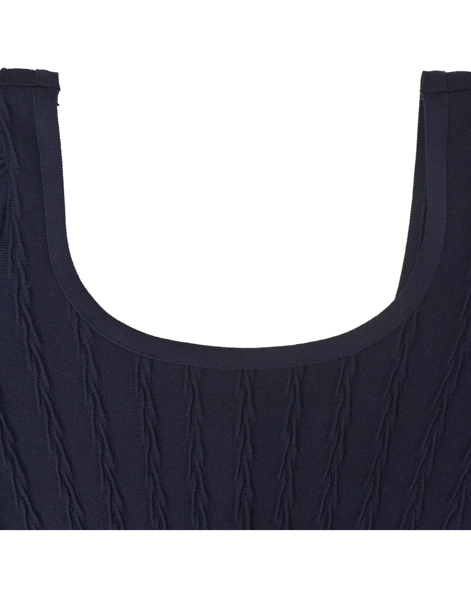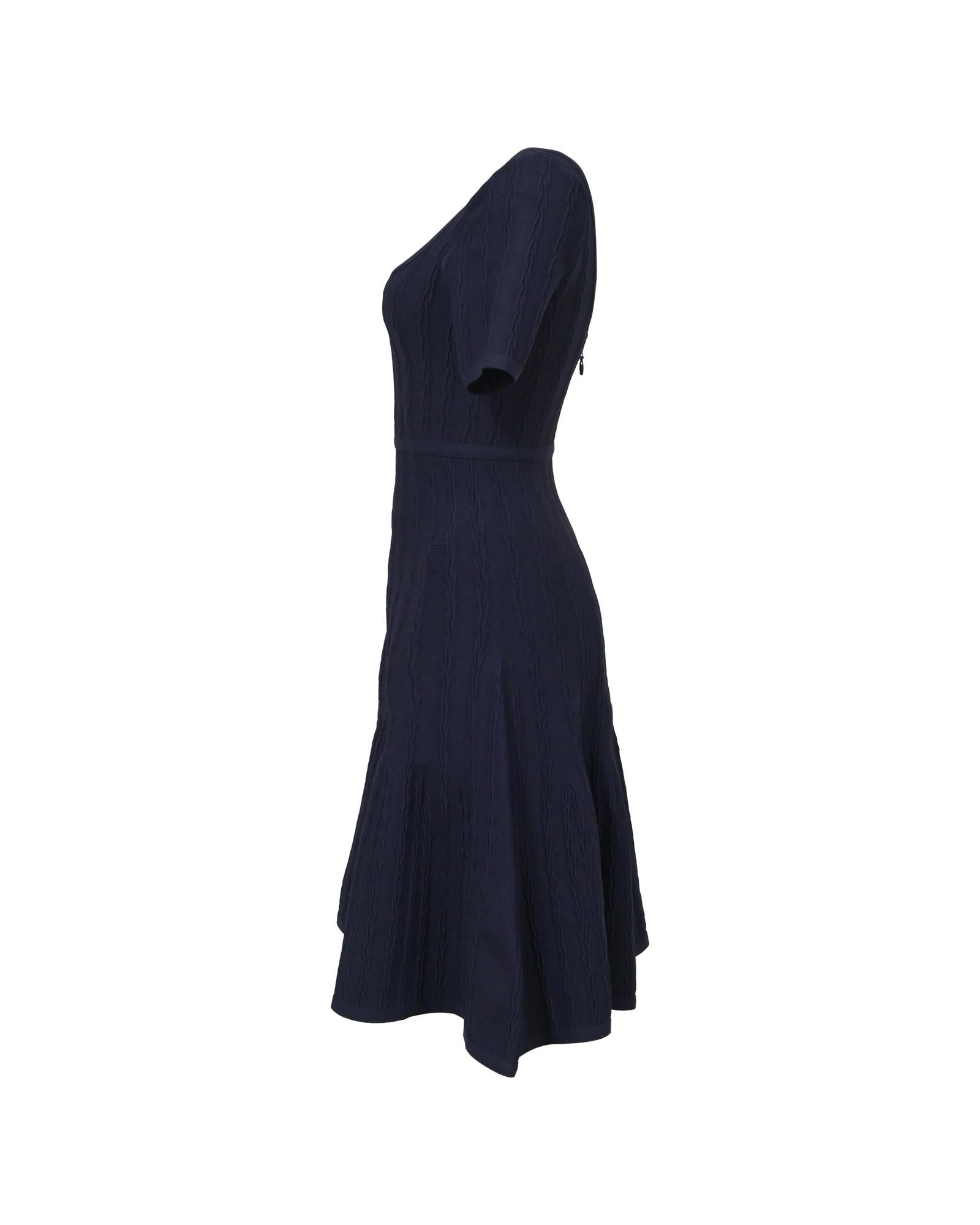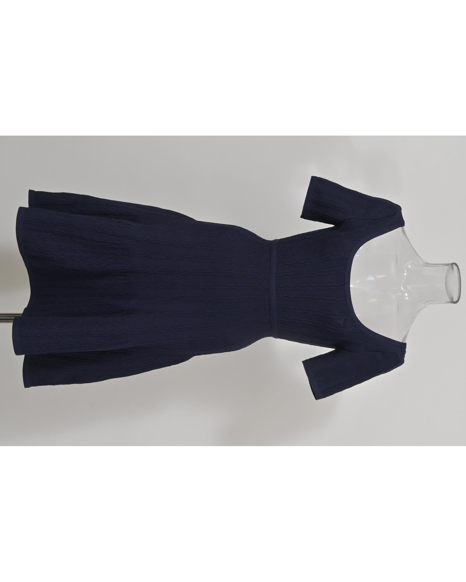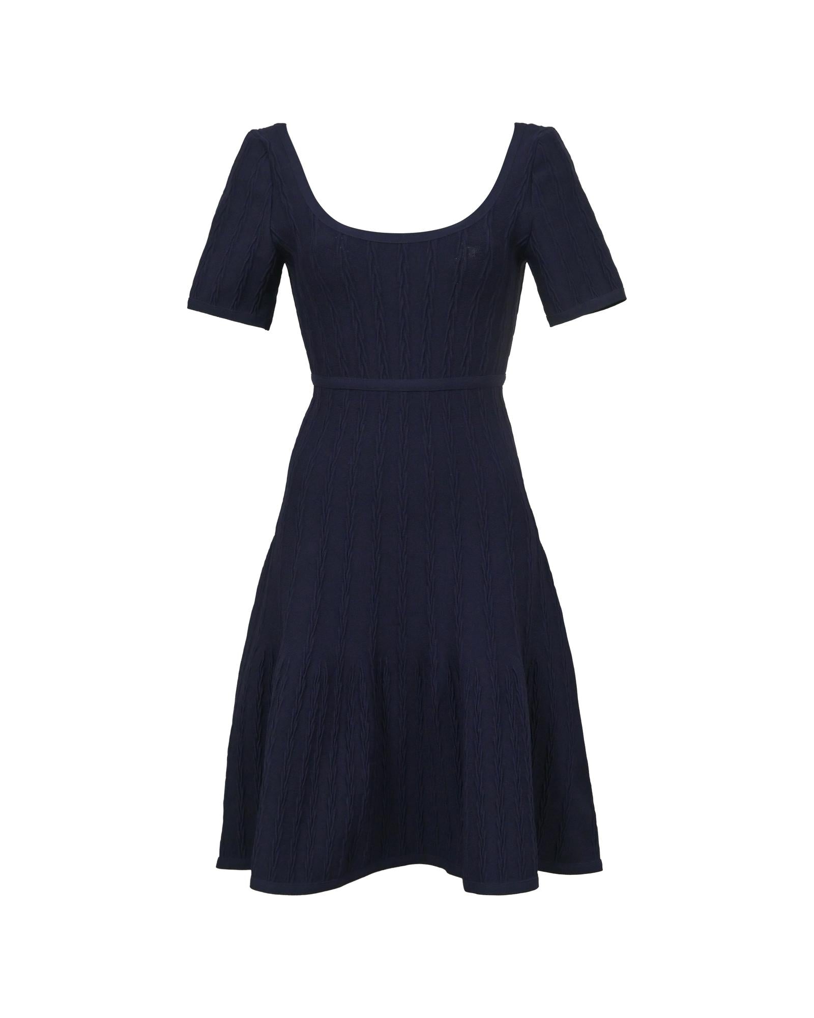 - Herve Leger Scooped Neck Dress in Navy Wool