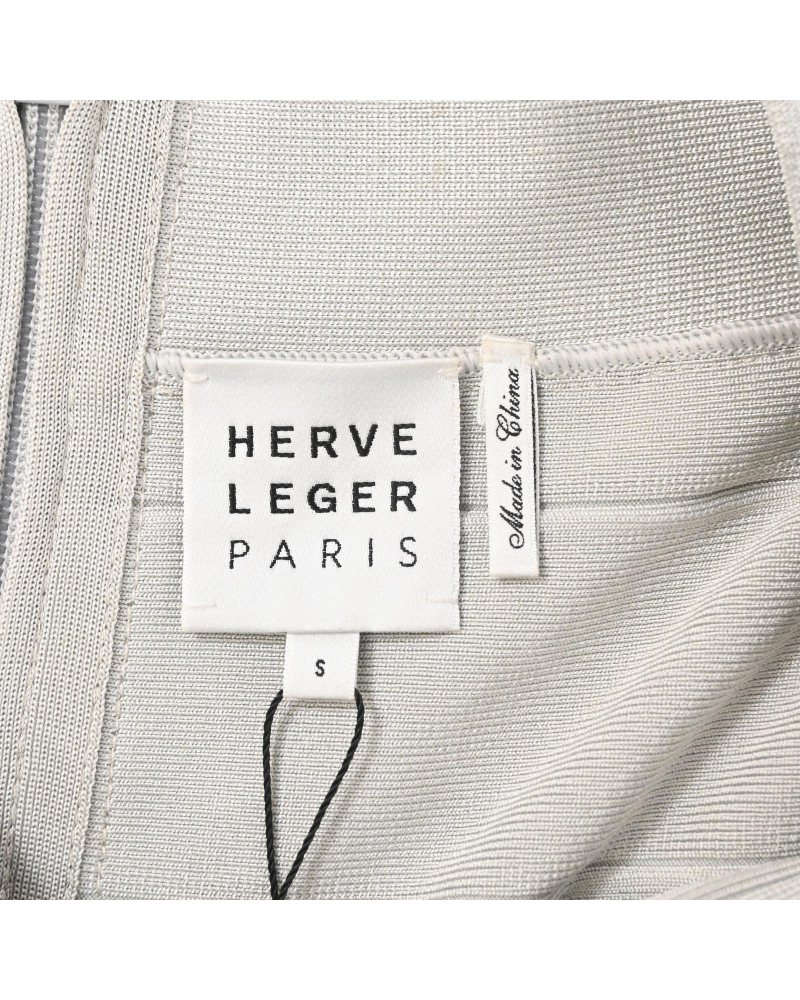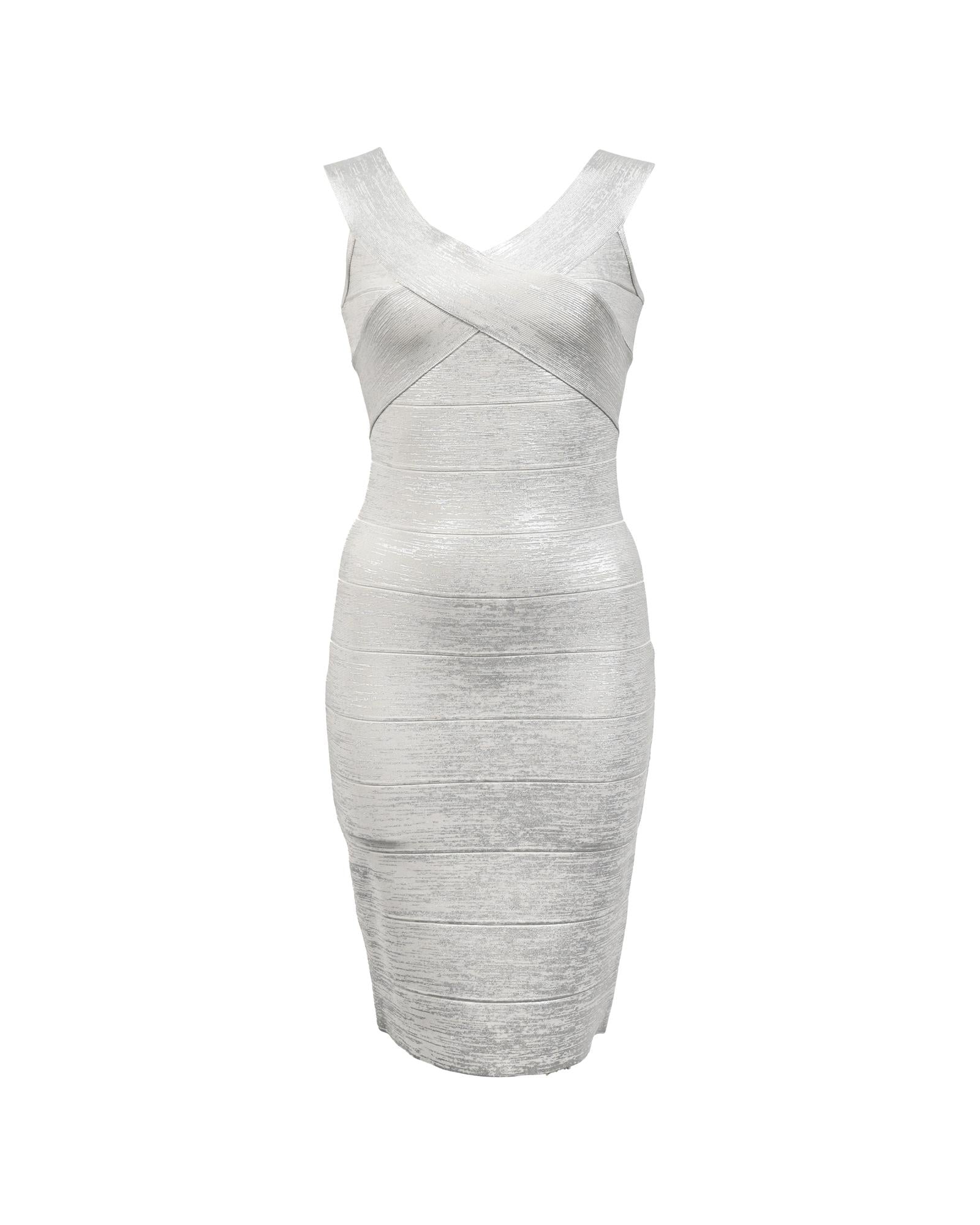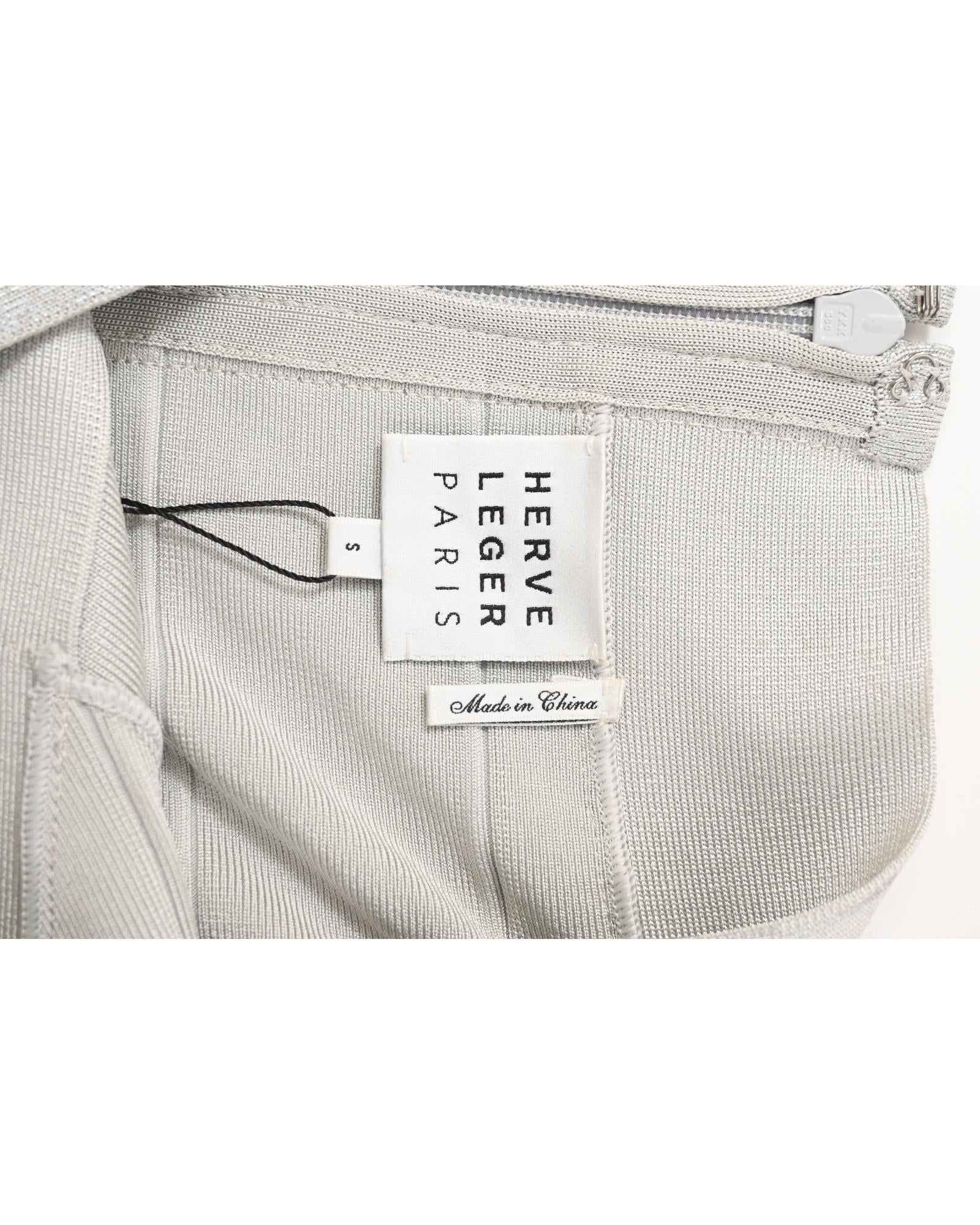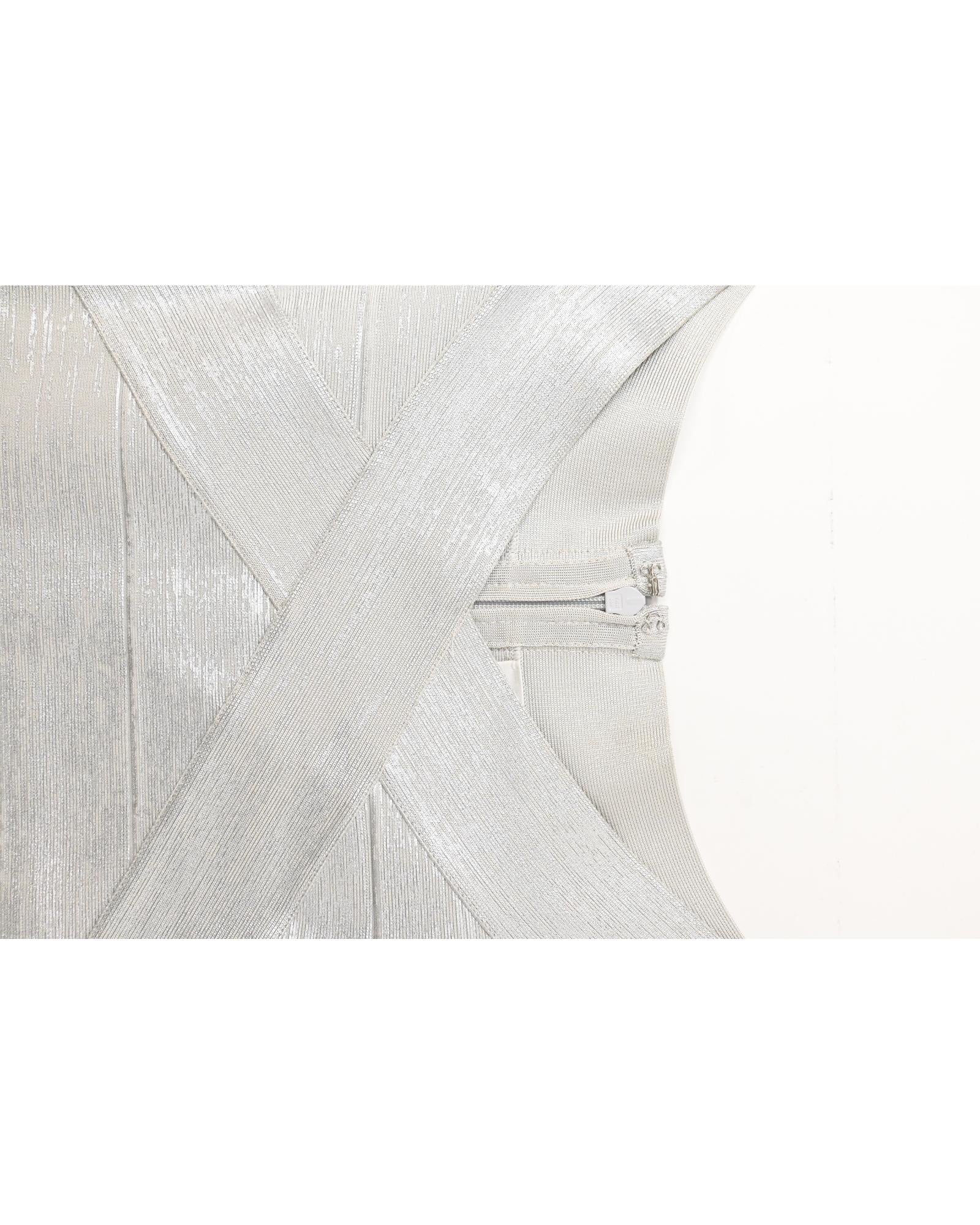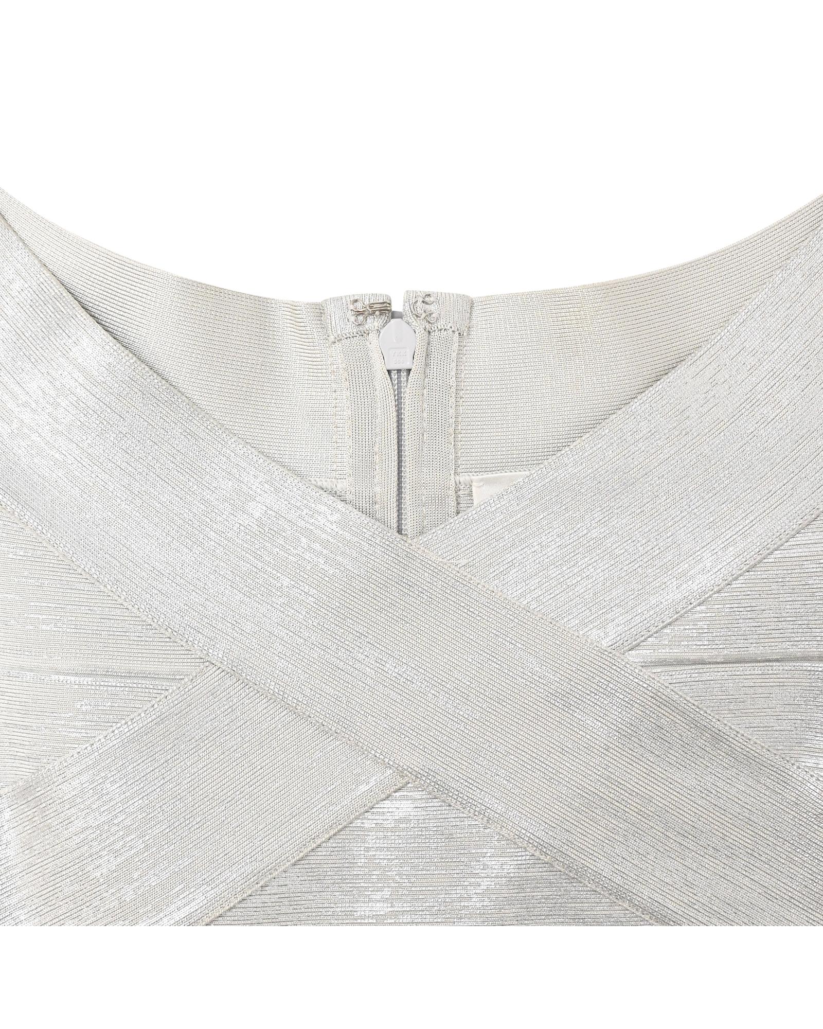 - Herve Leger Criss Cross Bandage Mini Dress in Silver Rayon