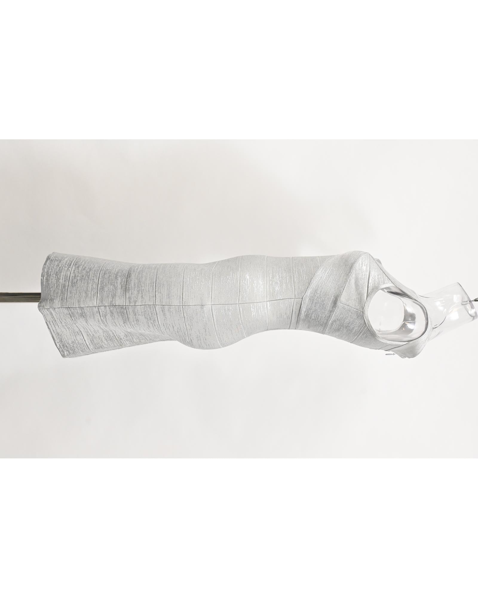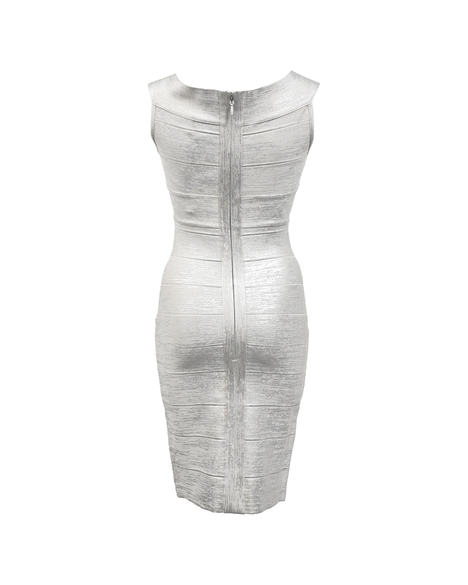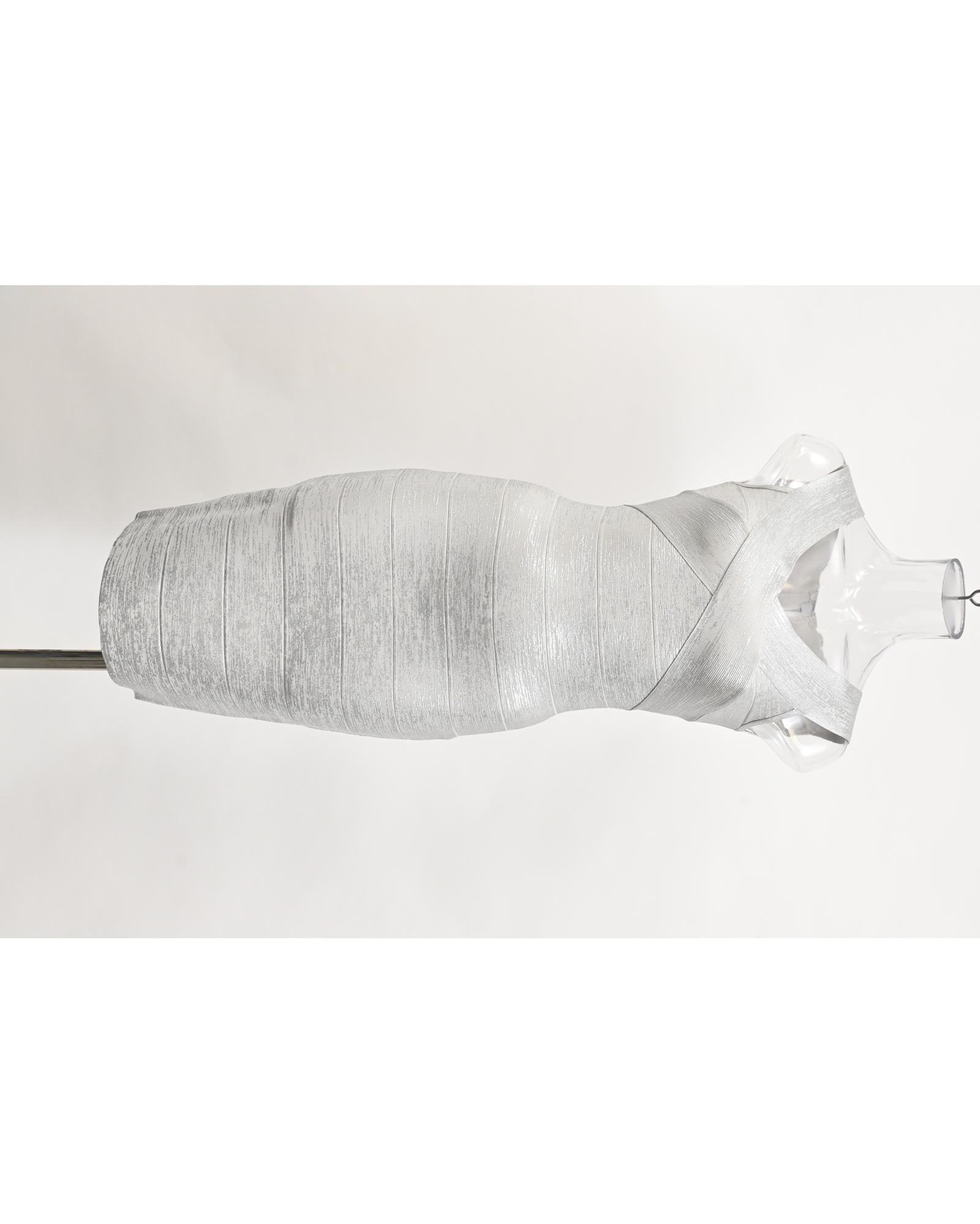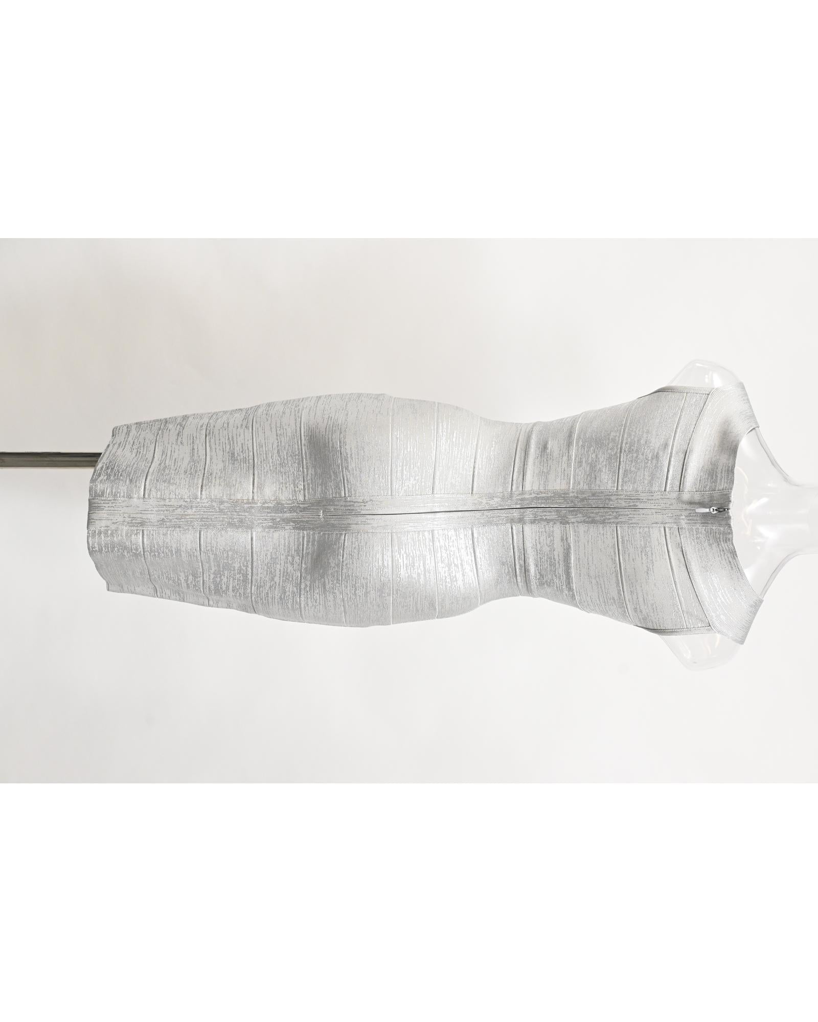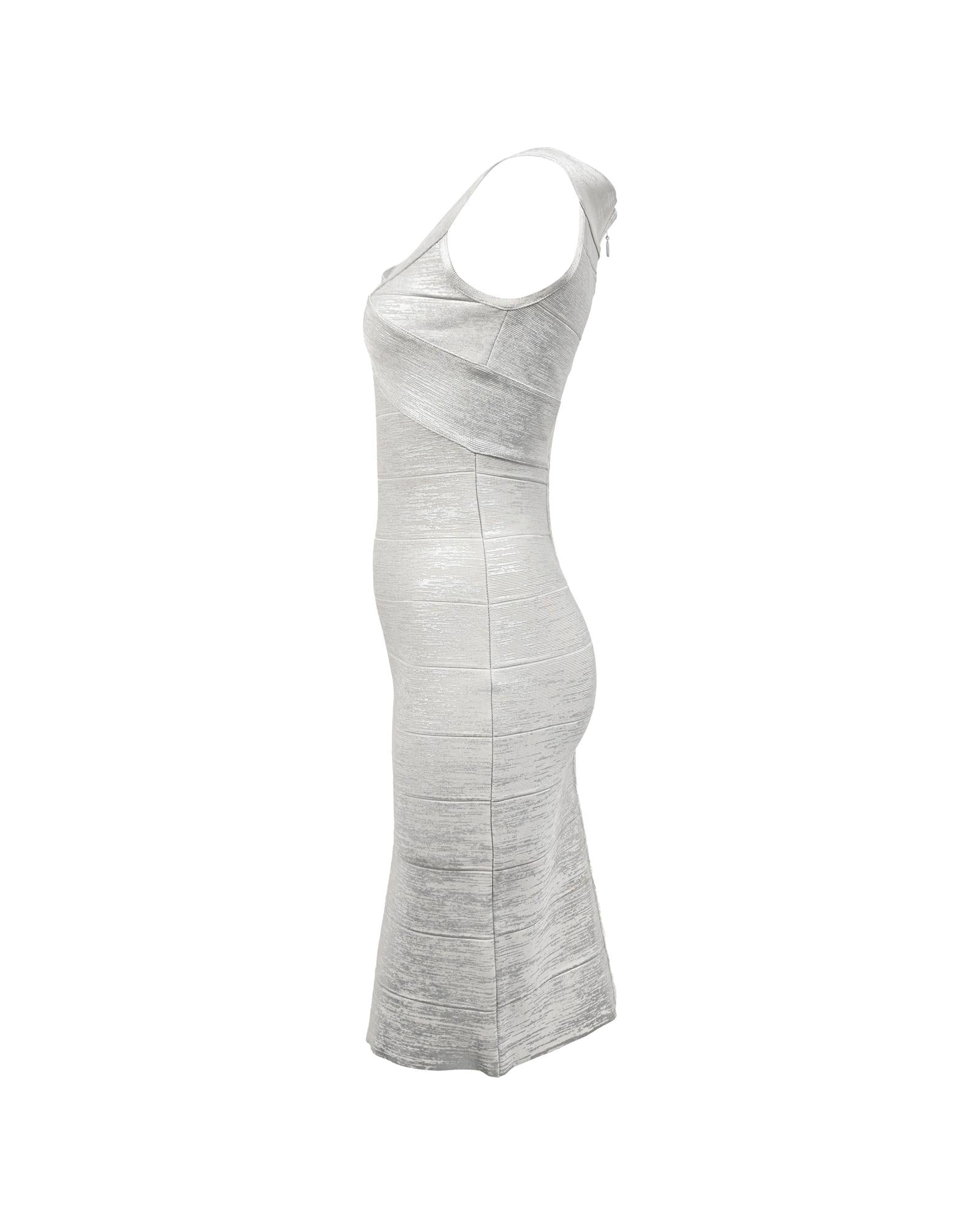 - Herve Leger Criss Cross Bandage Mini Dress in Silver Rayon