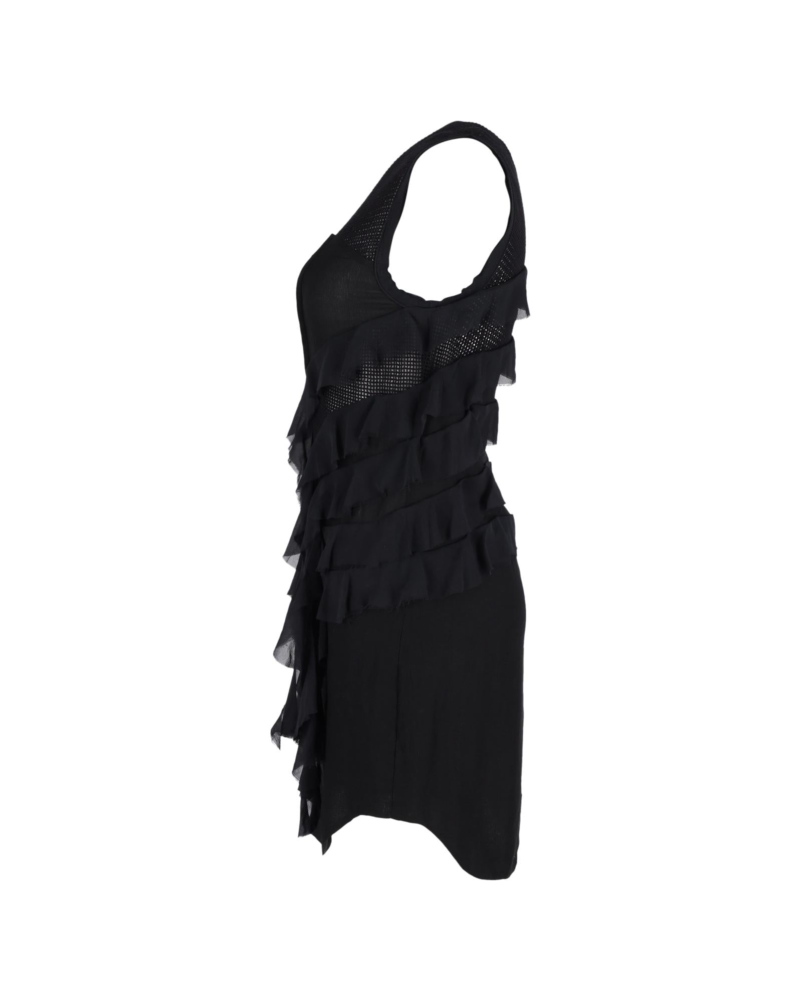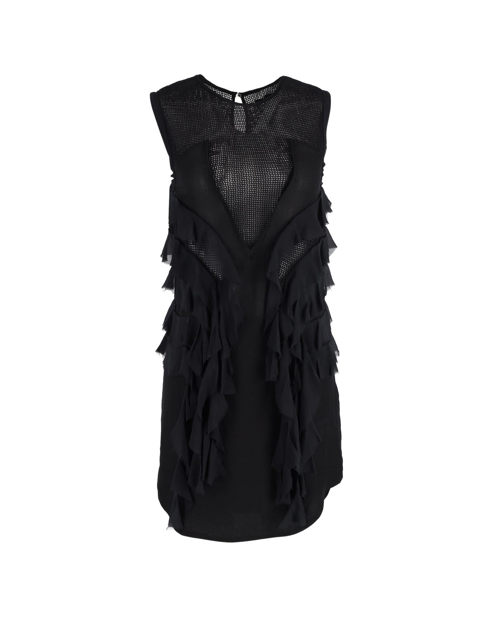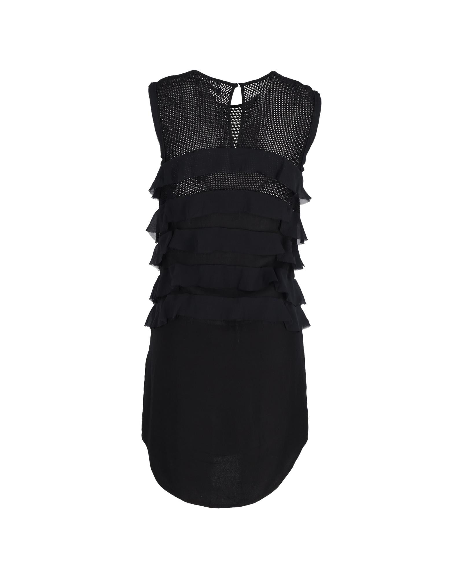 • Isabel Marant Mini Sleeveless Ruffle Detail Dress in Black Silk