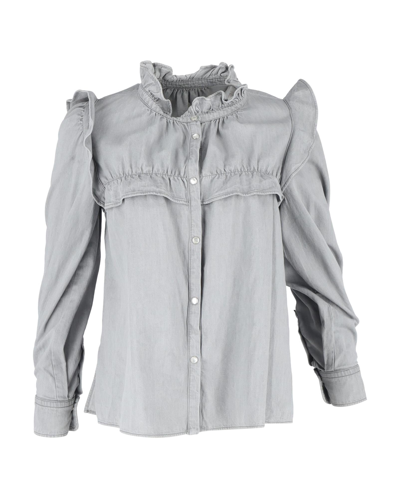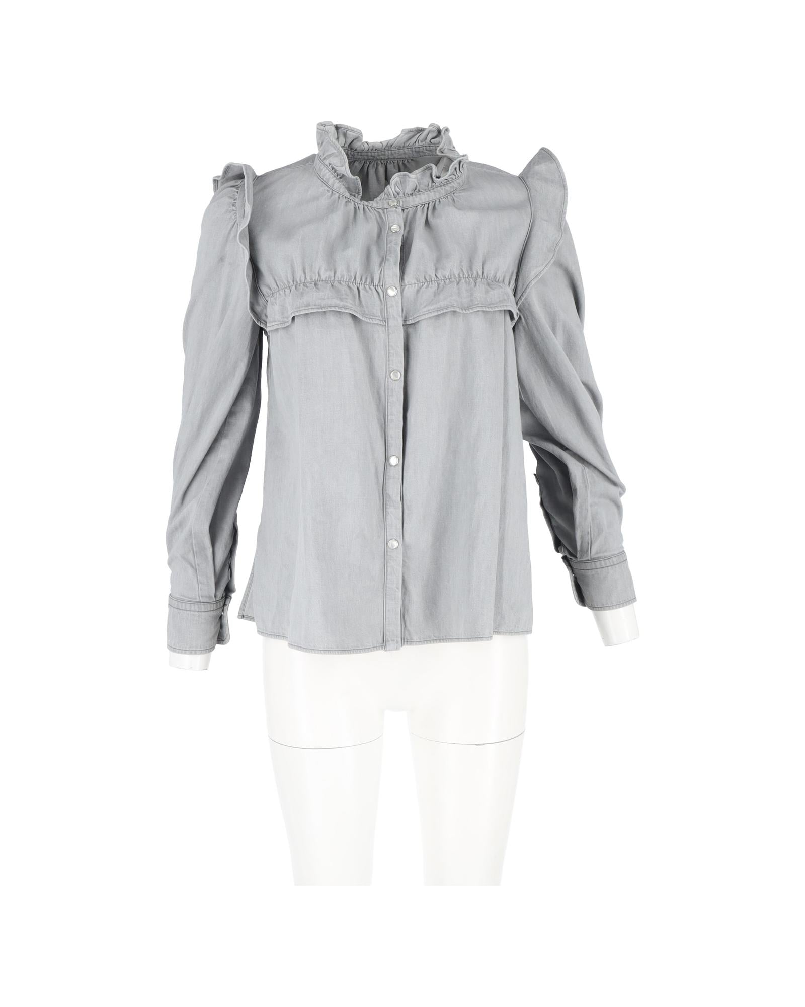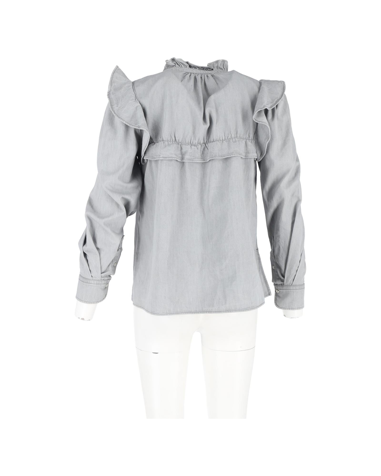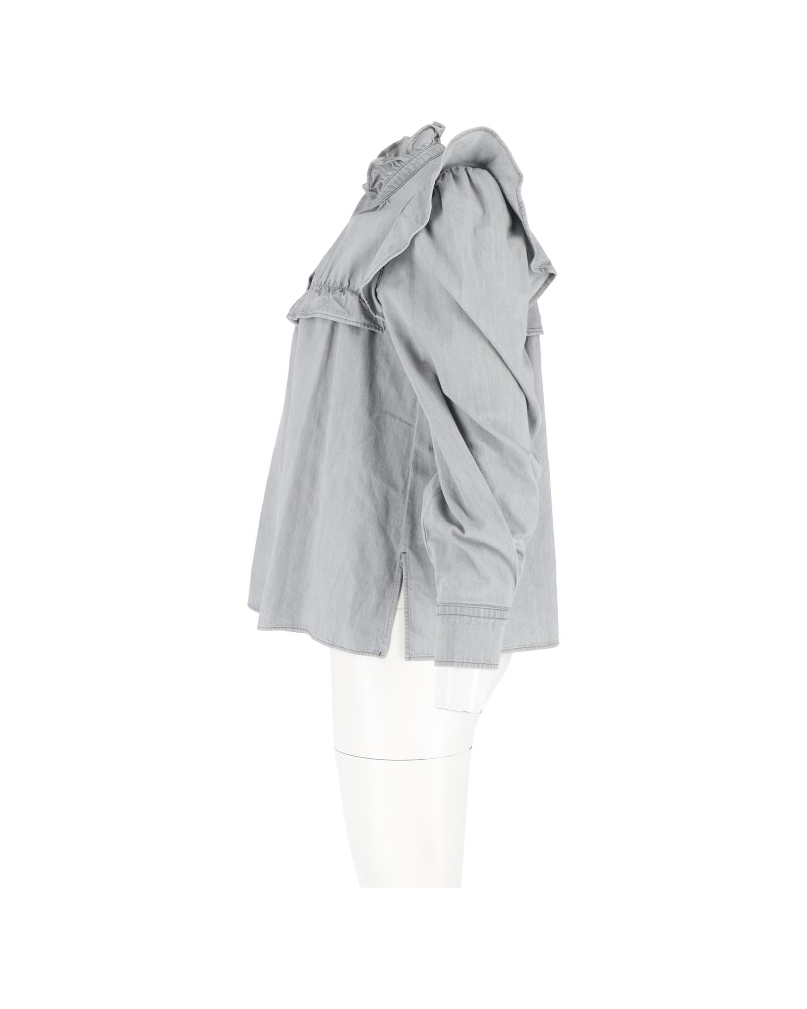 - Isabel Marant Etoile Ruffle Neck Blouse in Grey Cotton