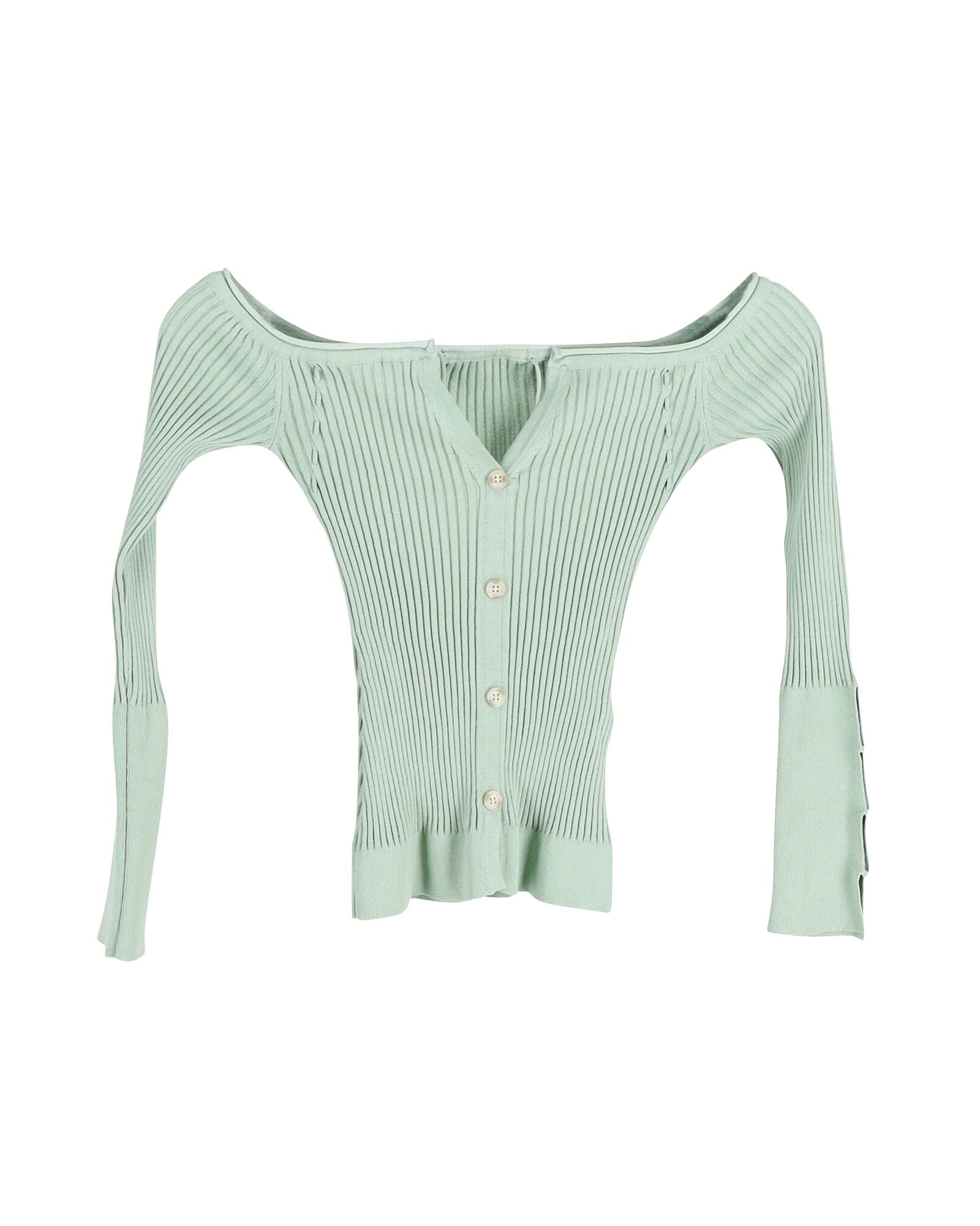 Pre-owned Ribbed Knit OfftheShoulder Cardigan