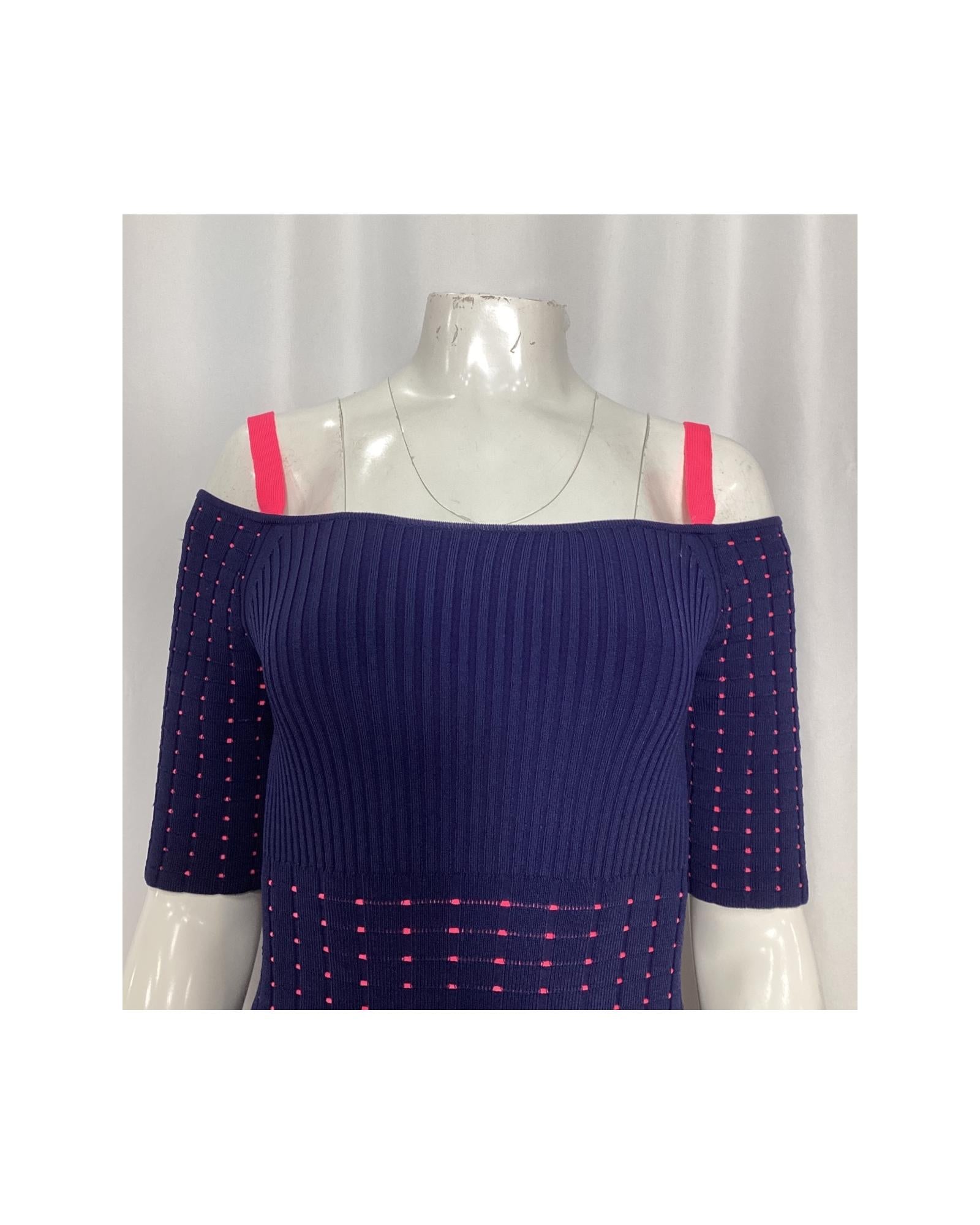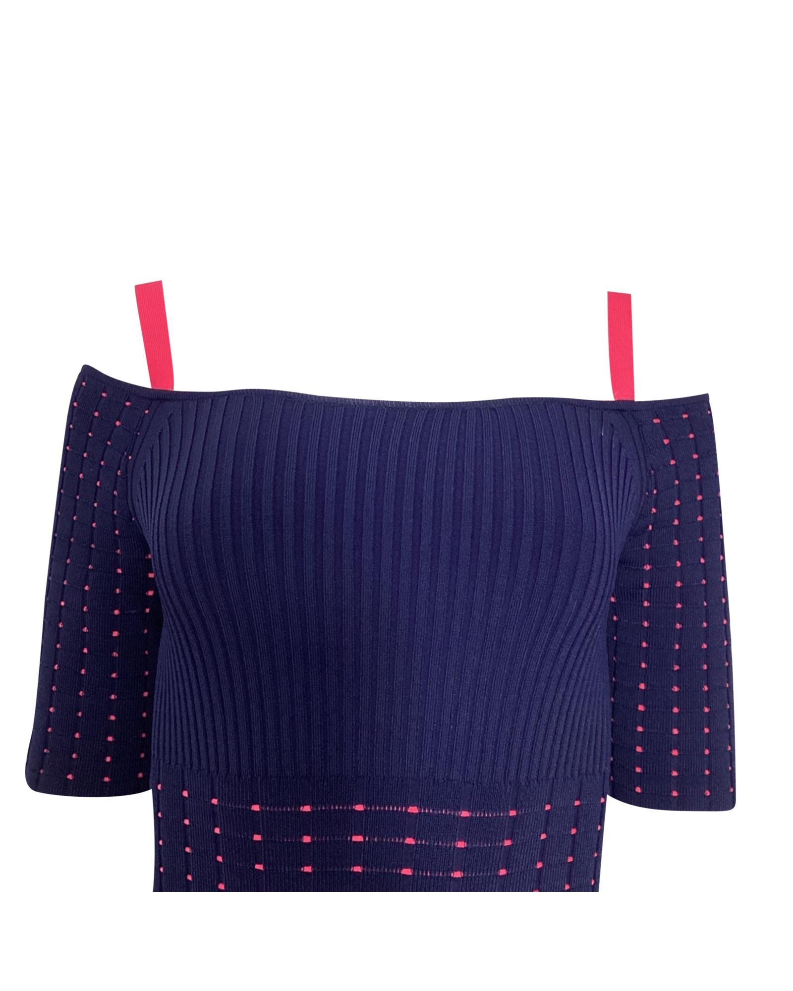 - Jason Wu Cold Shoulder Knee Length Dress in Navy Blue Viscose