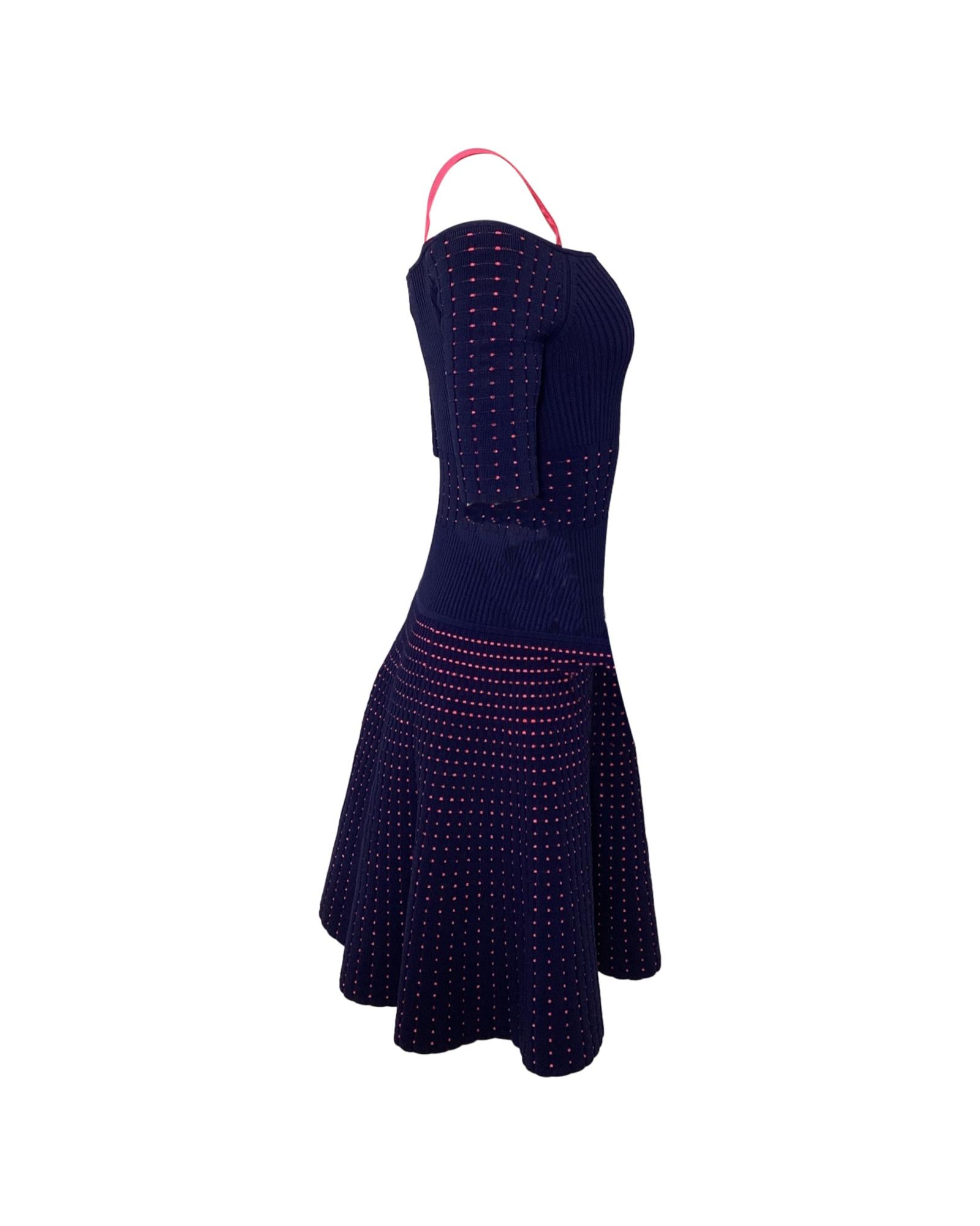 Pre-owned Knit Mini Dress Pink Detailing