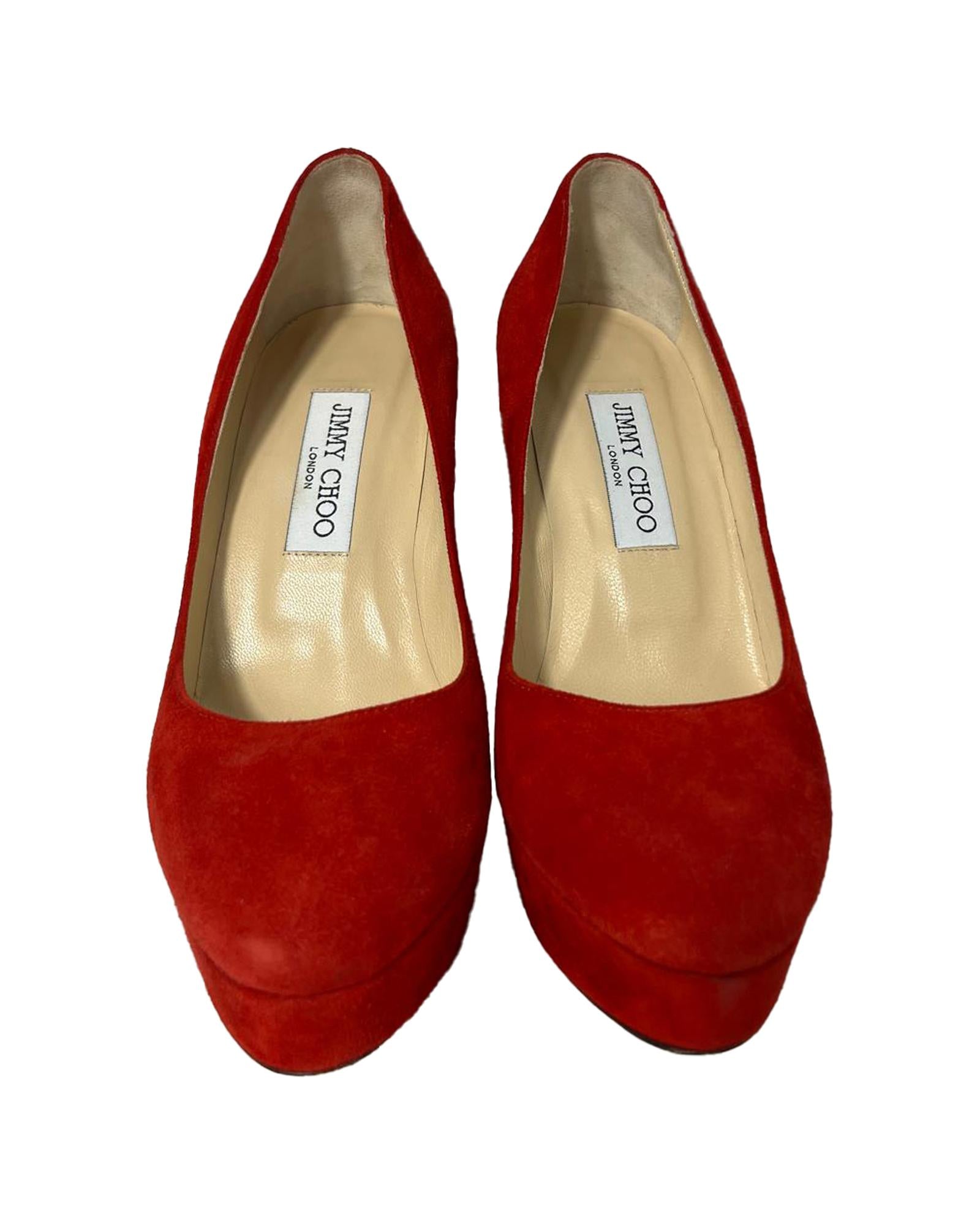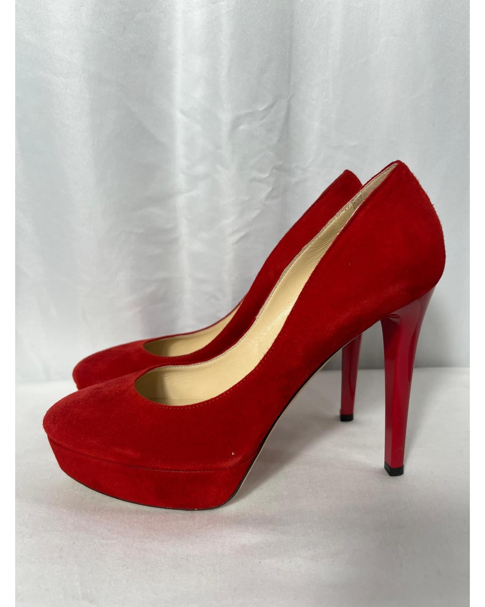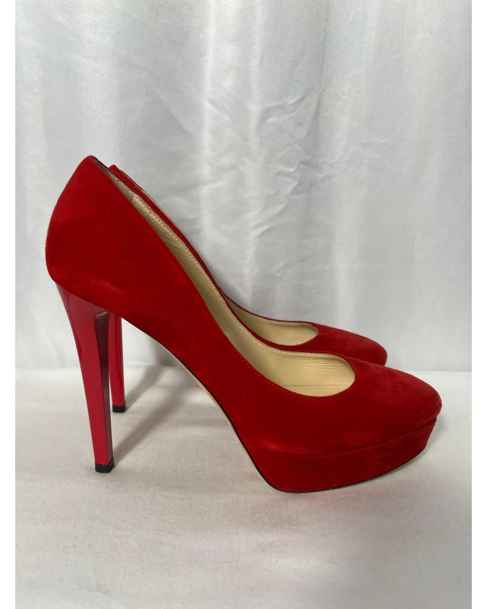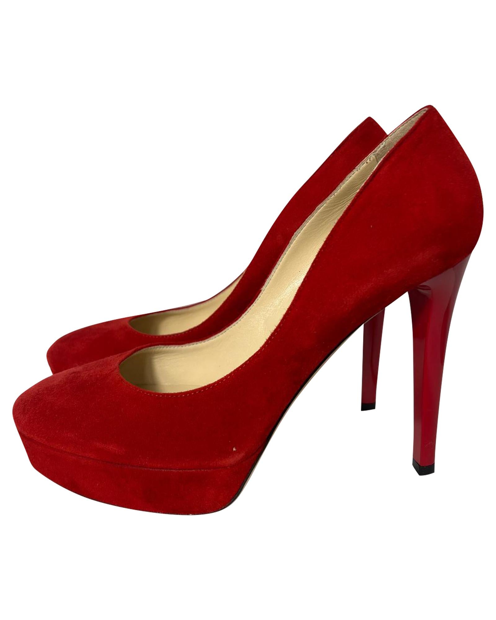 Pre-owned Red Suede Platform Pumps
