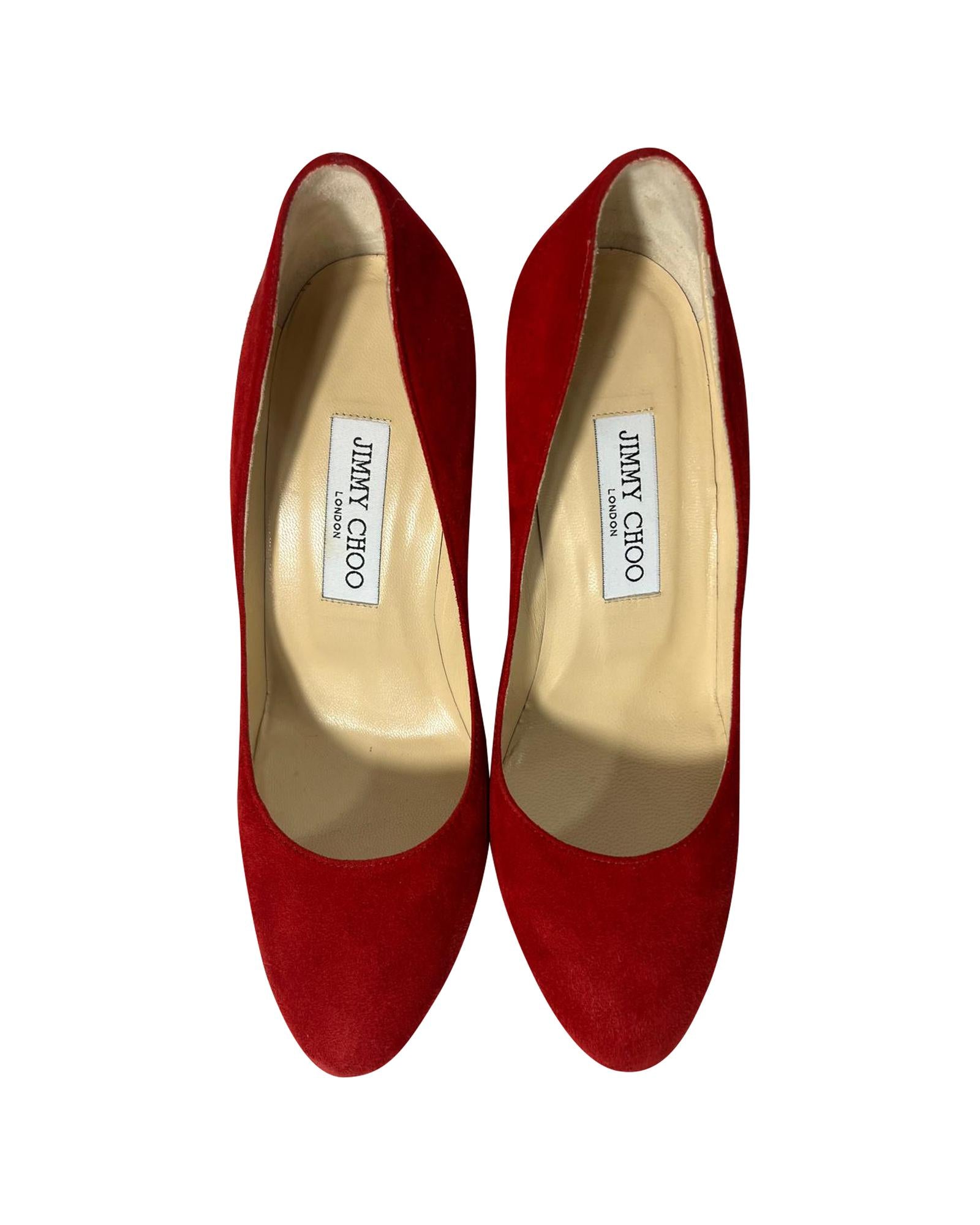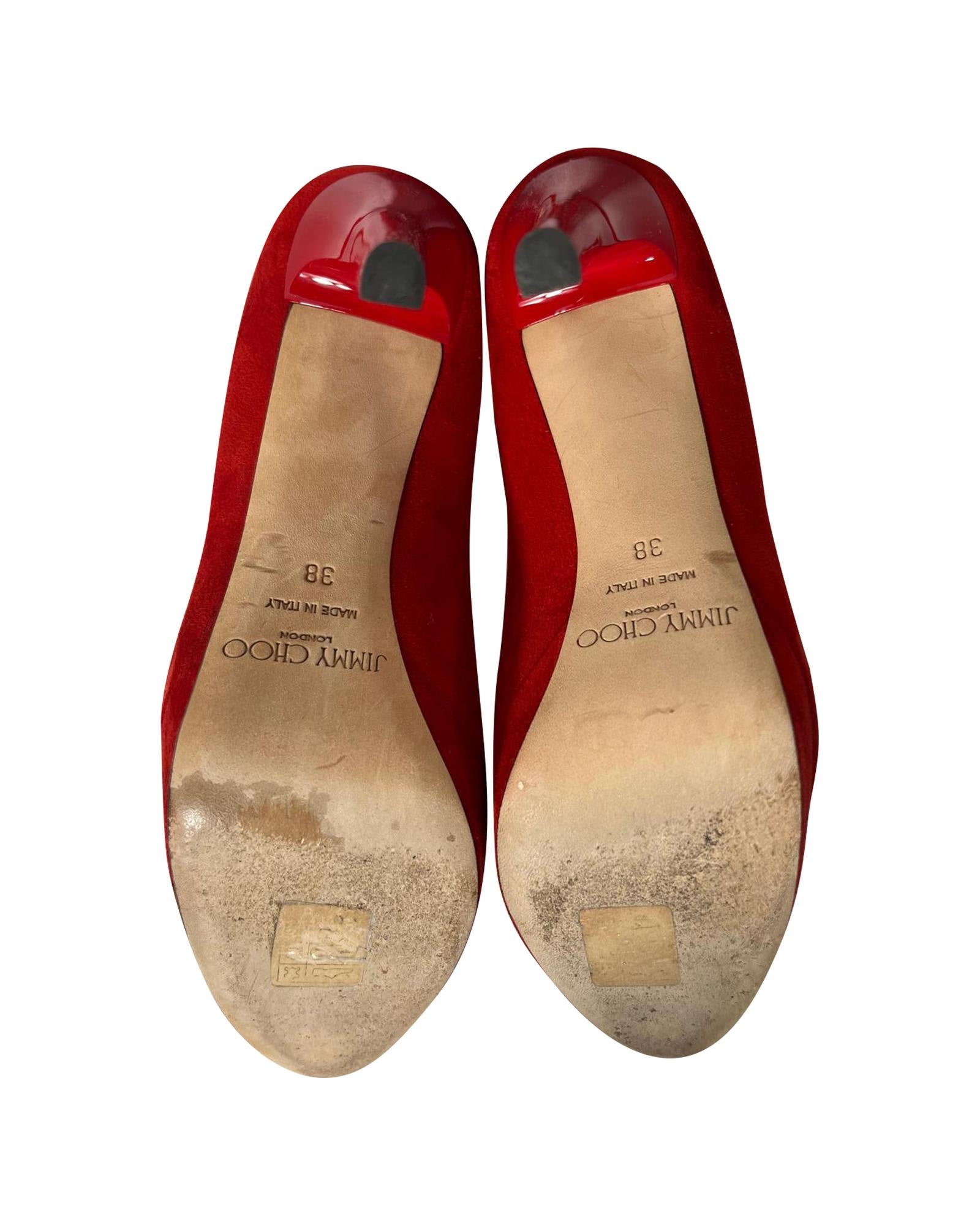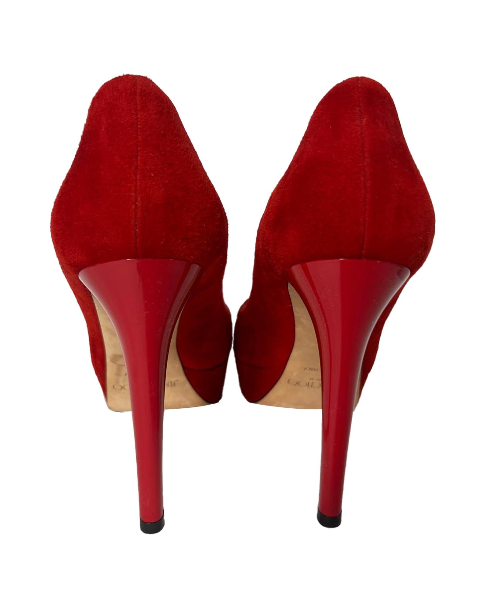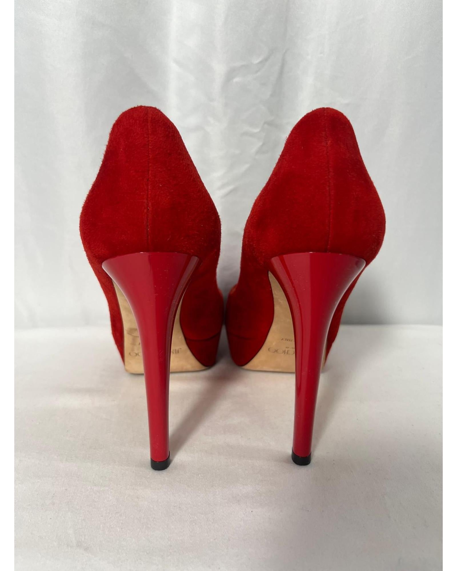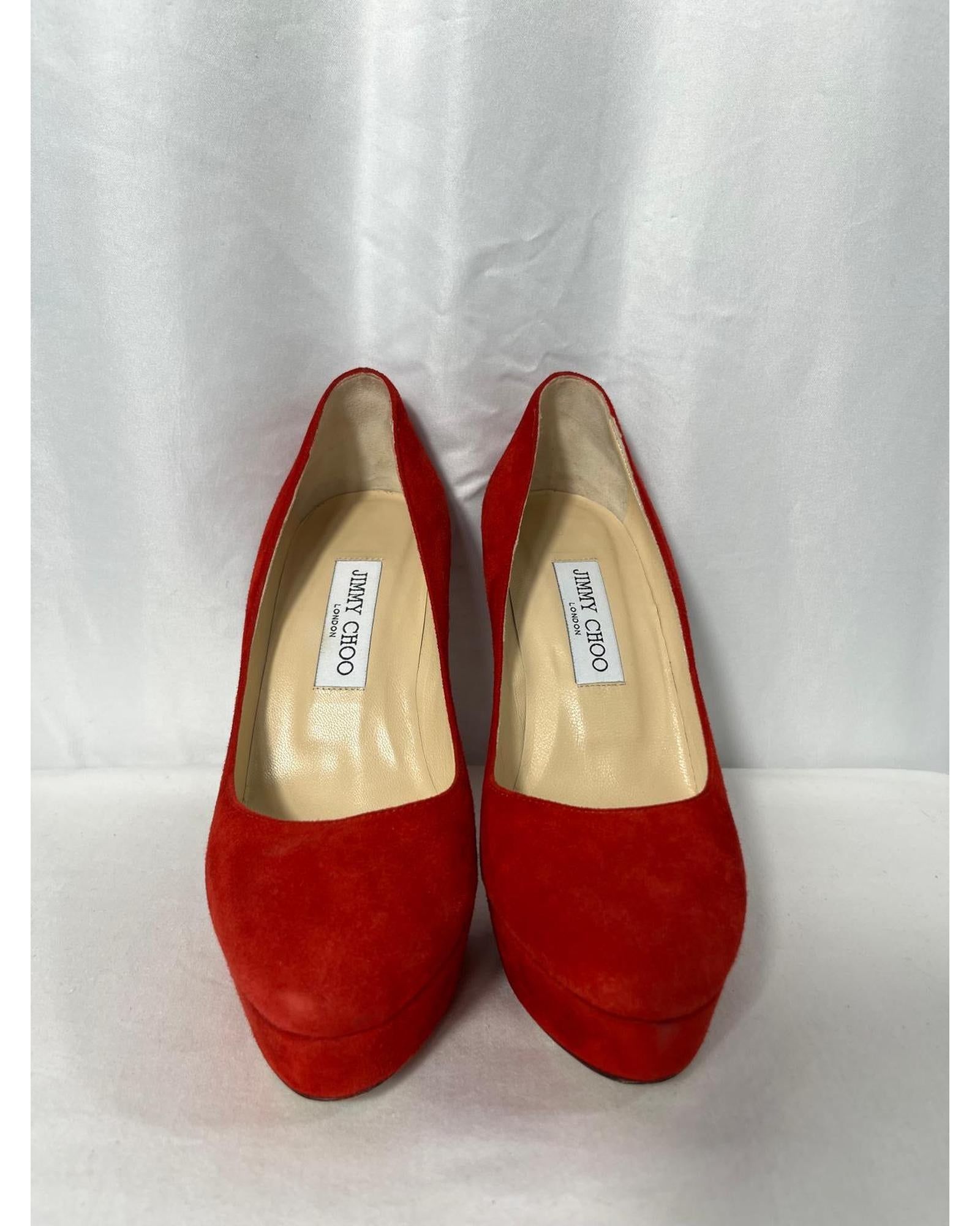 Pre-owned Red Suede Platform Pumps
