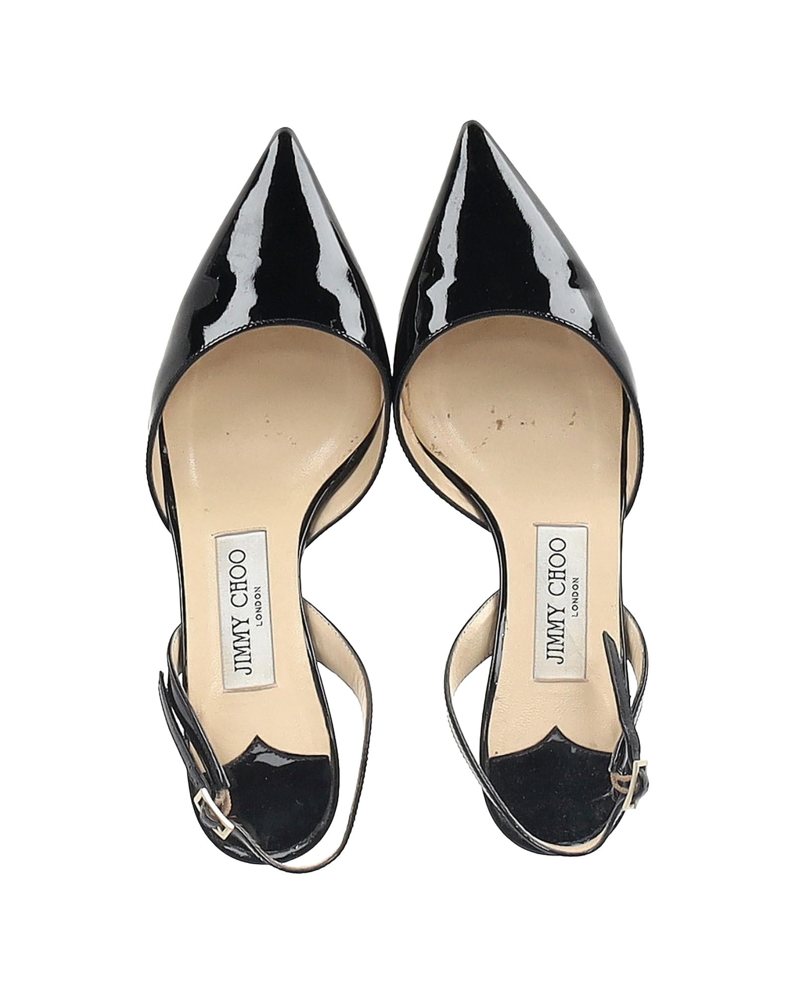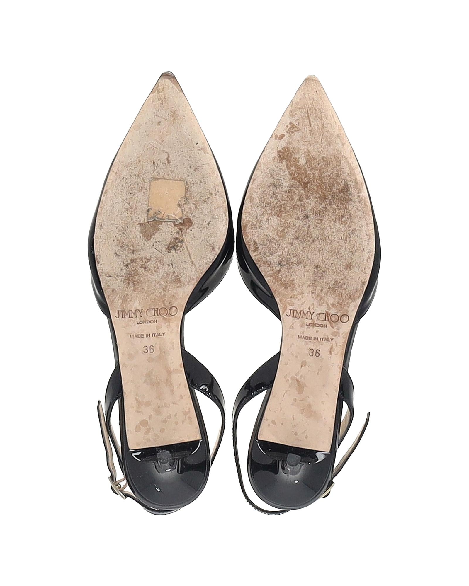 • Jimmy Choo Tilly Slingback Kitten Heel Pumps in Black Patent Leather