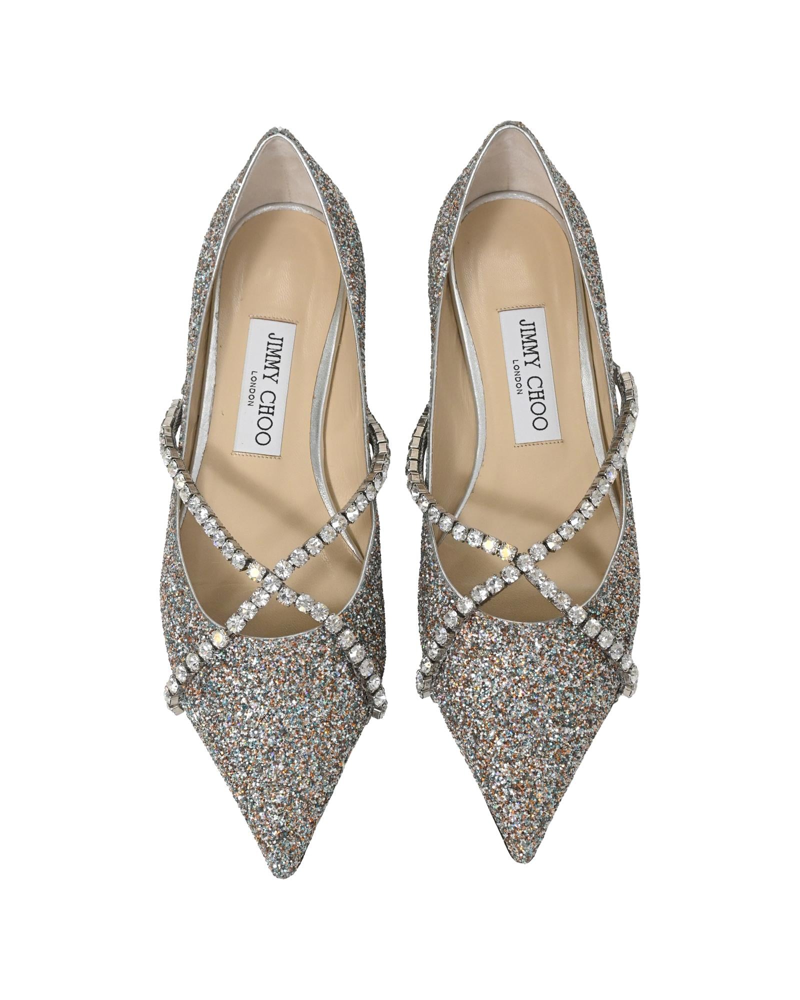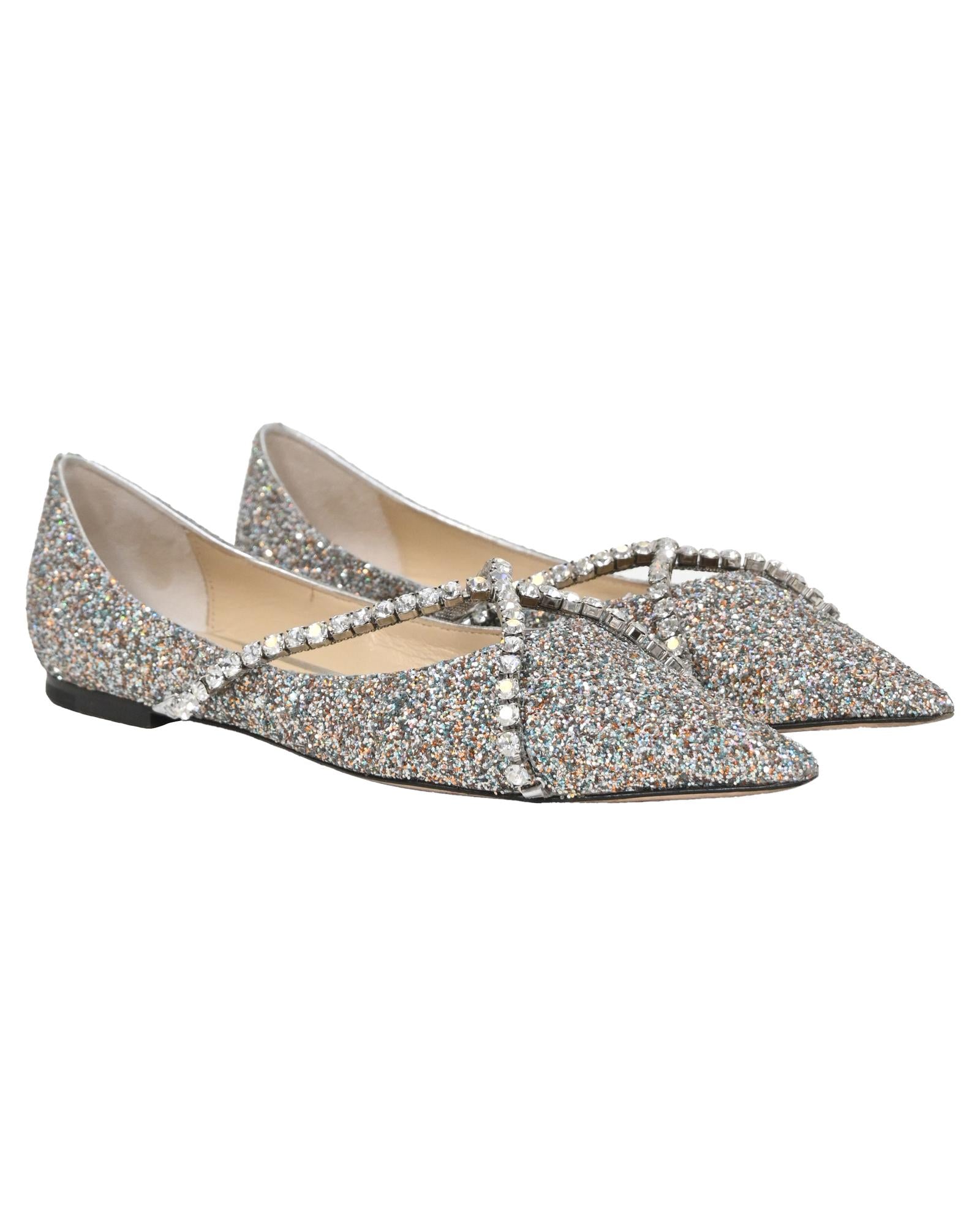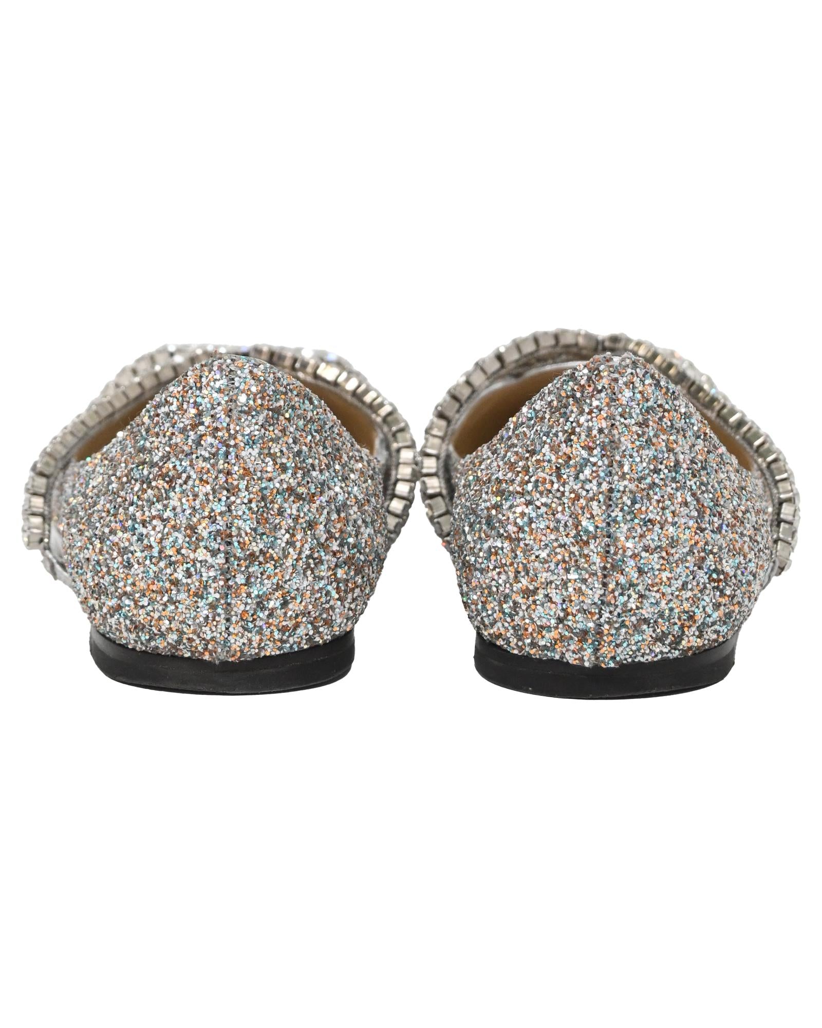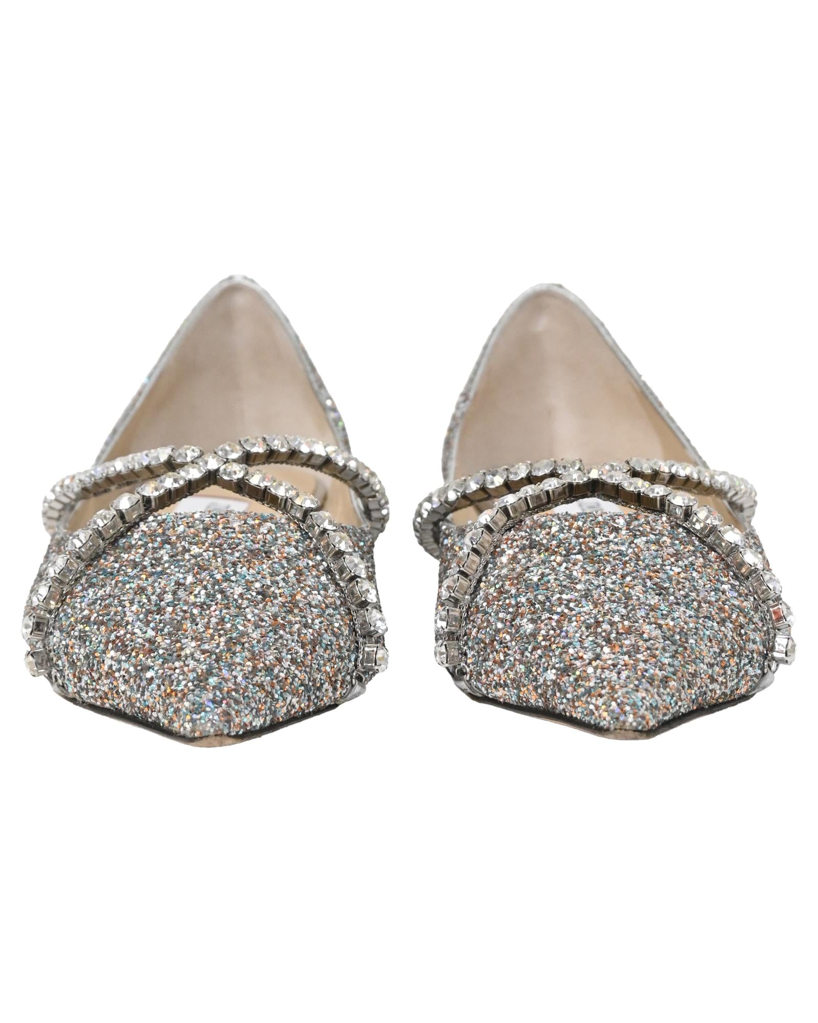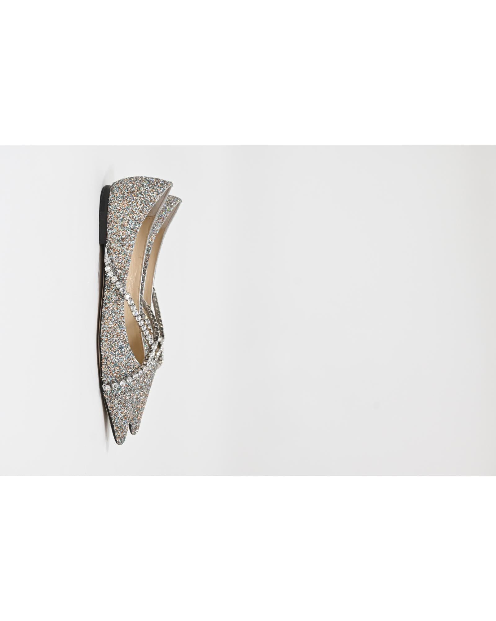 • Jimmy Choo Genevi Crystal Embellished Ballet Flats in Silver Glitter