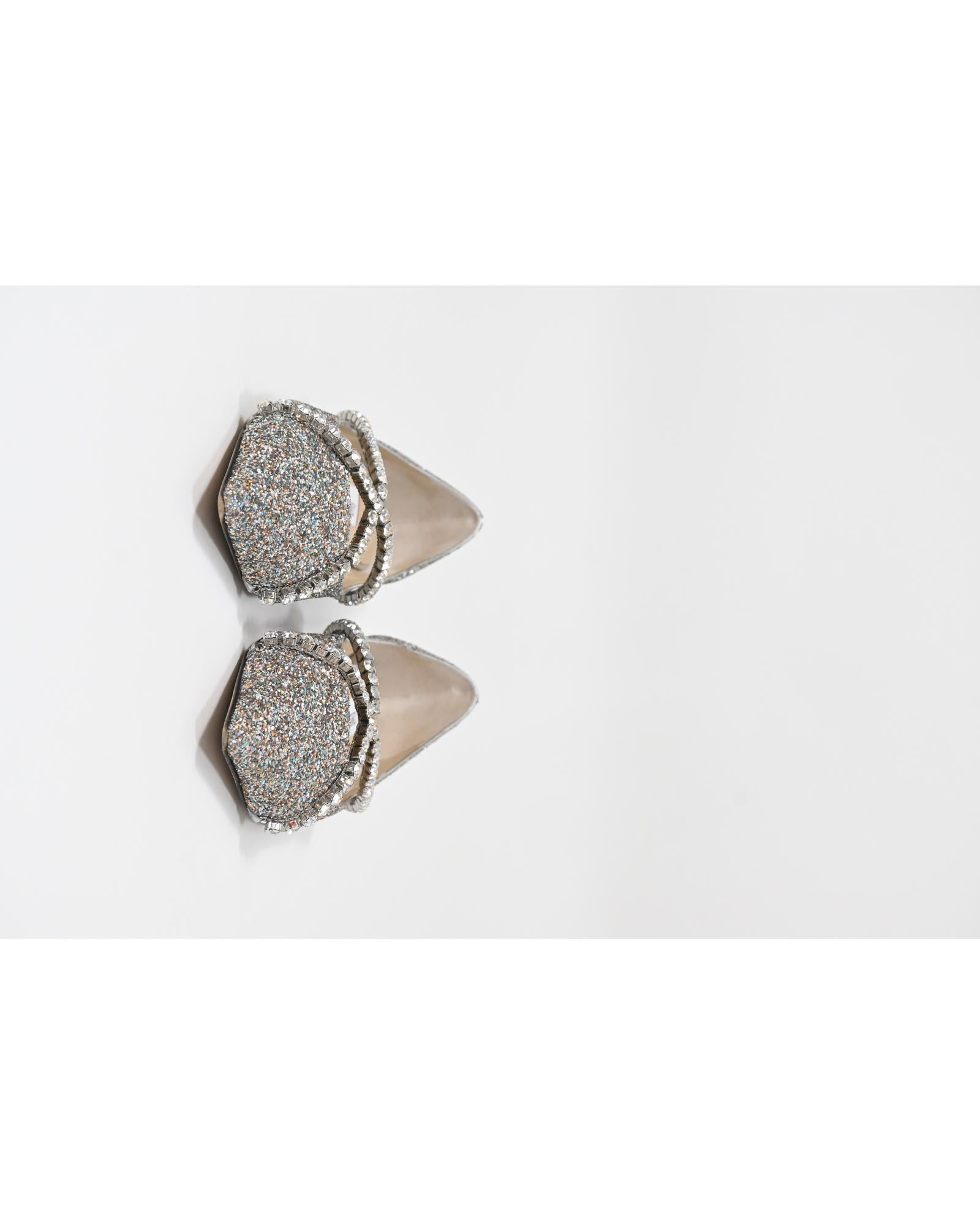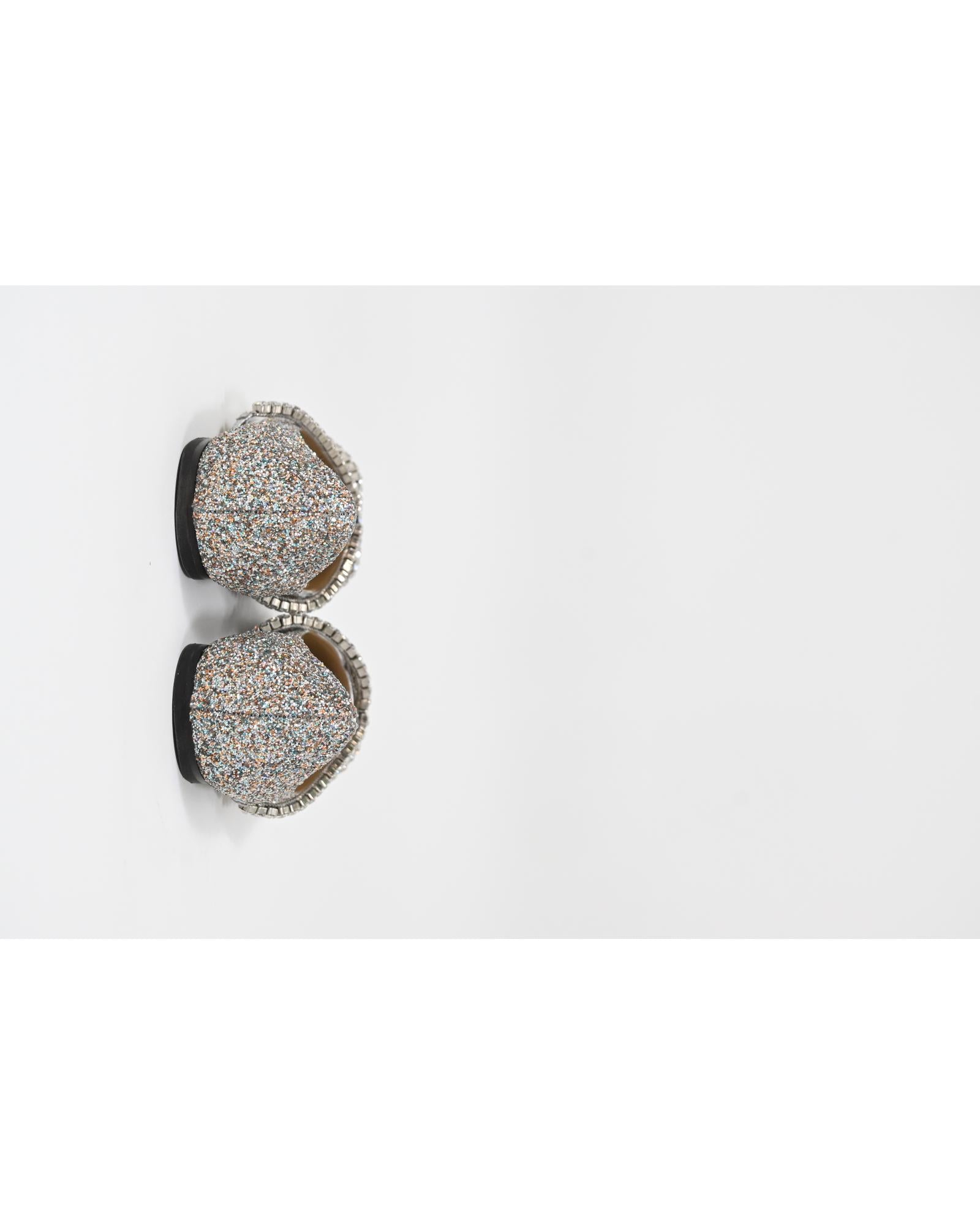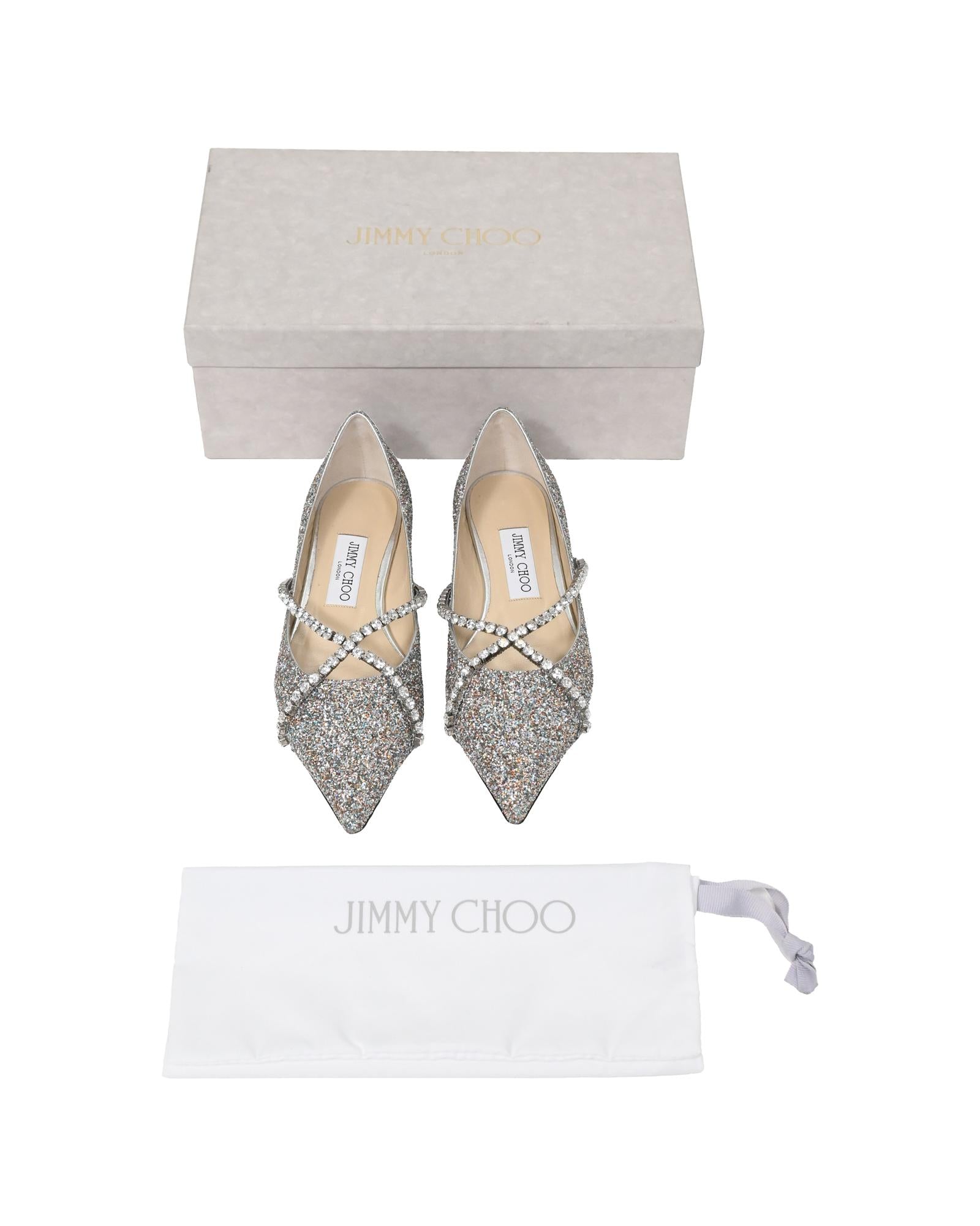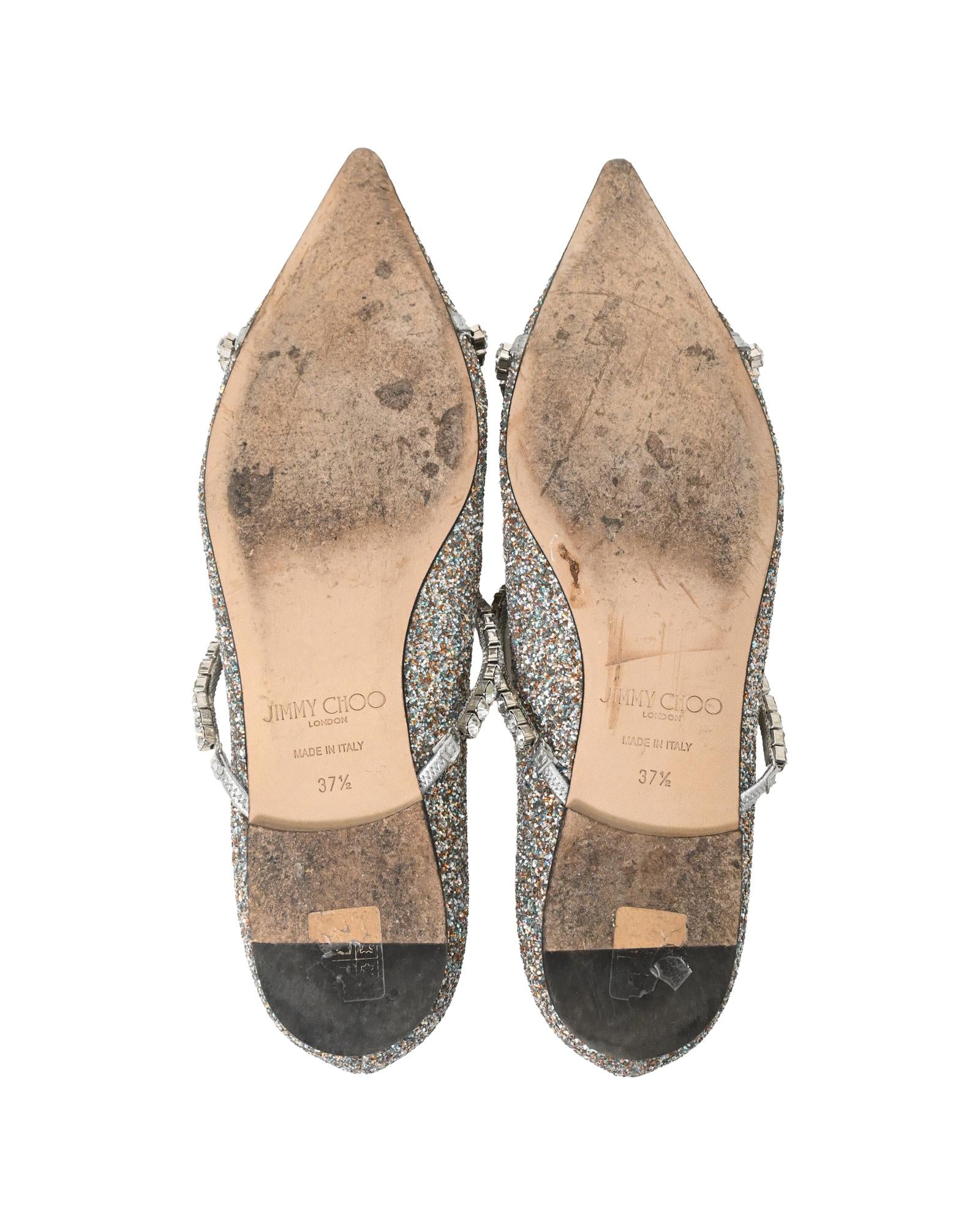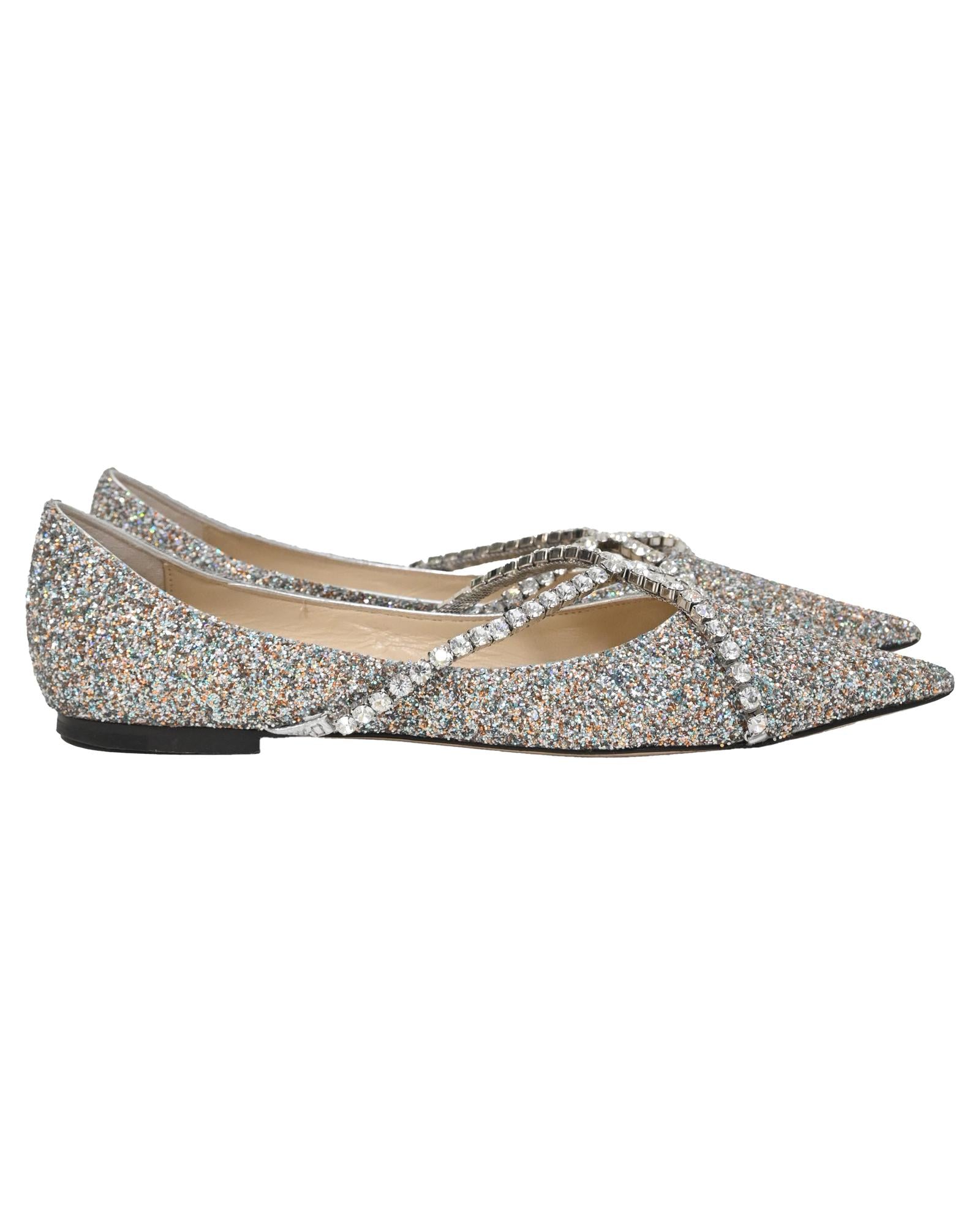 • Jimmy Choo Genevi Crystal Embellished Ballet Flats in Silver Glitter