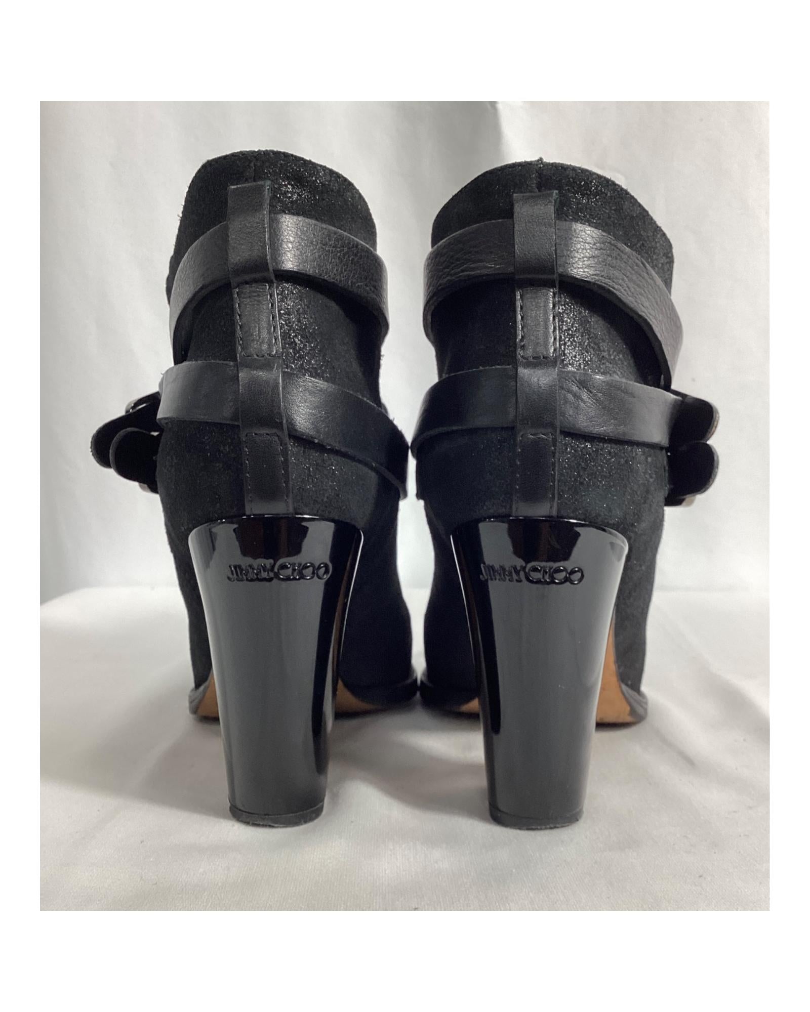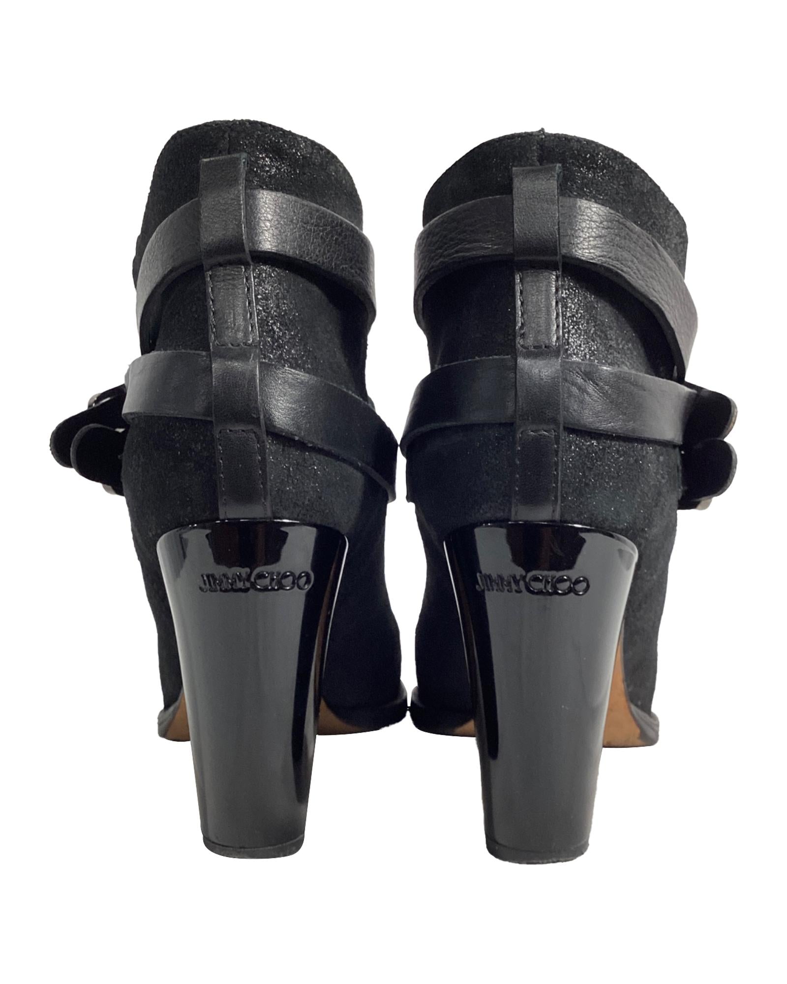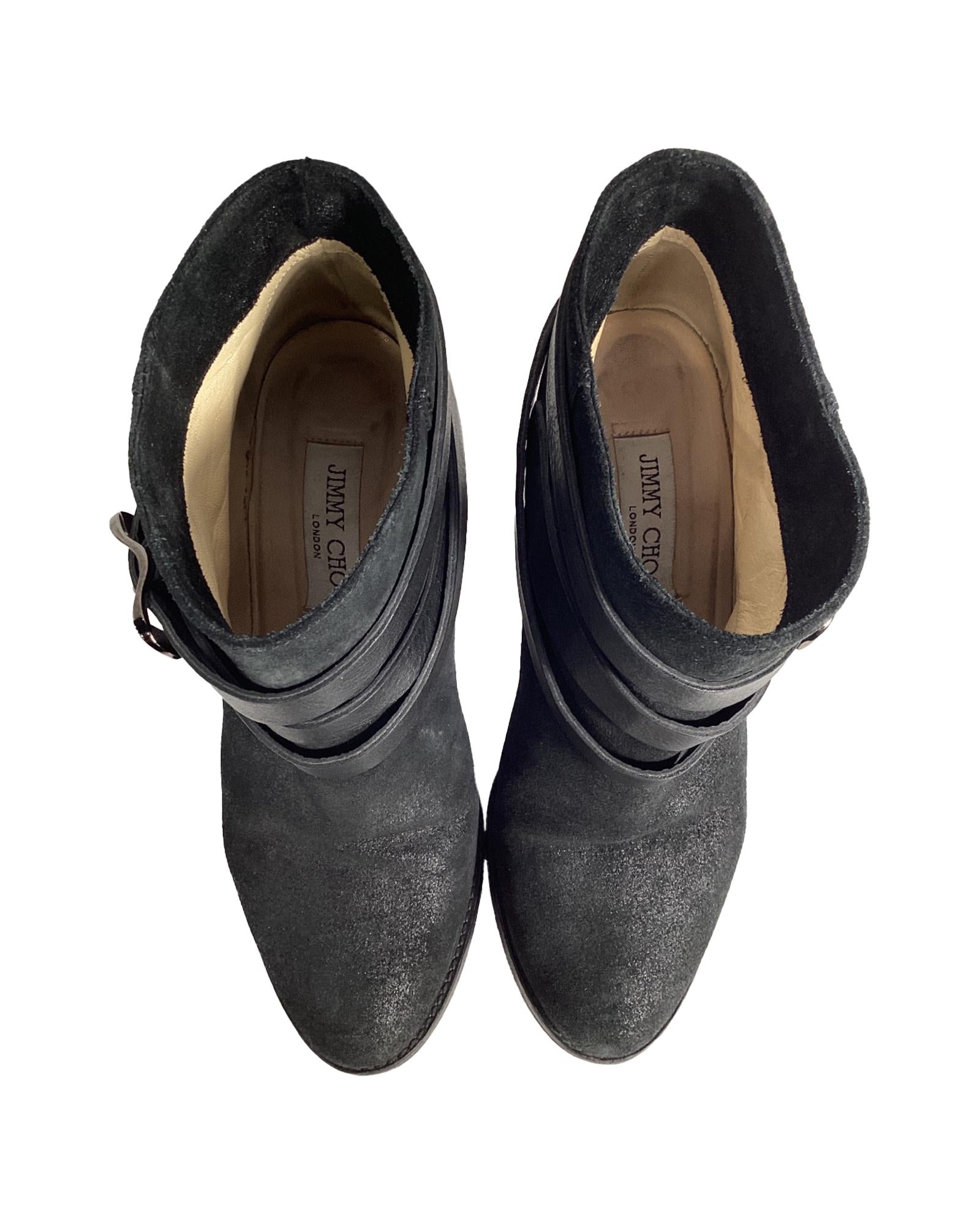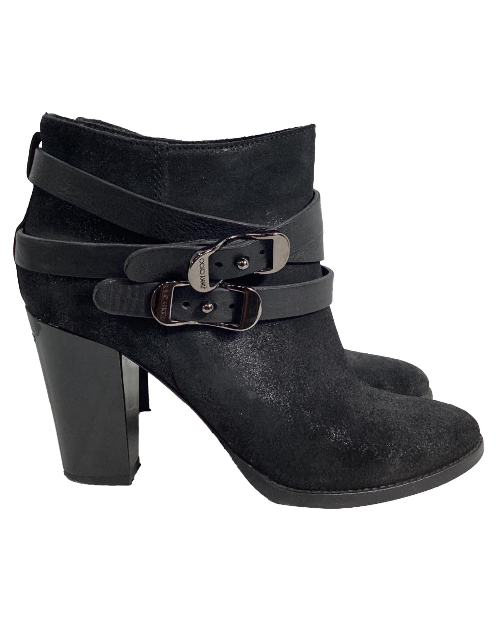 • Jimmy Choo Strapped Ankle Boots in Black Suede