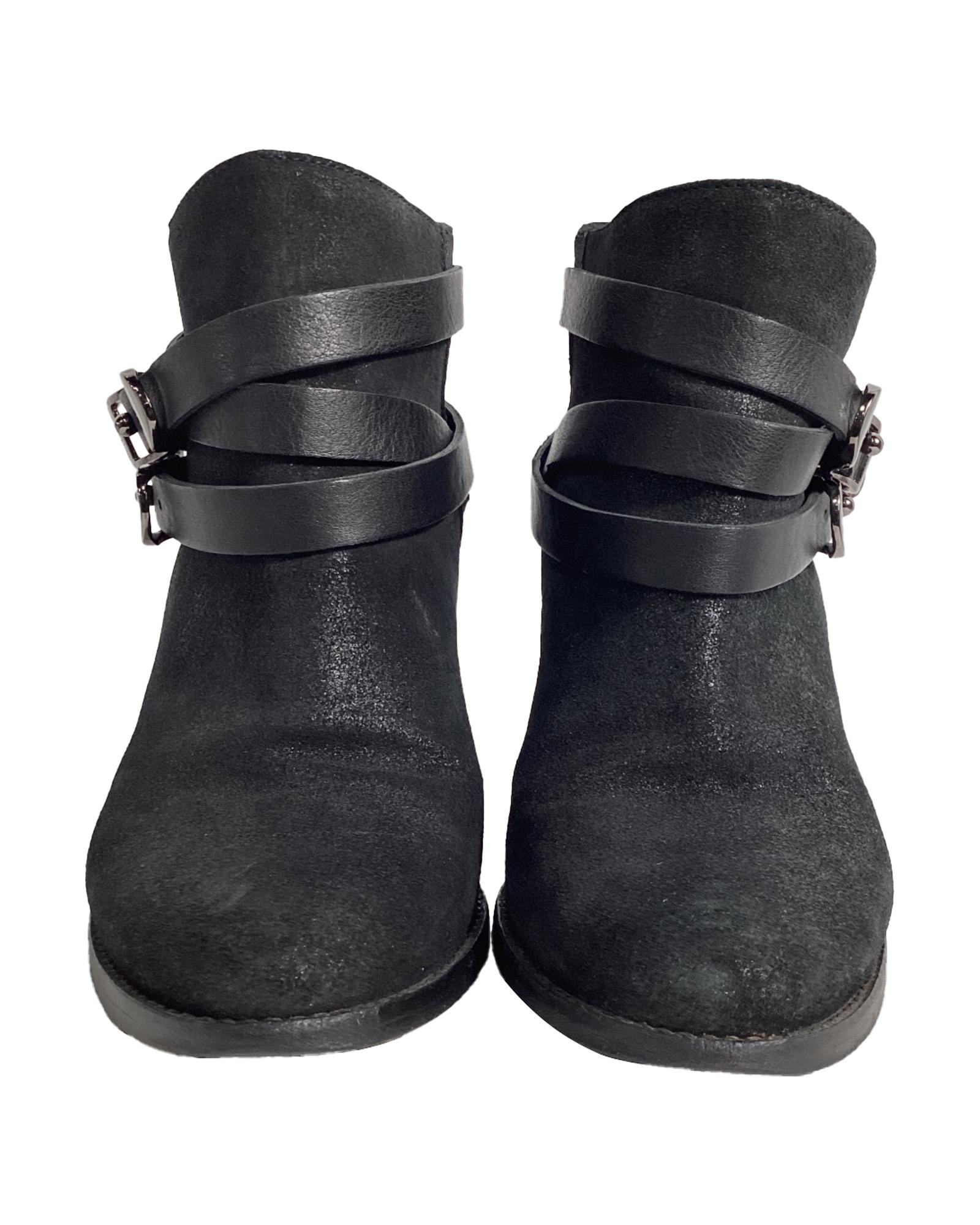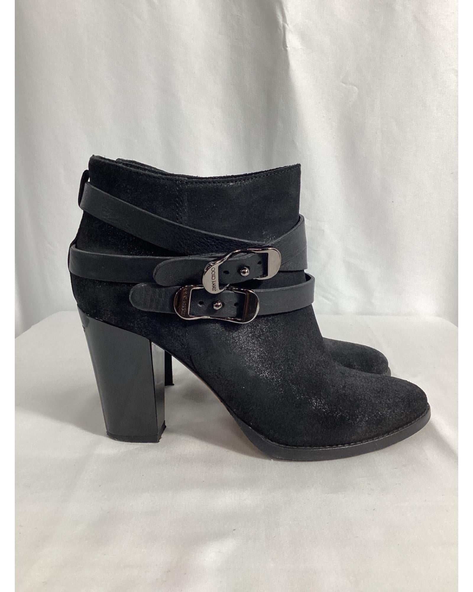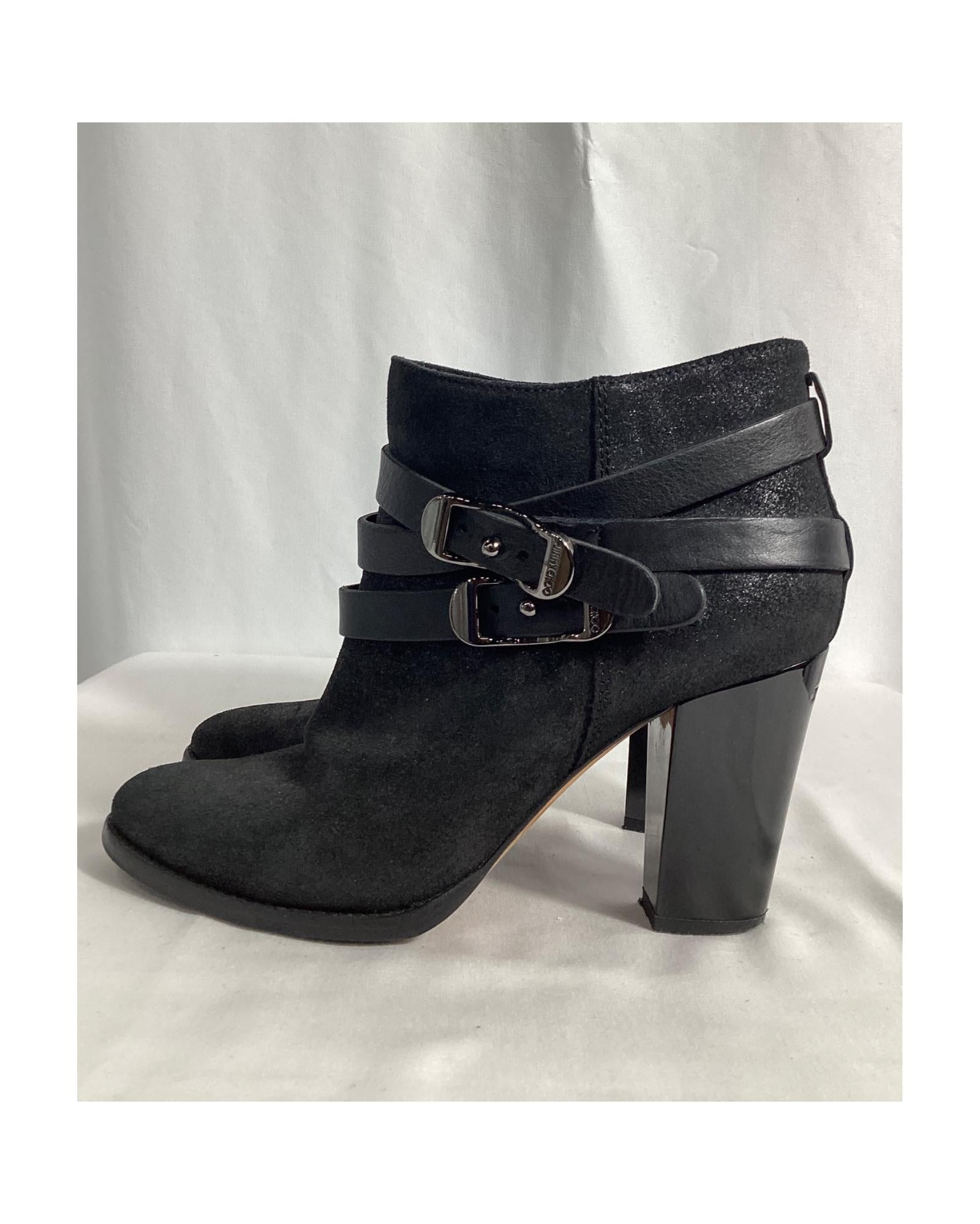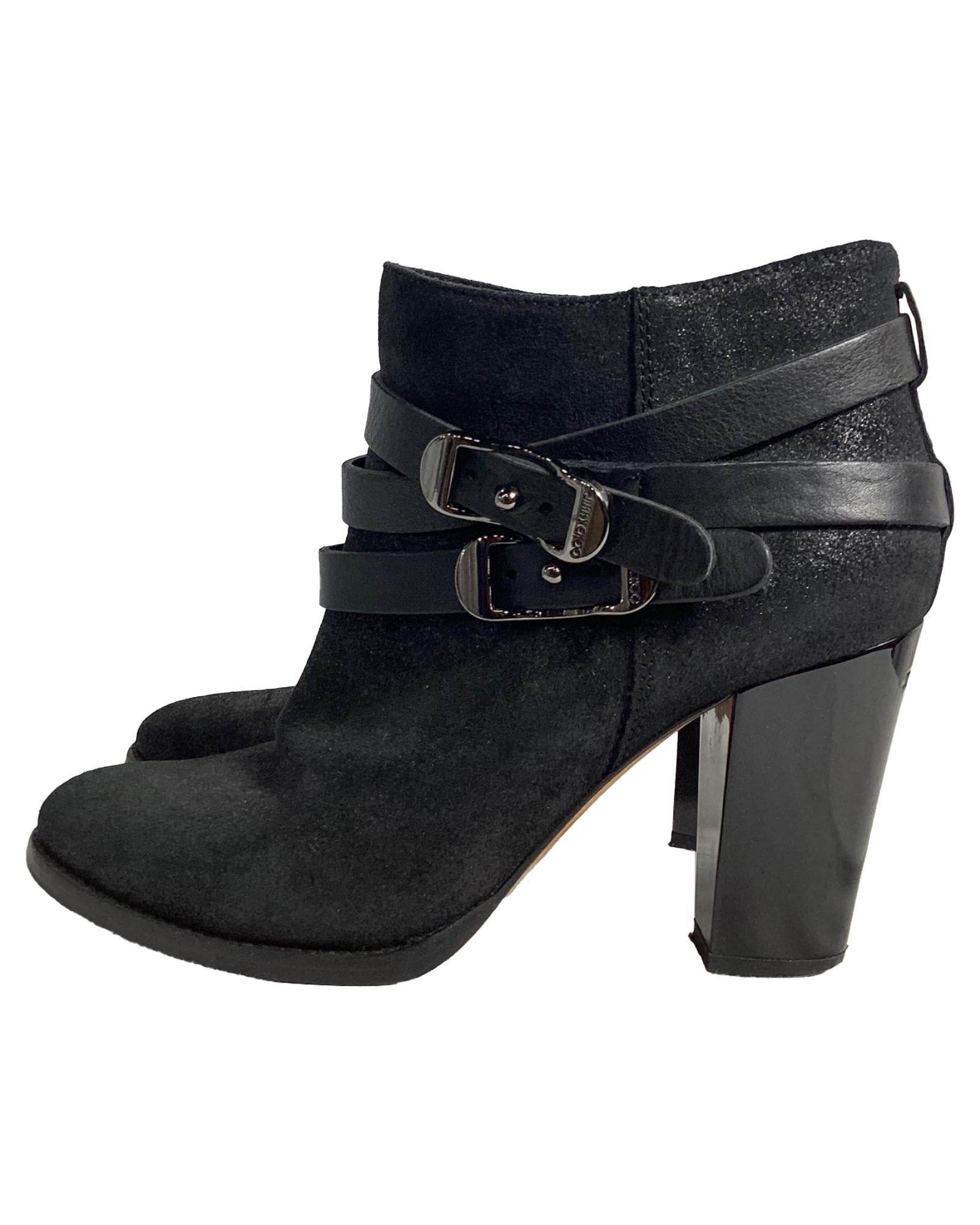 • Jimmy Choo Strapped Ankle Boots in Black Suede