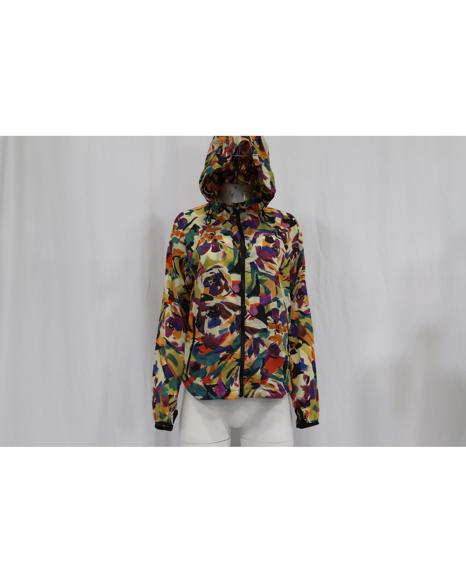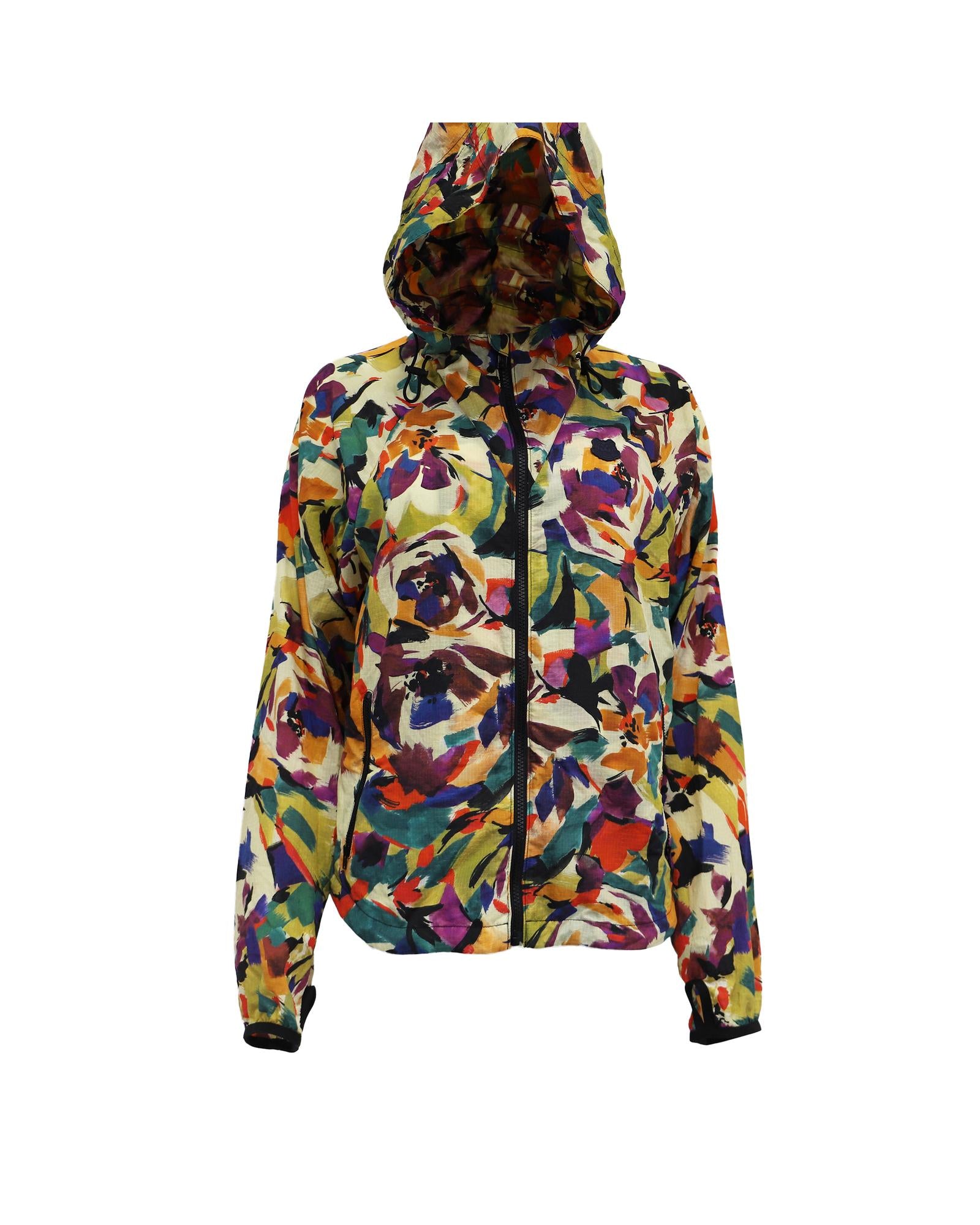 Printed Zip-Up Hooded Lightweight Jacket with Long Sleeves