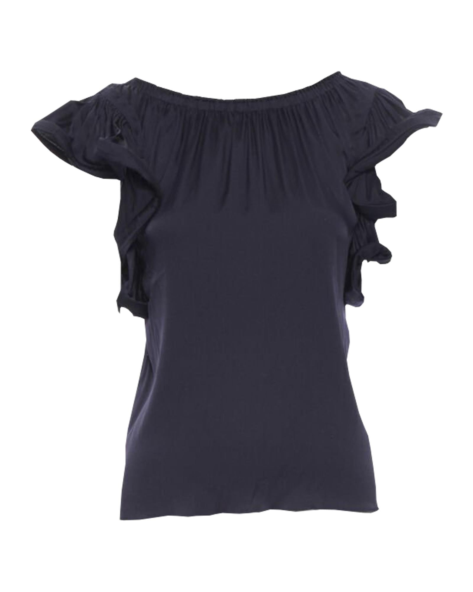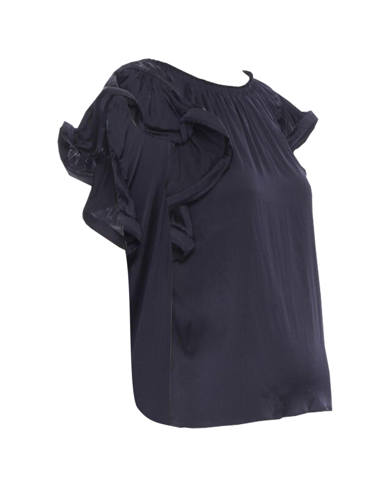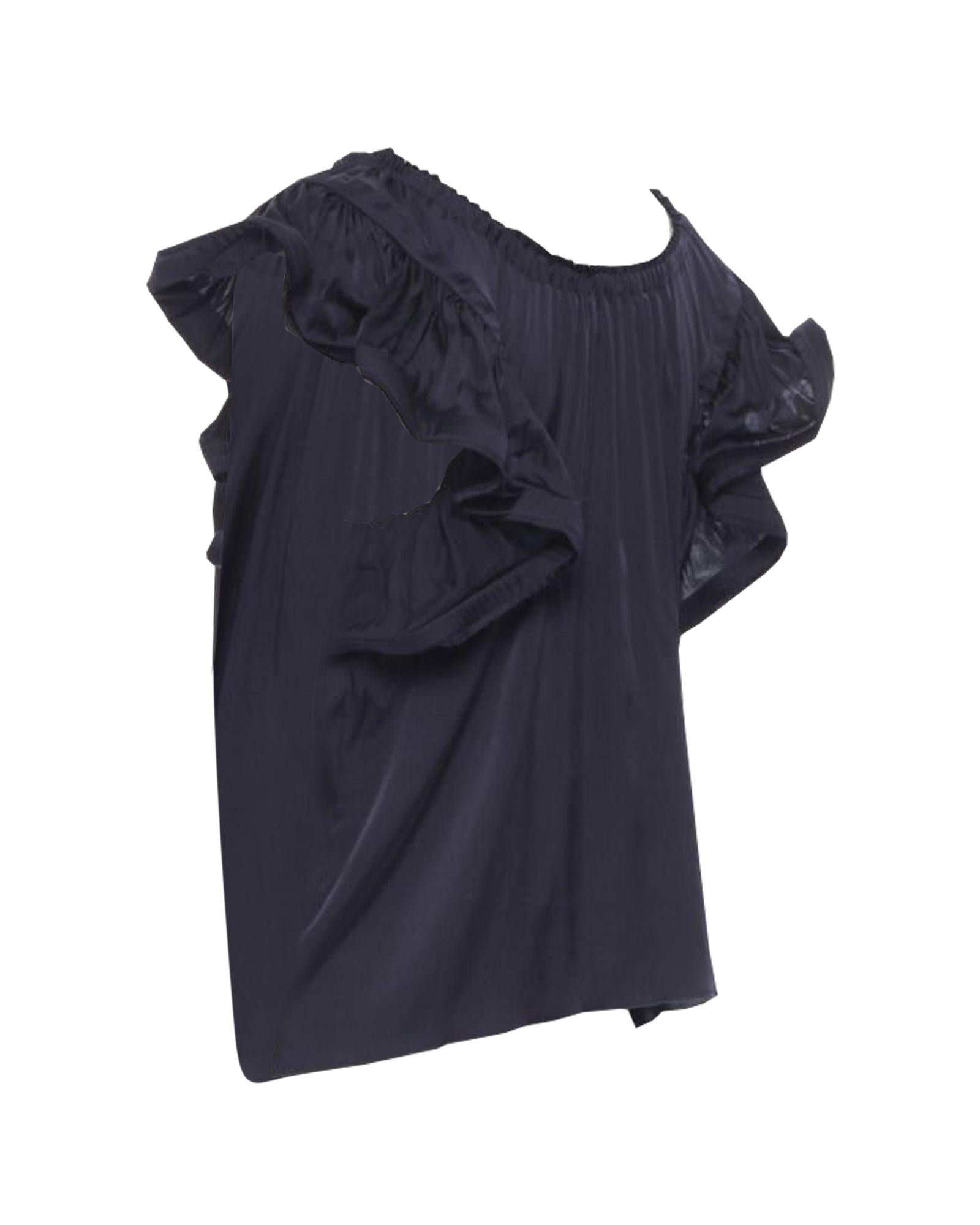 Pre-owned Elegant Solid Top with Ruffle Short Sleeves