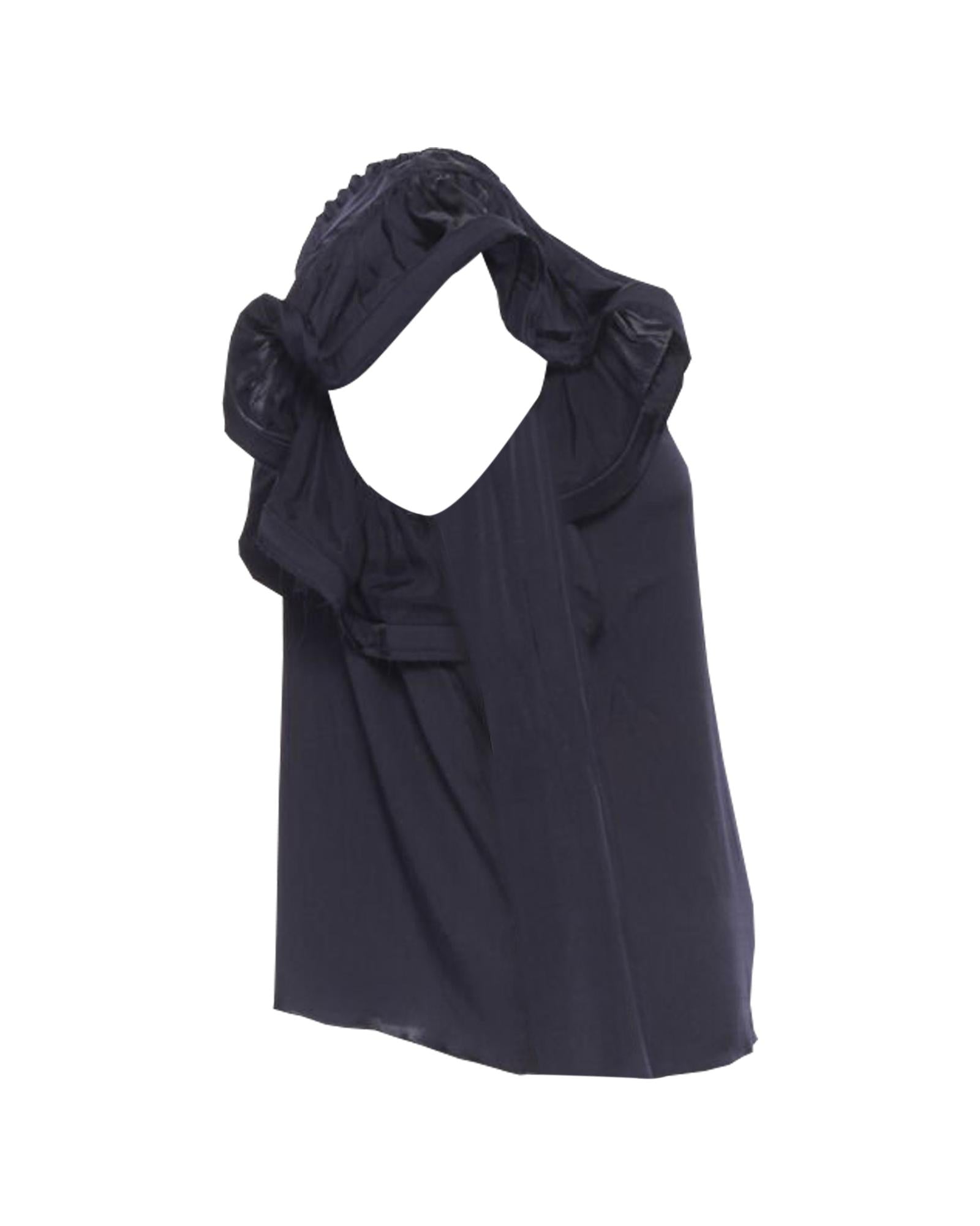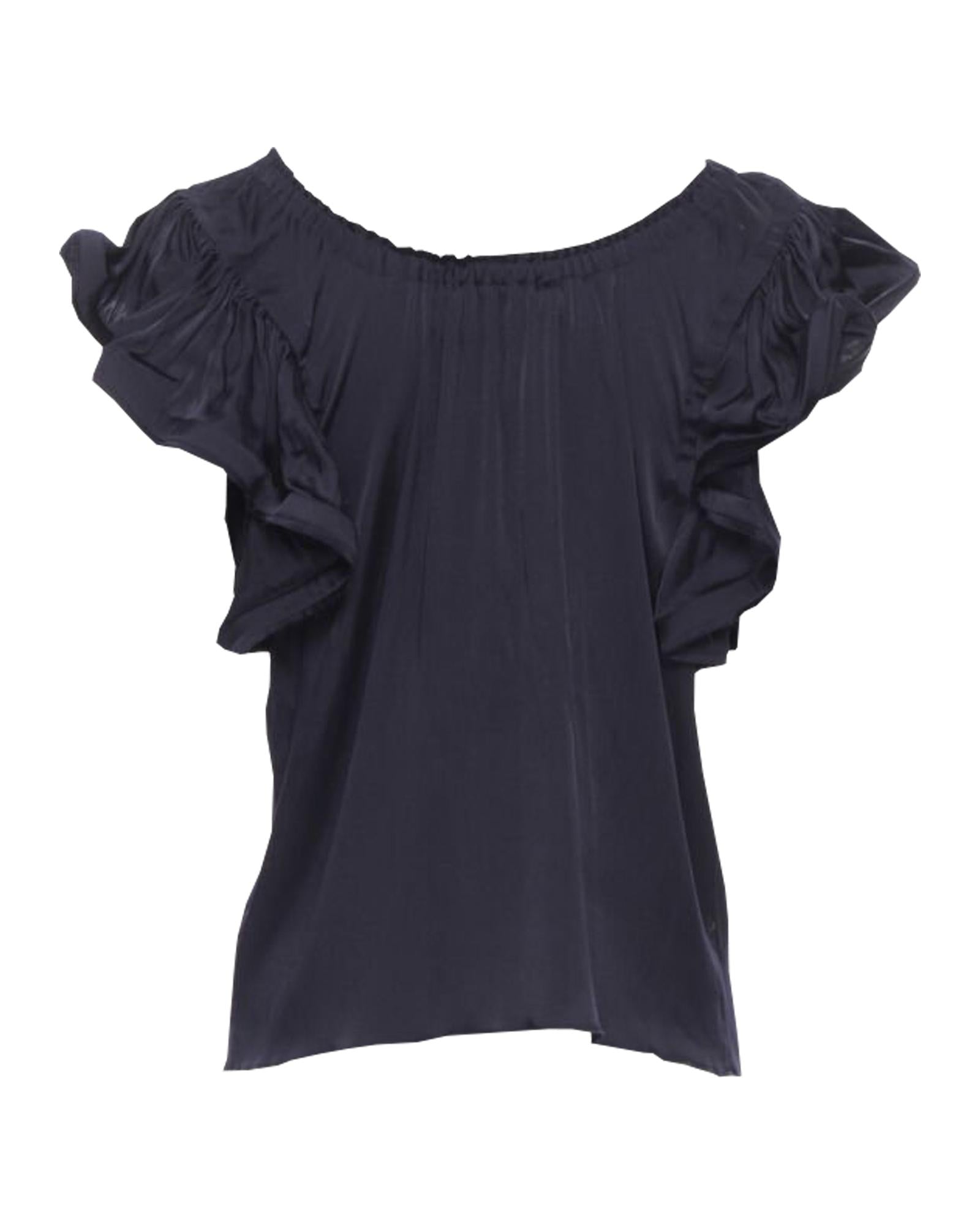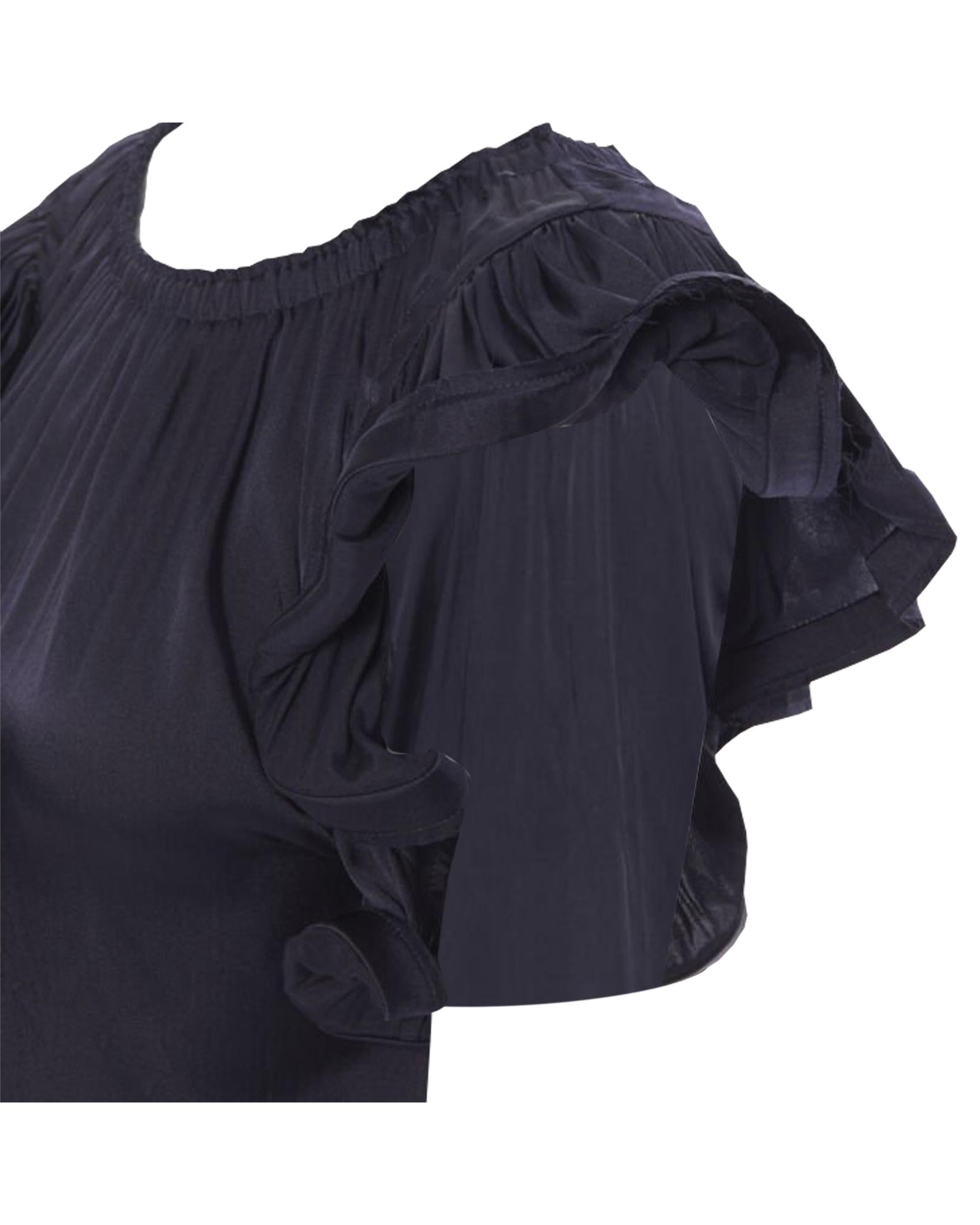 Pre-owned Elegant Solid Top with Ruffle Short Sleeves